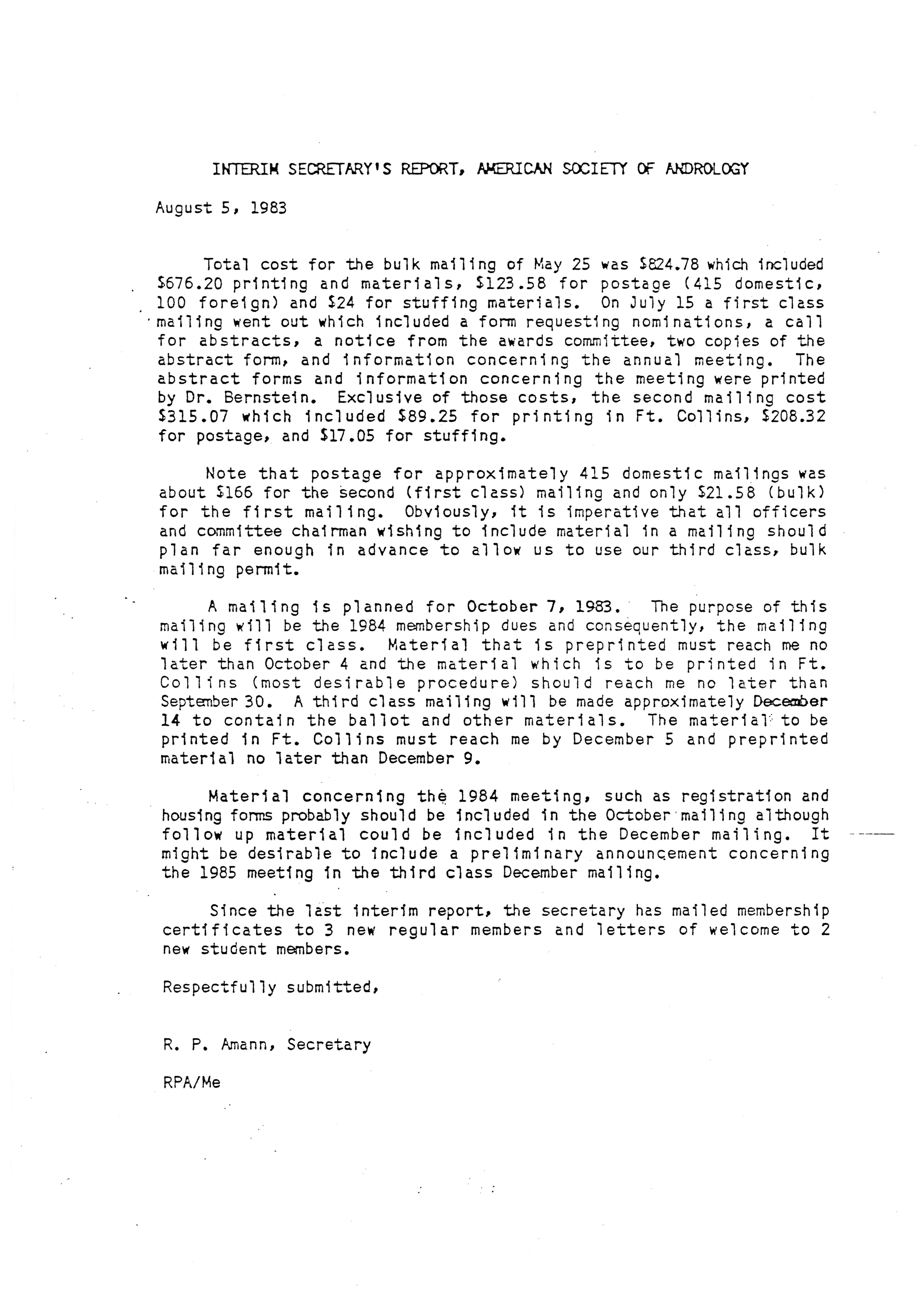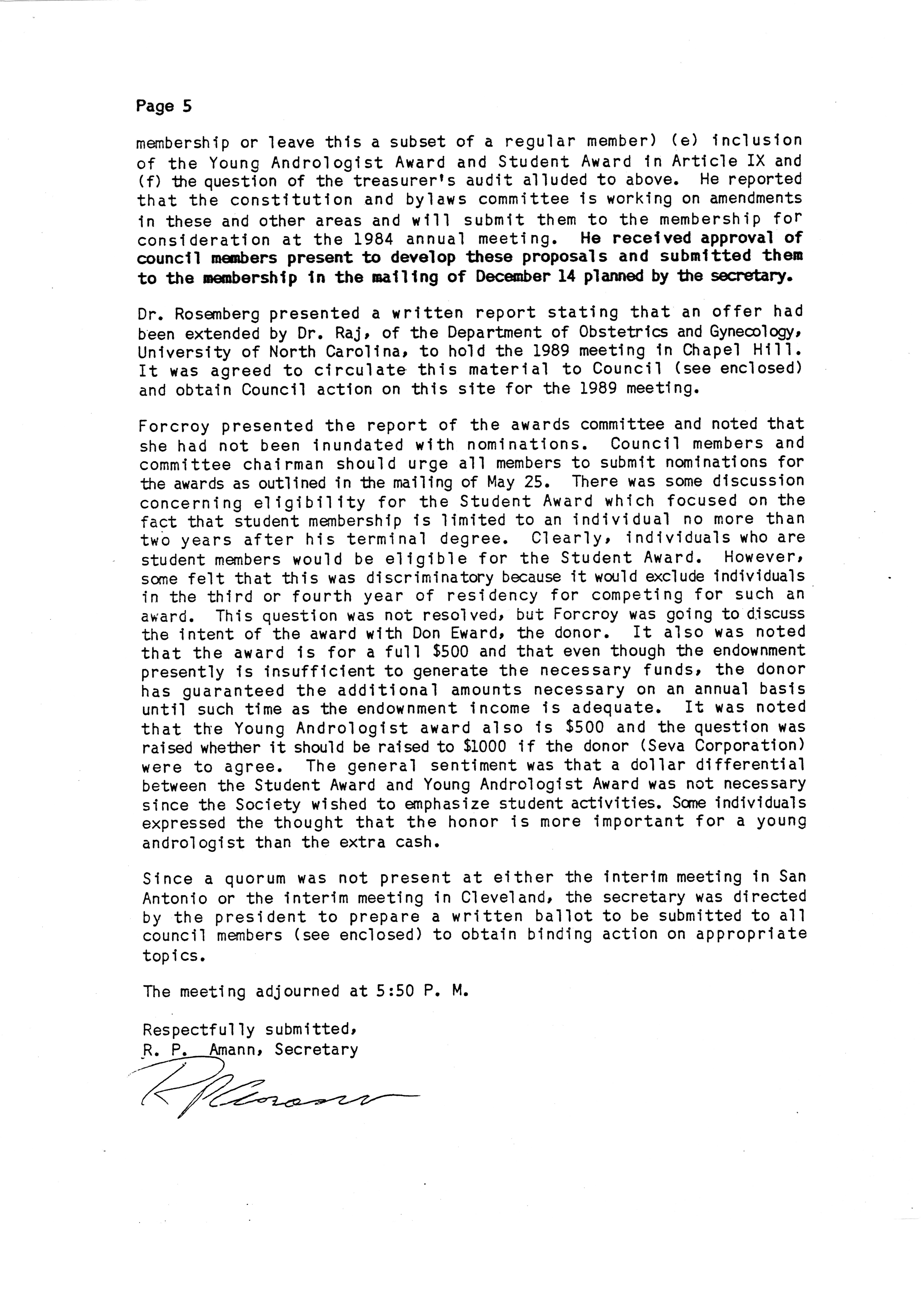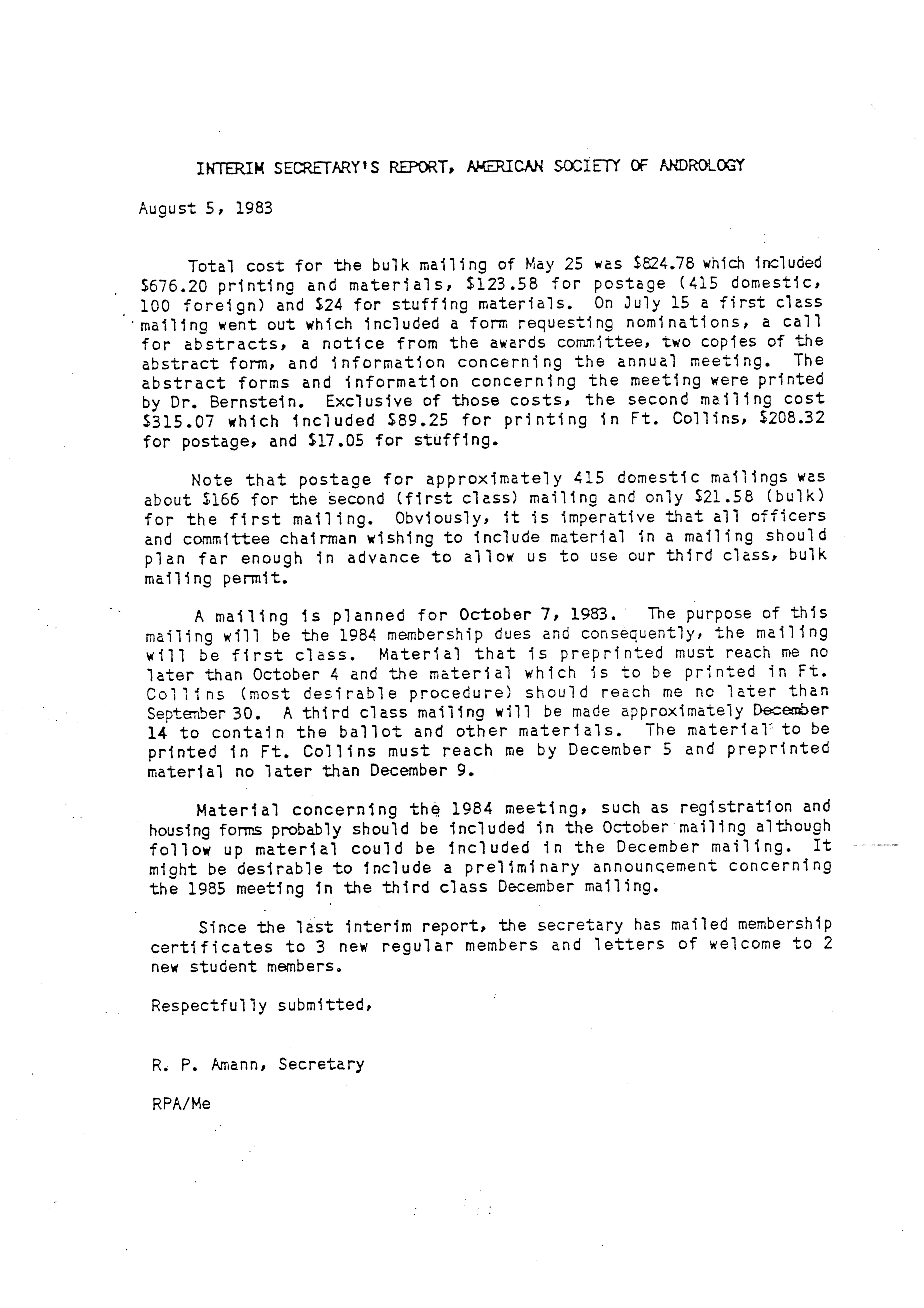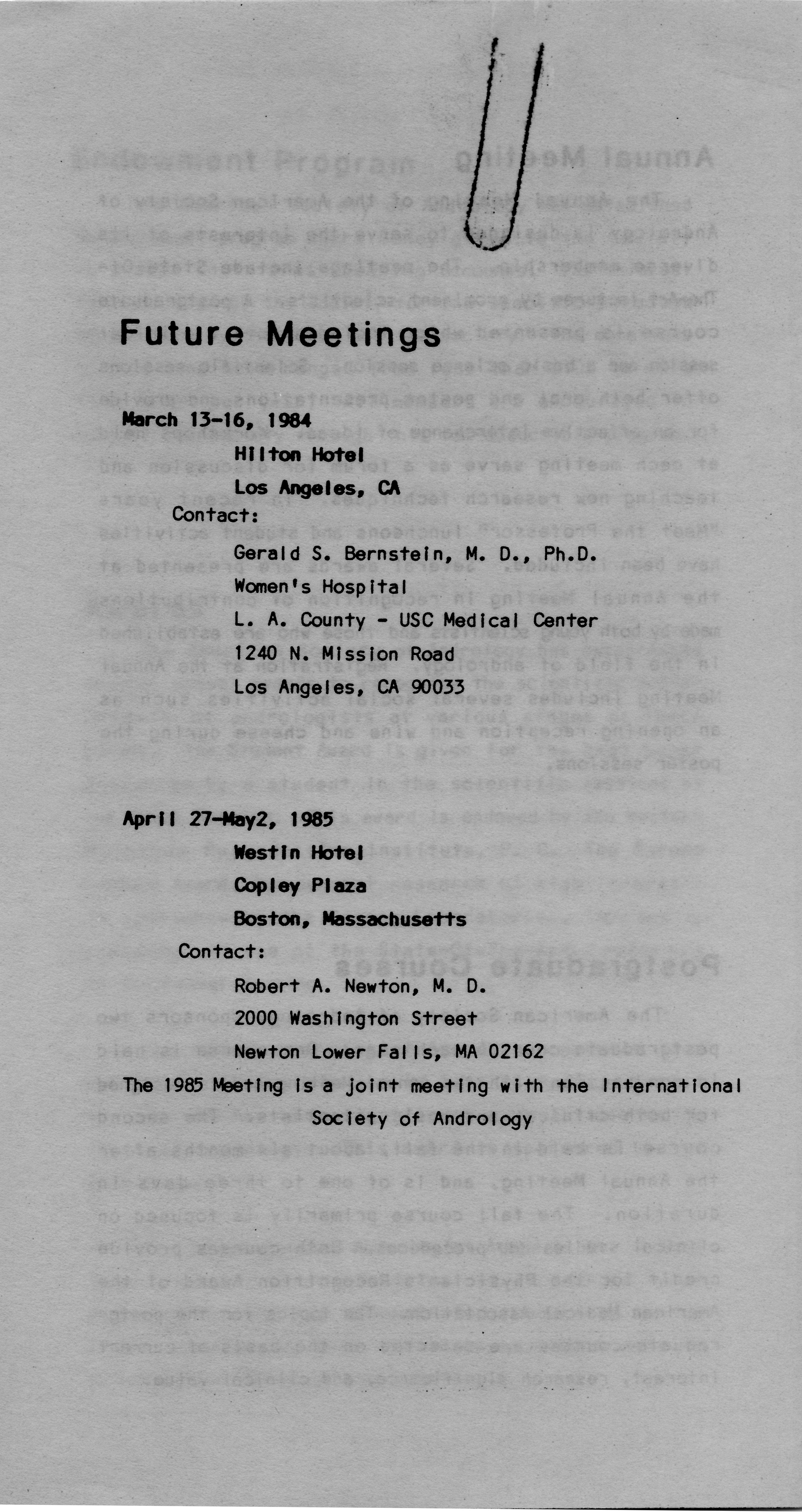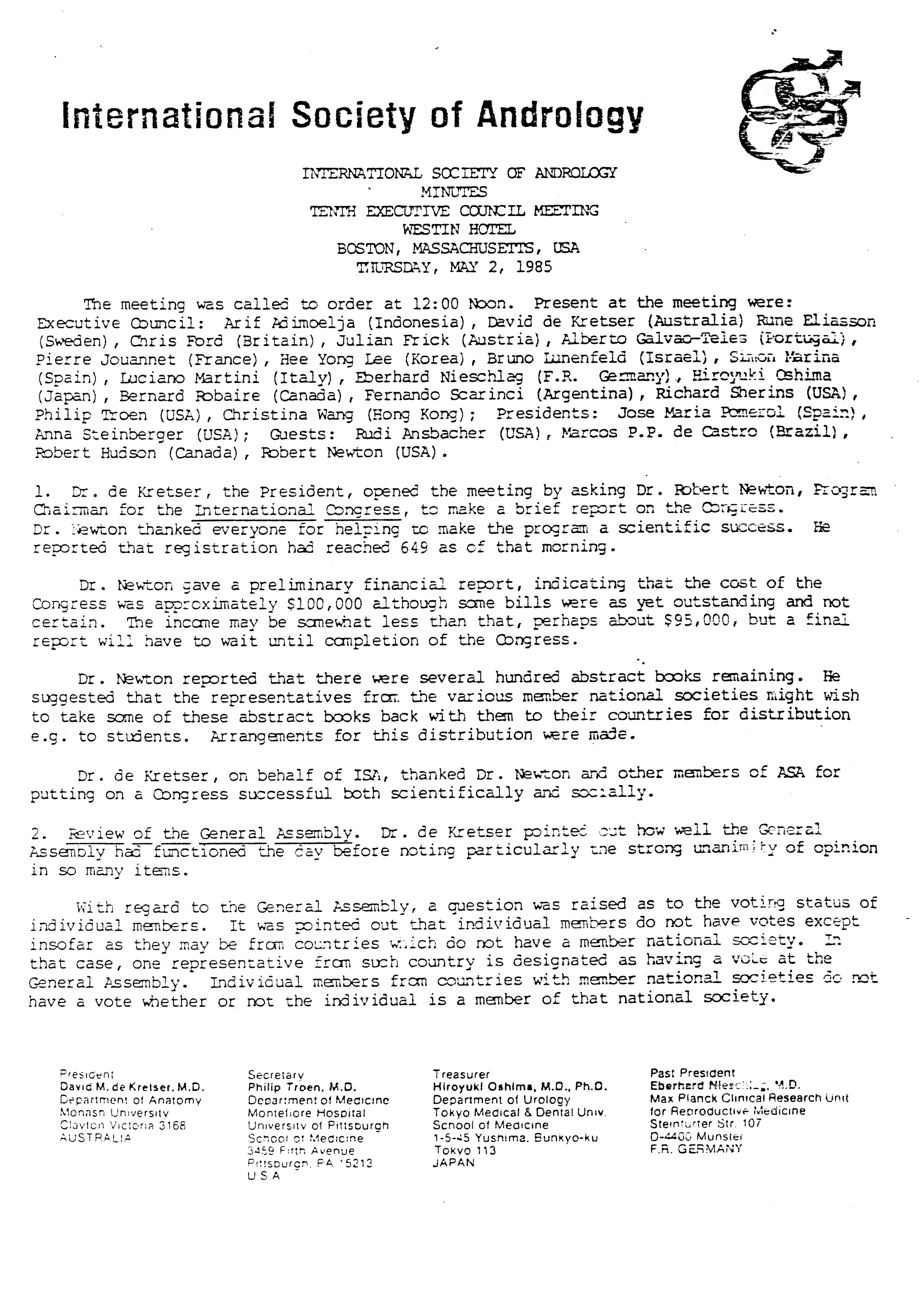 - "Executive Council Meetings of the American Society of Andrology, 1983", American Society of Andrology Collection, Iowa State University Library Digital Collections