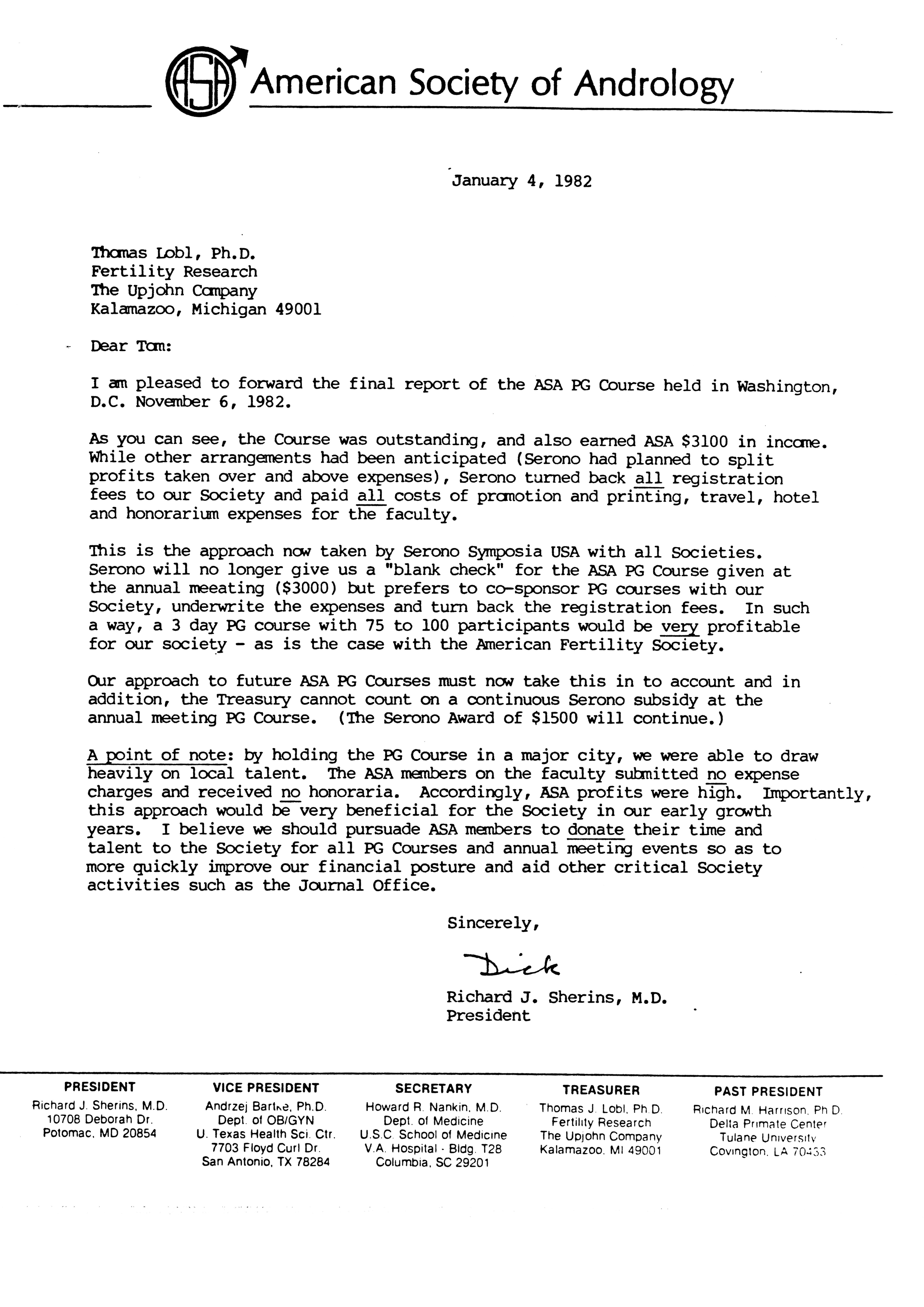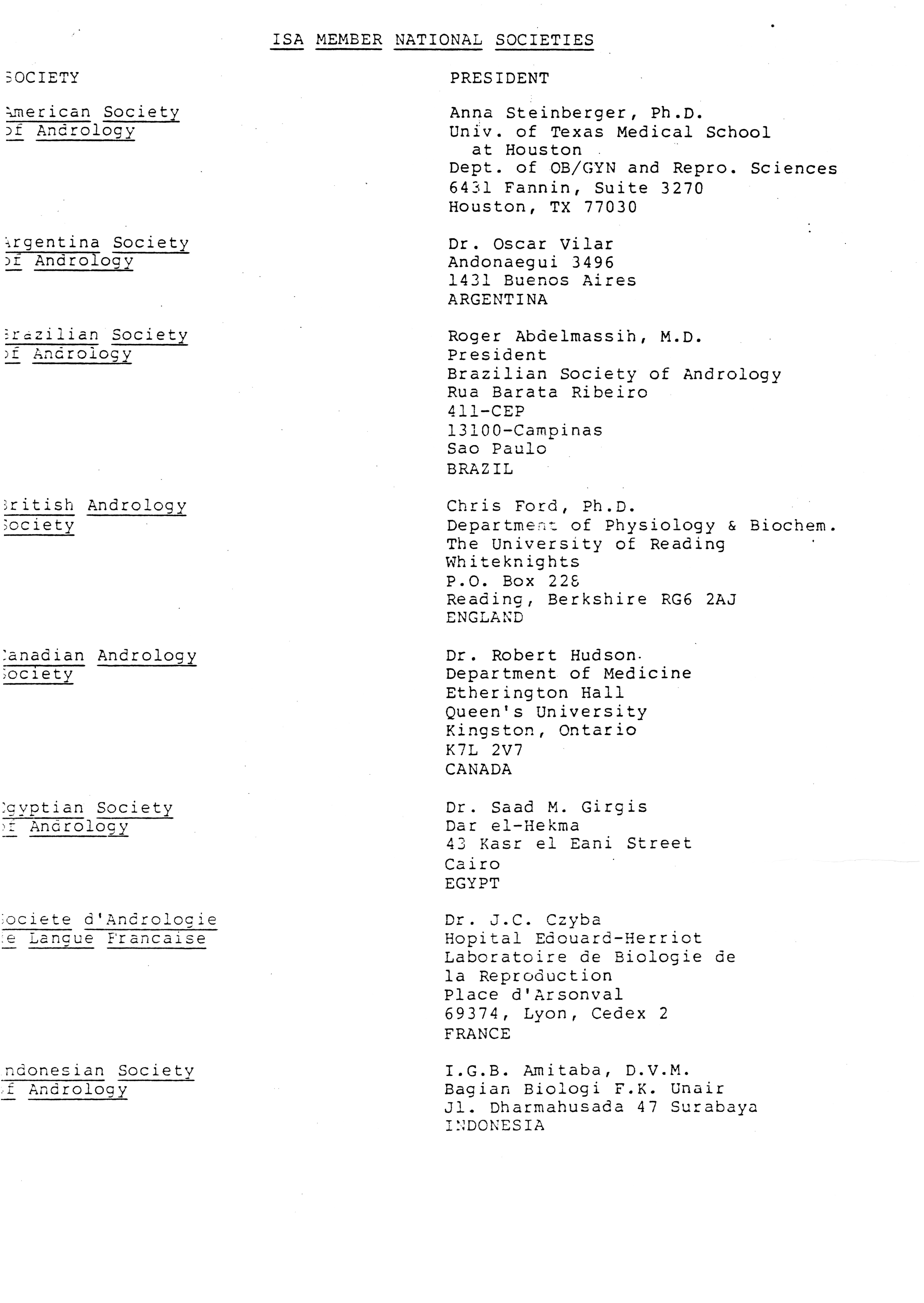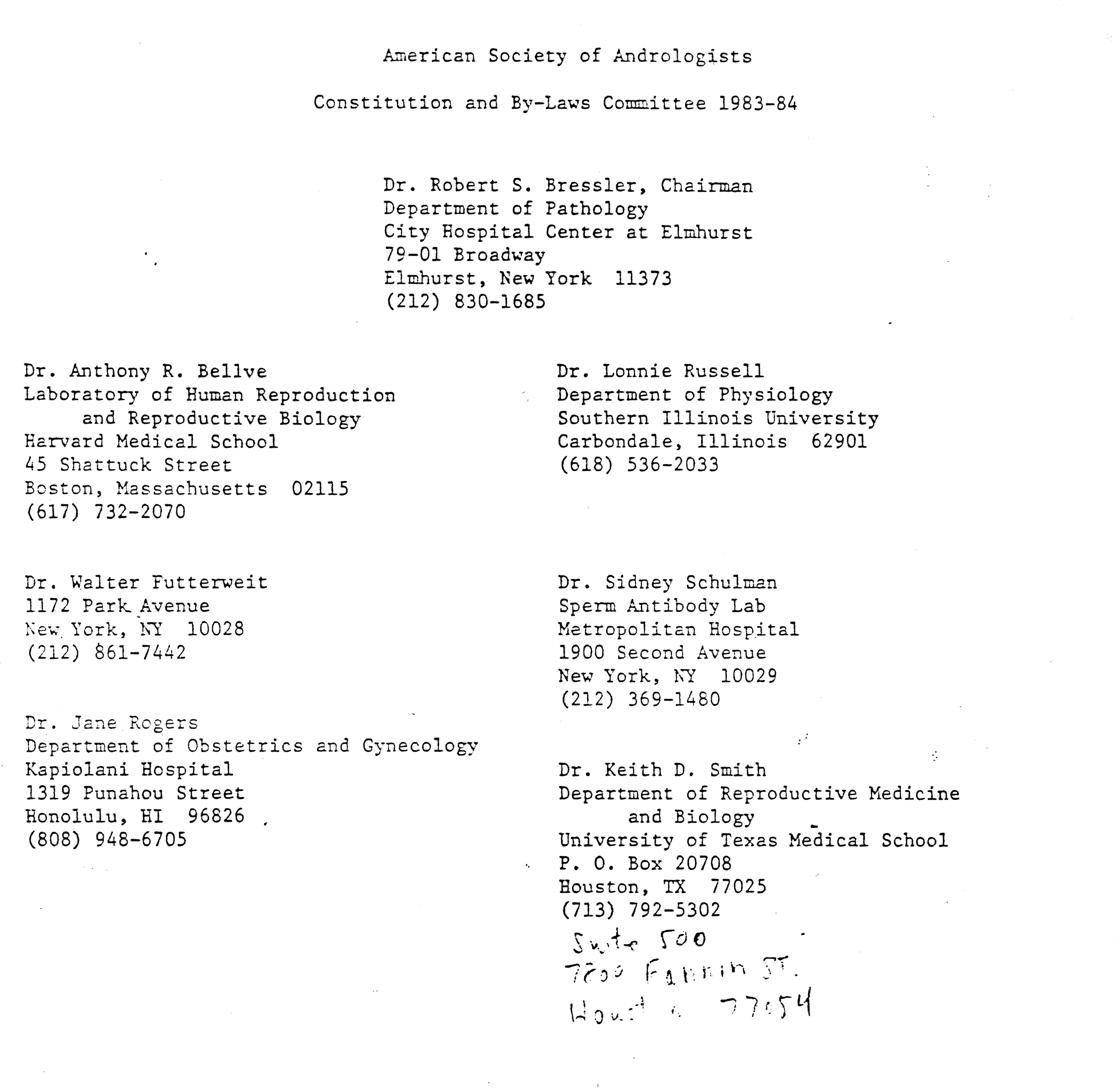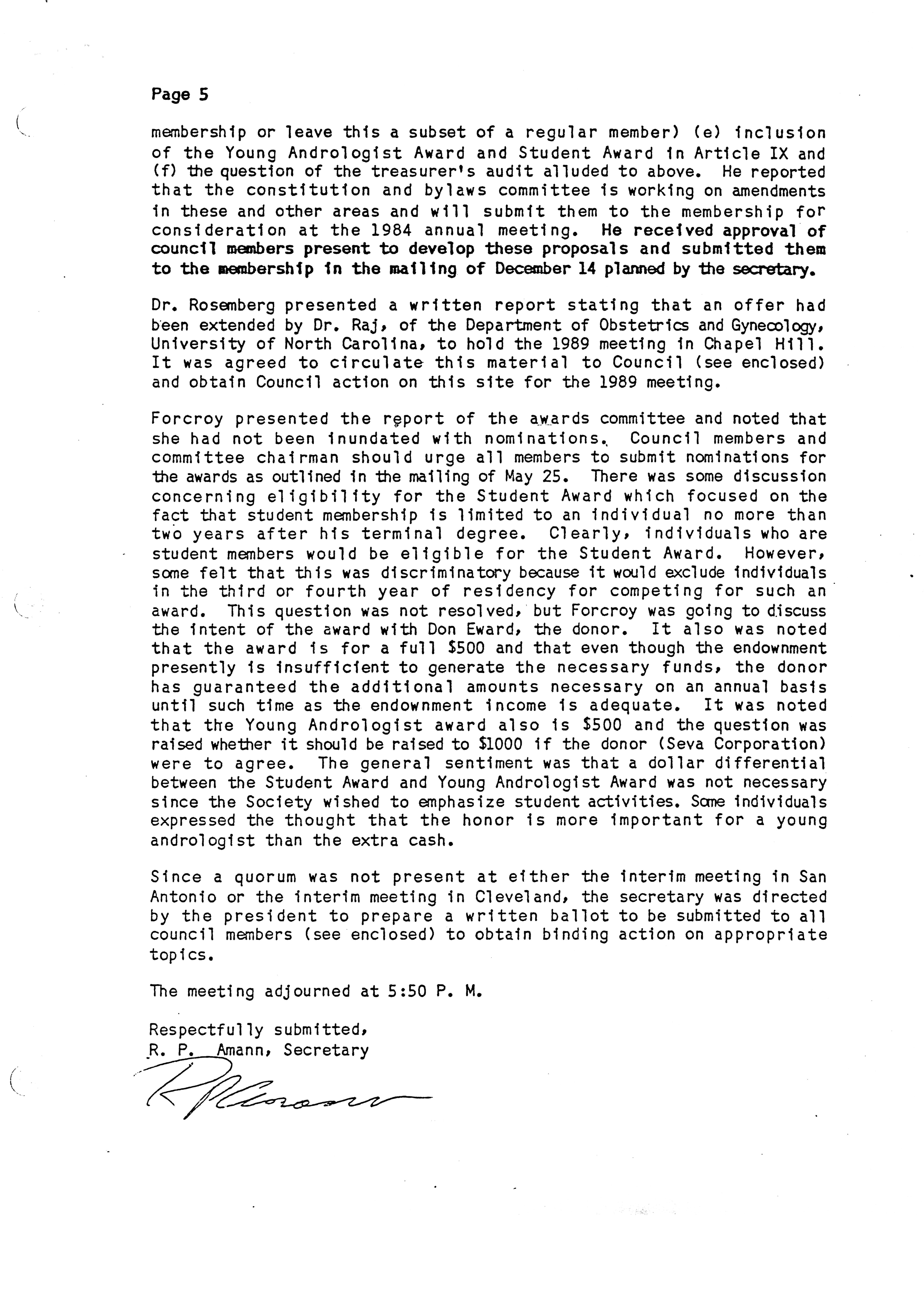- "Executive Council Meetings of the American Society of Andrology, 1983", American Society of Andrology Collection, Iowa State University Library Digital Collections
