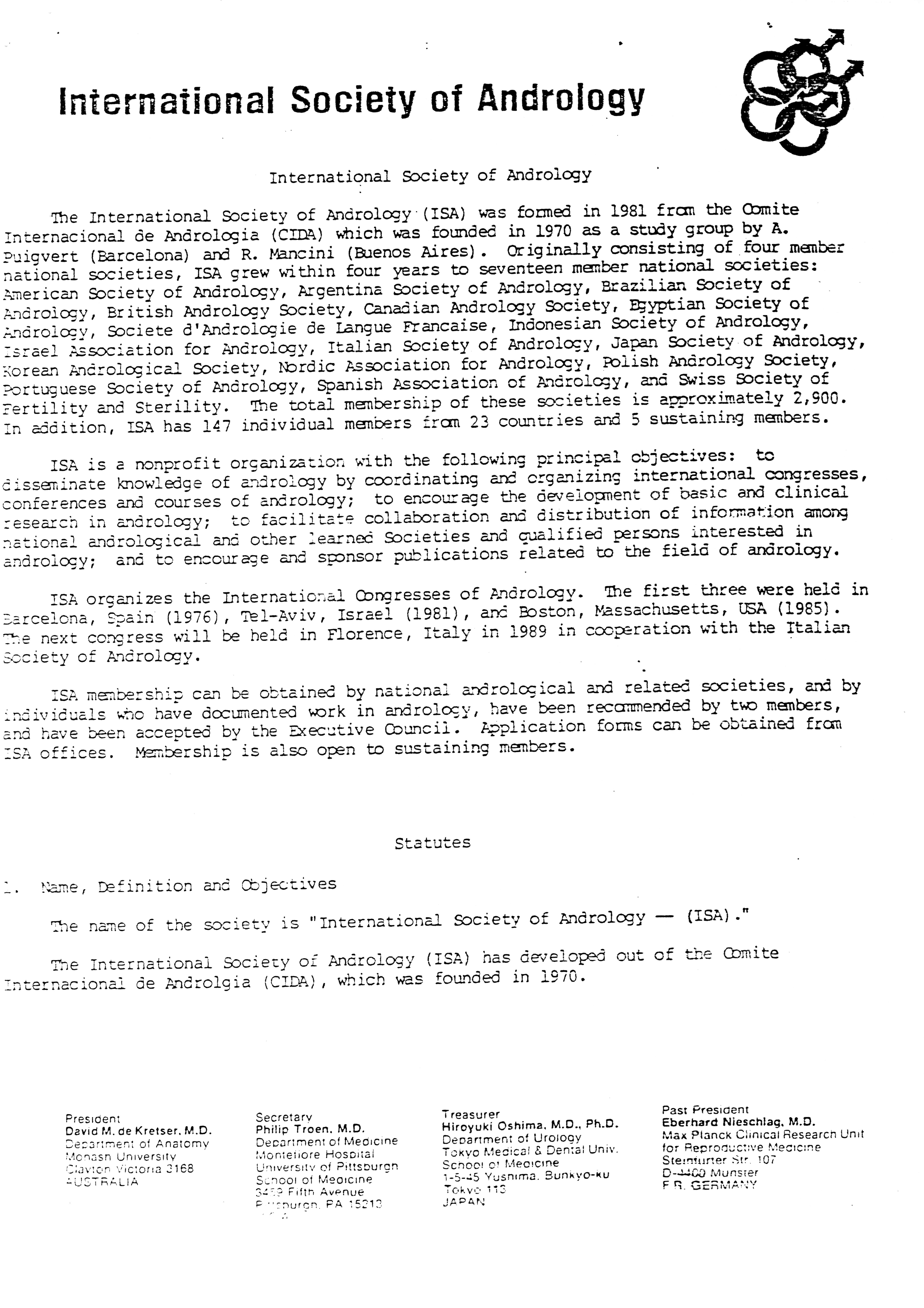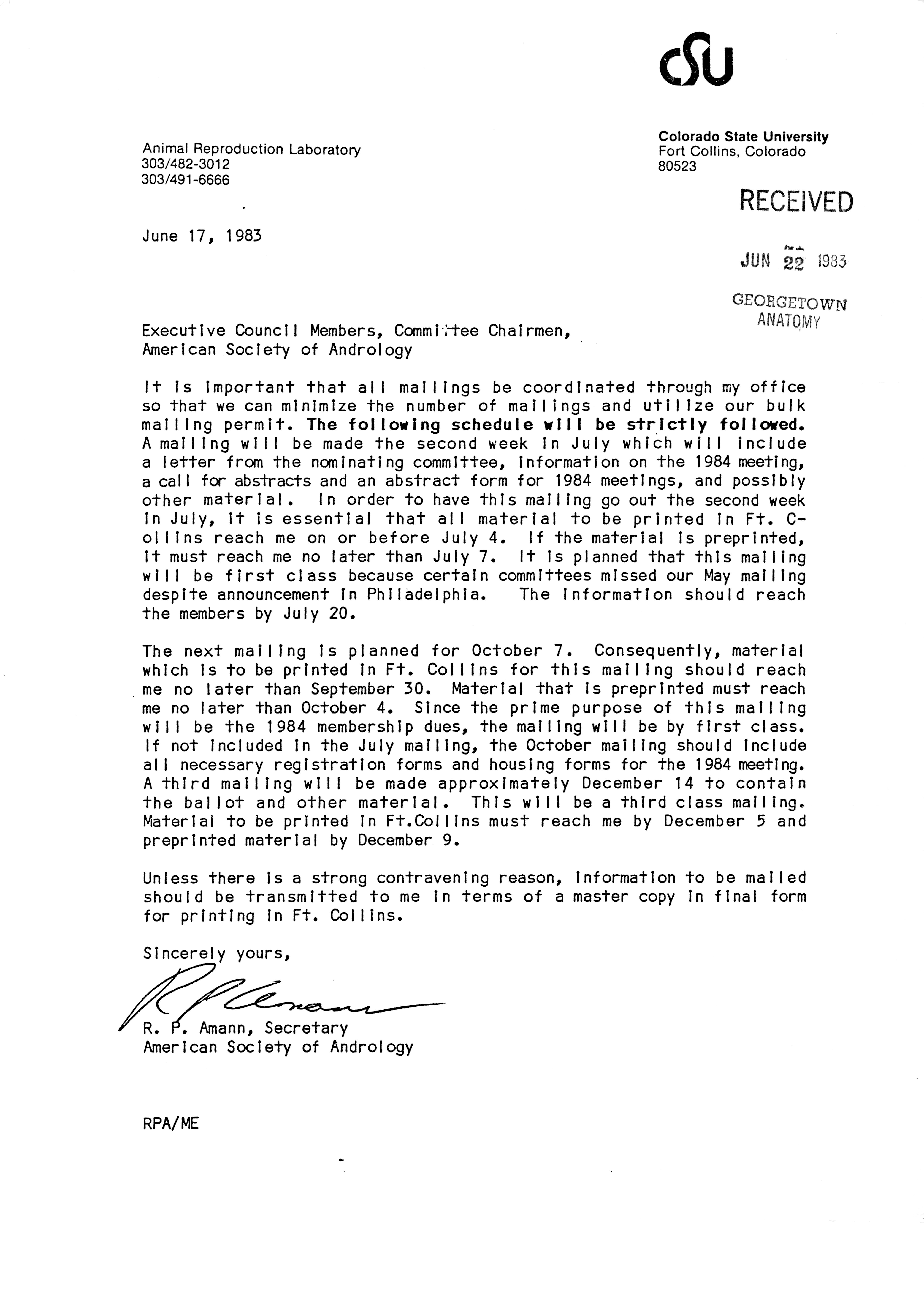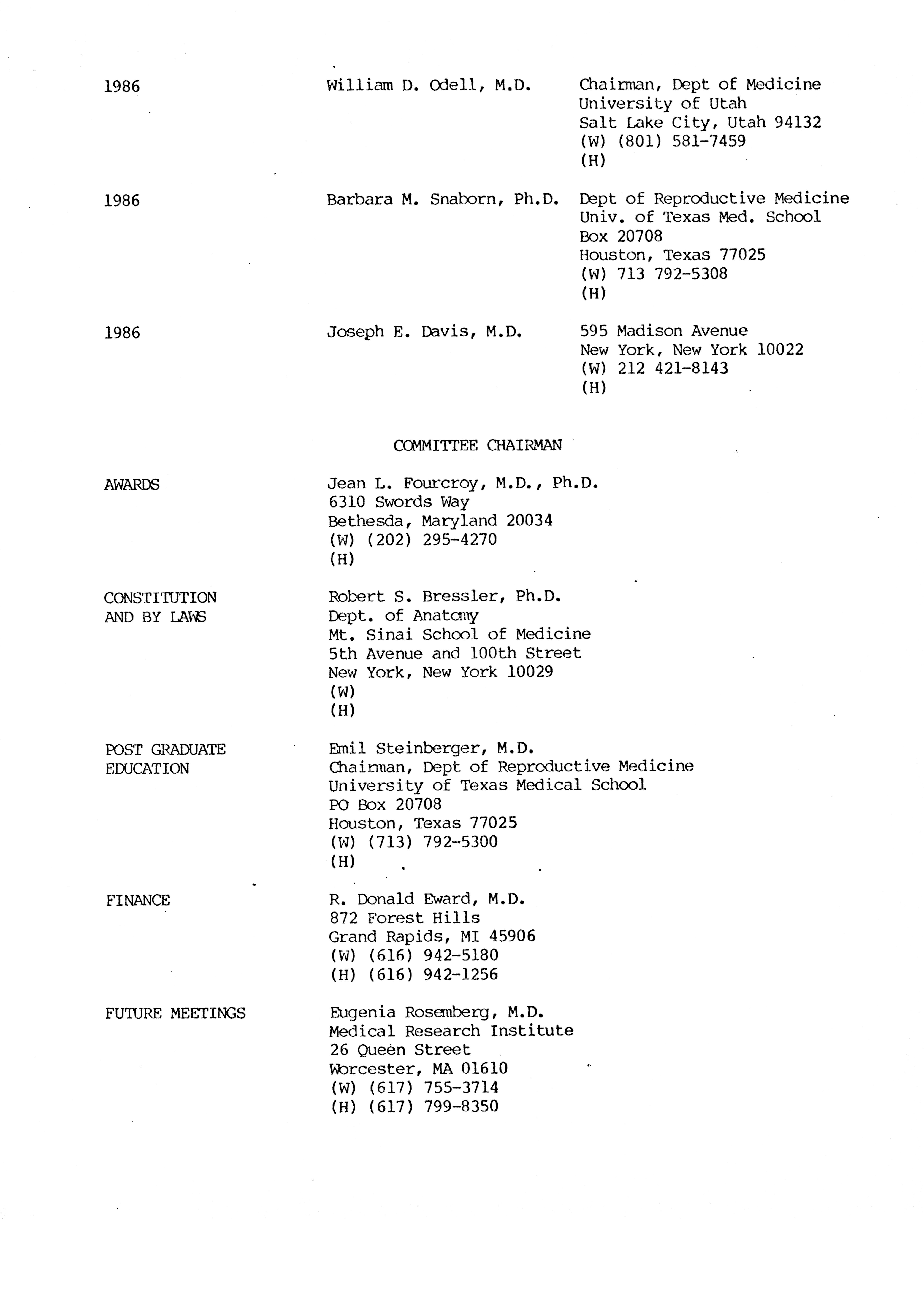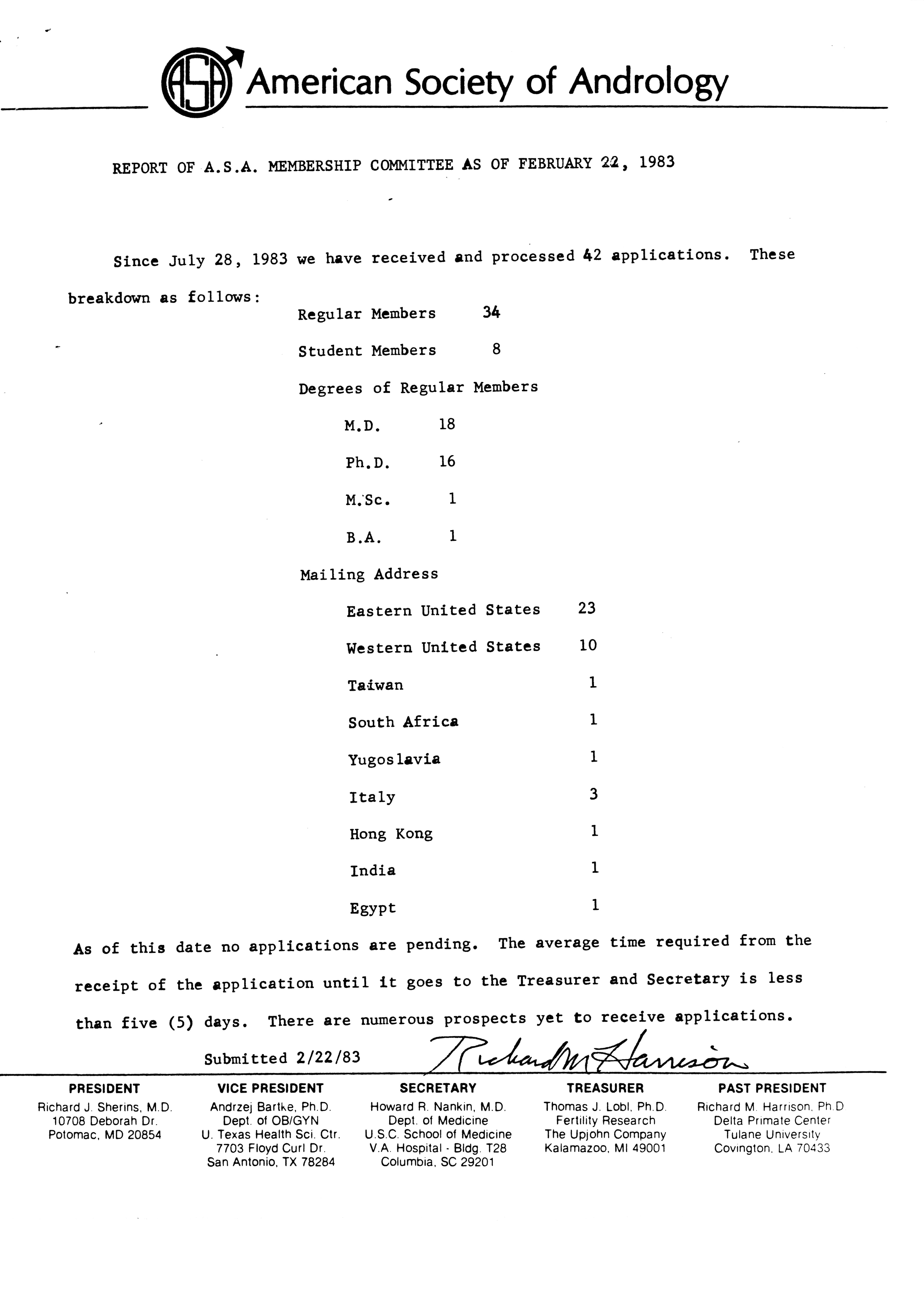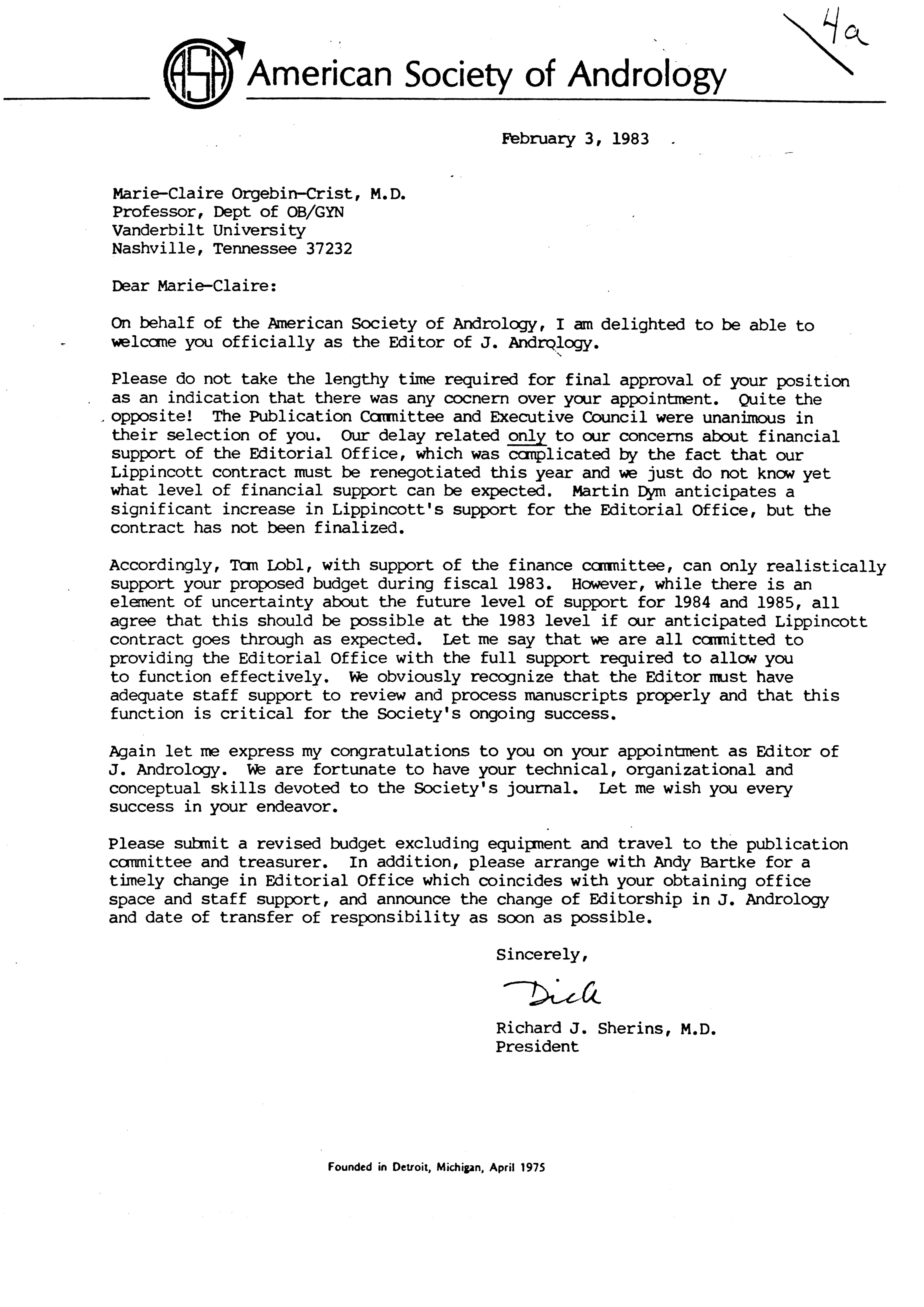 - "Executive Council Meetings of the American Society of Andrology, 1983", American Society of Andrology Collection, Iowa State University Library Digital Collections