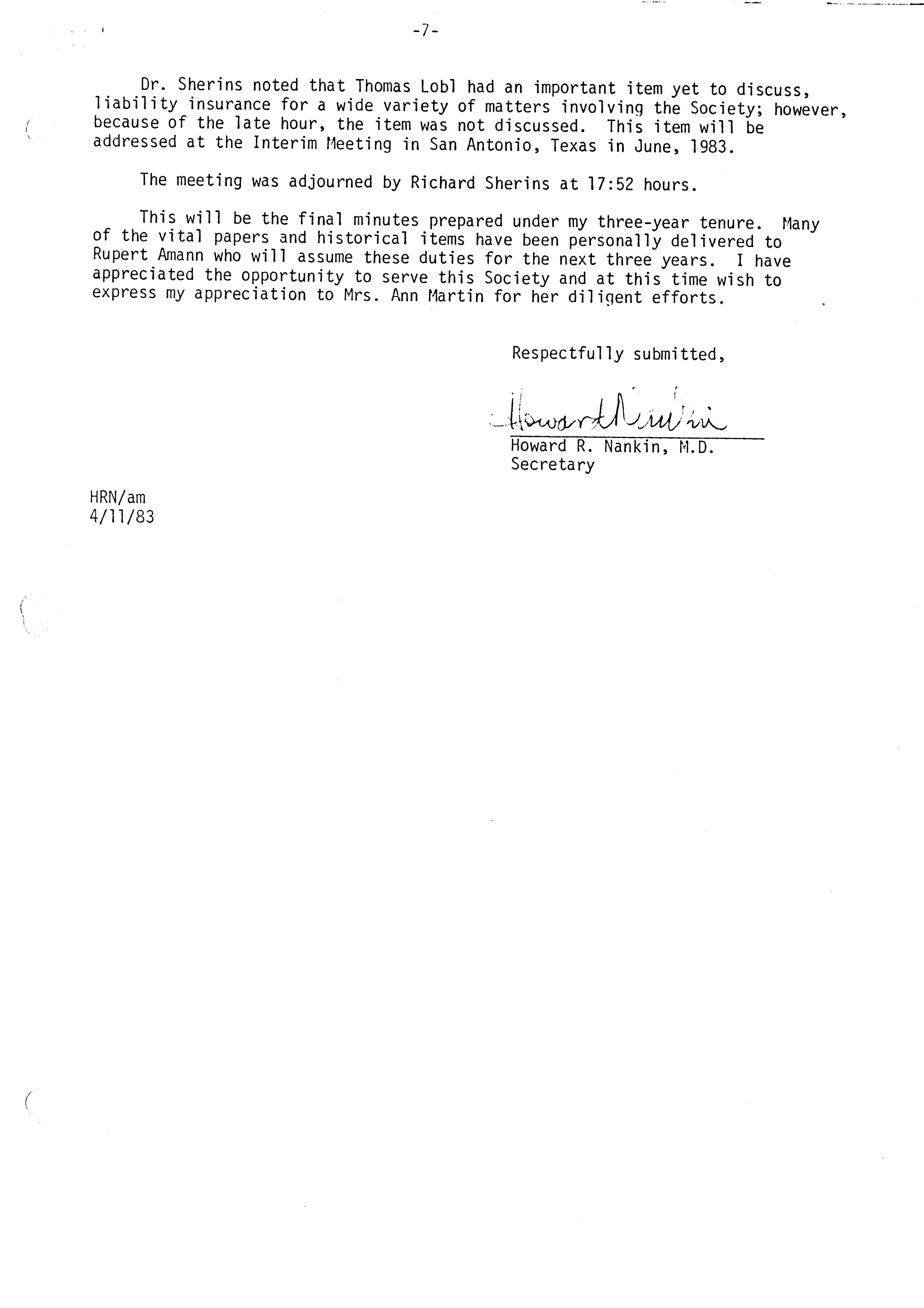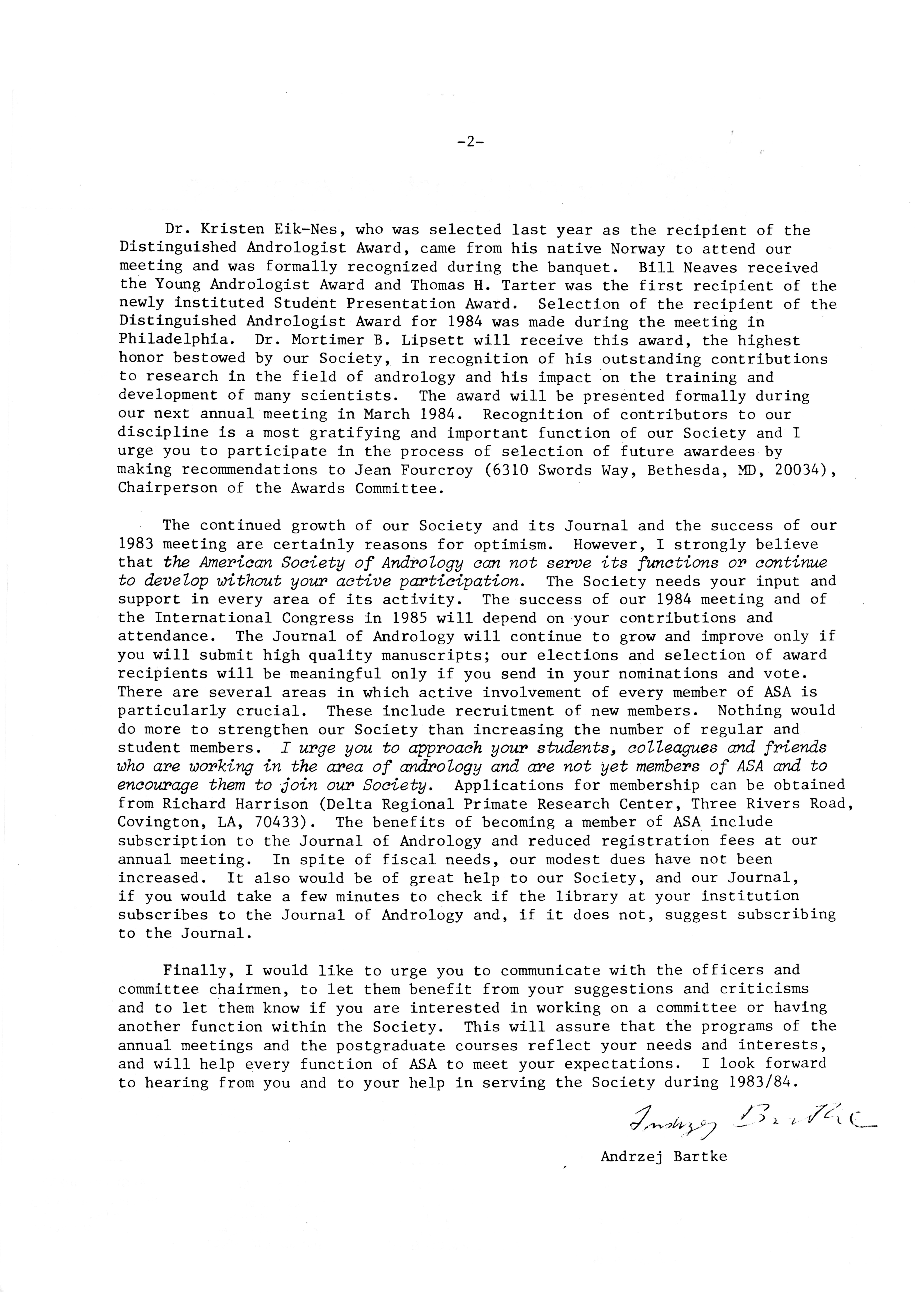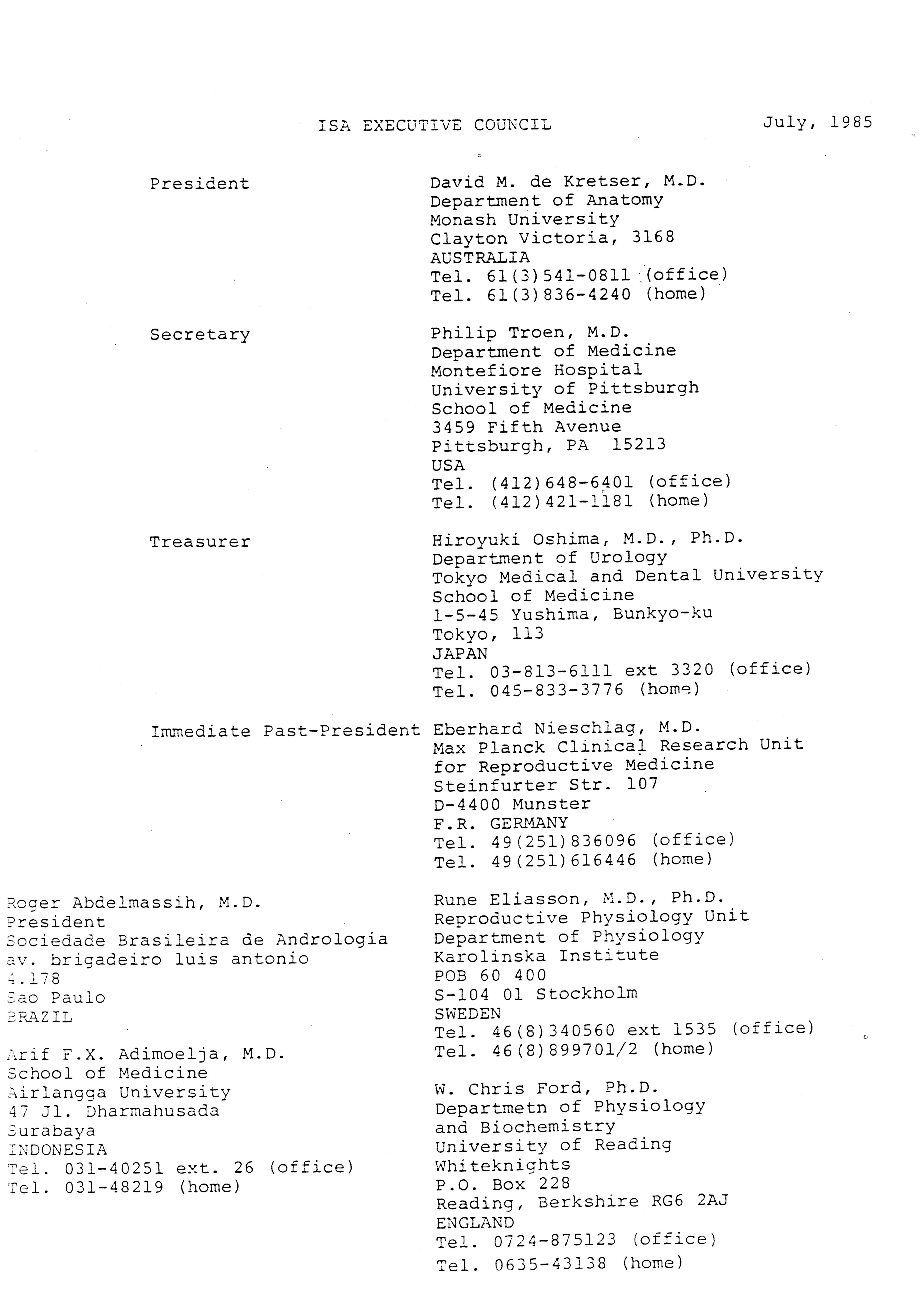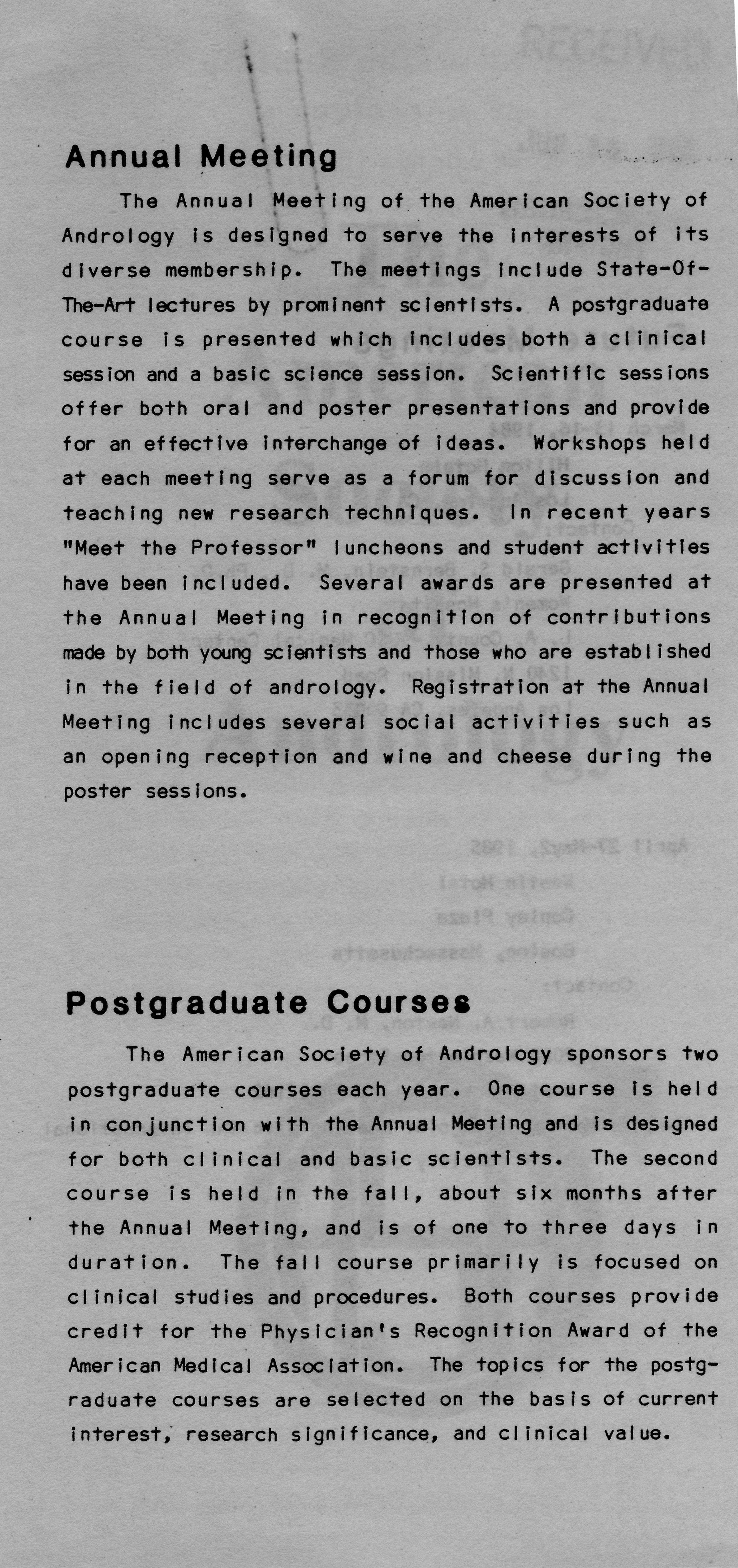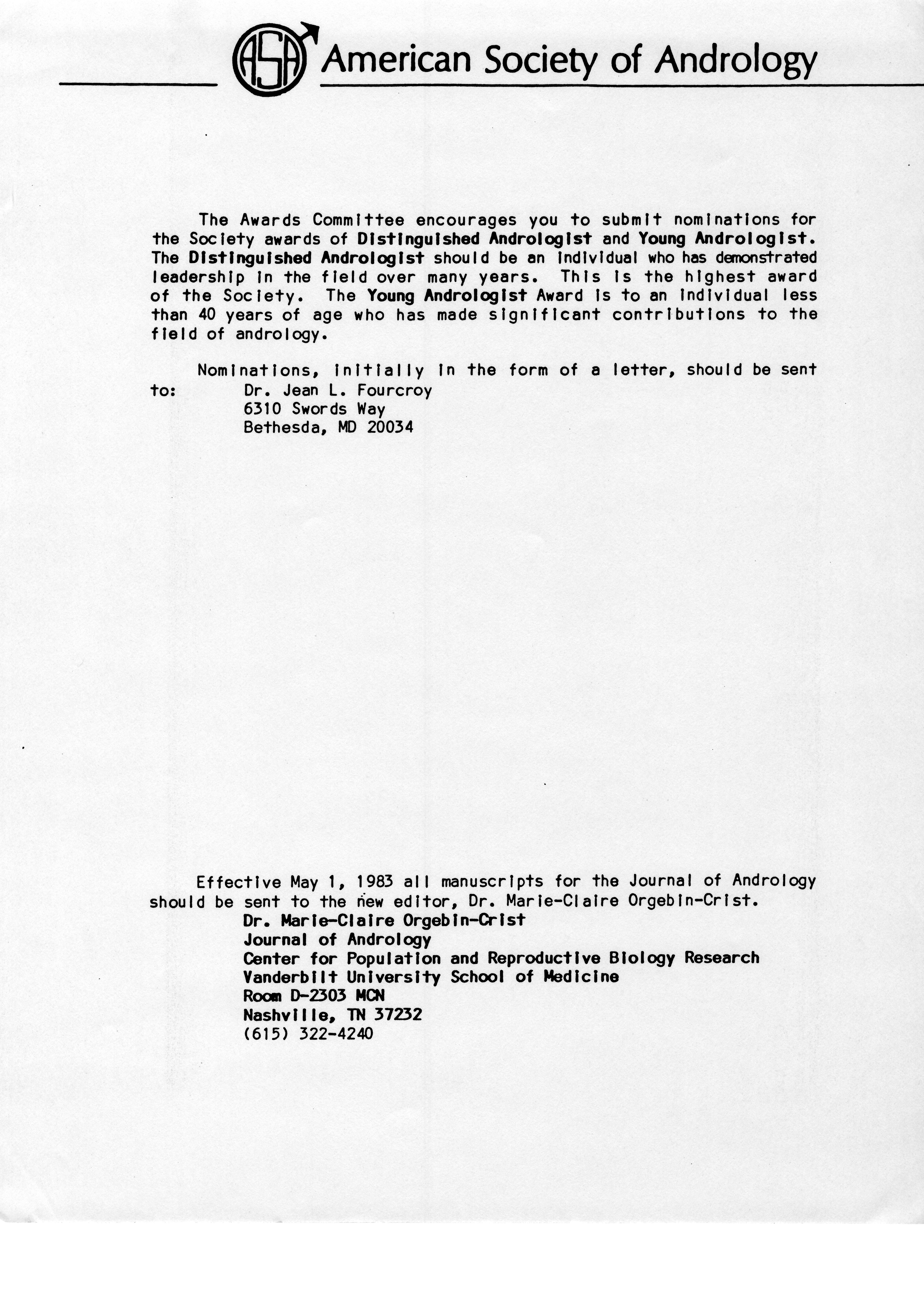 - "Executive Council Meetings of the American Society of Andrology, 1983", American Society of Andrology Collection, Iowa State University Library Digital Collections