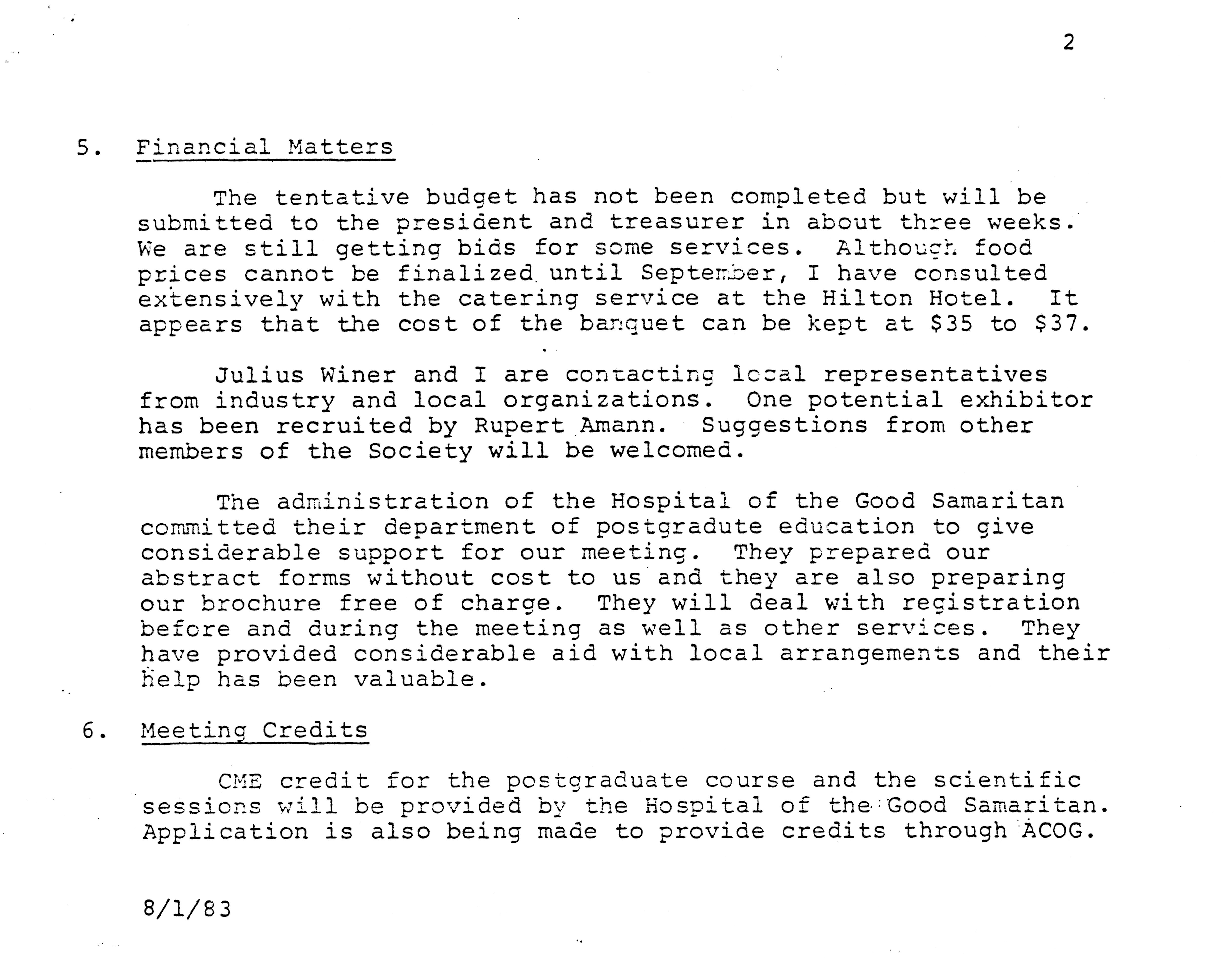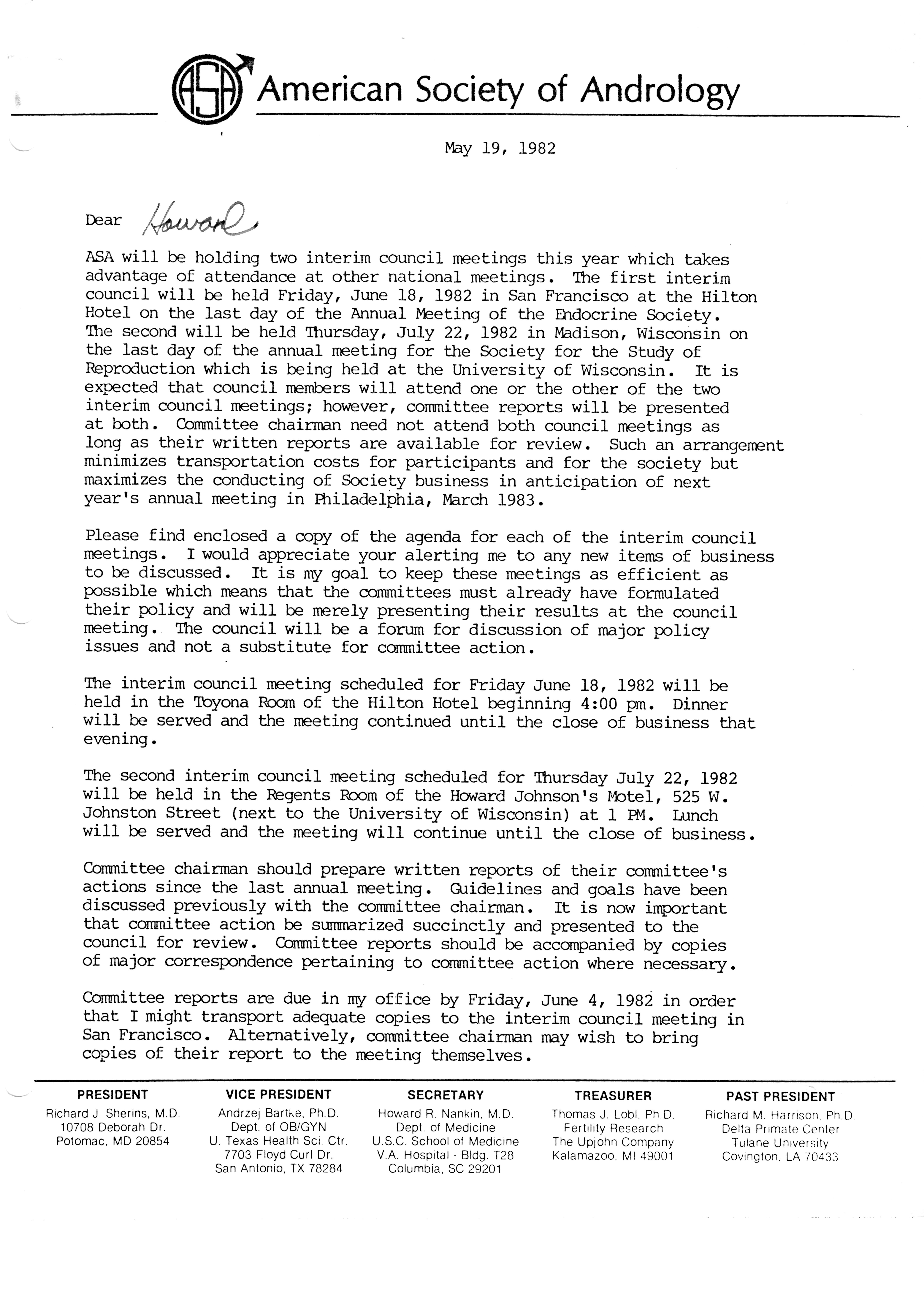 Executive Council Meetings of the American Society of Andrology, 1983 Item Info