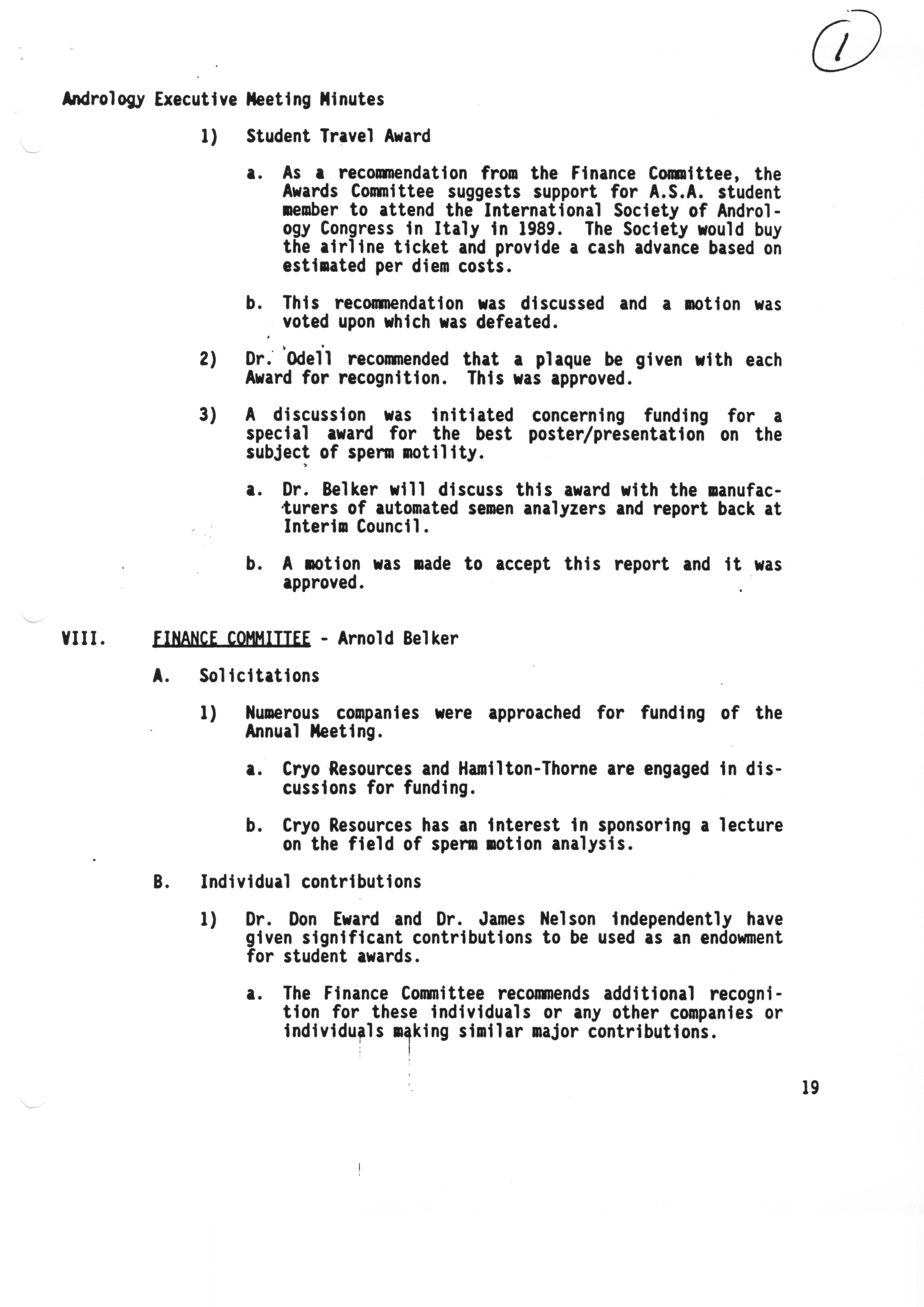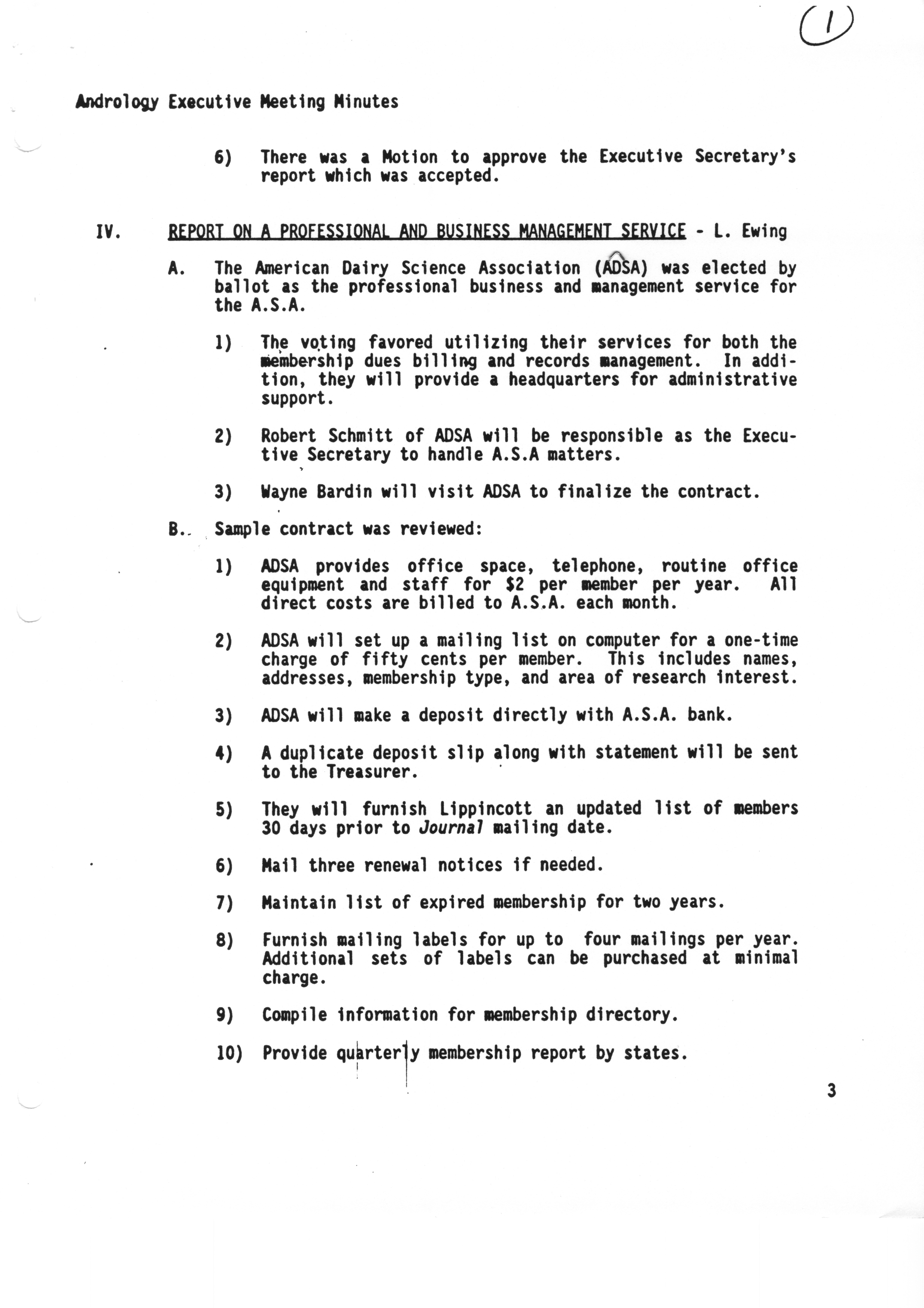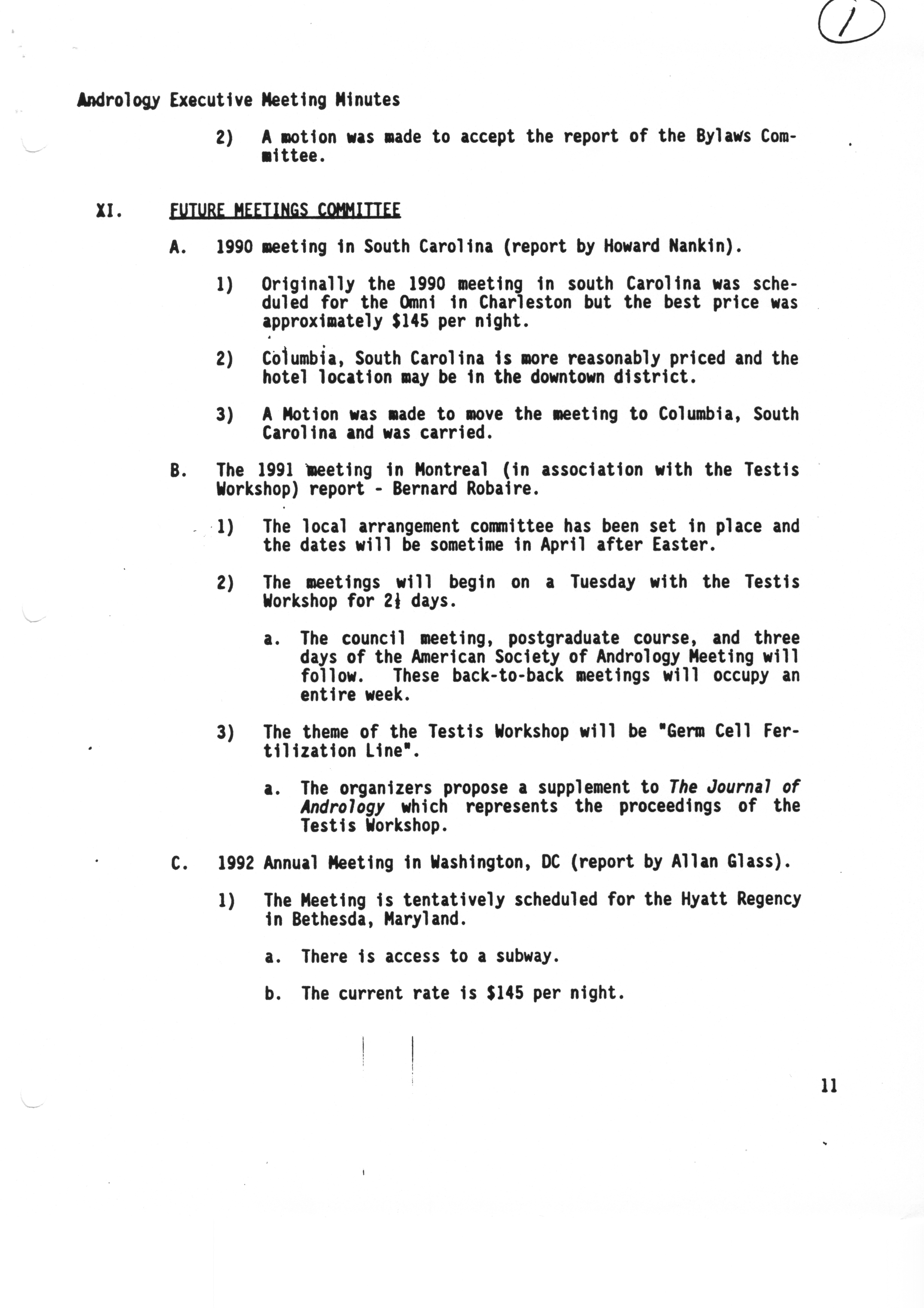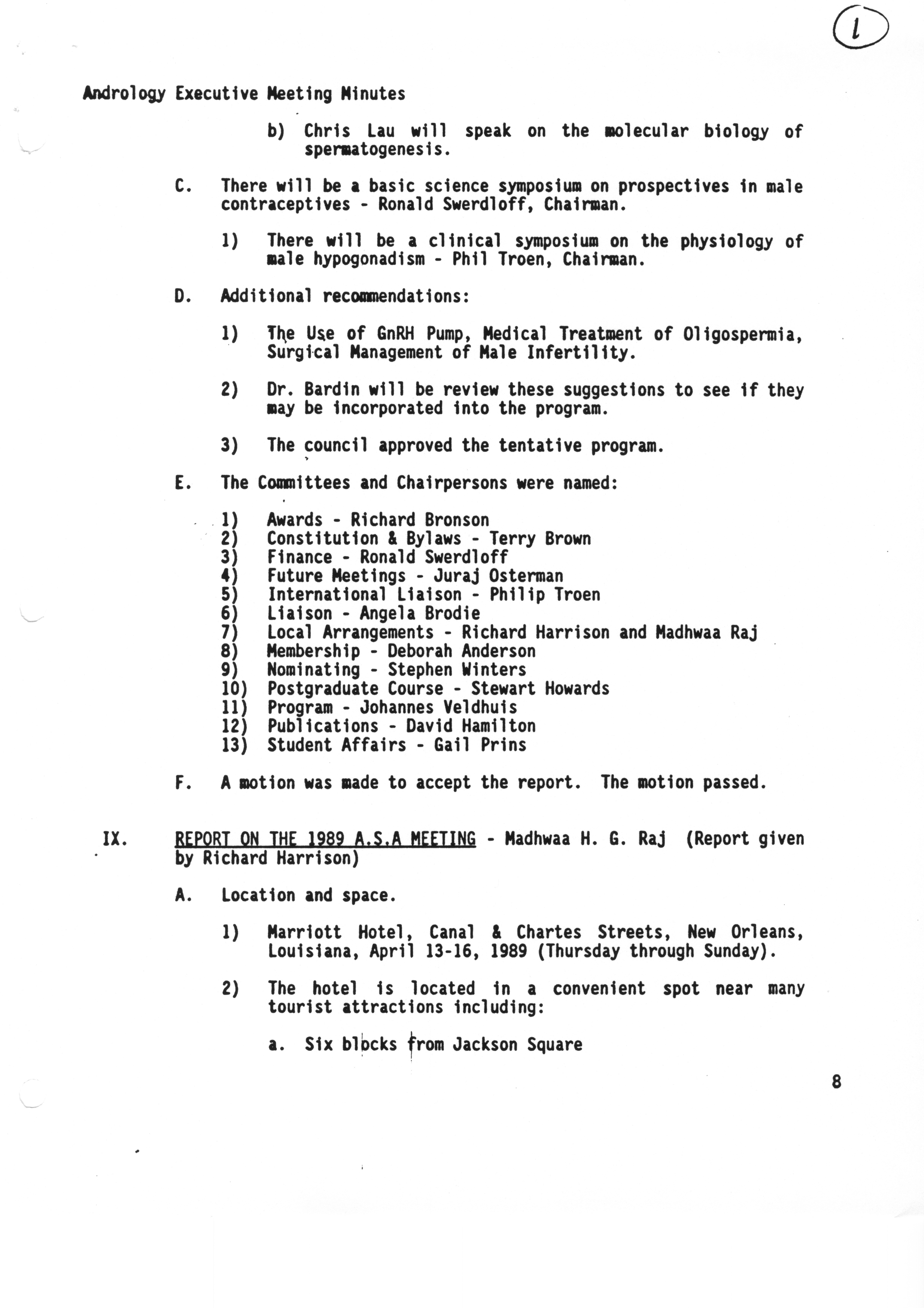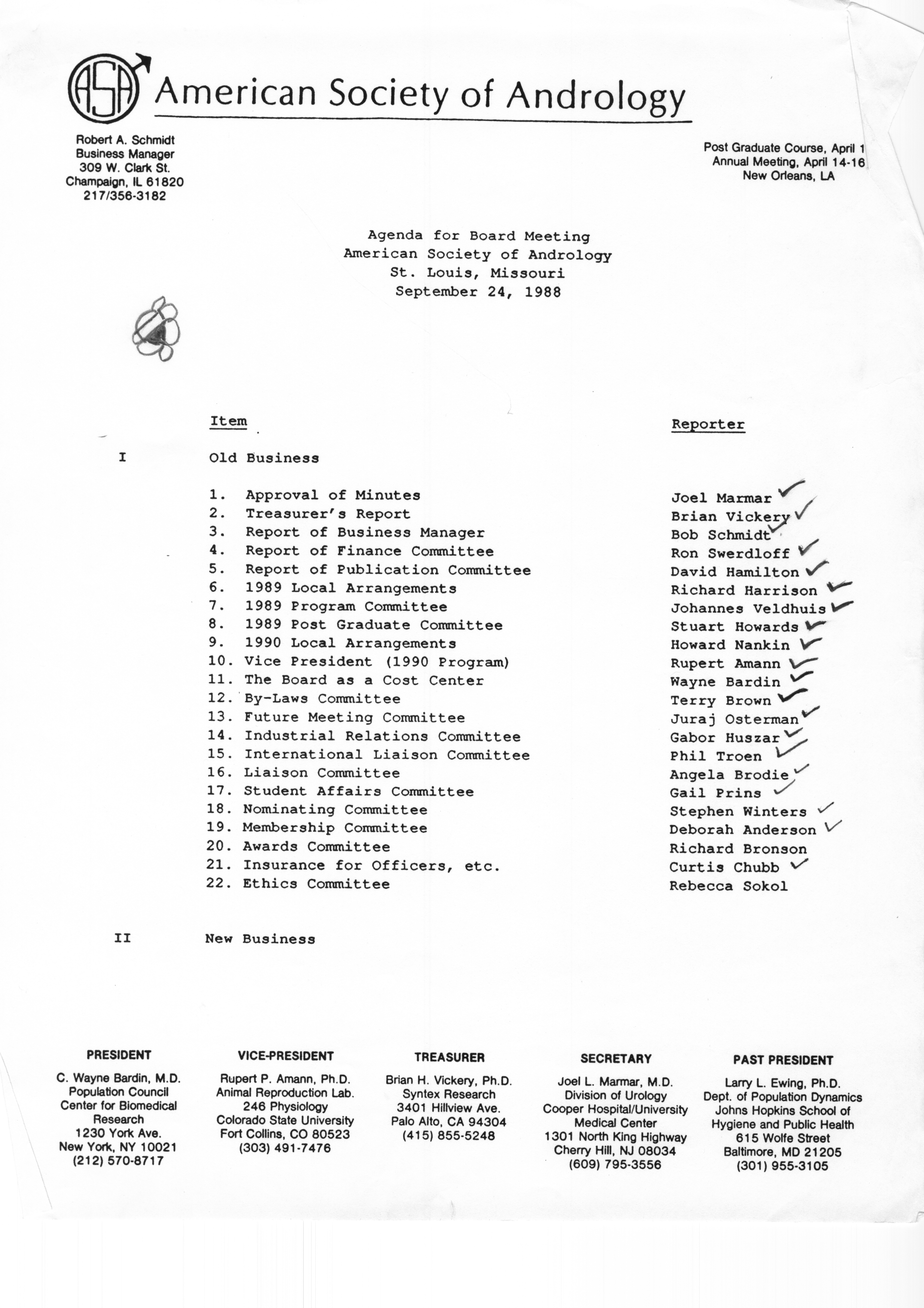 - "Executive Council Meeting of the American Society of Andrology, March 26, 1988", American Society of Andrology Collection, Iowa State University Library Digital Collections