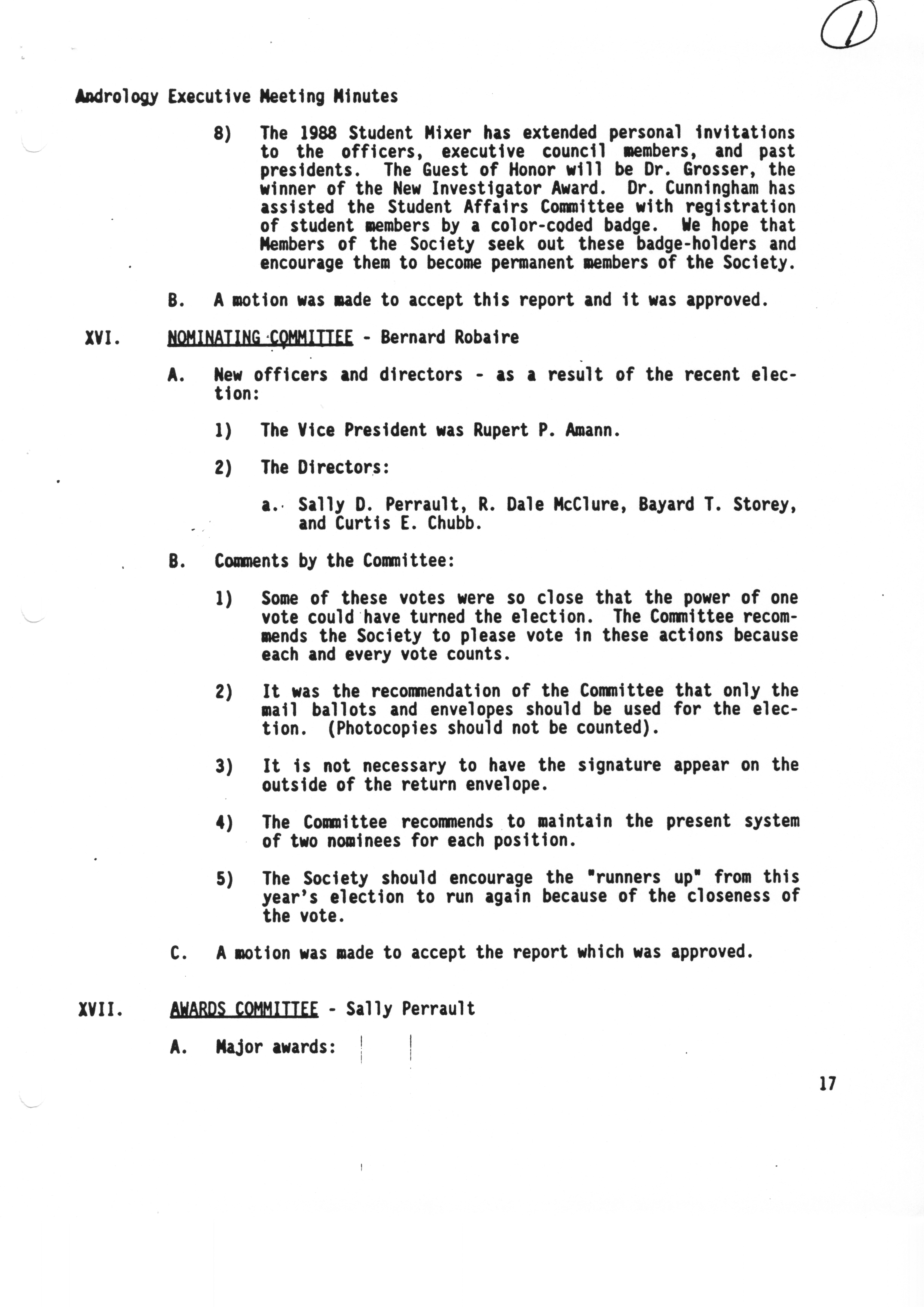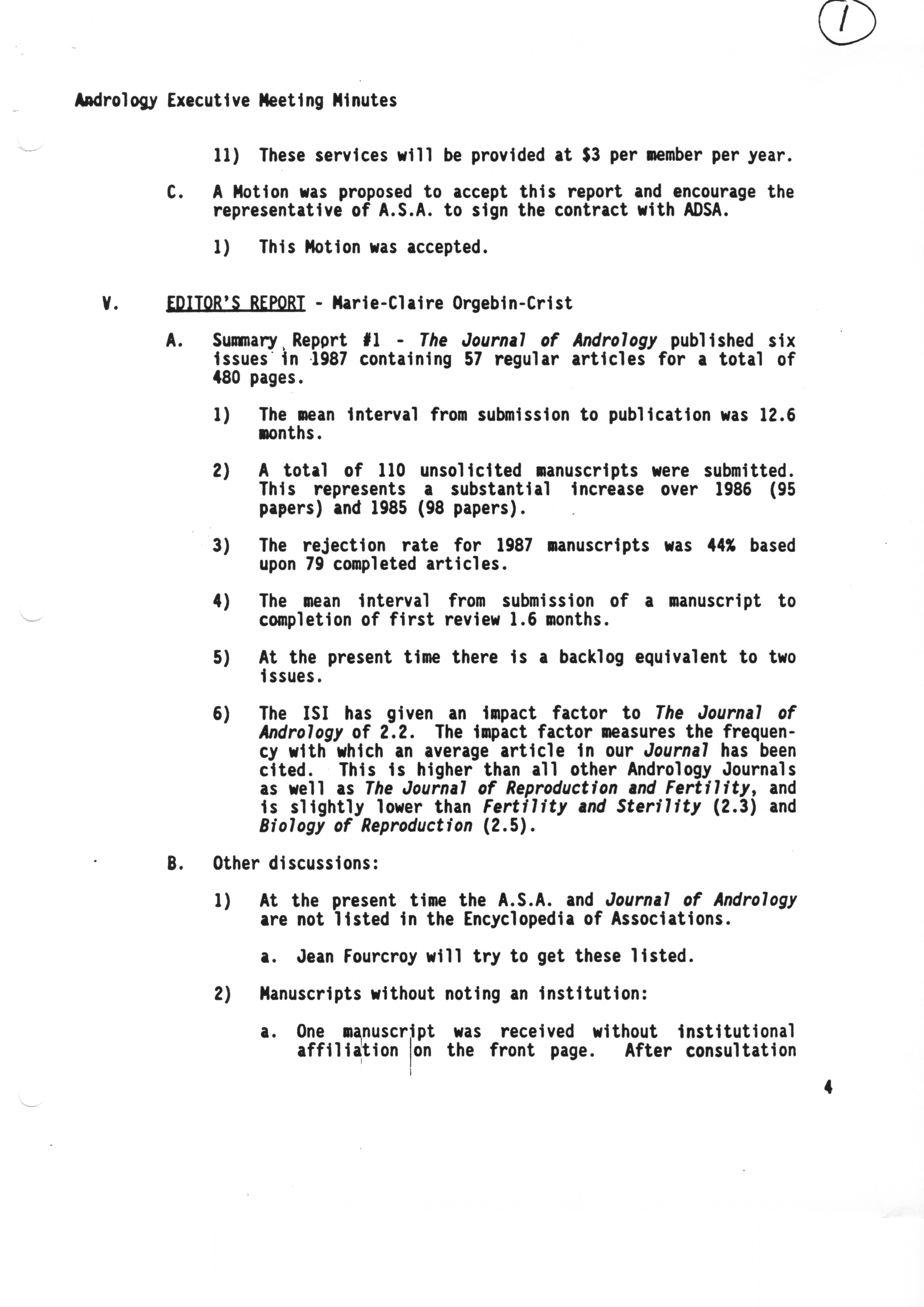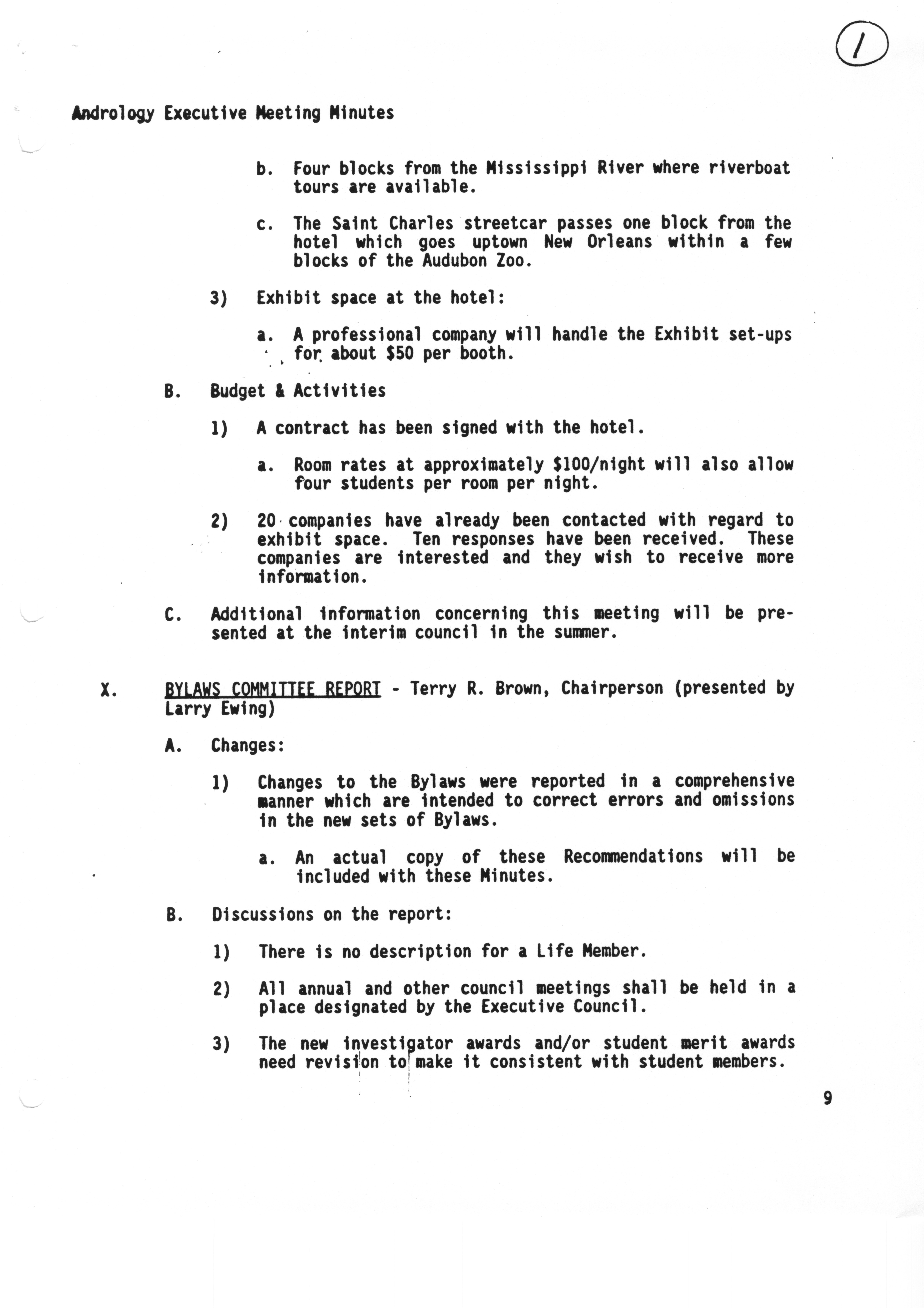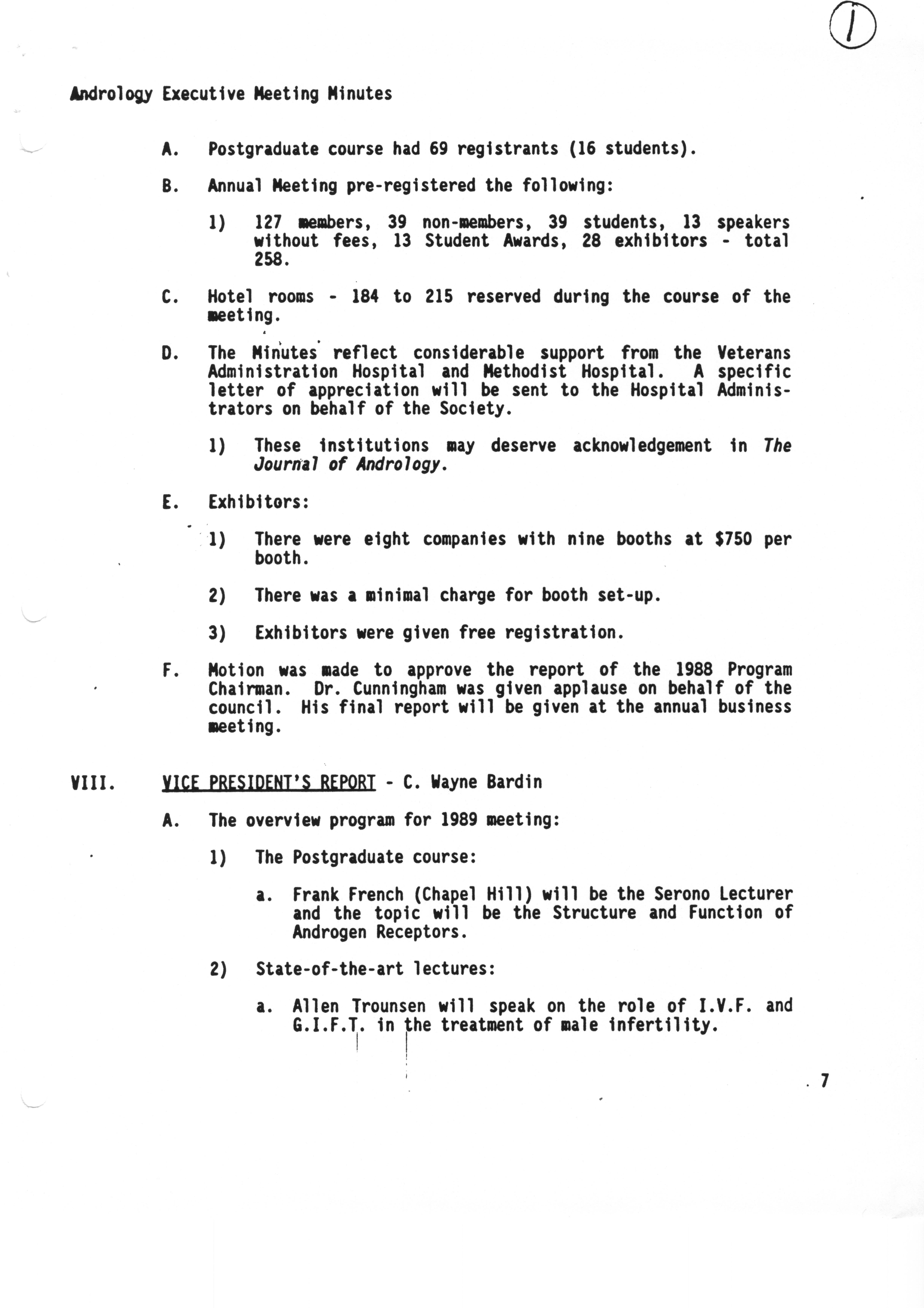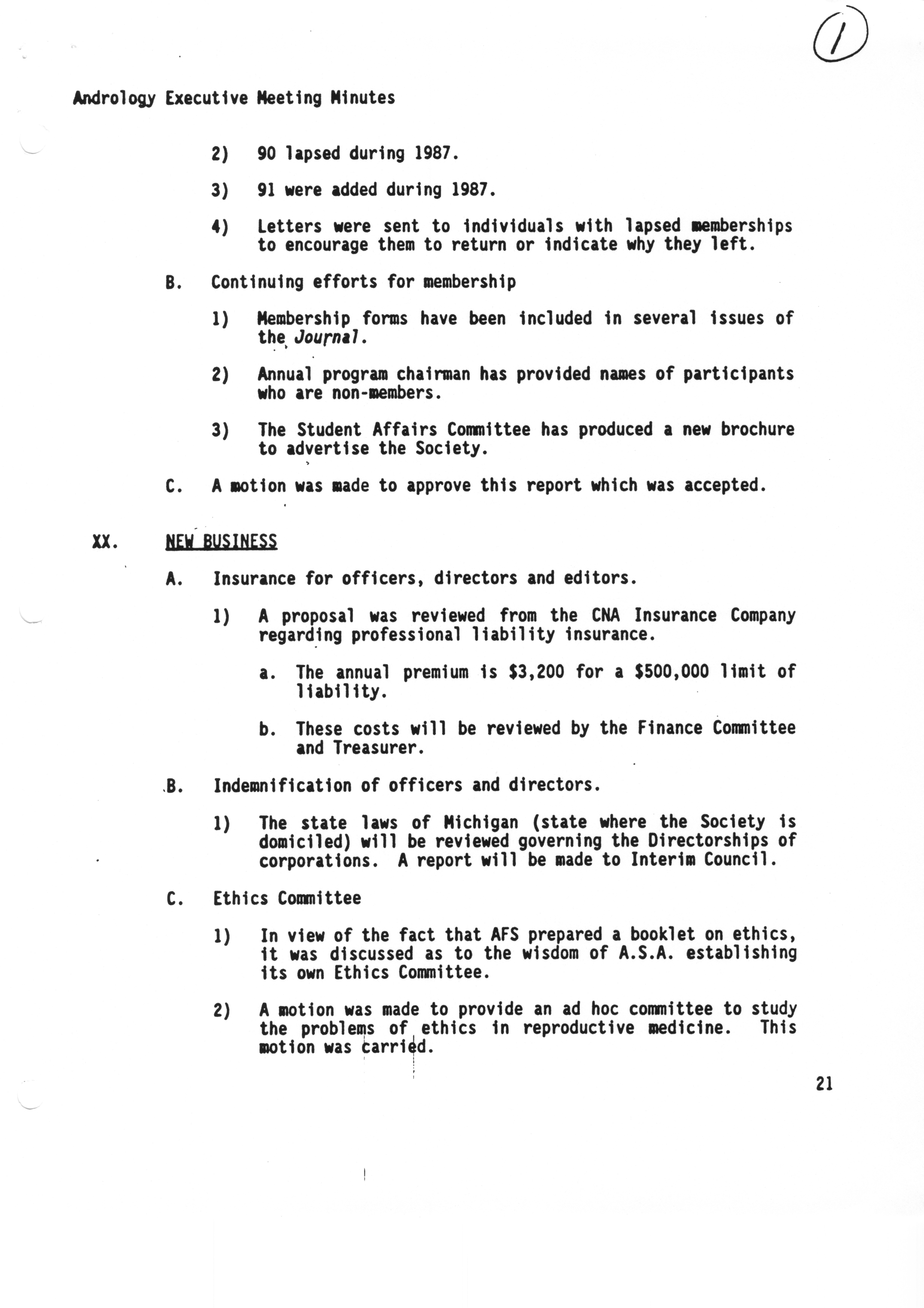 - "Executive Council Meeting of the American Society of Andrology, March 26, 1988", American Society of Andrology Collection, Iowa State University Library Digital Collections