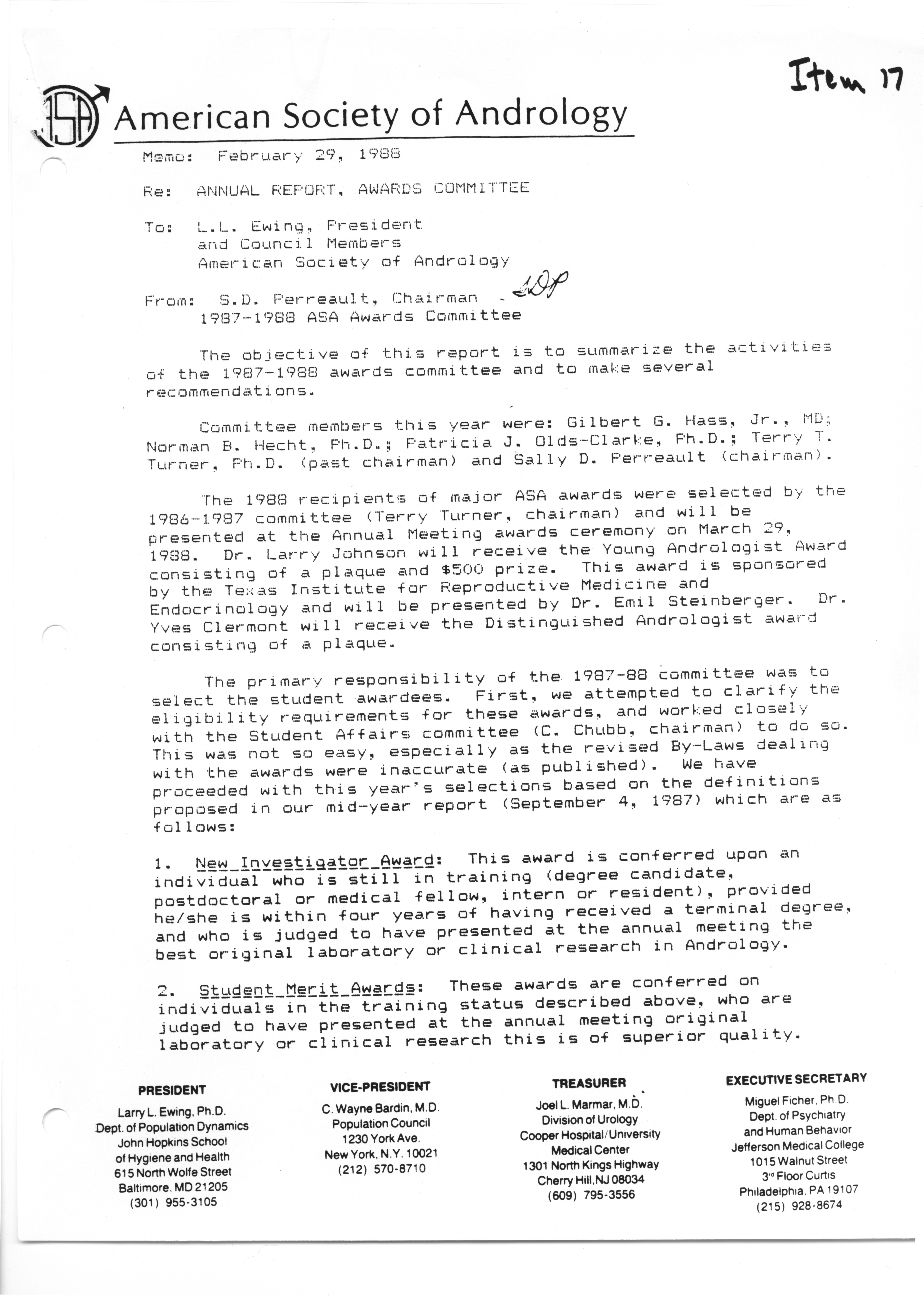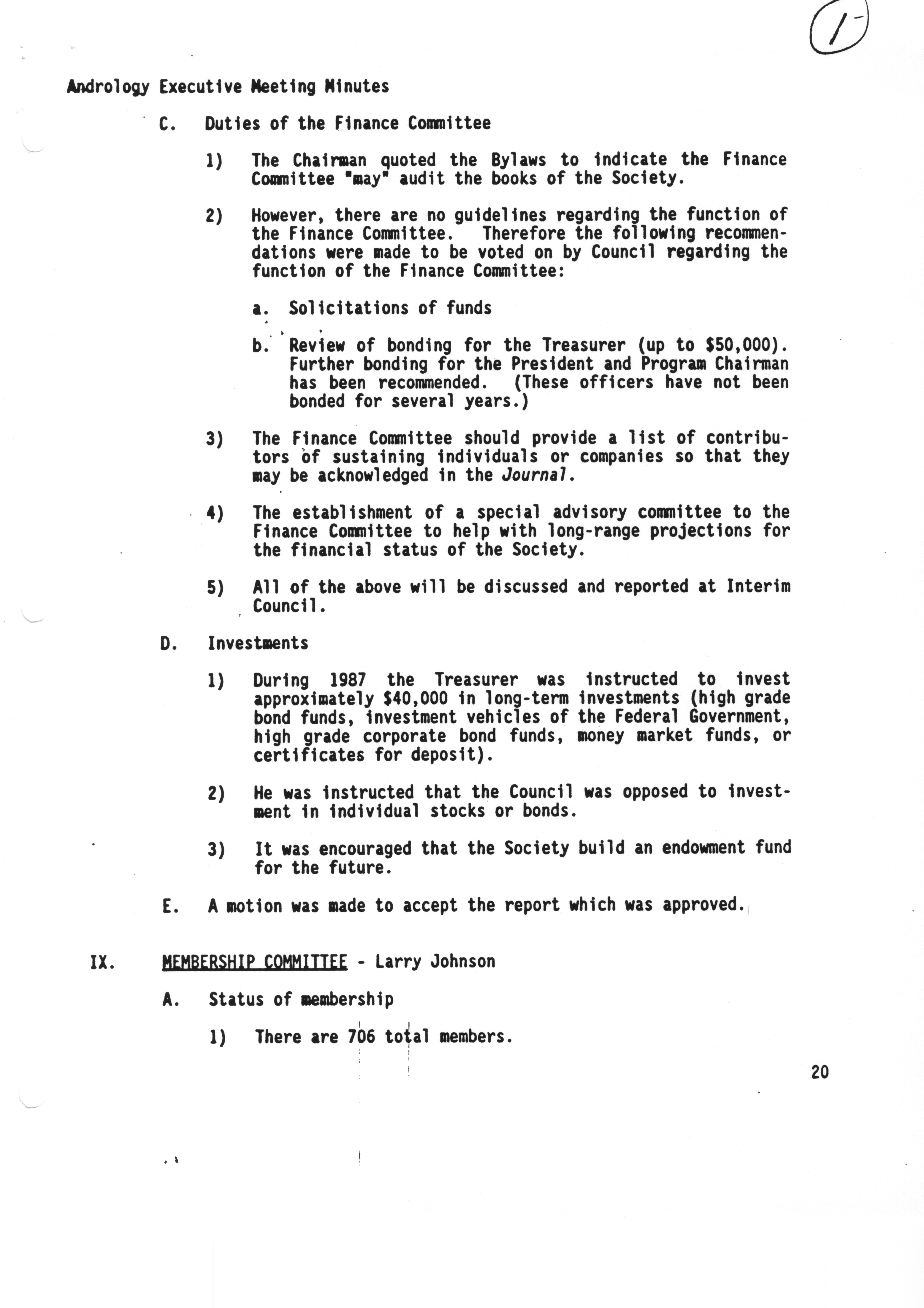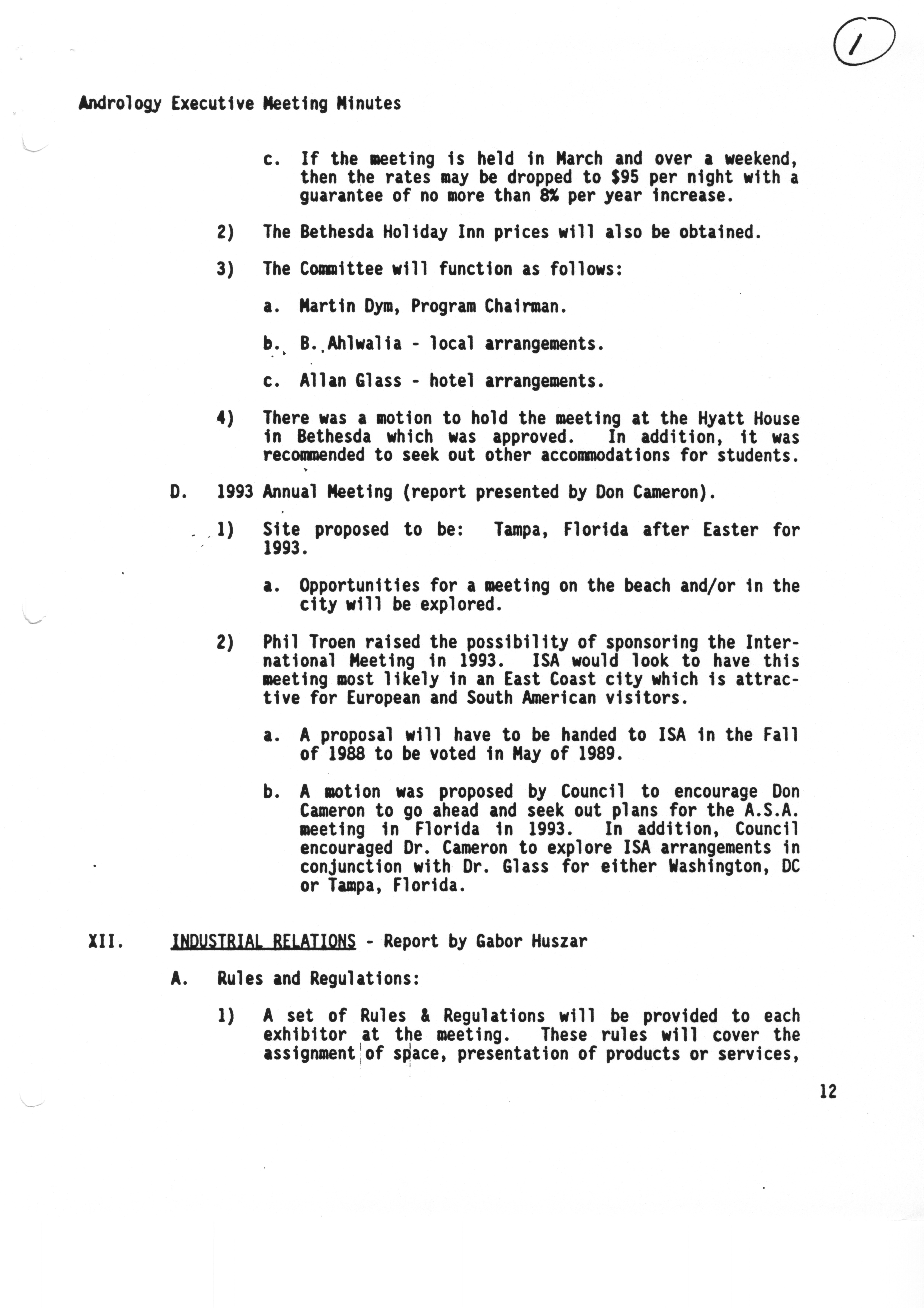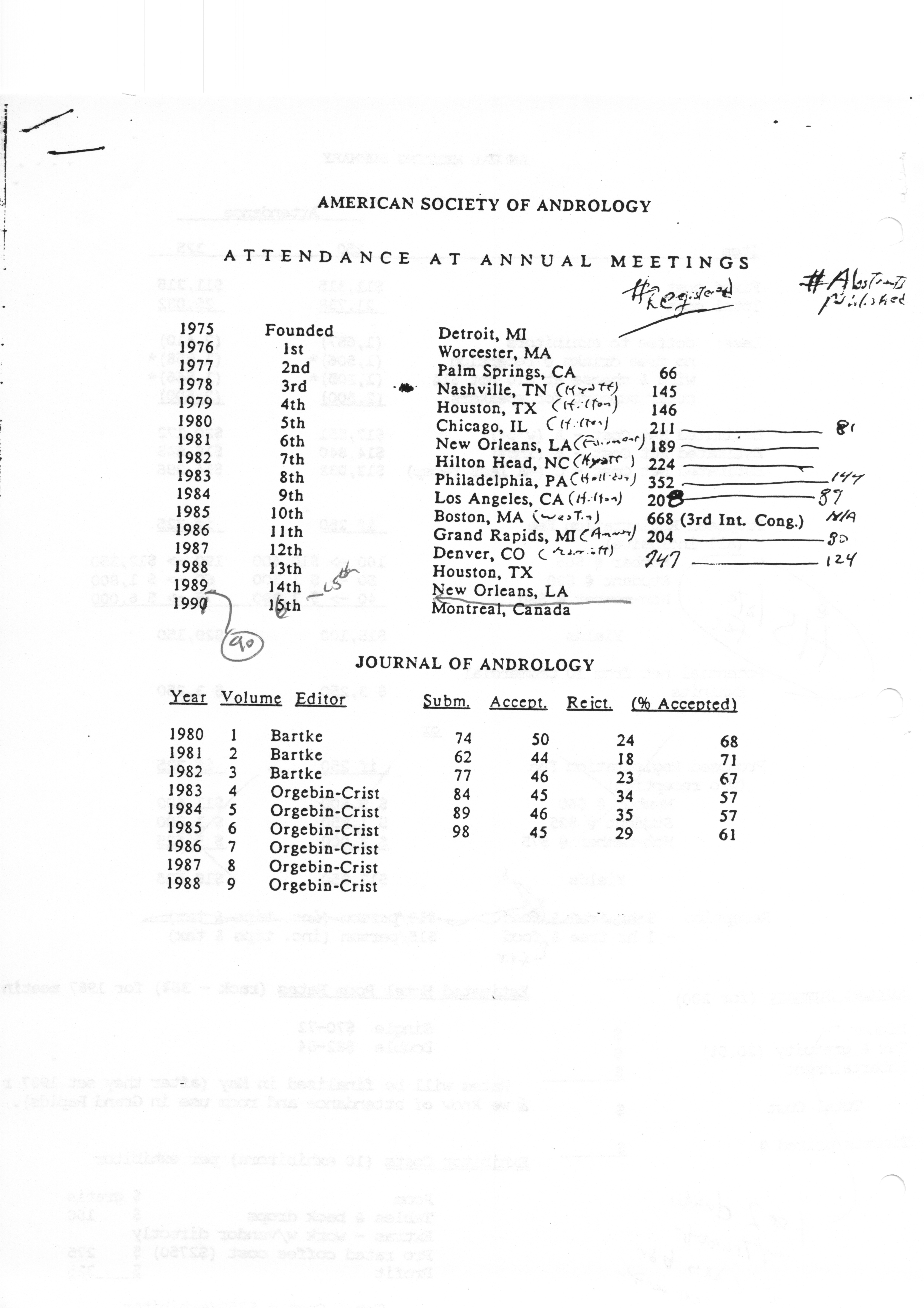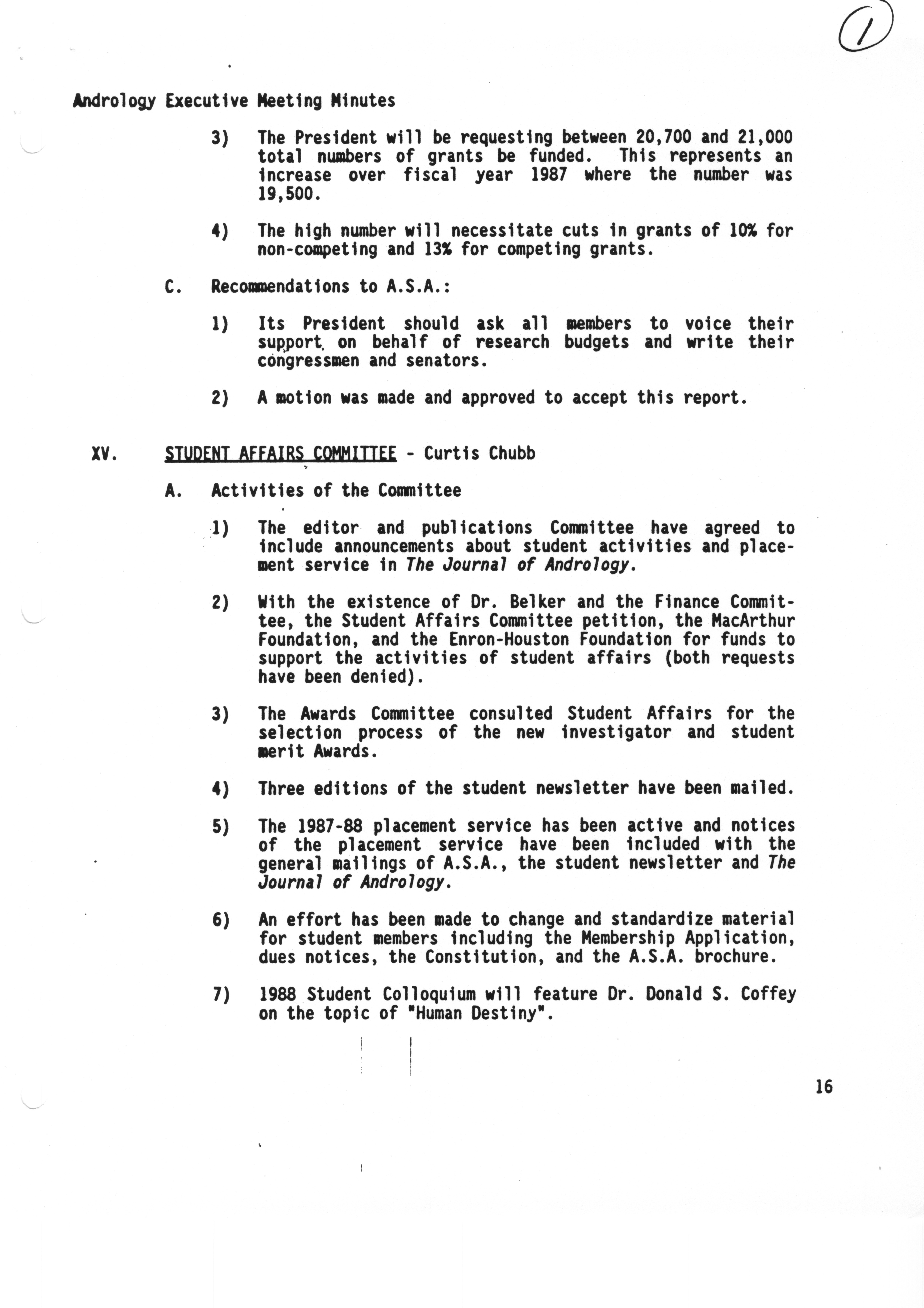 - "Executive Council Meeting of the American Society of Andrology, March 26, 1988", American Society of Andrology Collection, Iowa State University Library Digital Collections