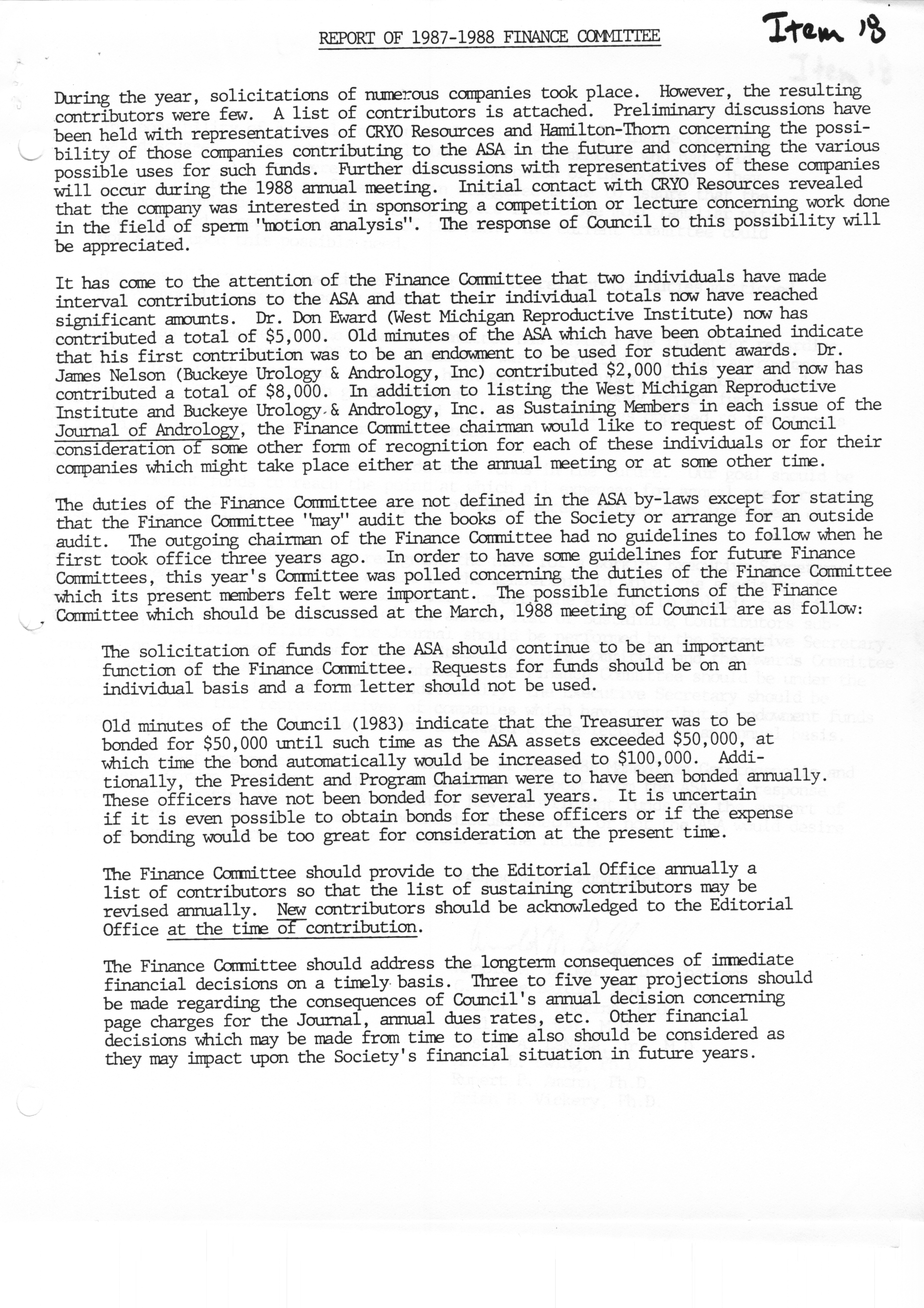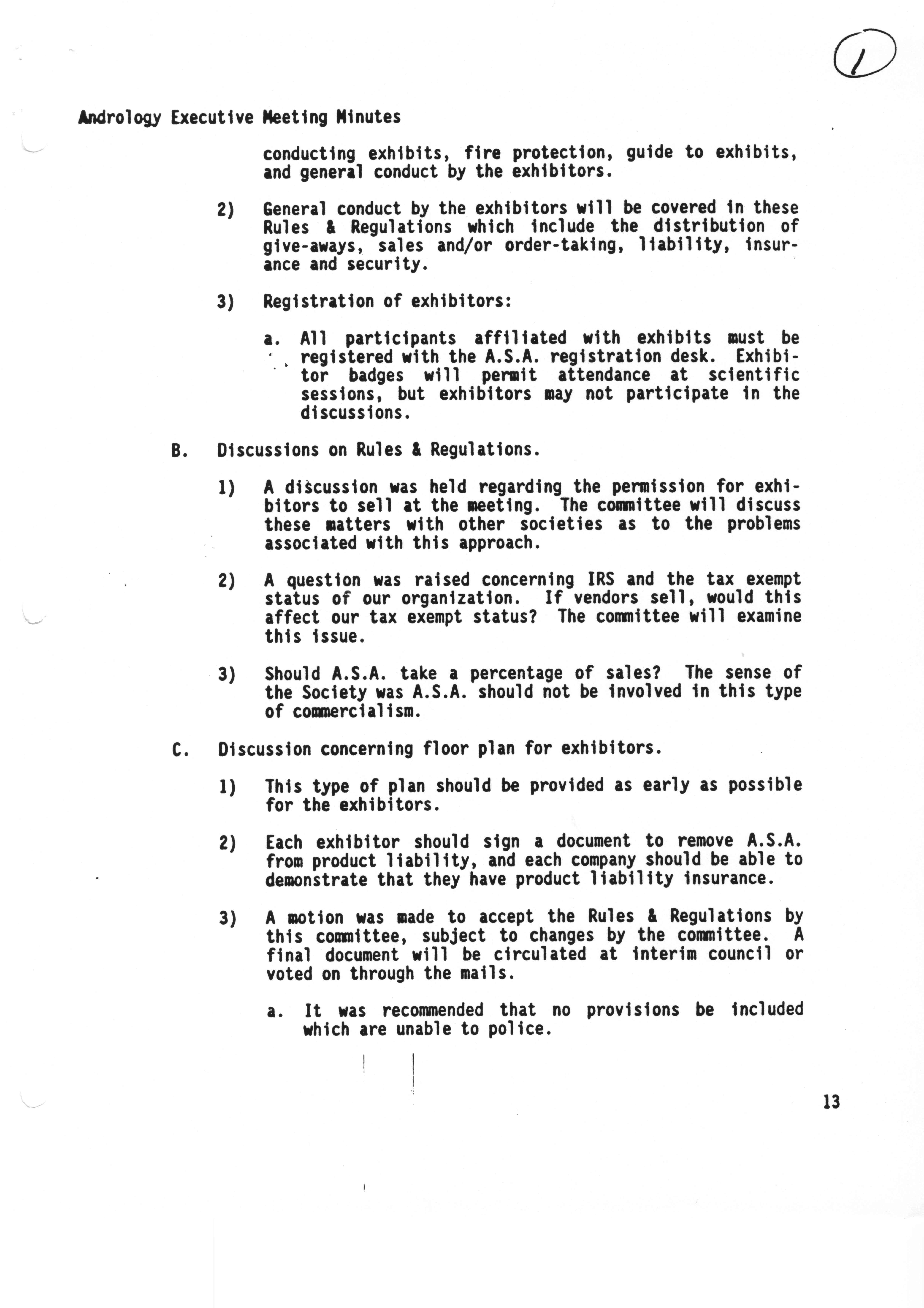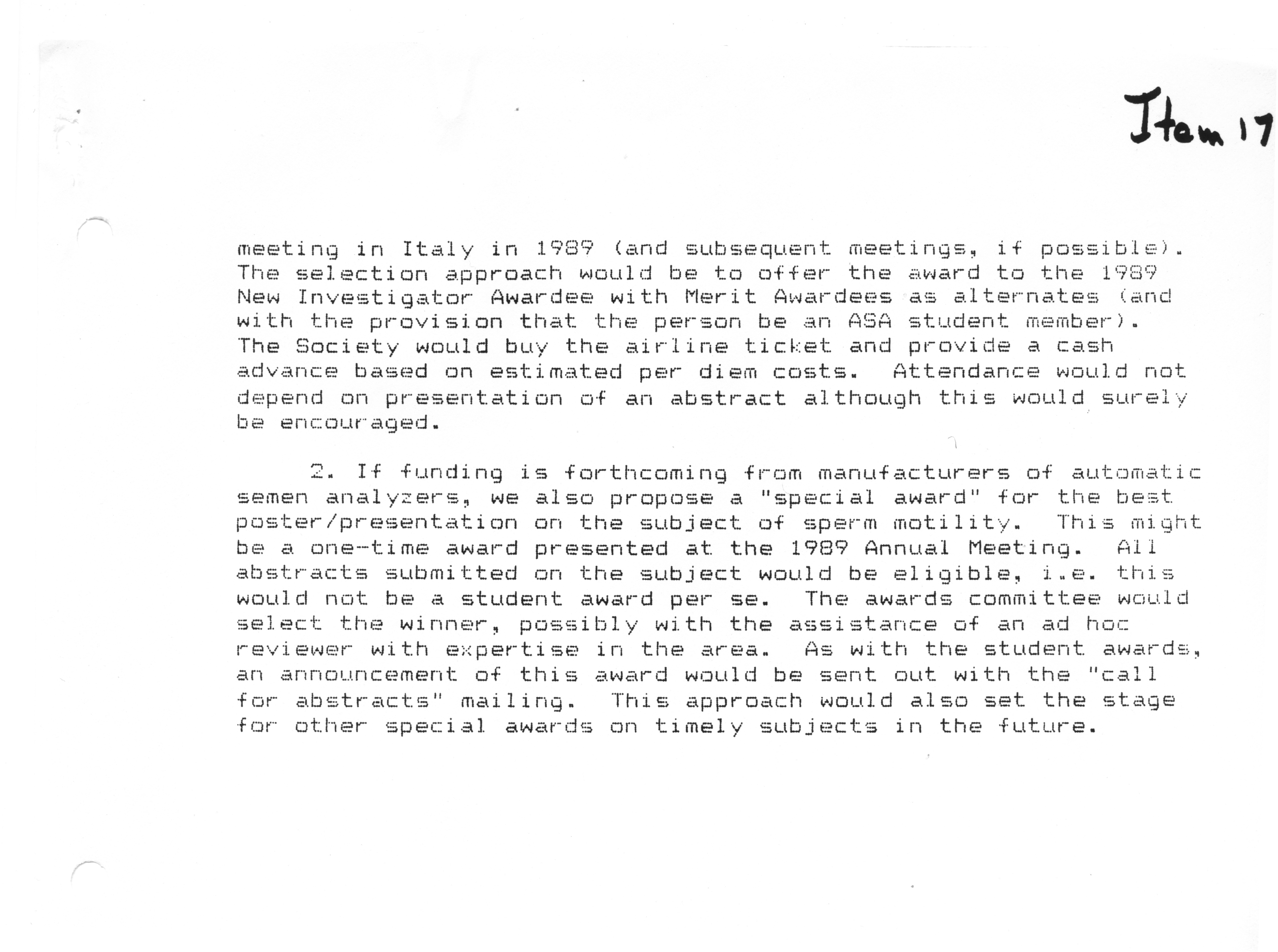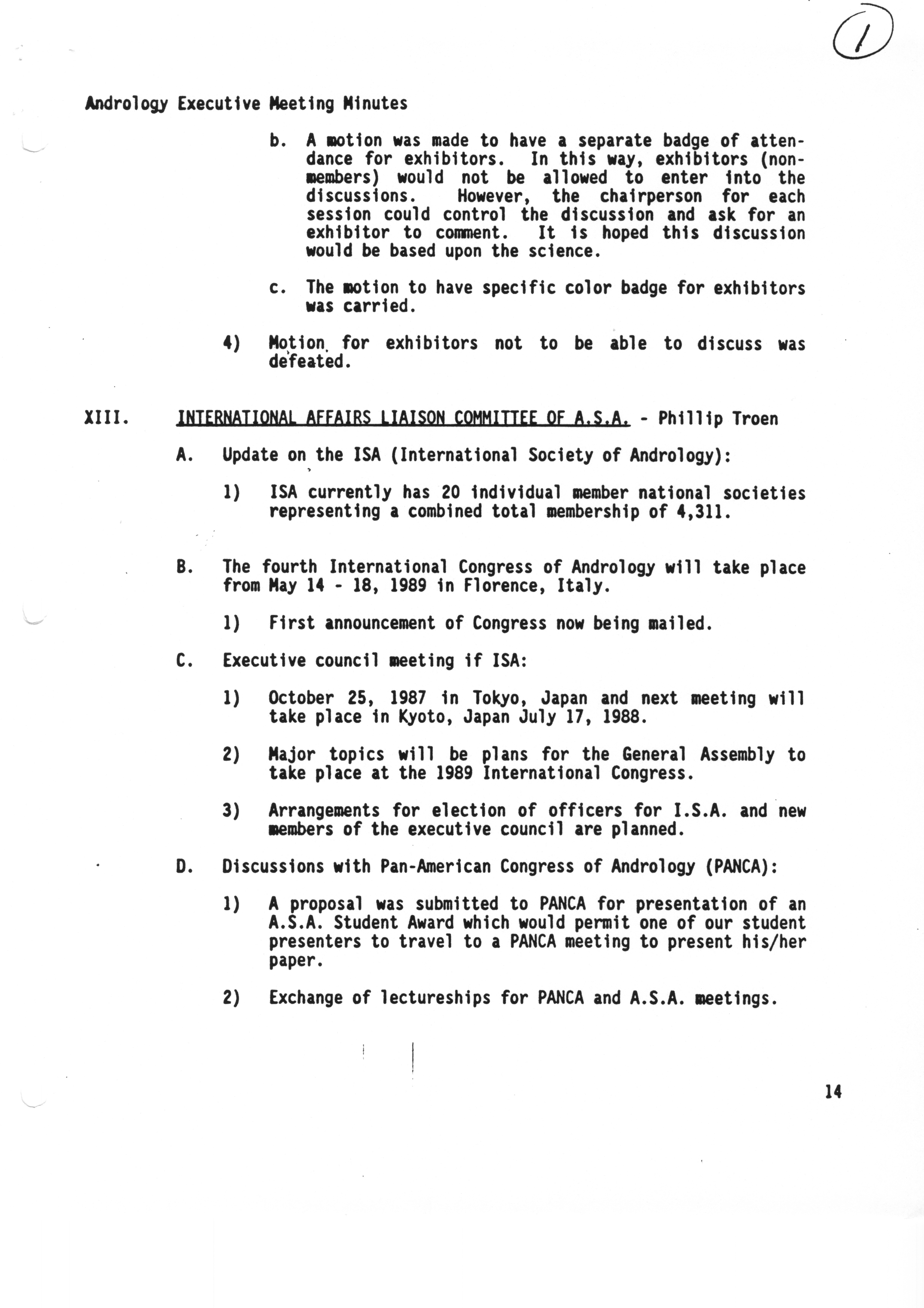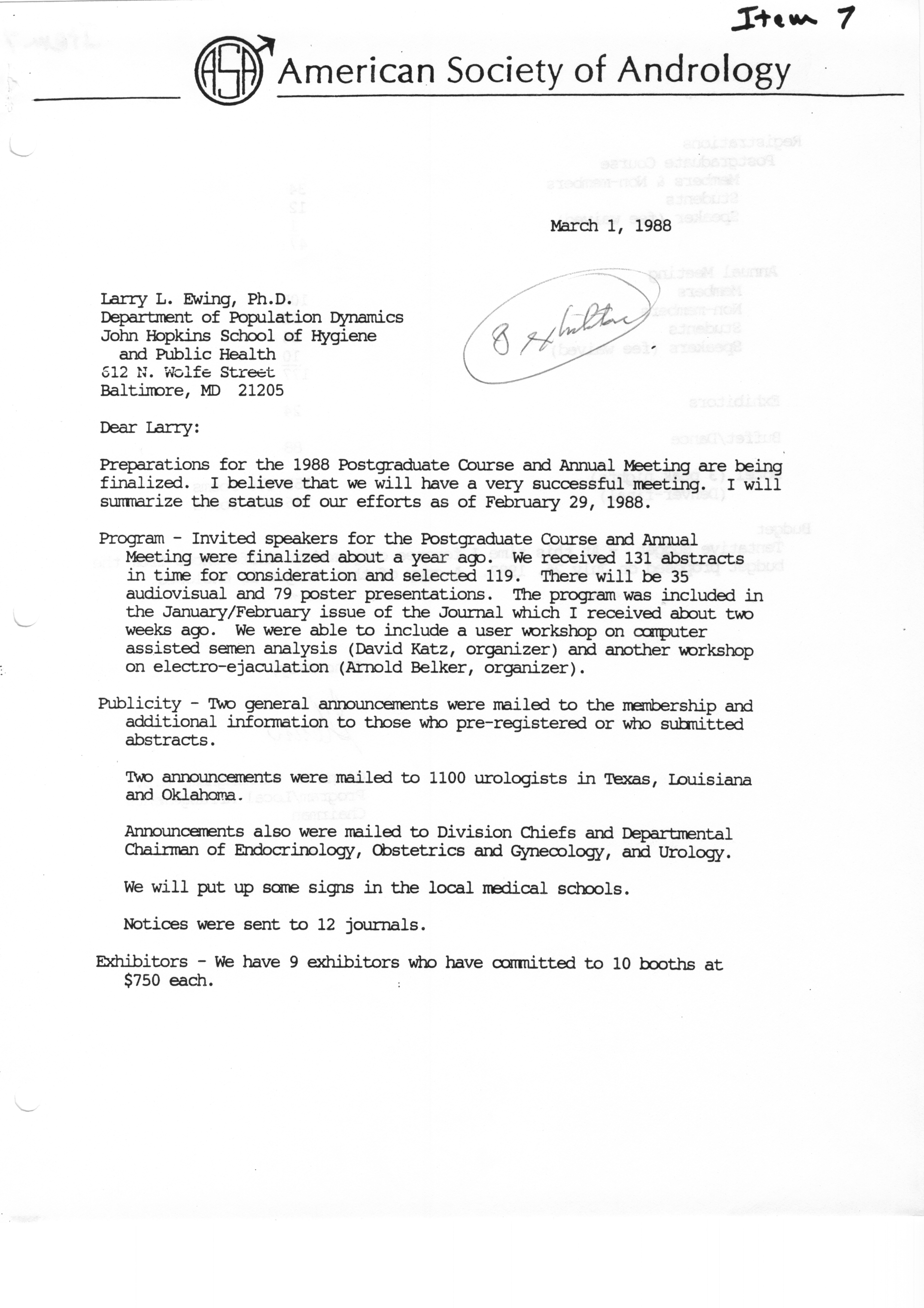 - "Executive Council Meeting of the American Society of Andrology, March 26, 1988", American Society of Andrology Collection, Iowa State University Library Digital Collections