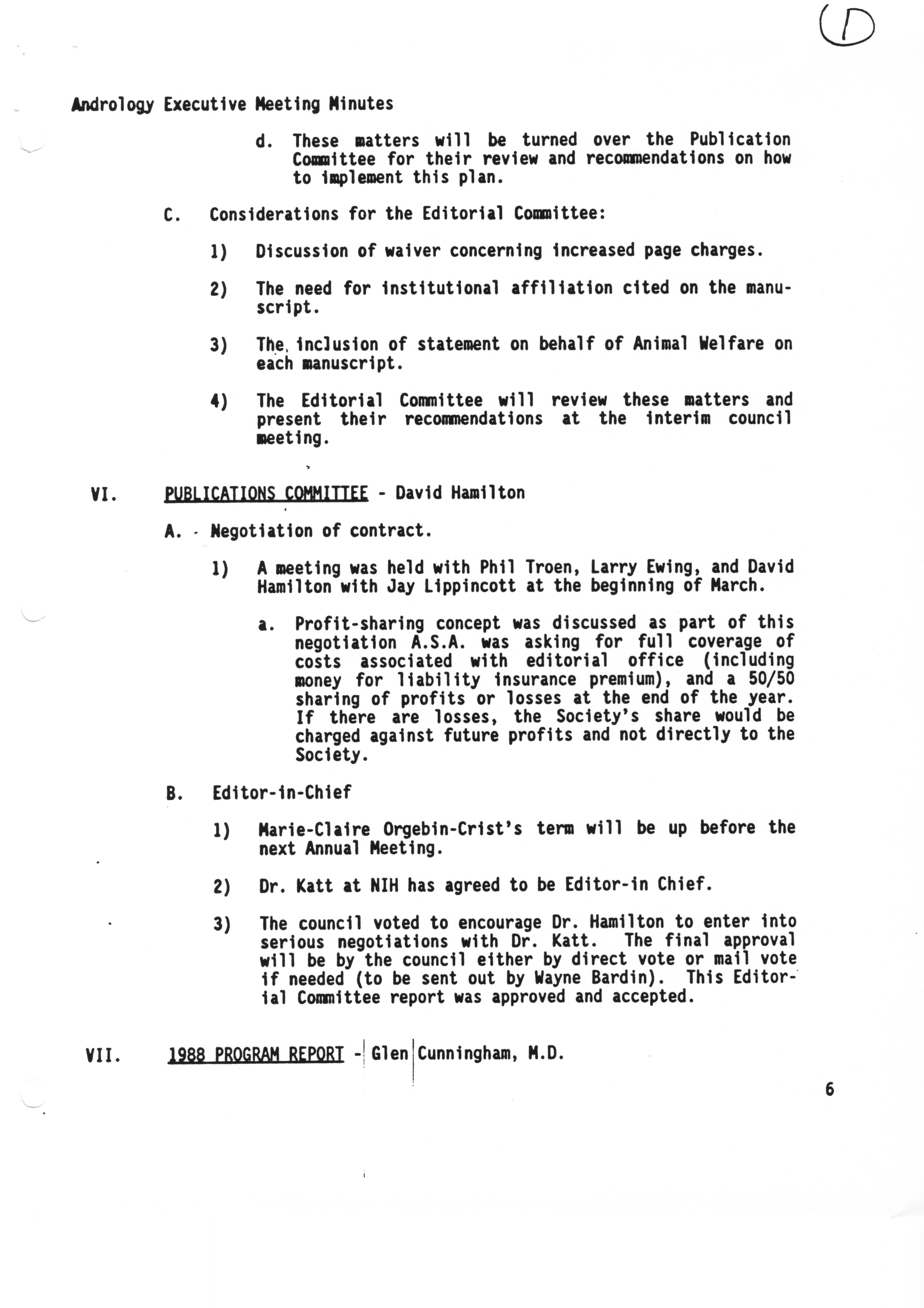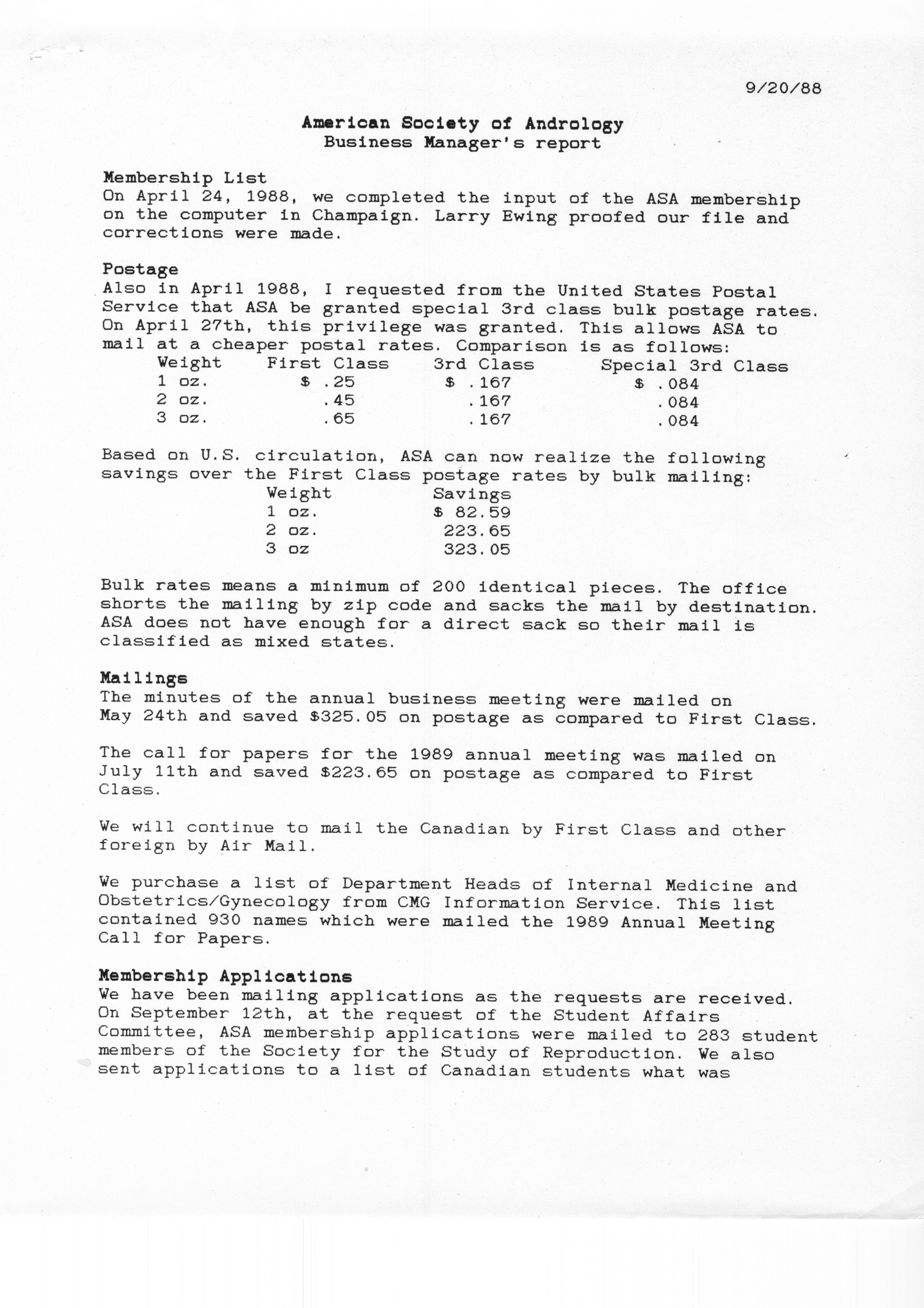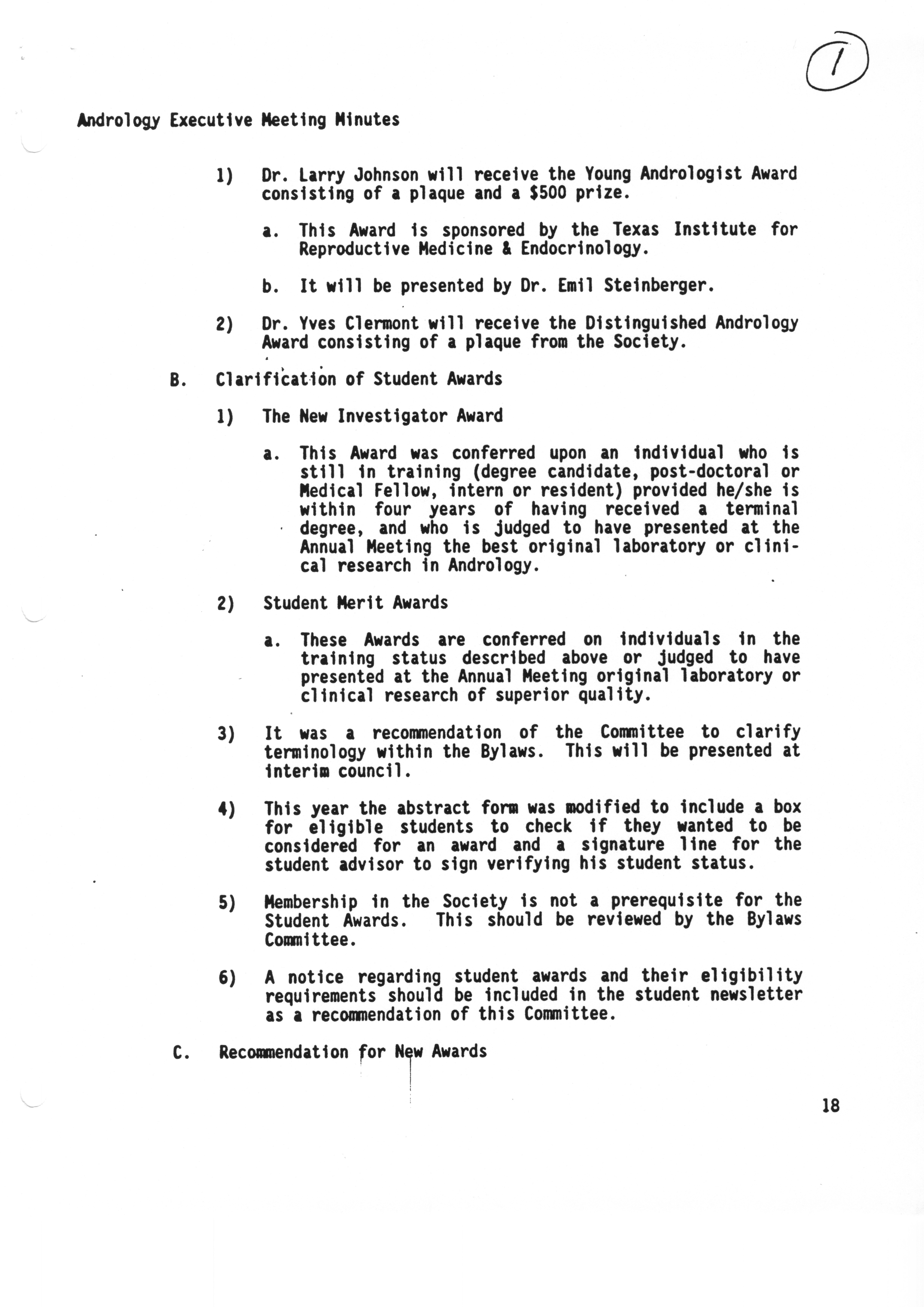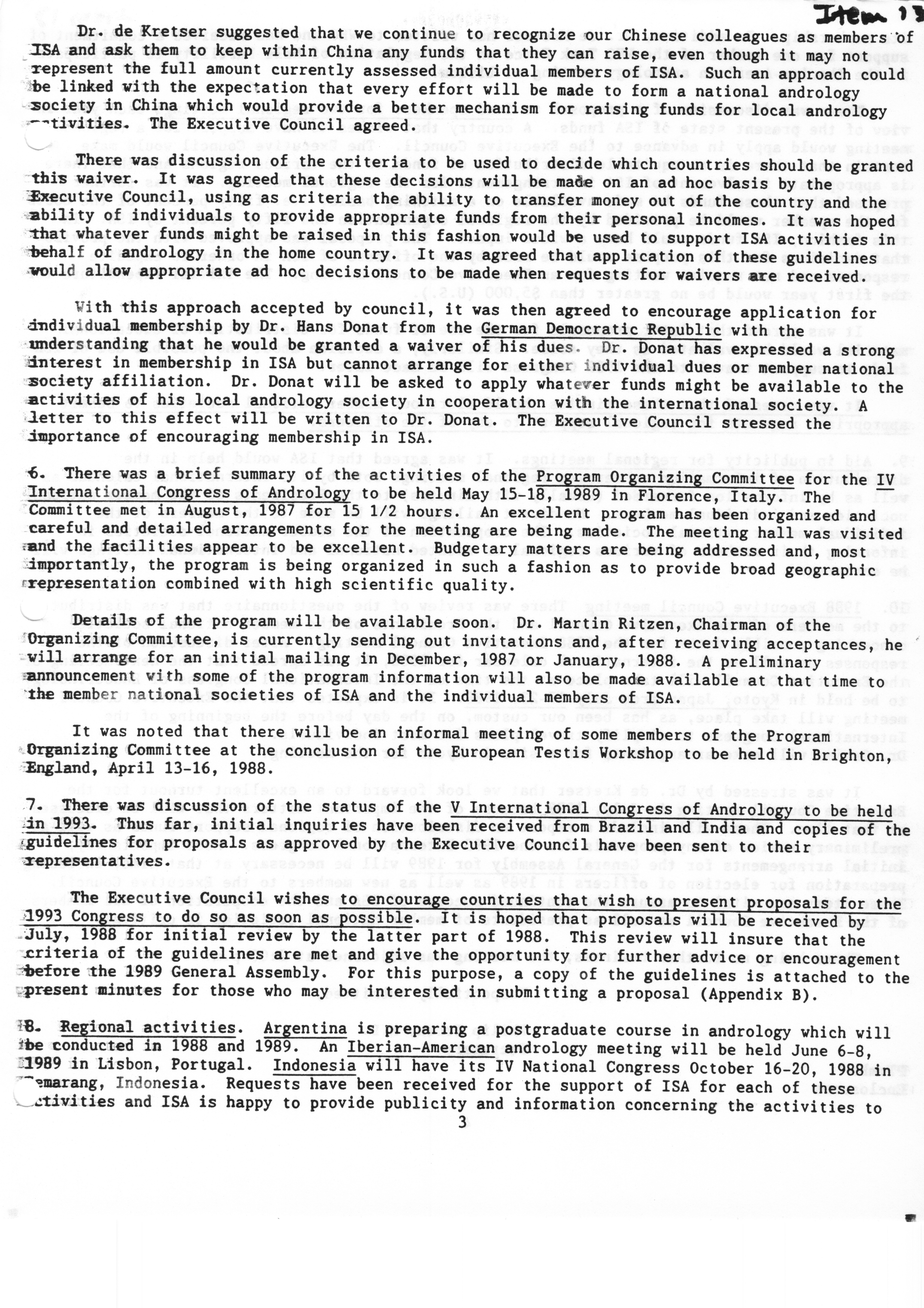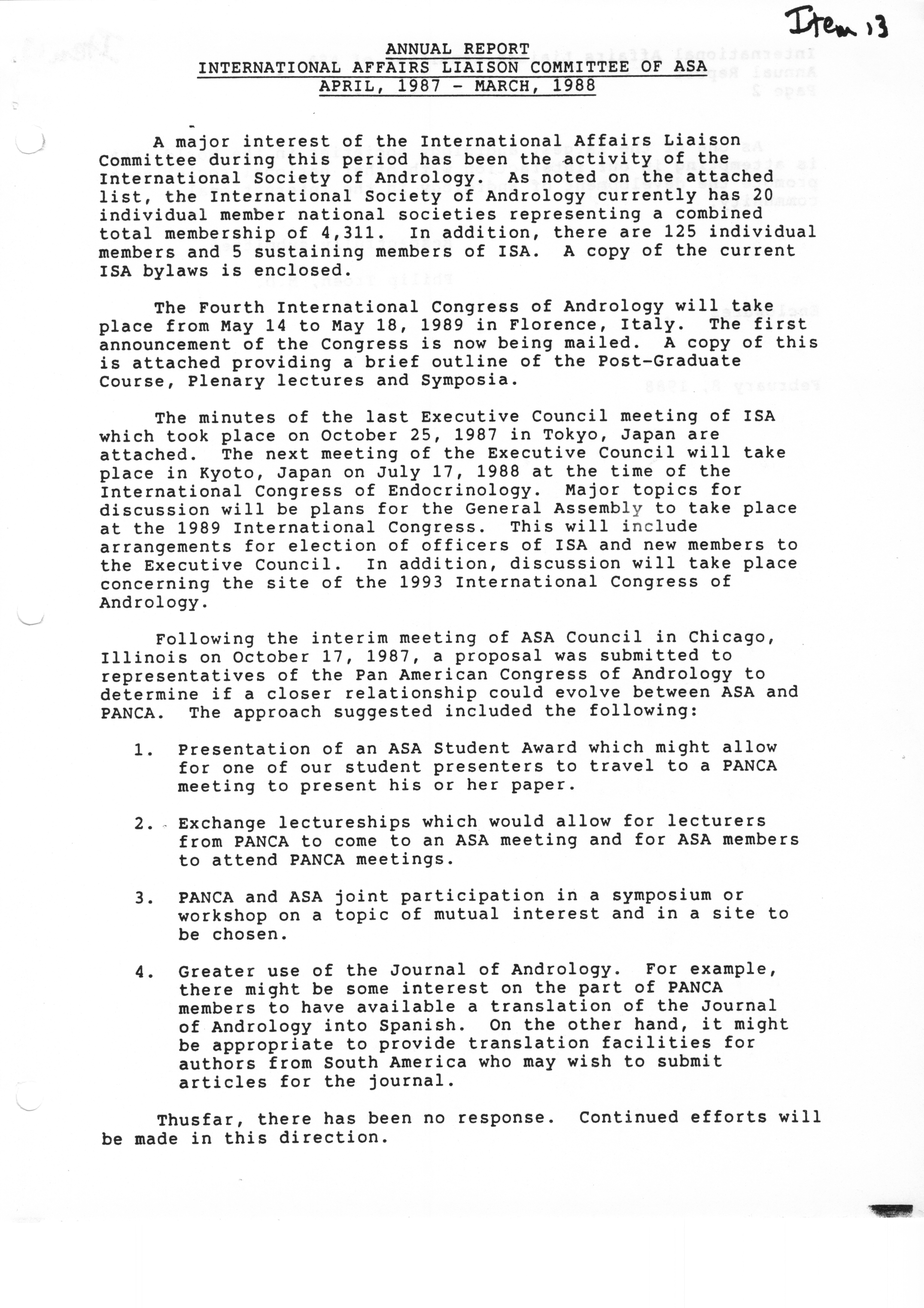 - "Executive Council Meeting of the American Society of Andrology, March 26, 1988", American Society of Andrology Collection, Iowa State University Library Digital Collections