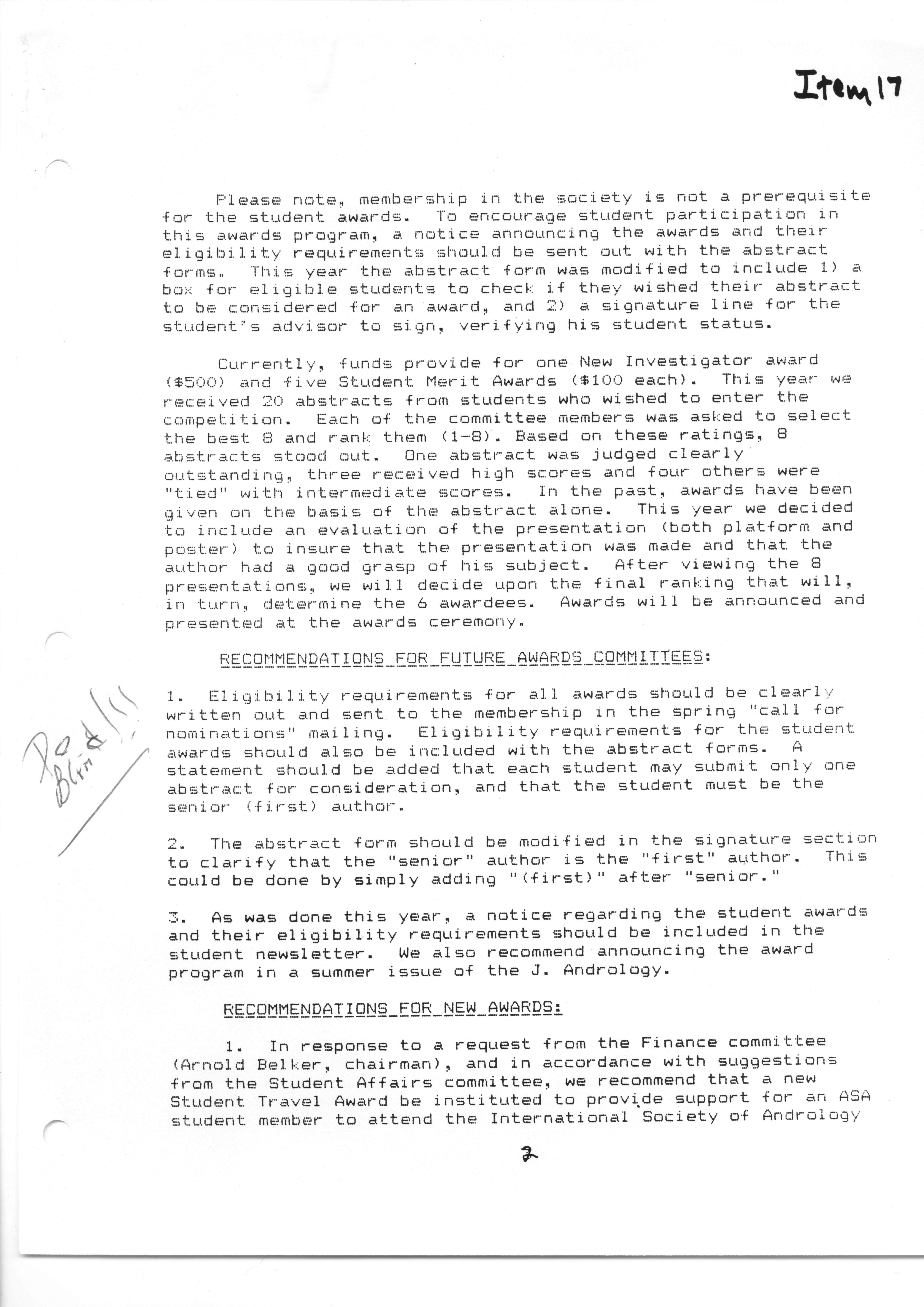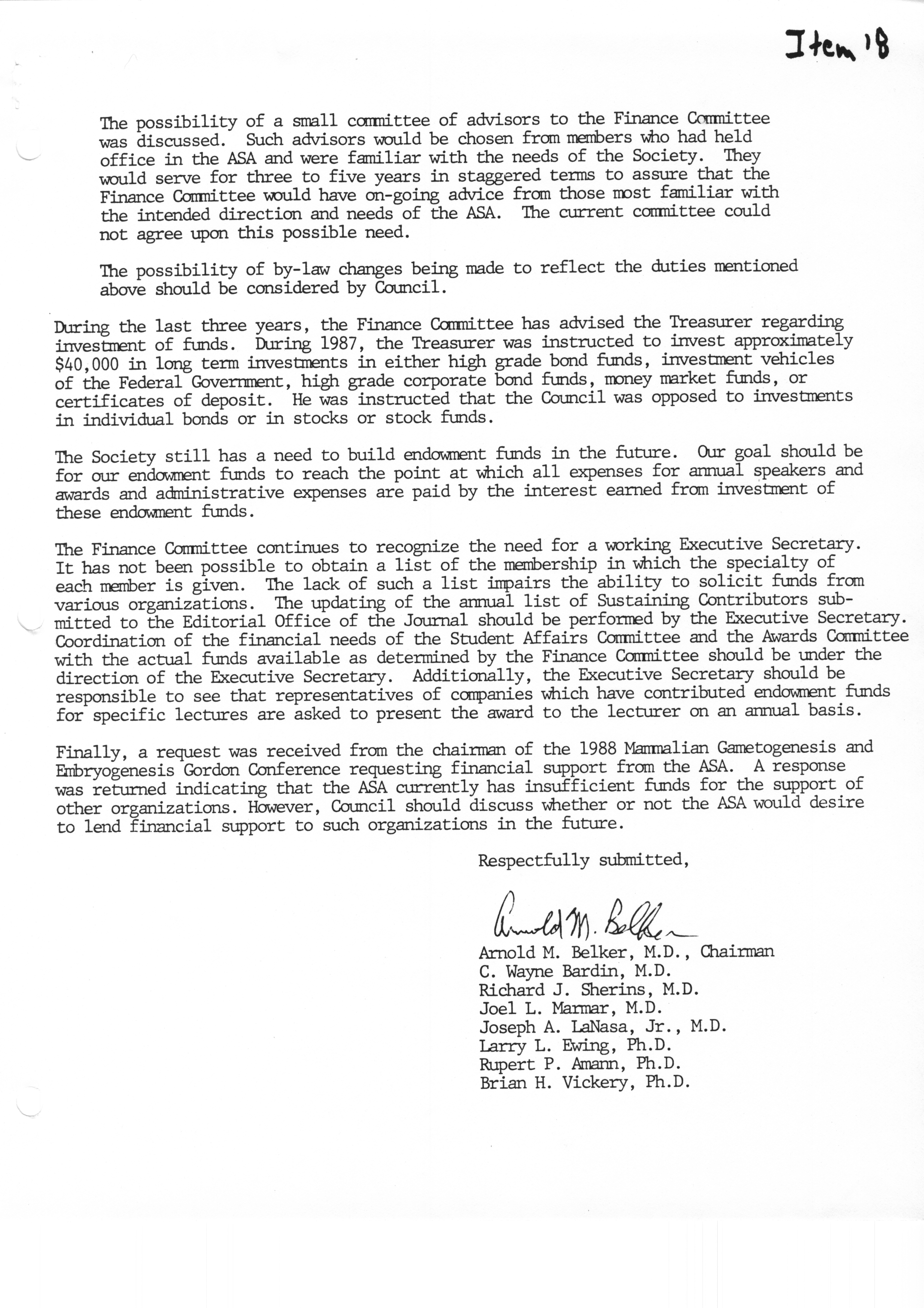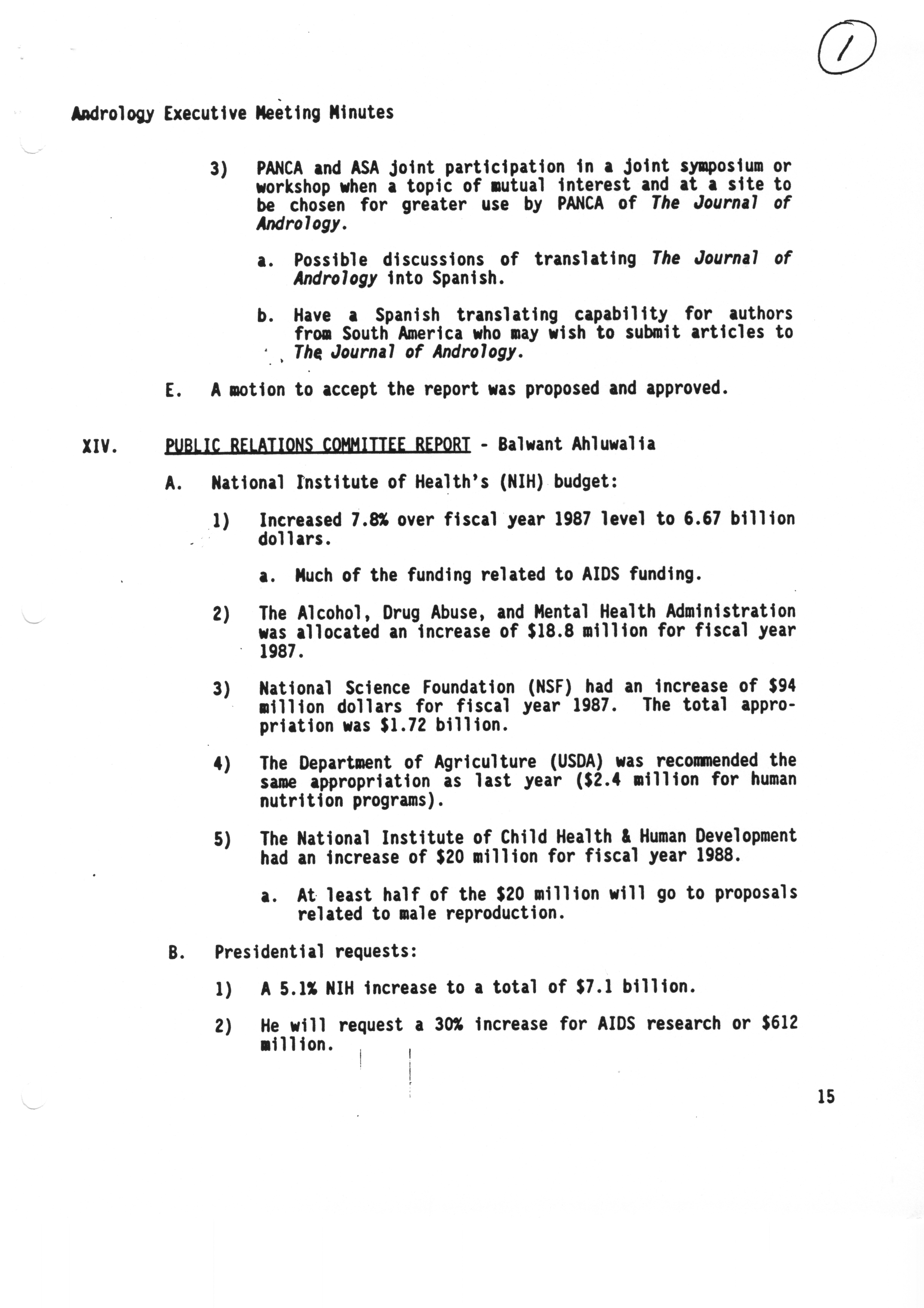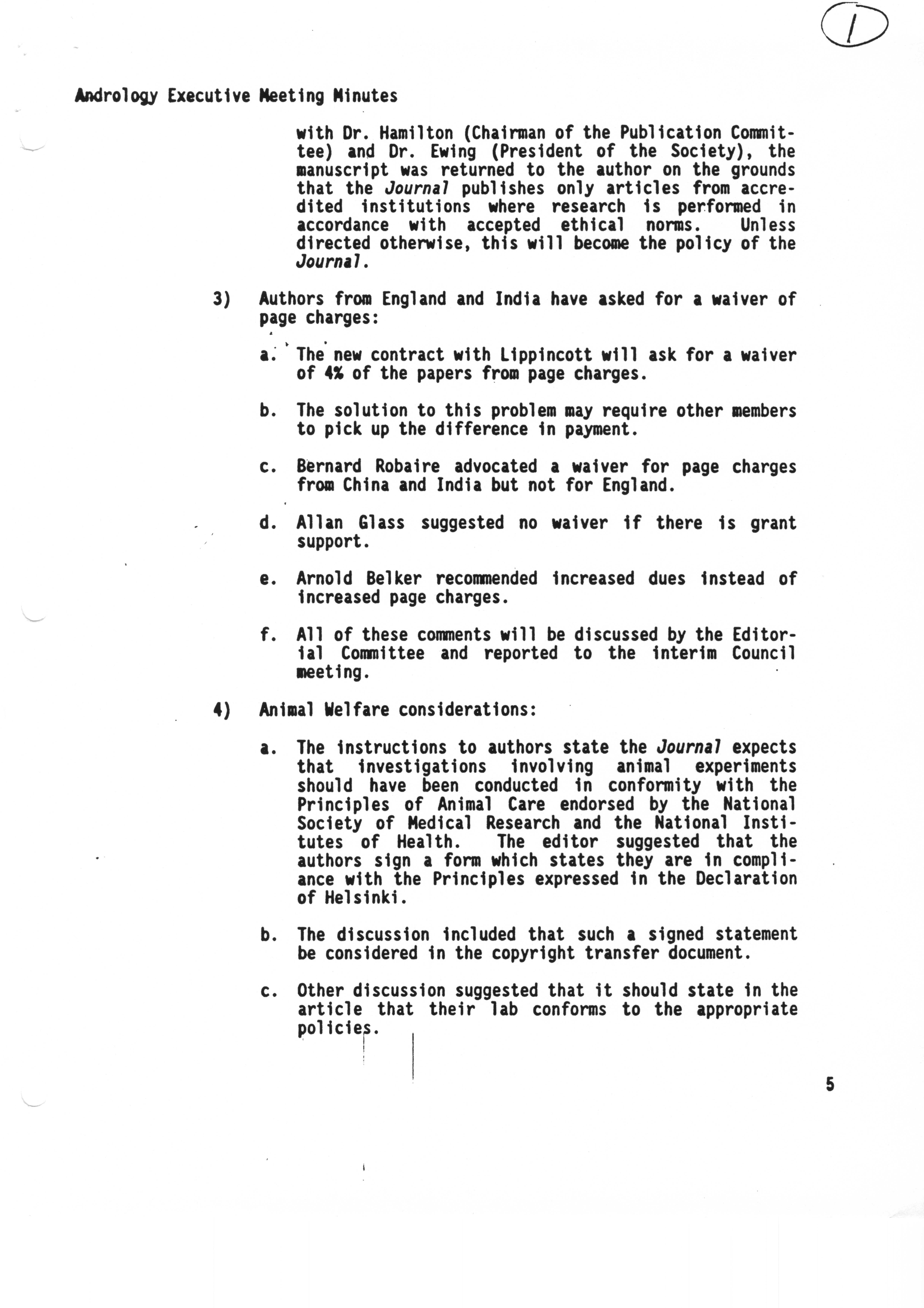 - "Executive Council Meeting of the American Society of Andrology, March 26, 1988", American Society of Andrology Collection, Iowa State University Library Digital Collections