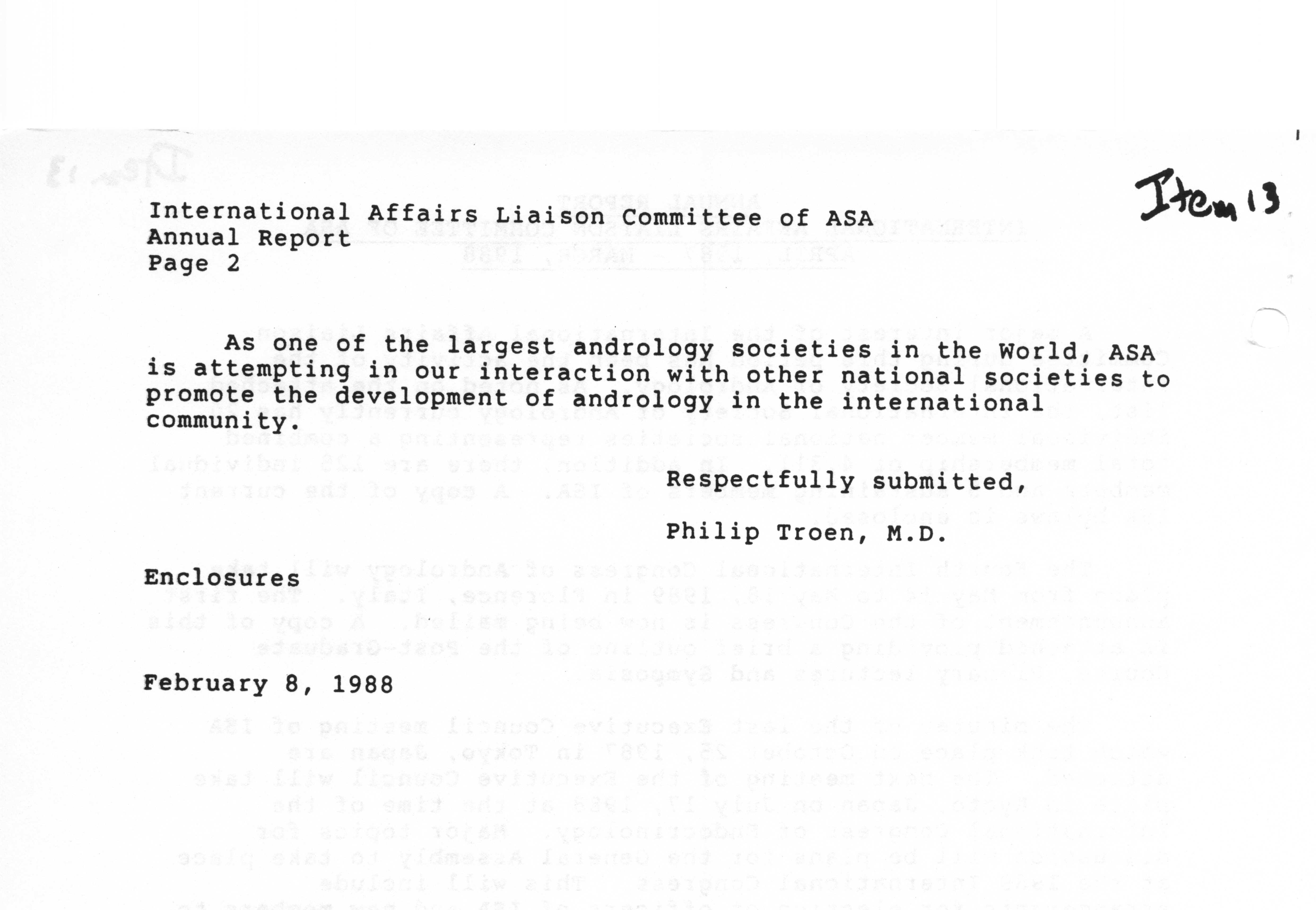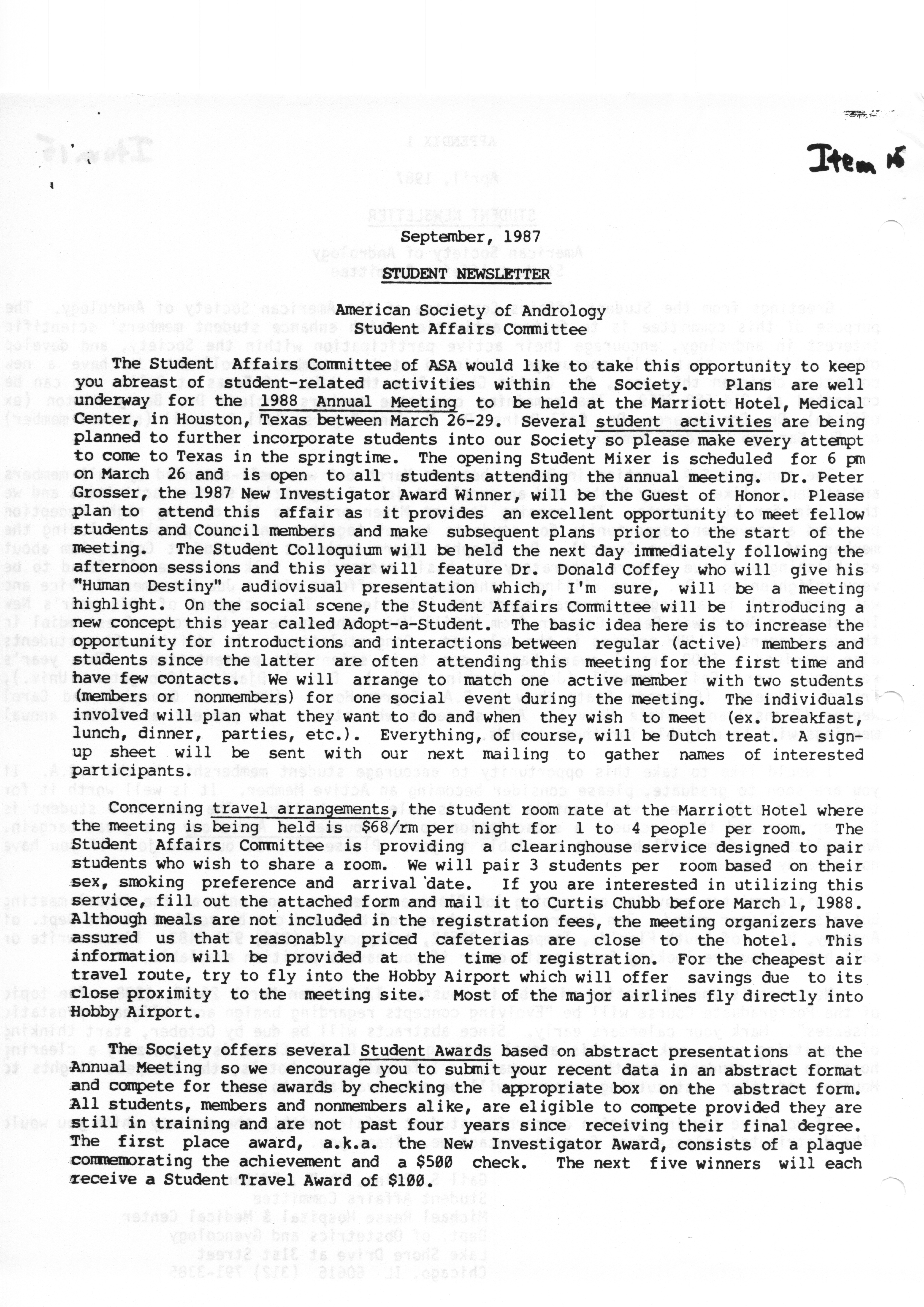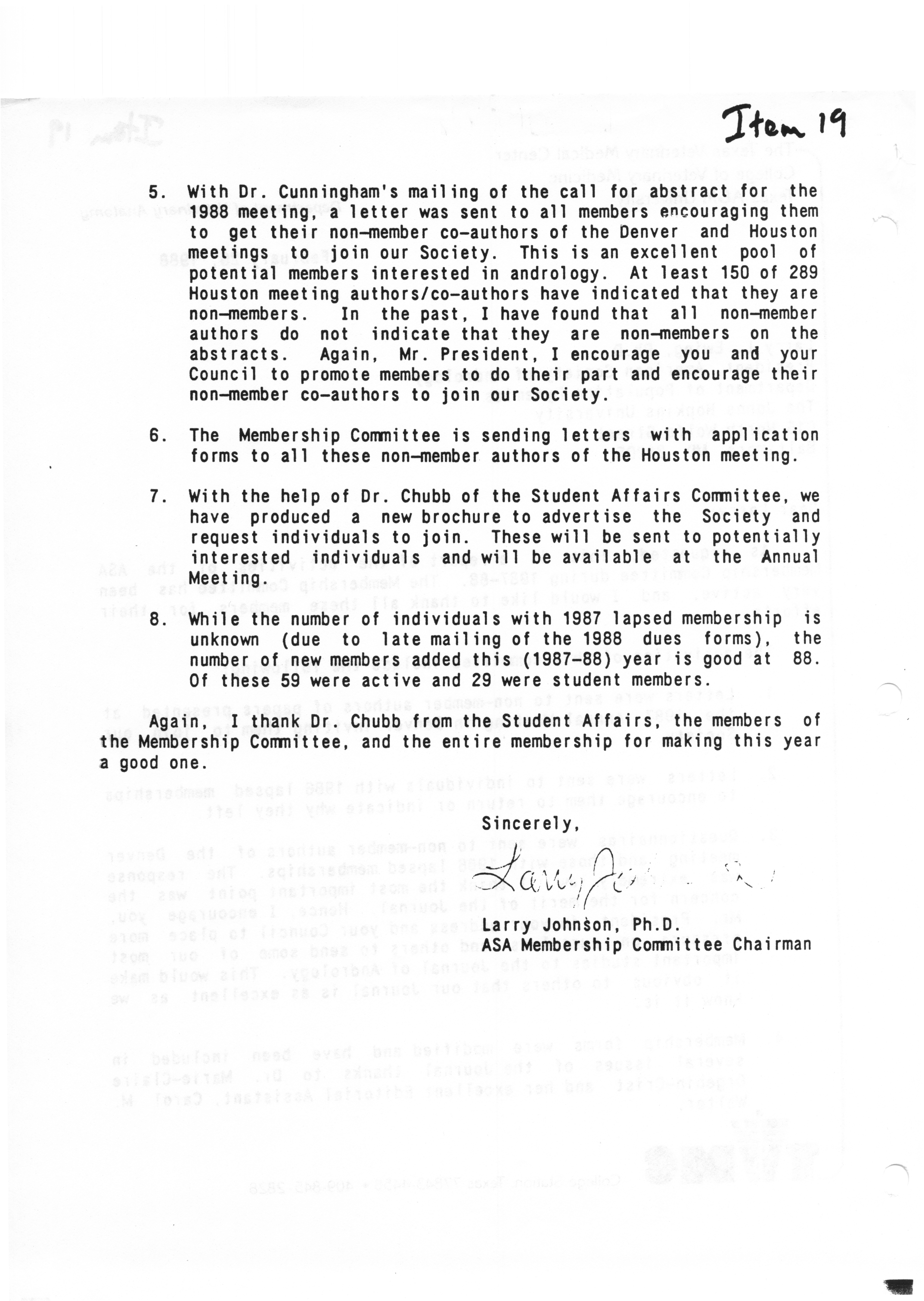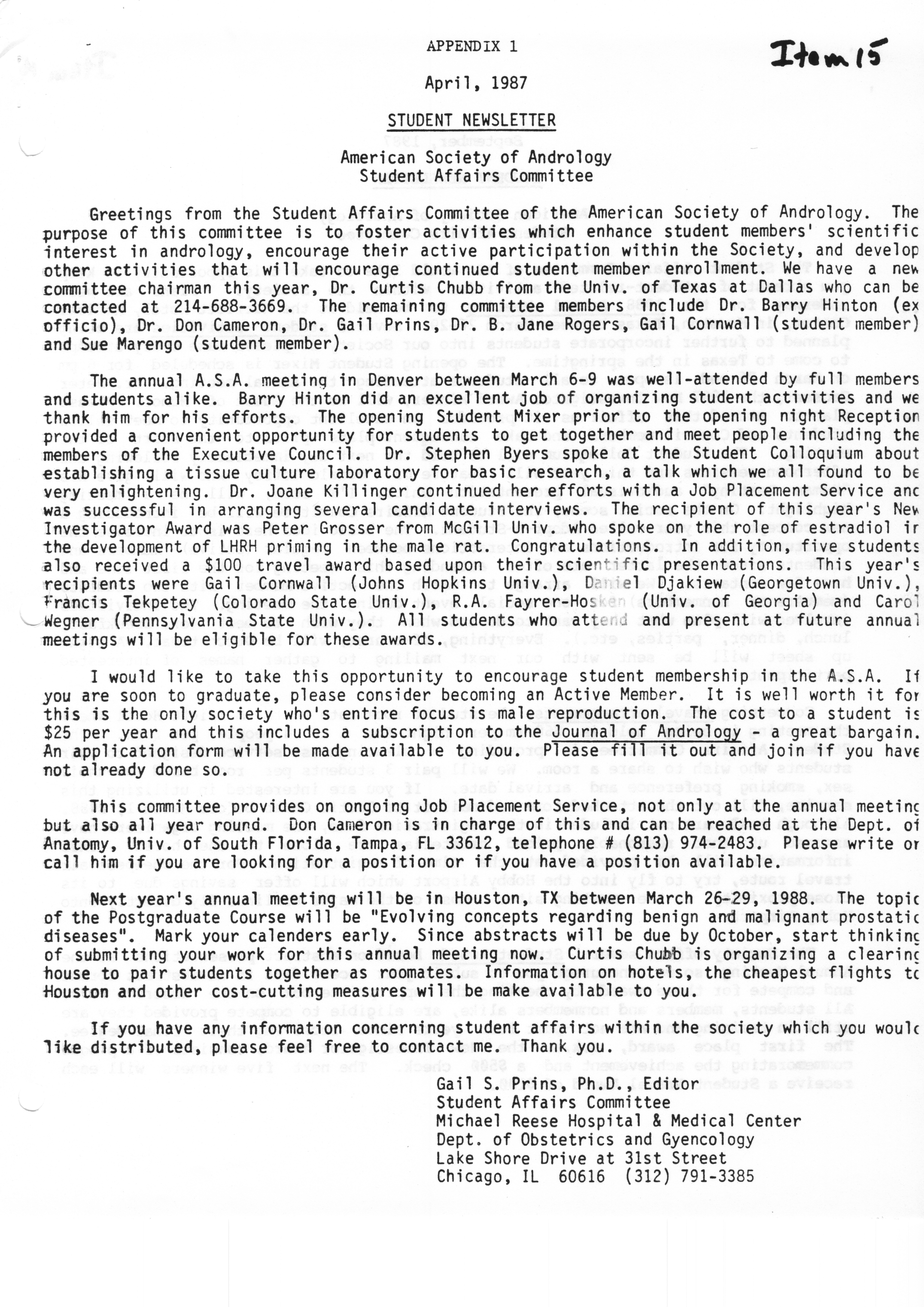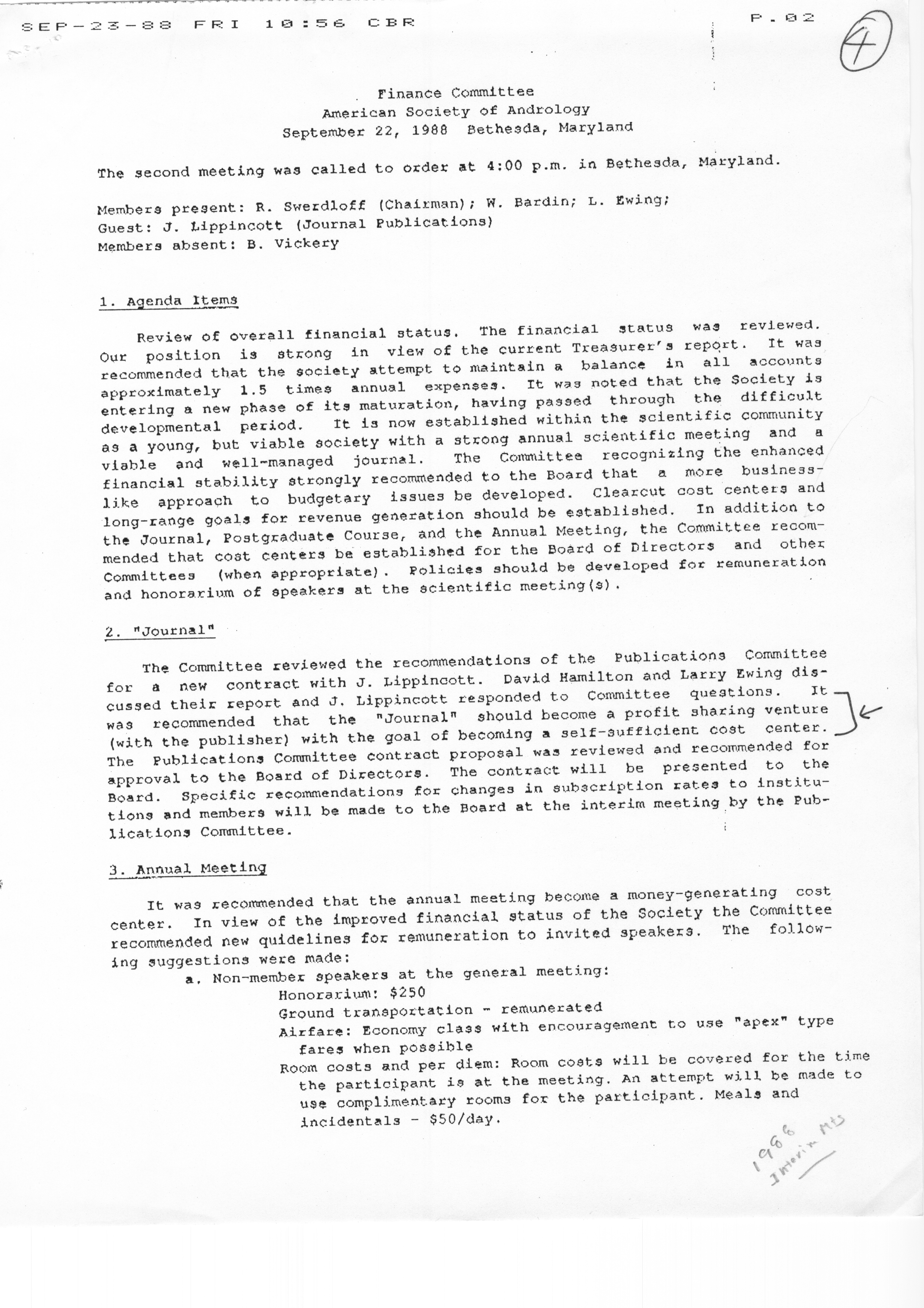 - "Executive Council Meeting of the American Society of Andrology, March 26, 1988", American Society of Andrology Collection, Iowa State University Library Digital Collections