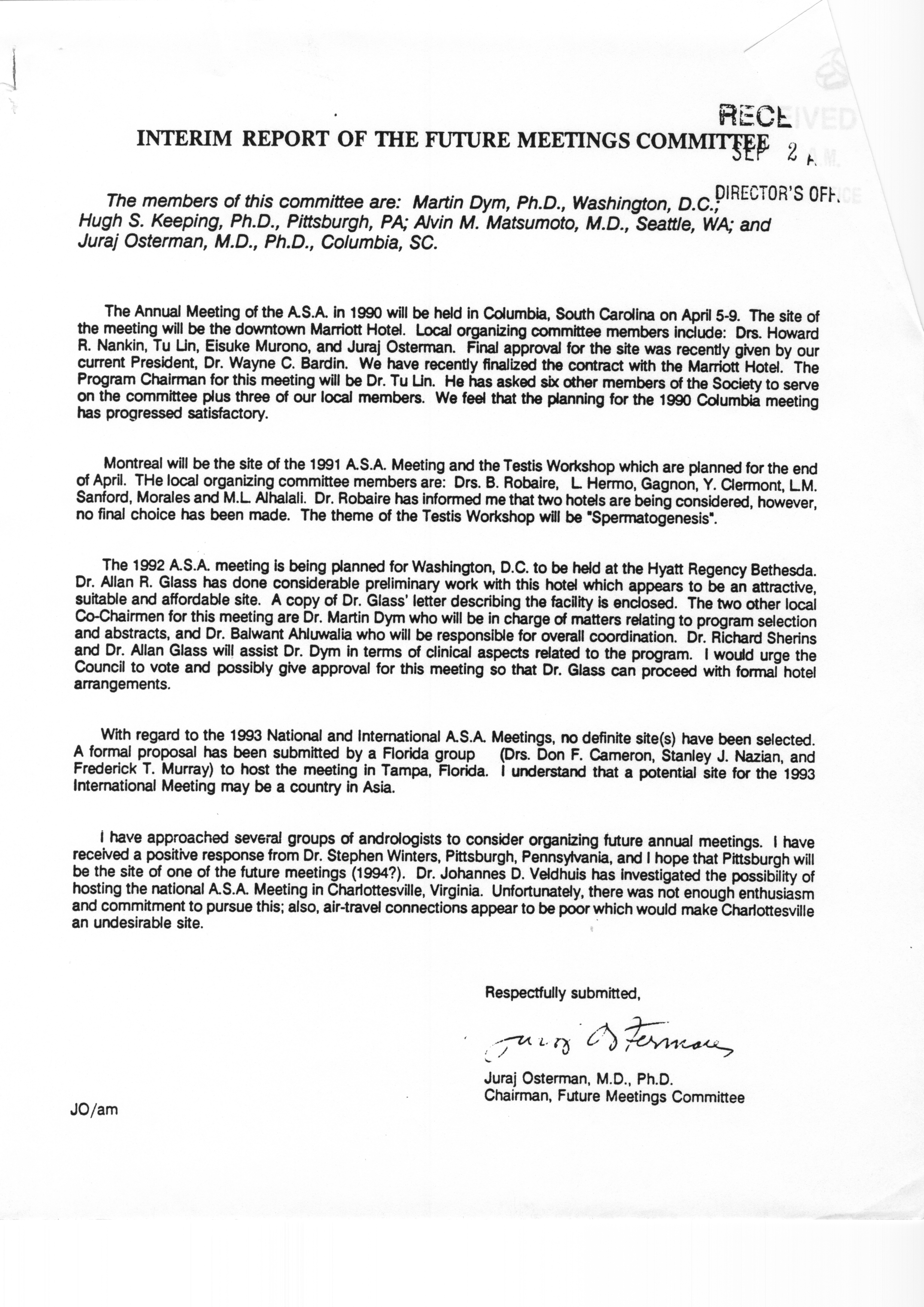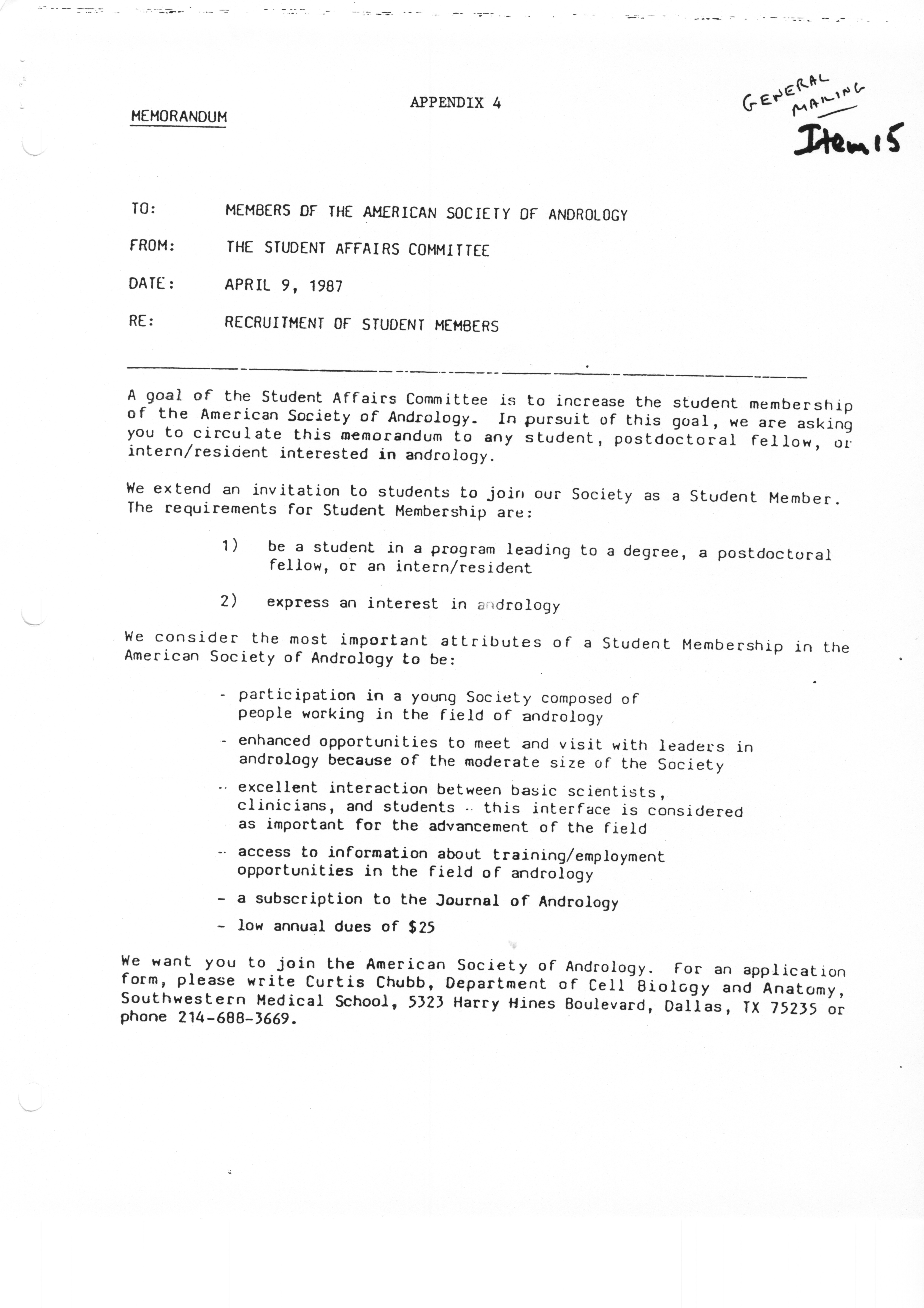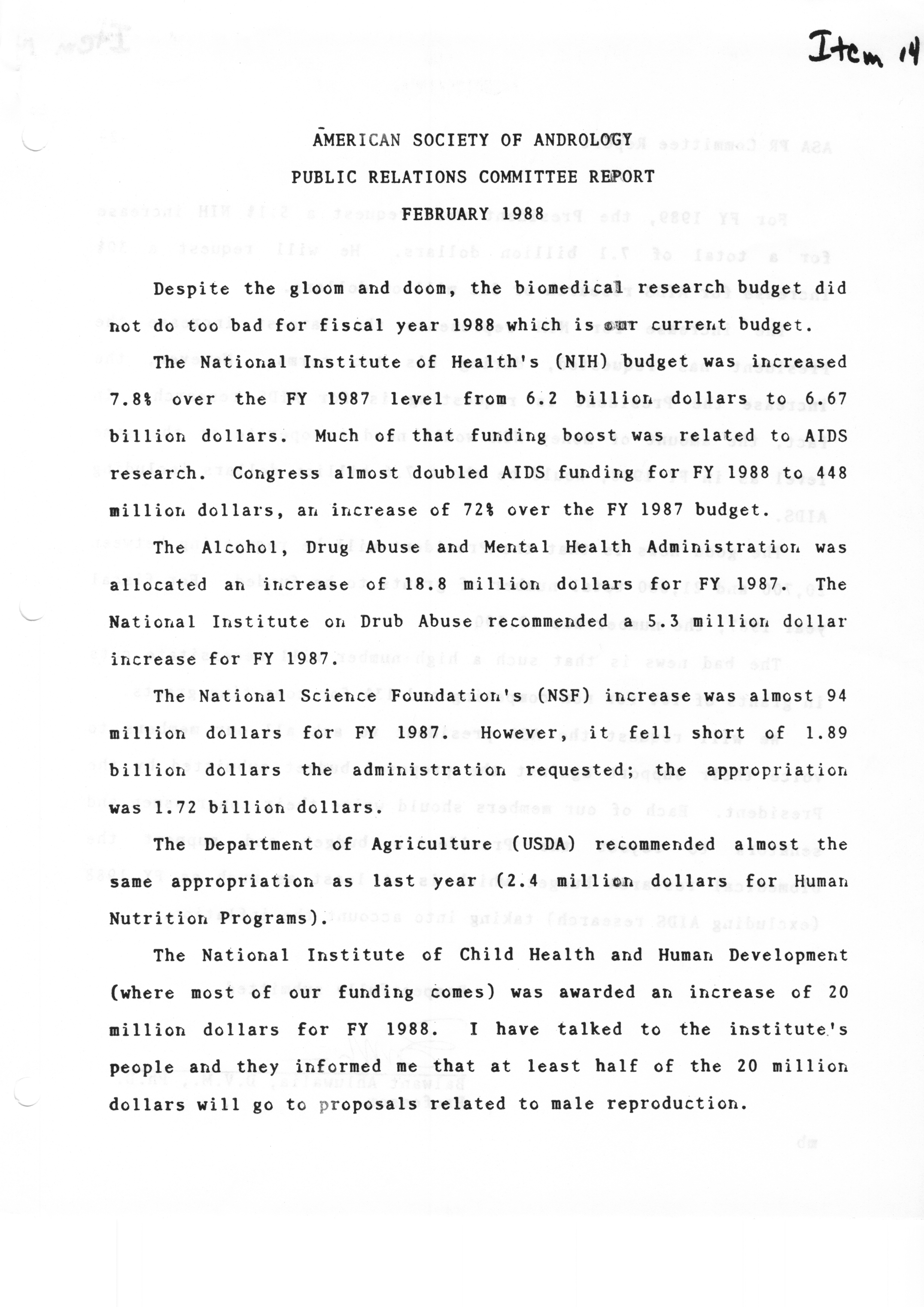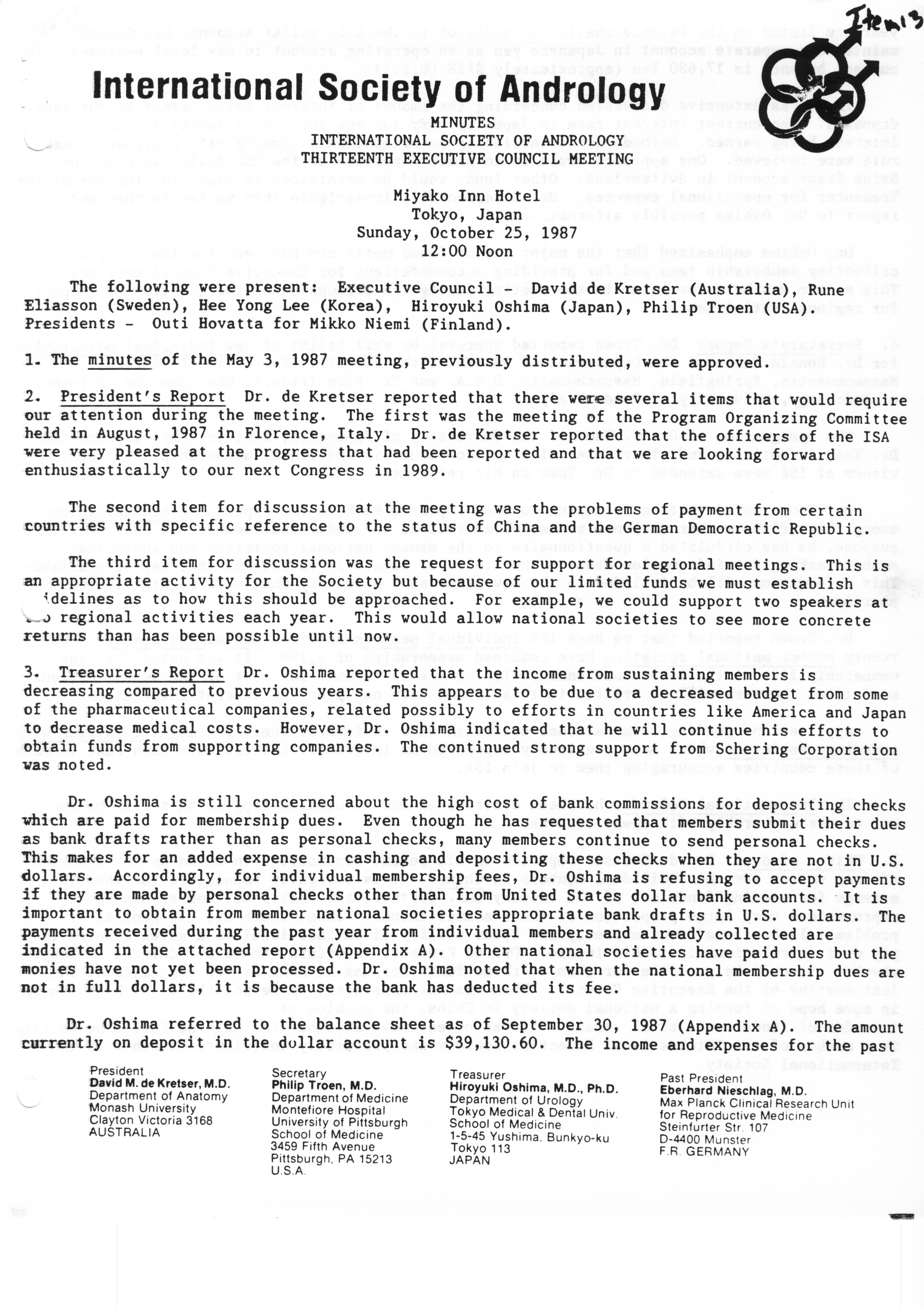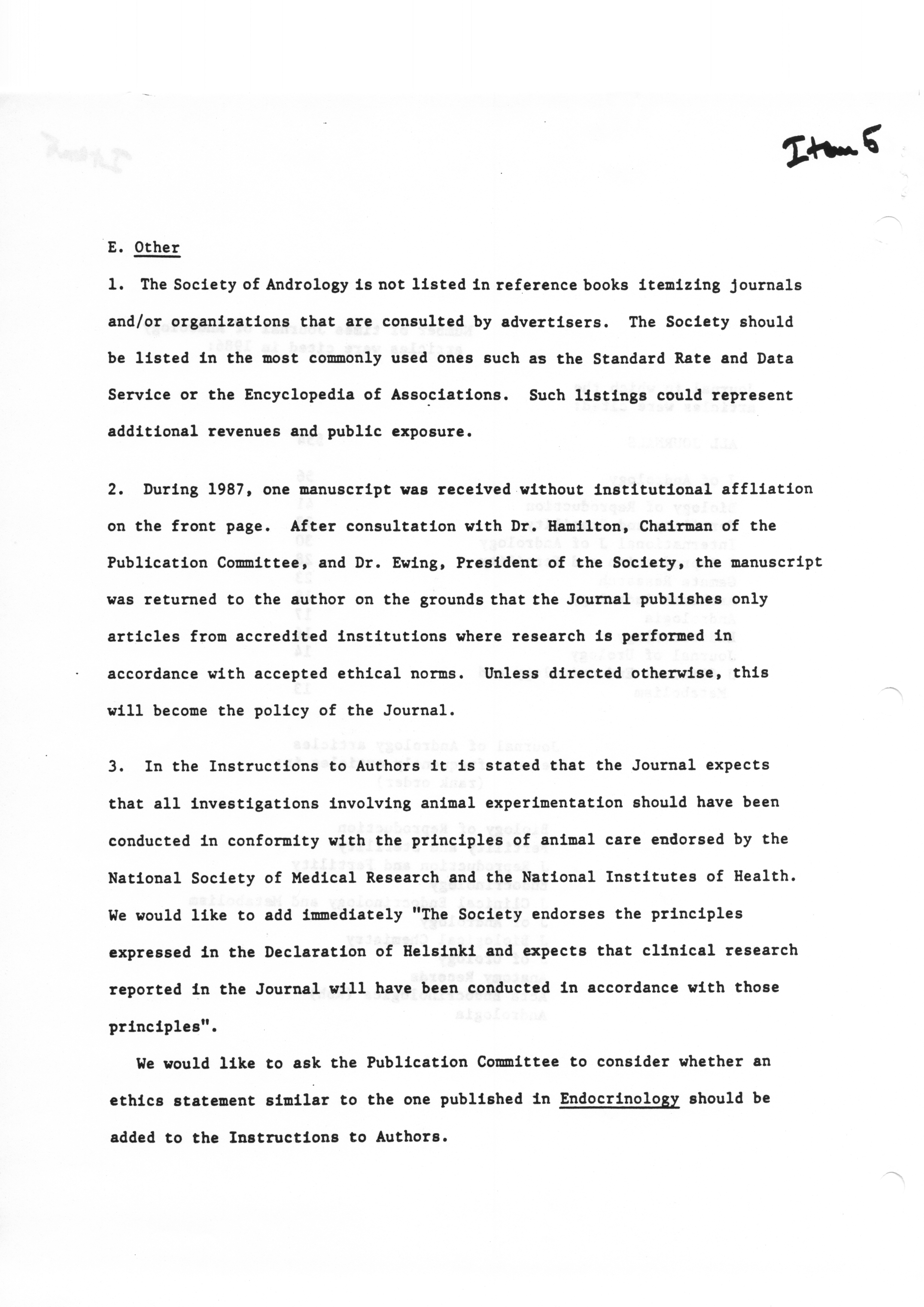 - "Executive Council Meeting of the American Society of Andrology, March 26, 1988", American Society of Andrology Collection, Iowa State University Library Digital Collections