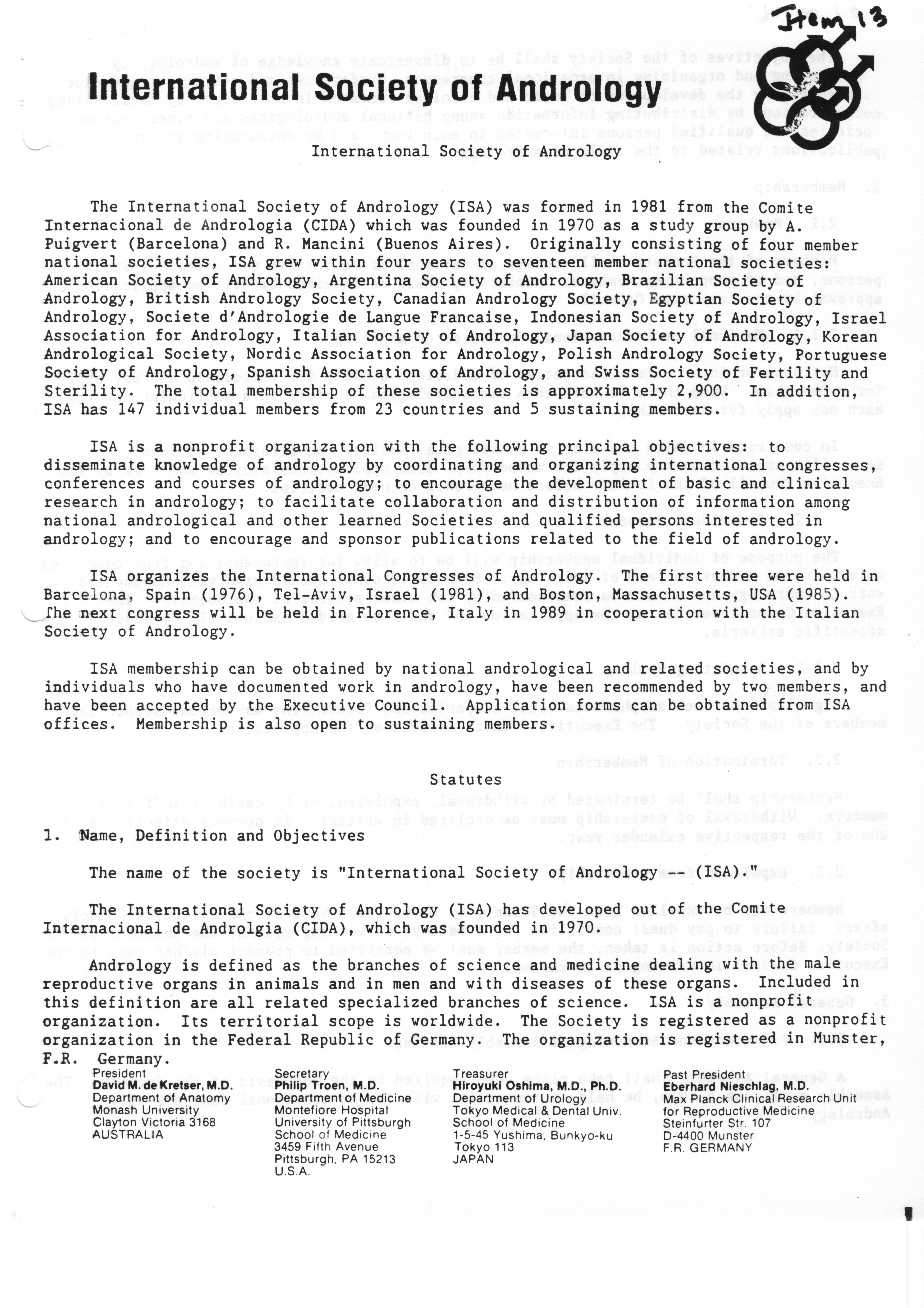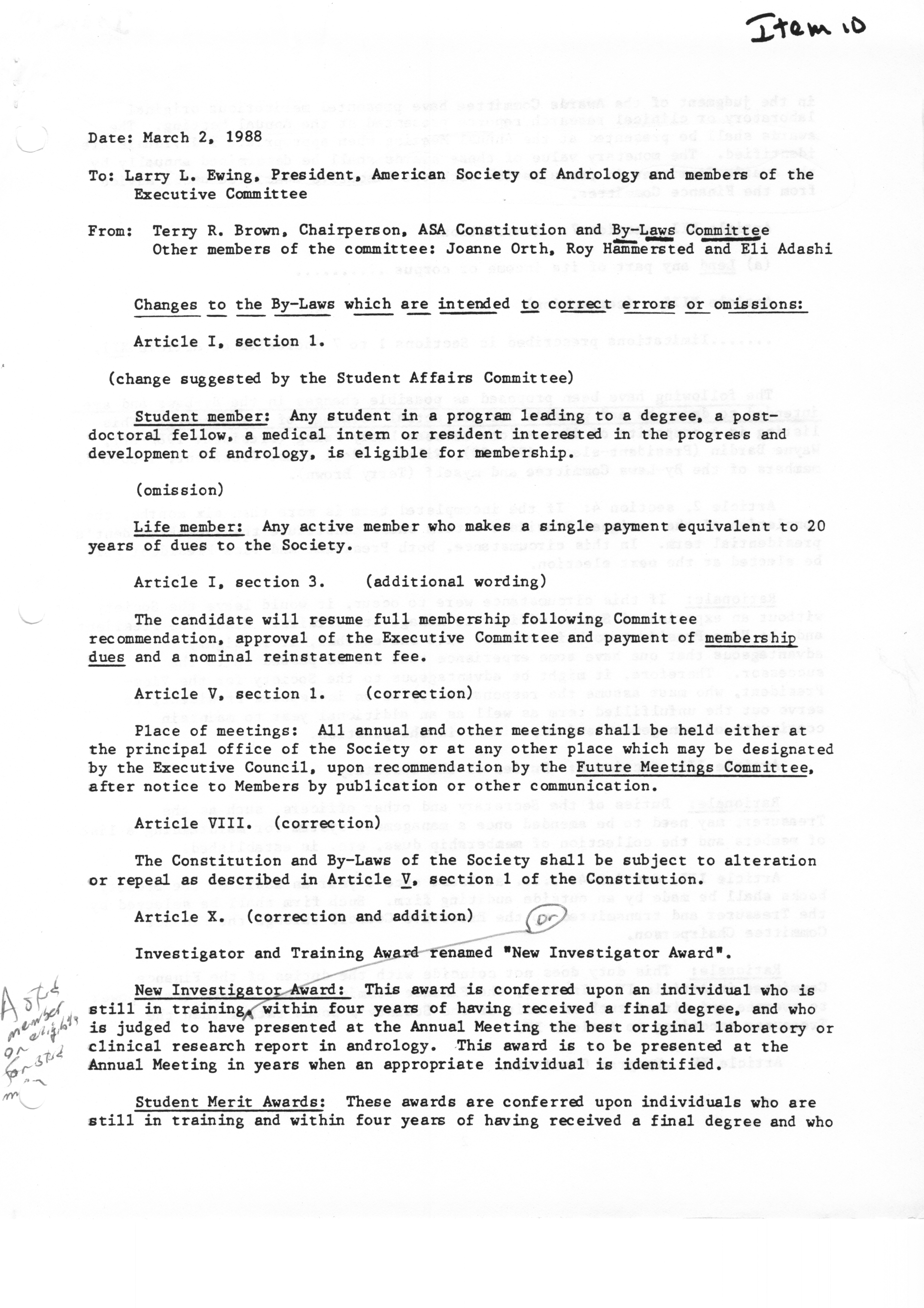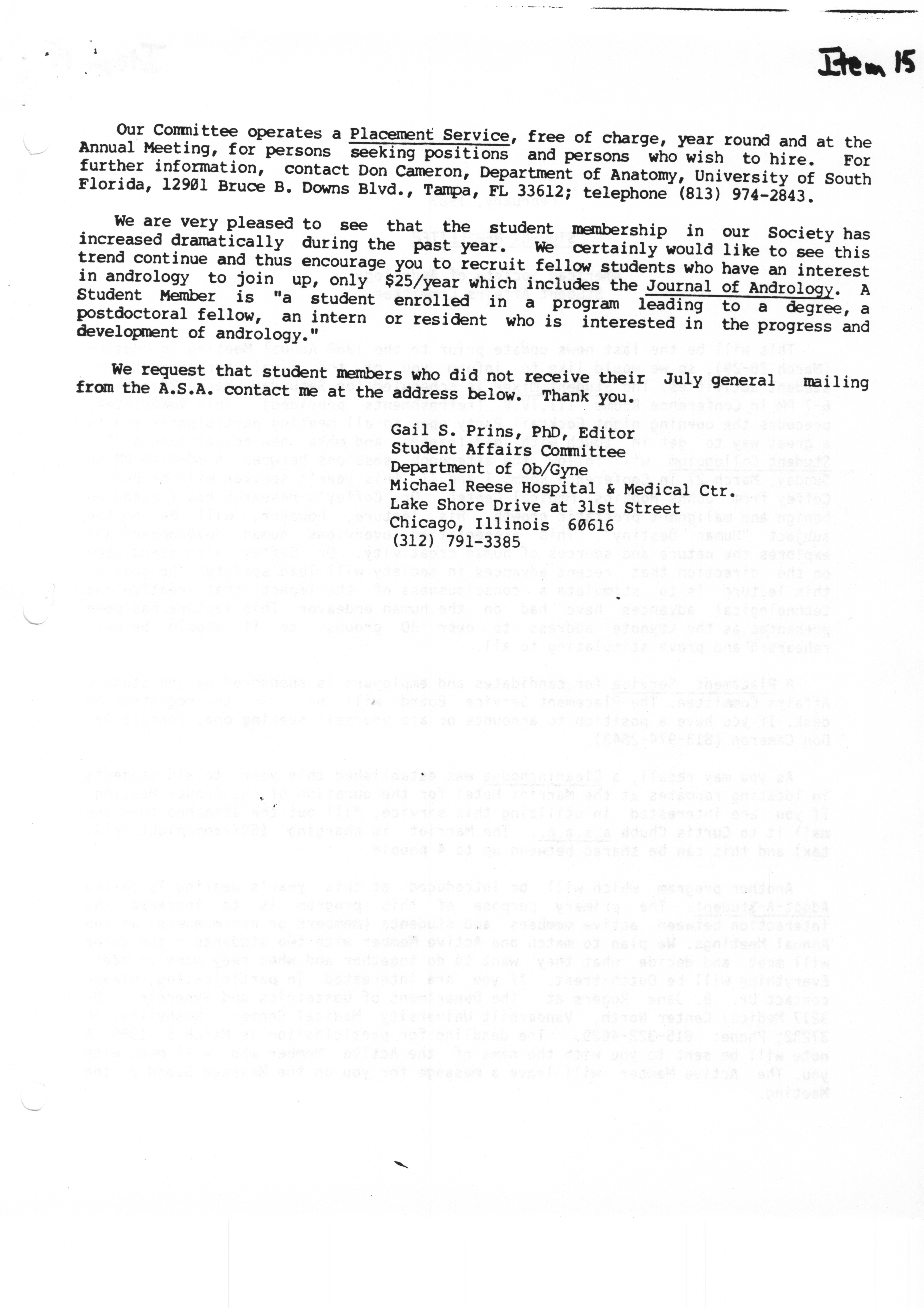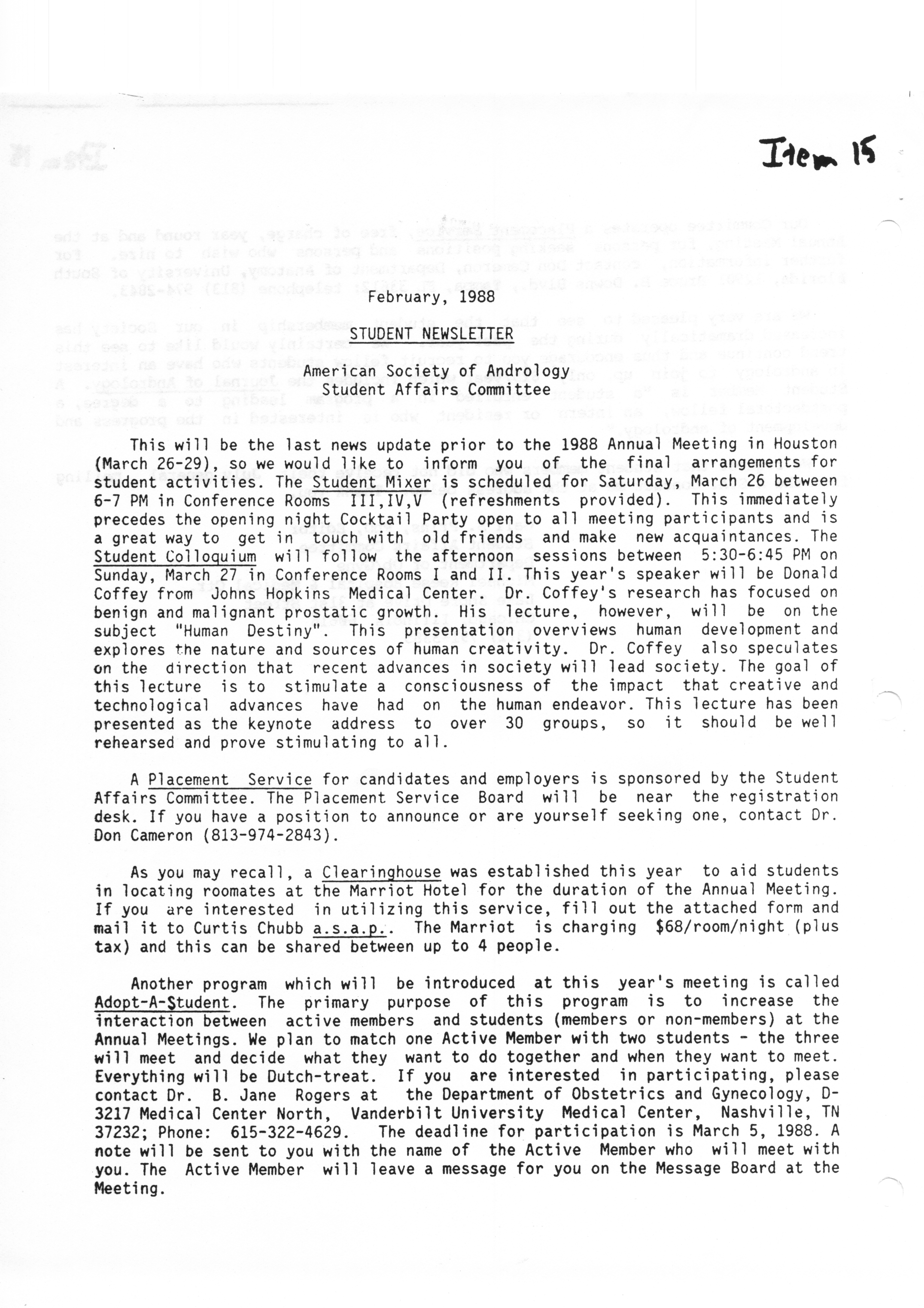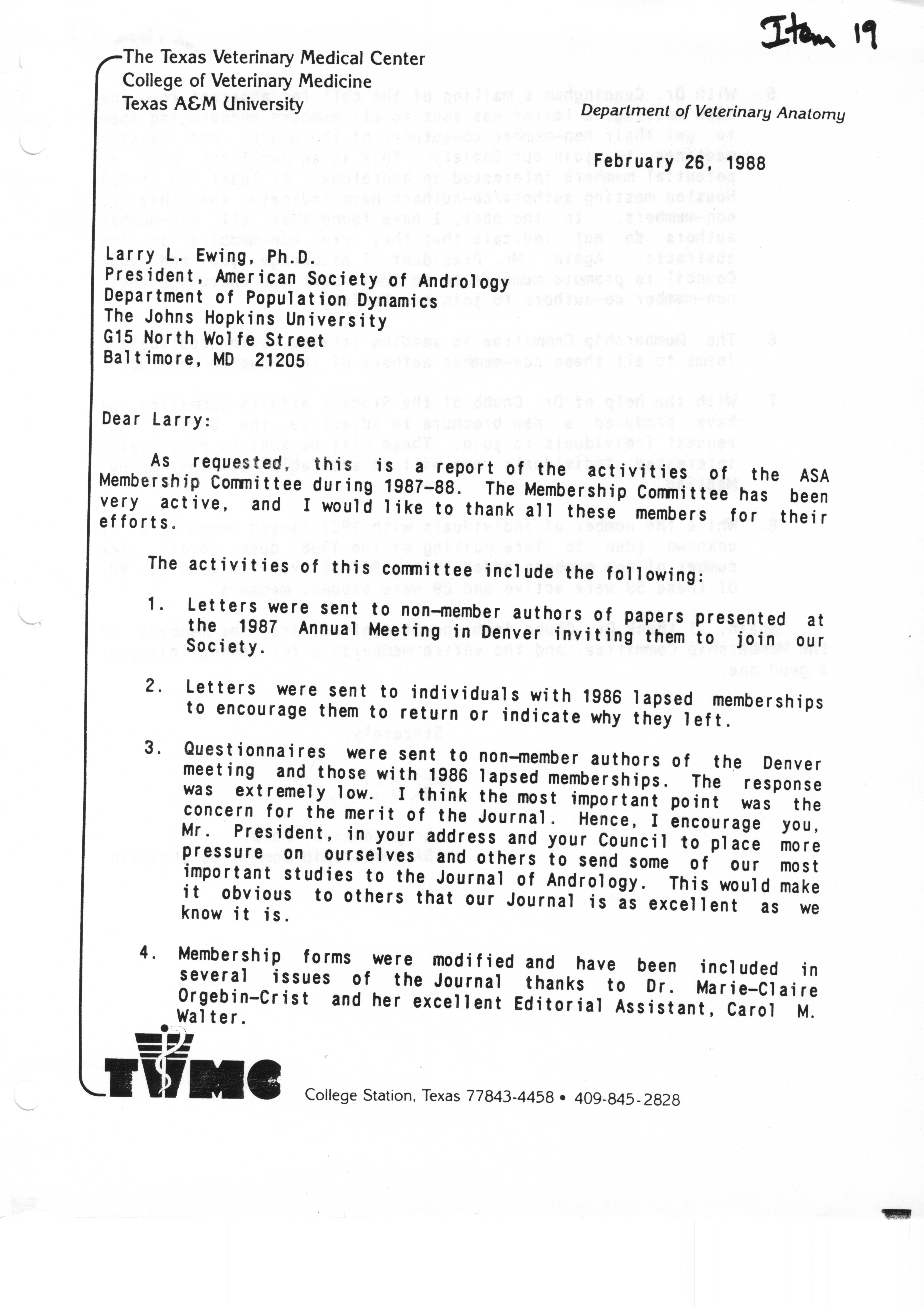 - "Executive Council Meeting of the American Society of Andrology, March 26, 1988", American Society of Andrology Collection, Iowa State University Library Digital Collections