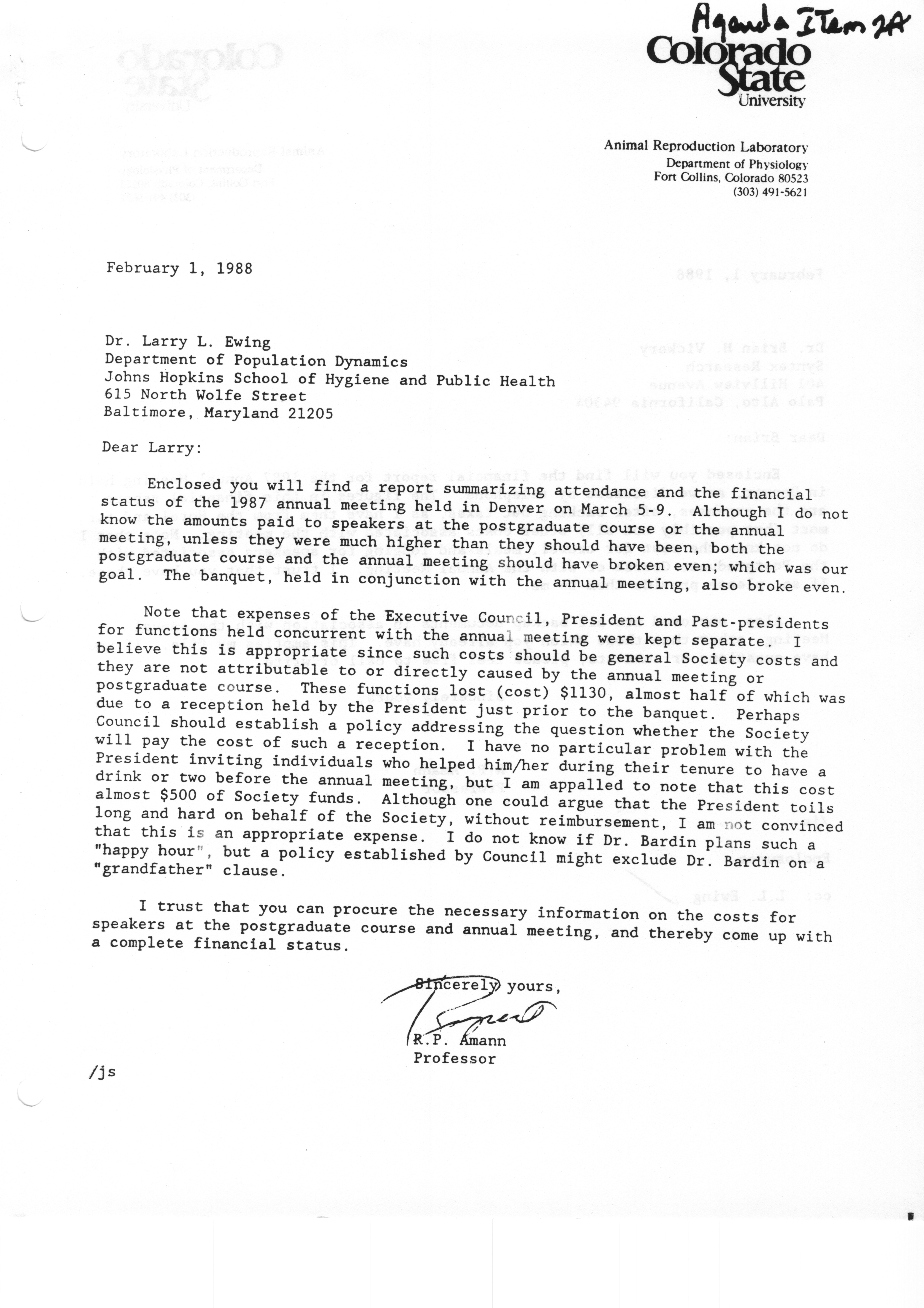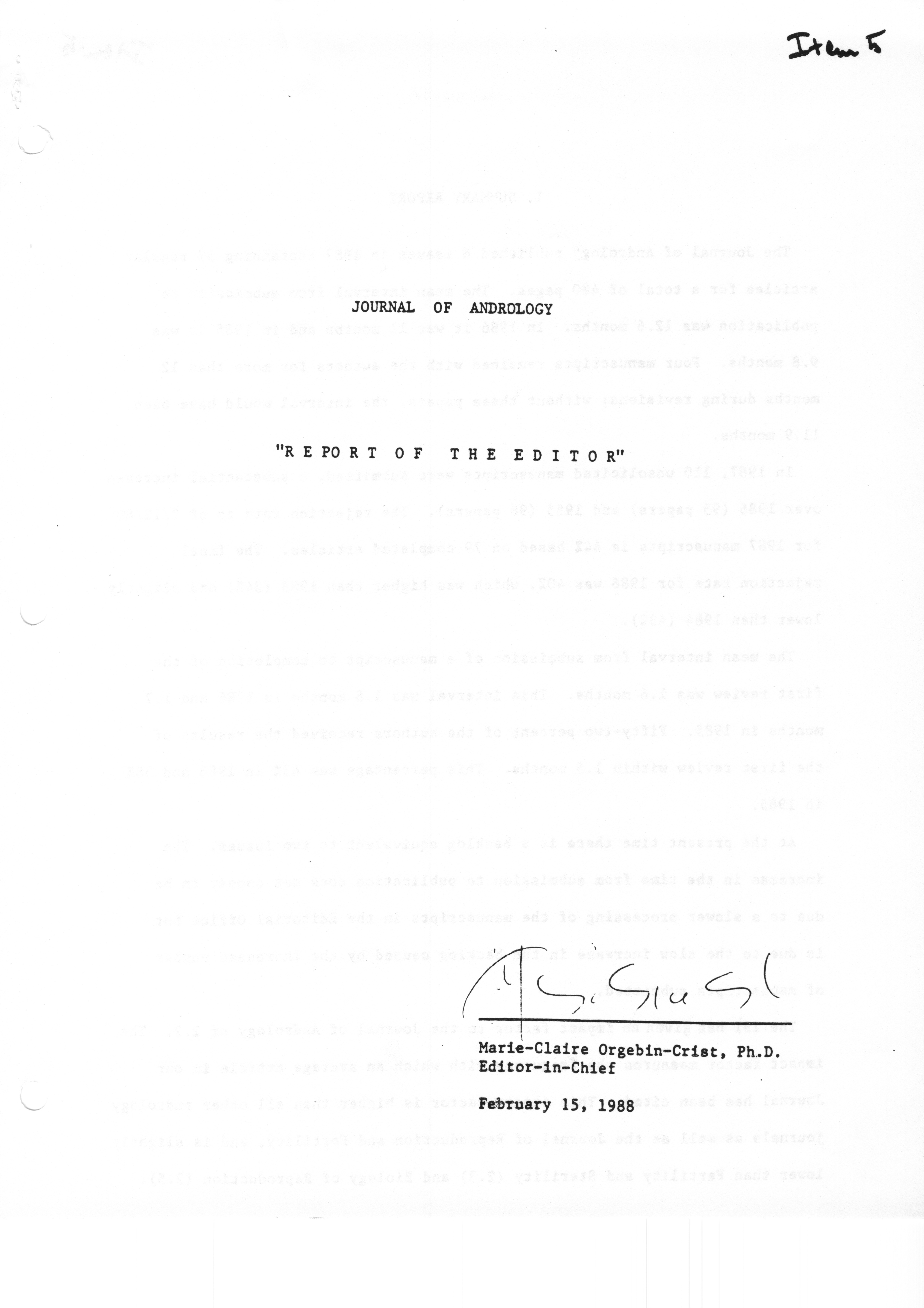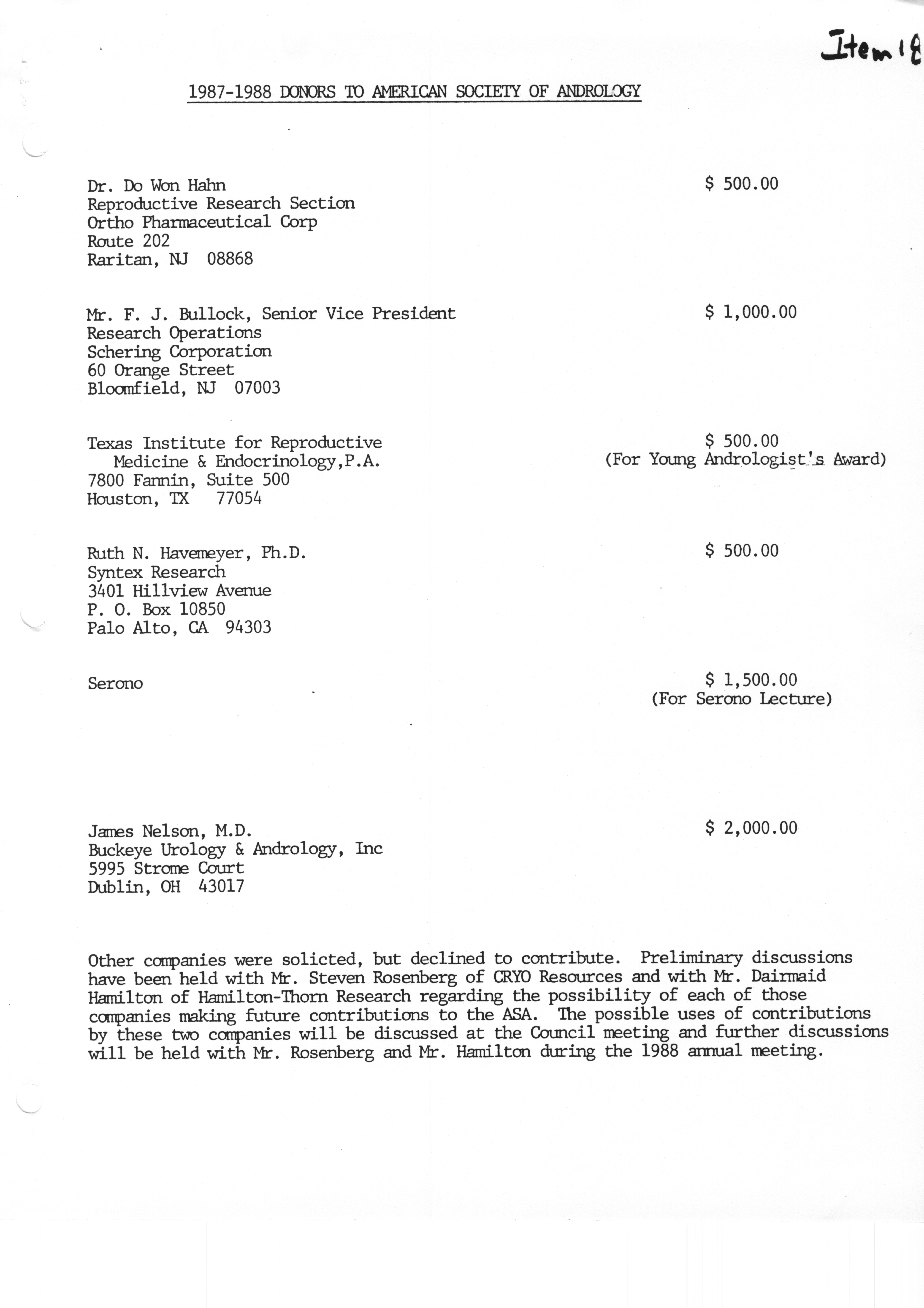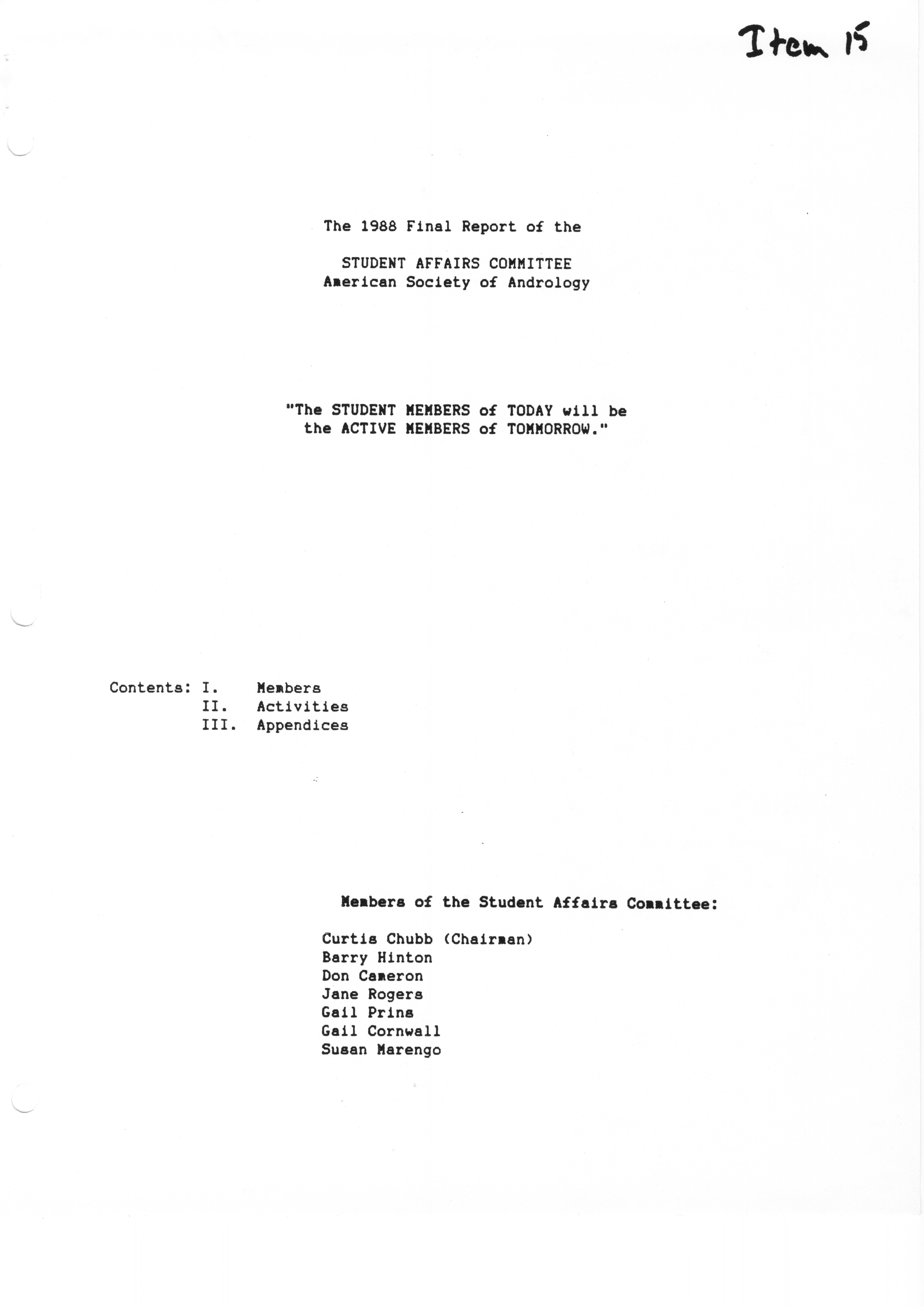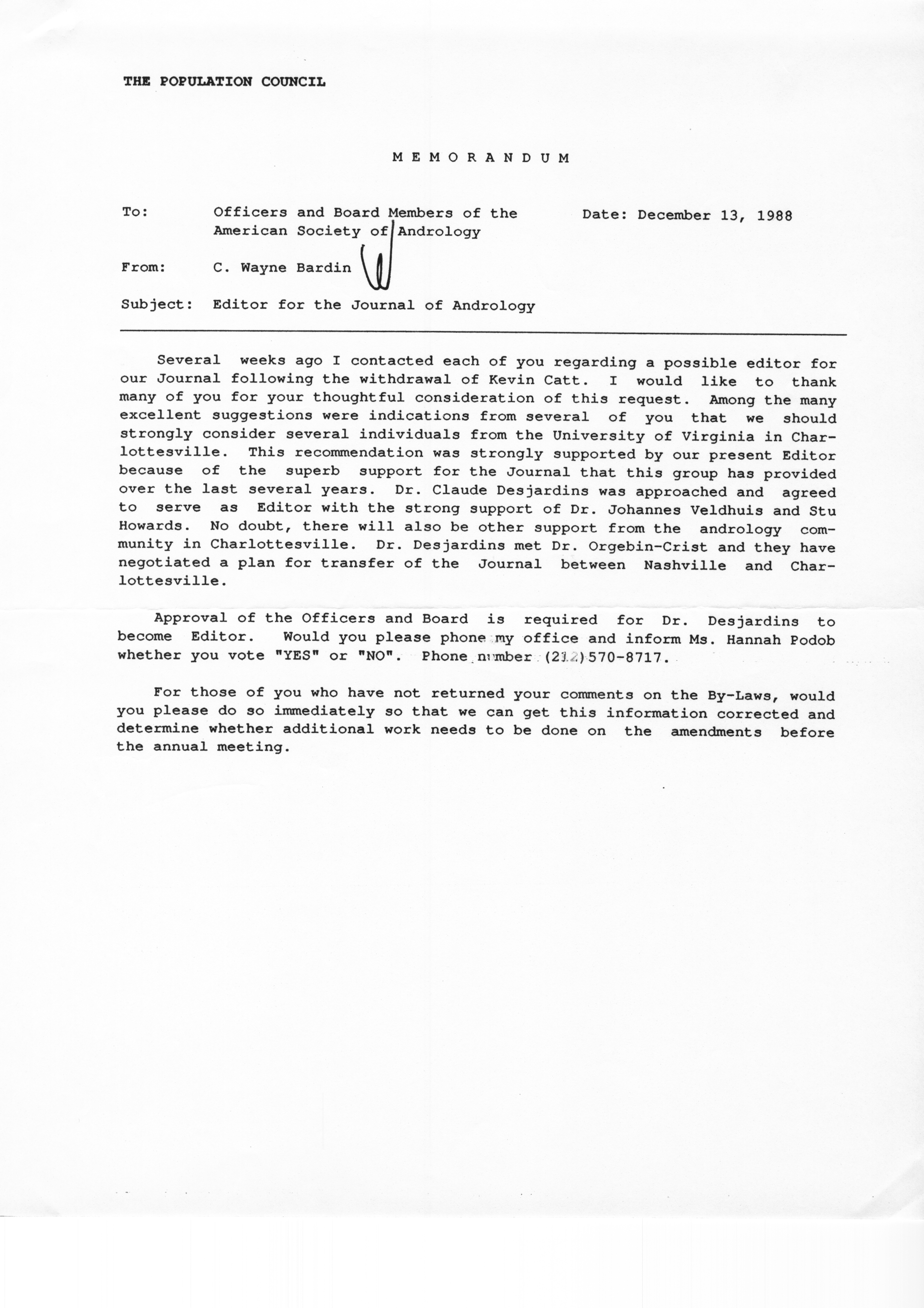 - "Executive Council Meeting of the American Society of Andrology, March 26, 1988", American Society of Andrology Collection, Iowa State University Library Digital Collections