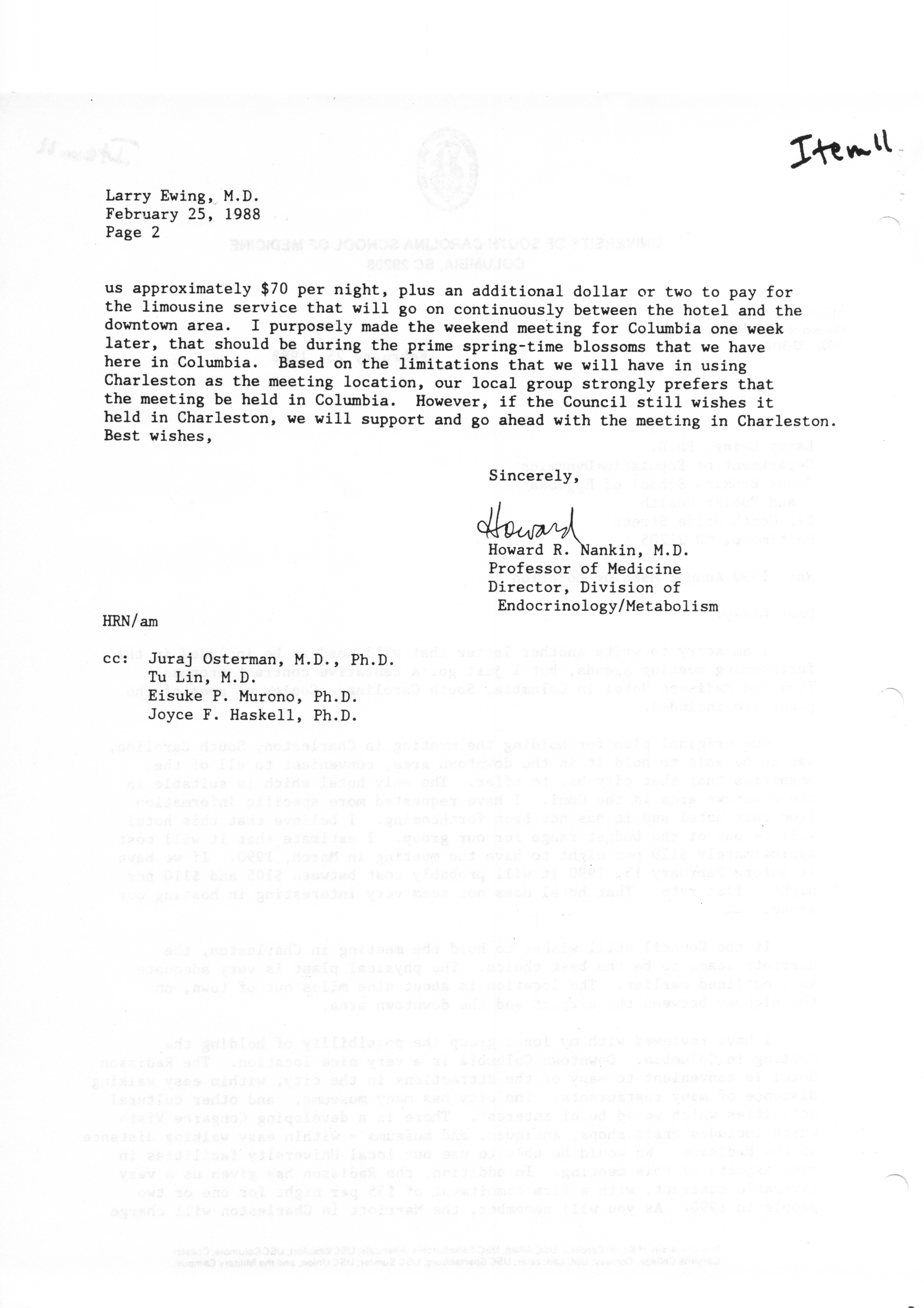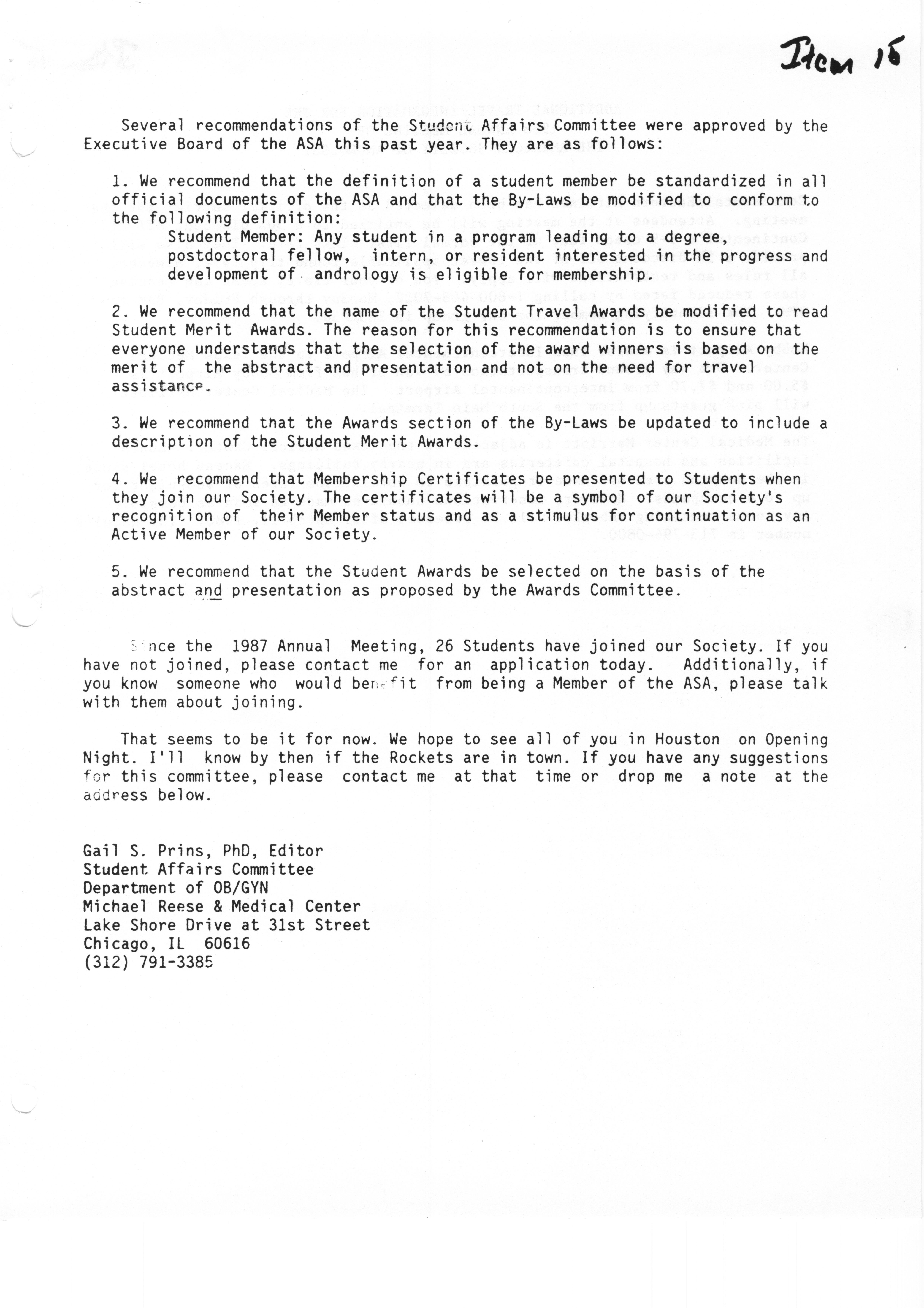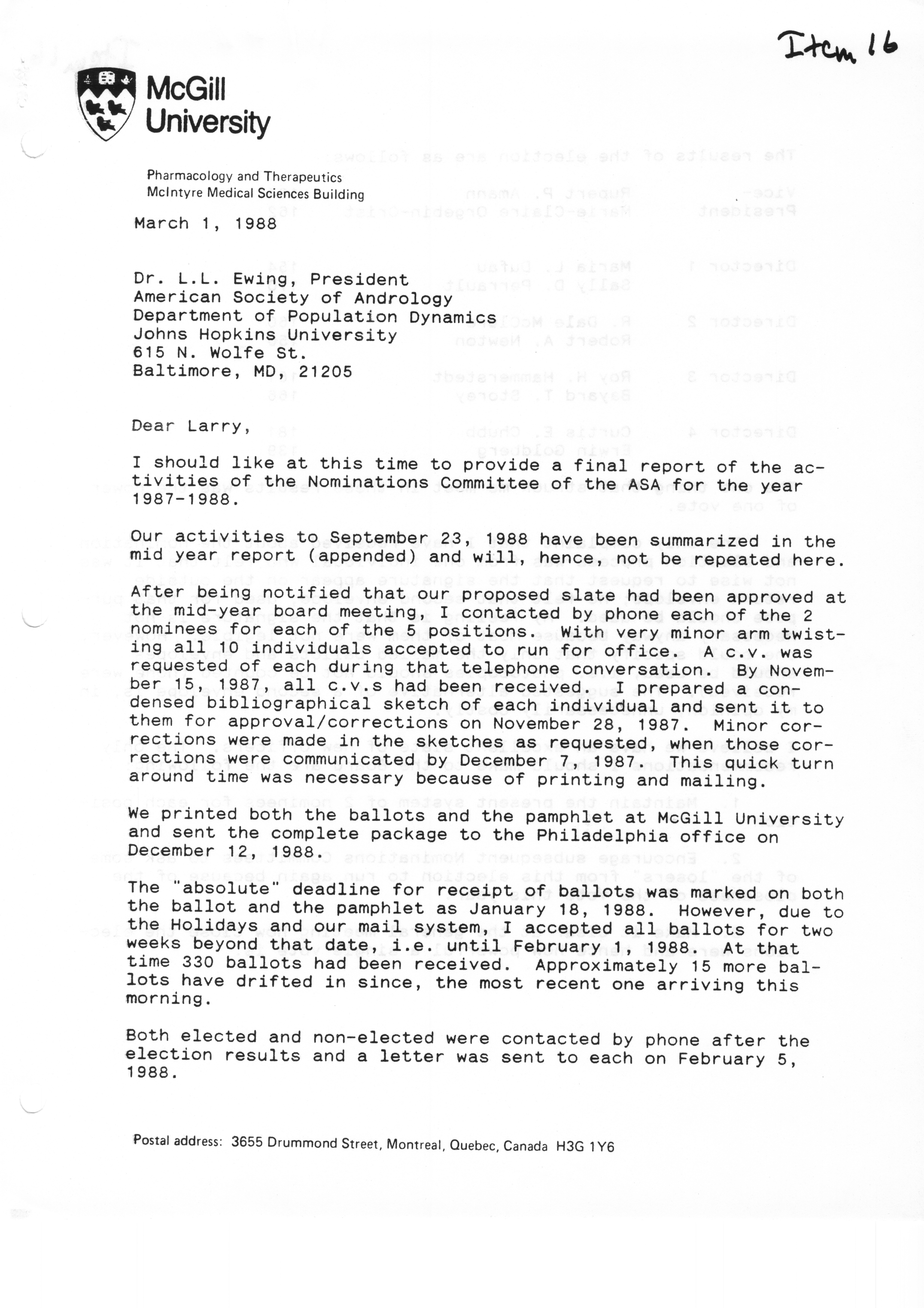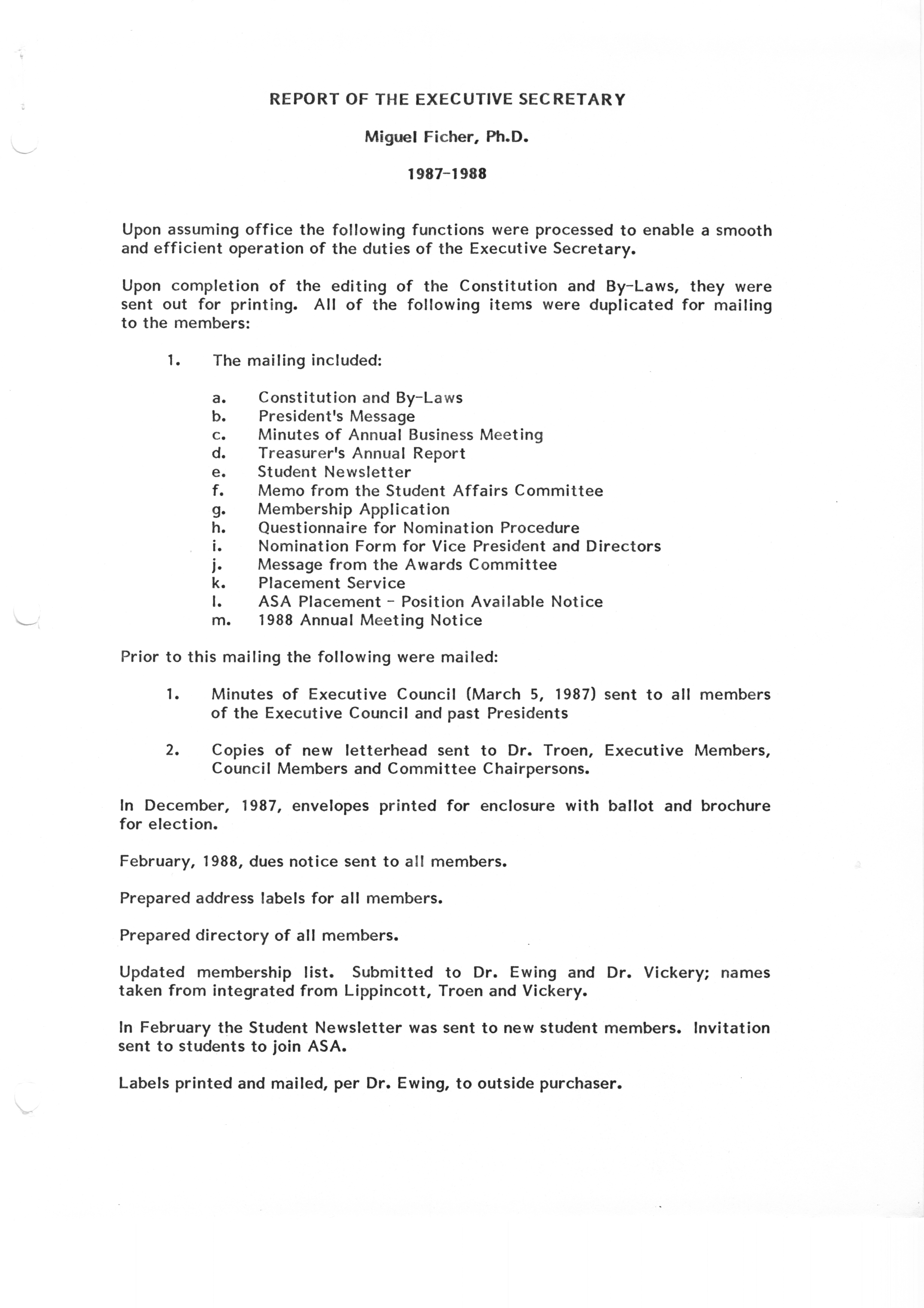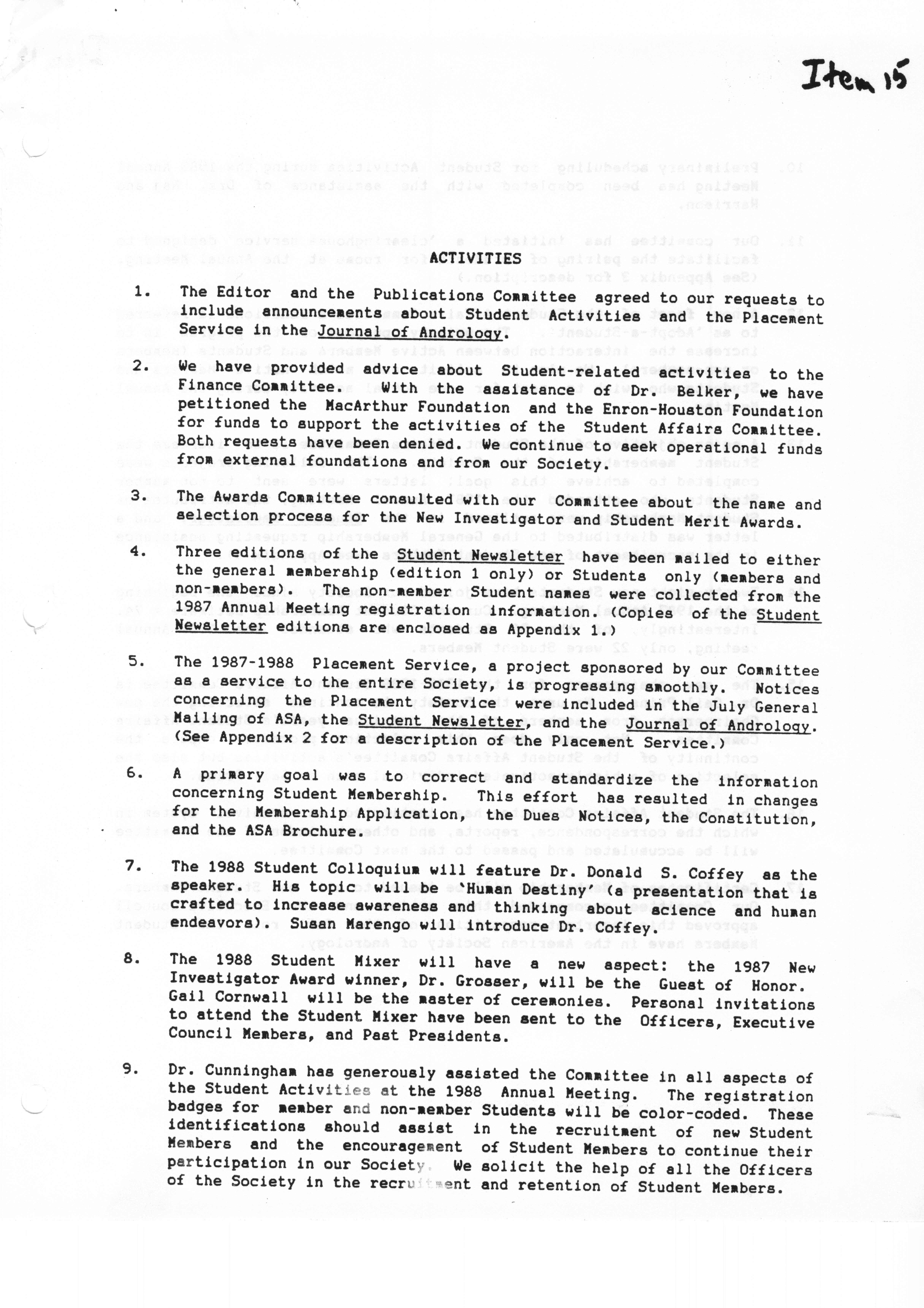 - "Executive Council Meeting of the American Society of Andrology, March 26, 1988", American Society of Andrology Collection, Iowa State University Library Digital Collections
