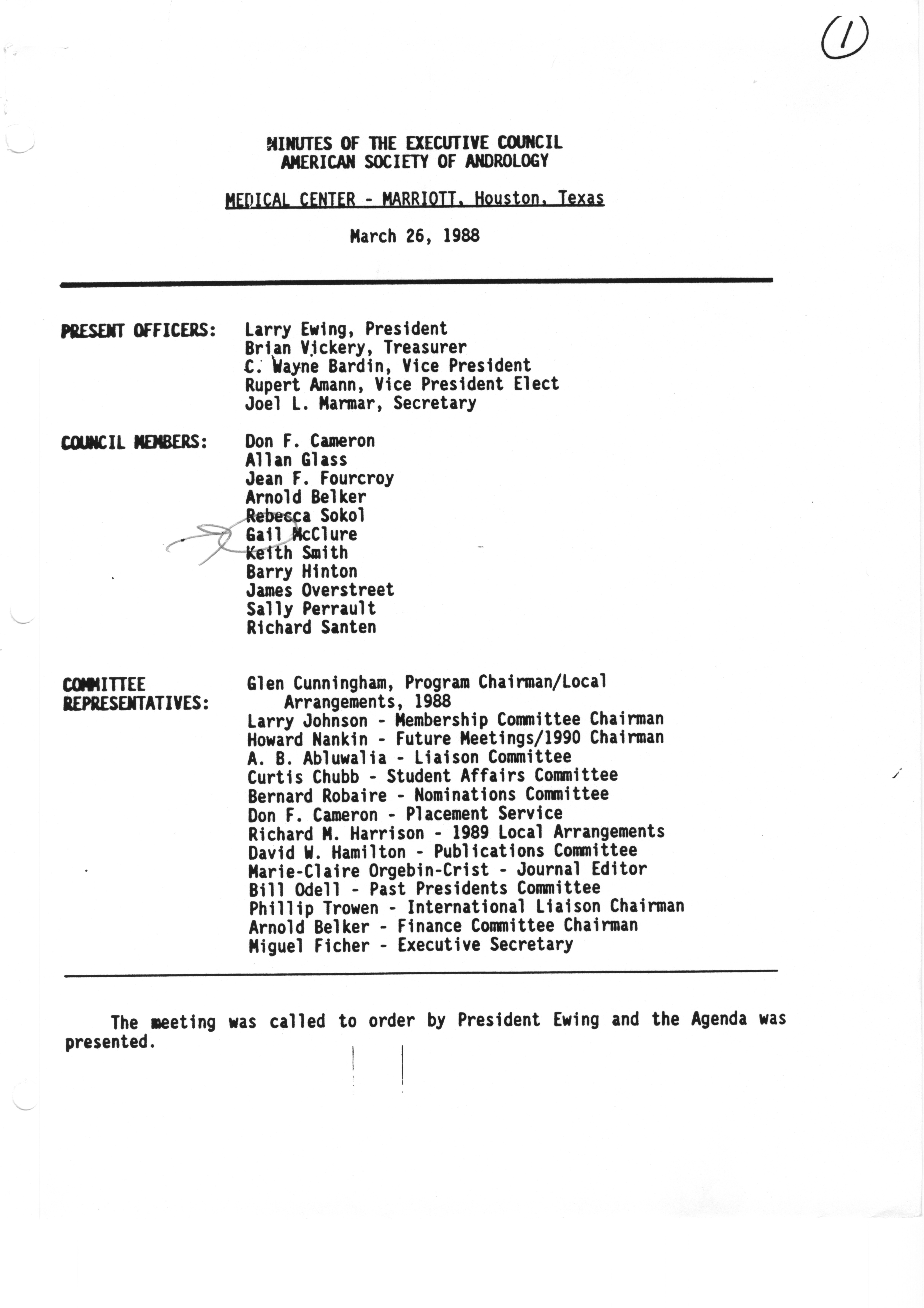 - Executive Council Meeting of the American Society of Andrology, March 26, 1988
