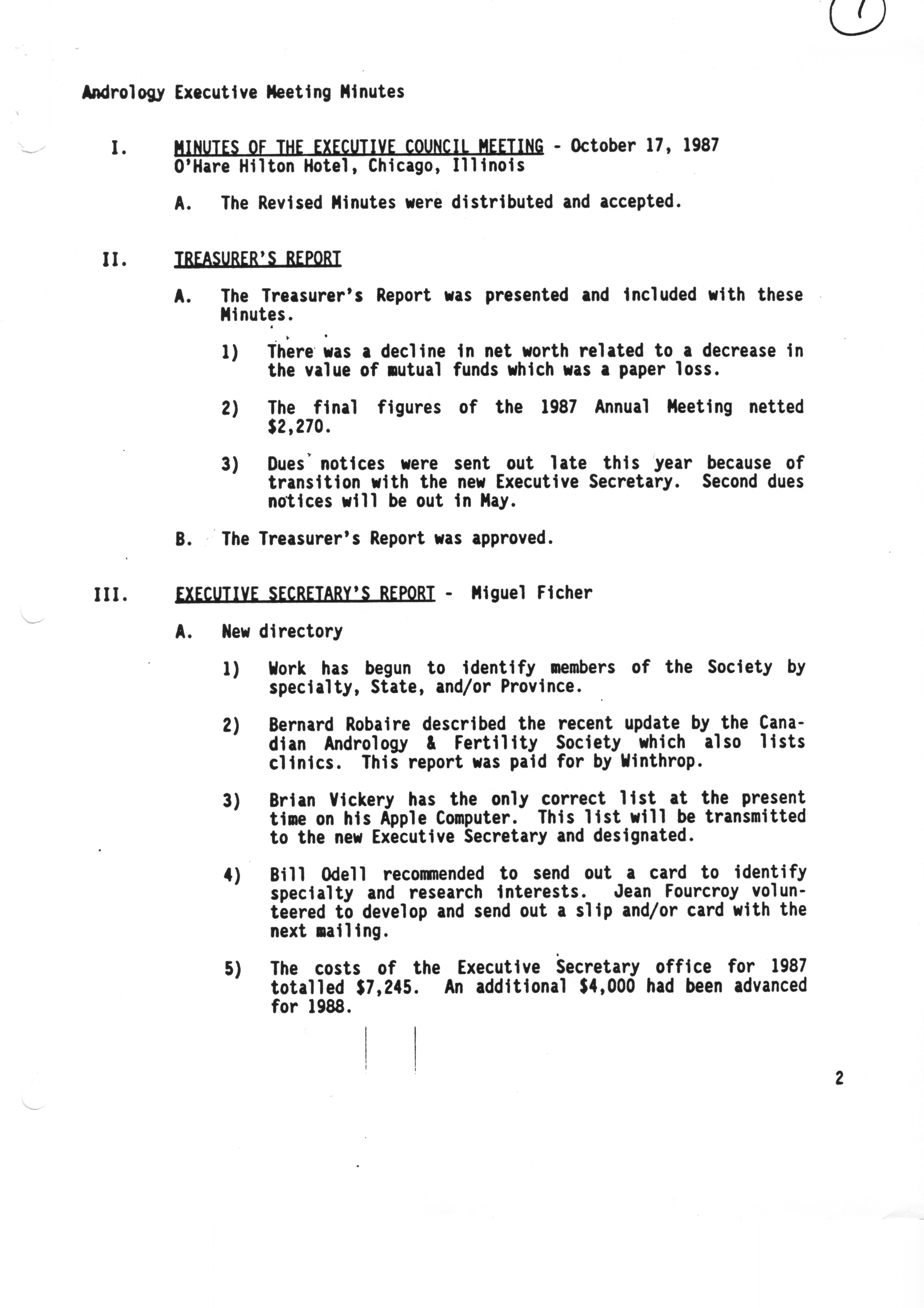 Executive Council Meeting of the American Society of Andrology, March 26, 1988 Item Info