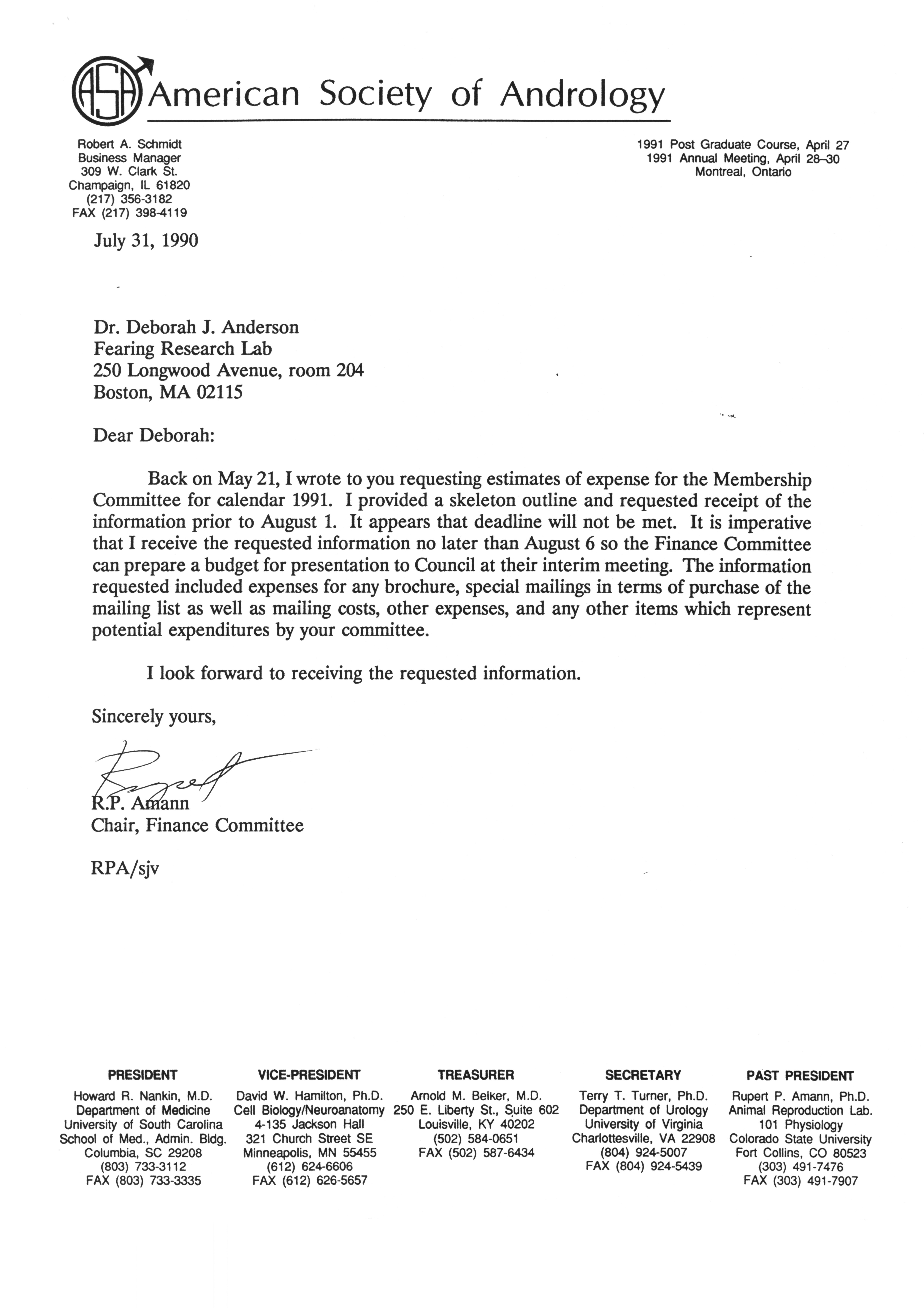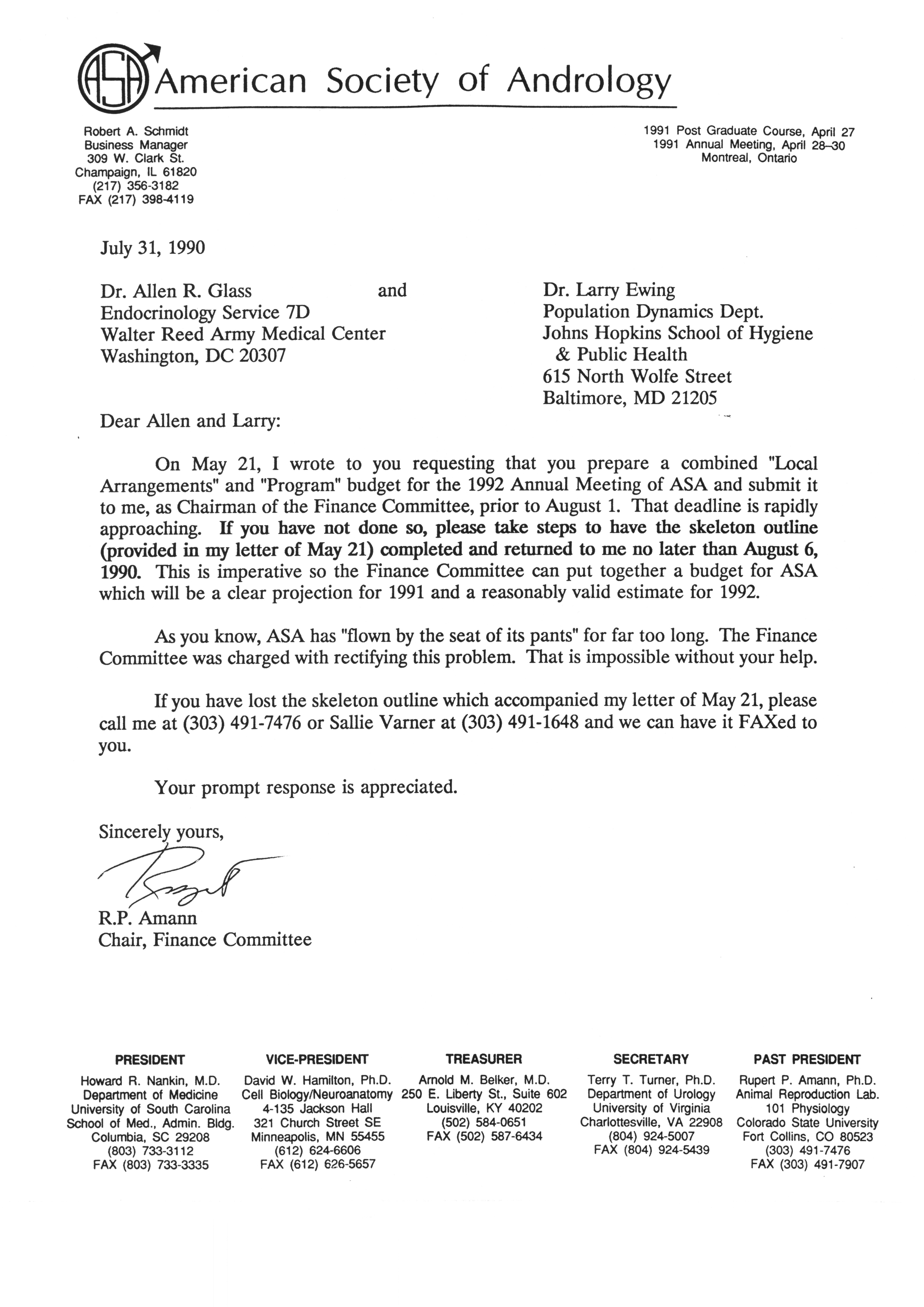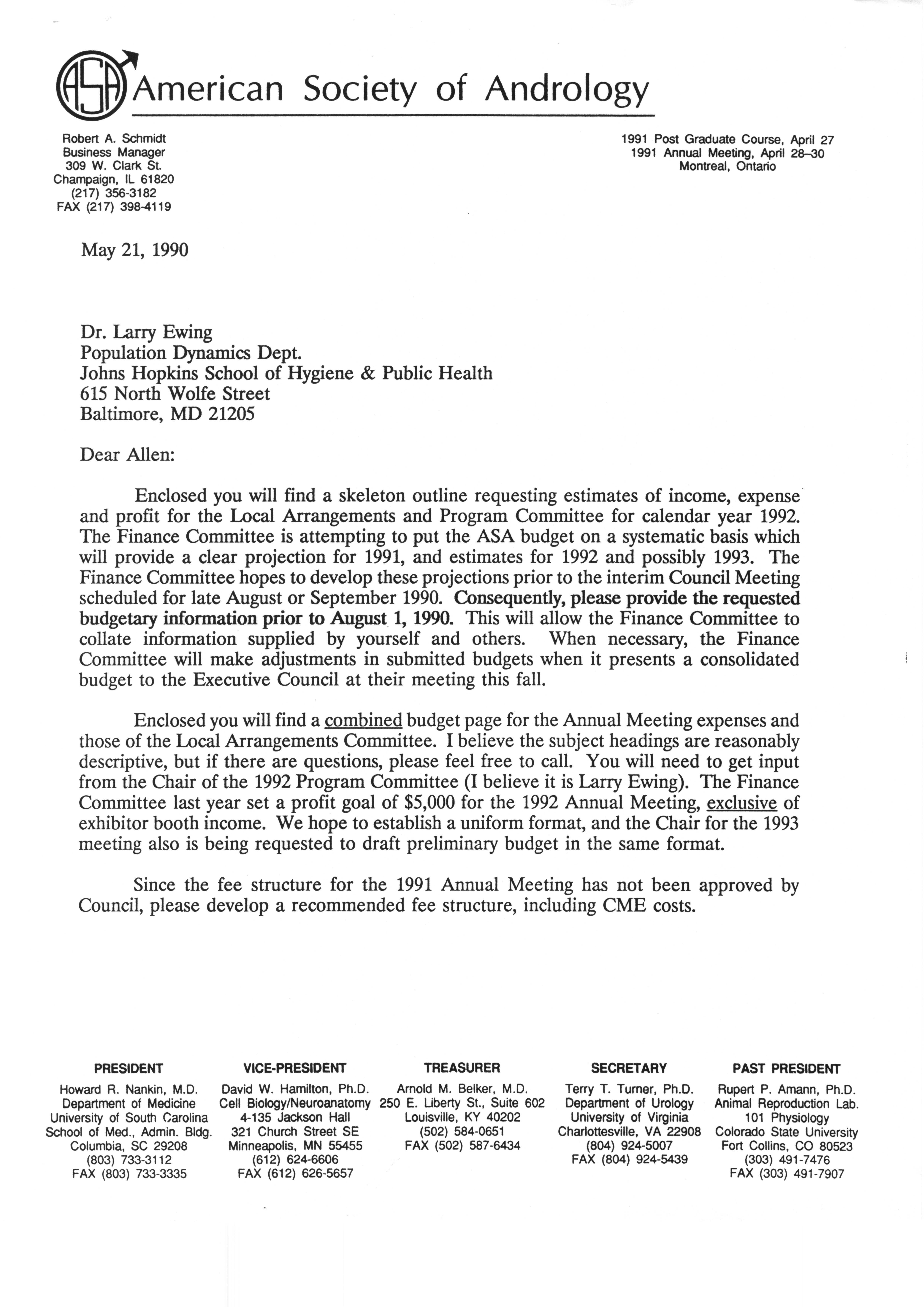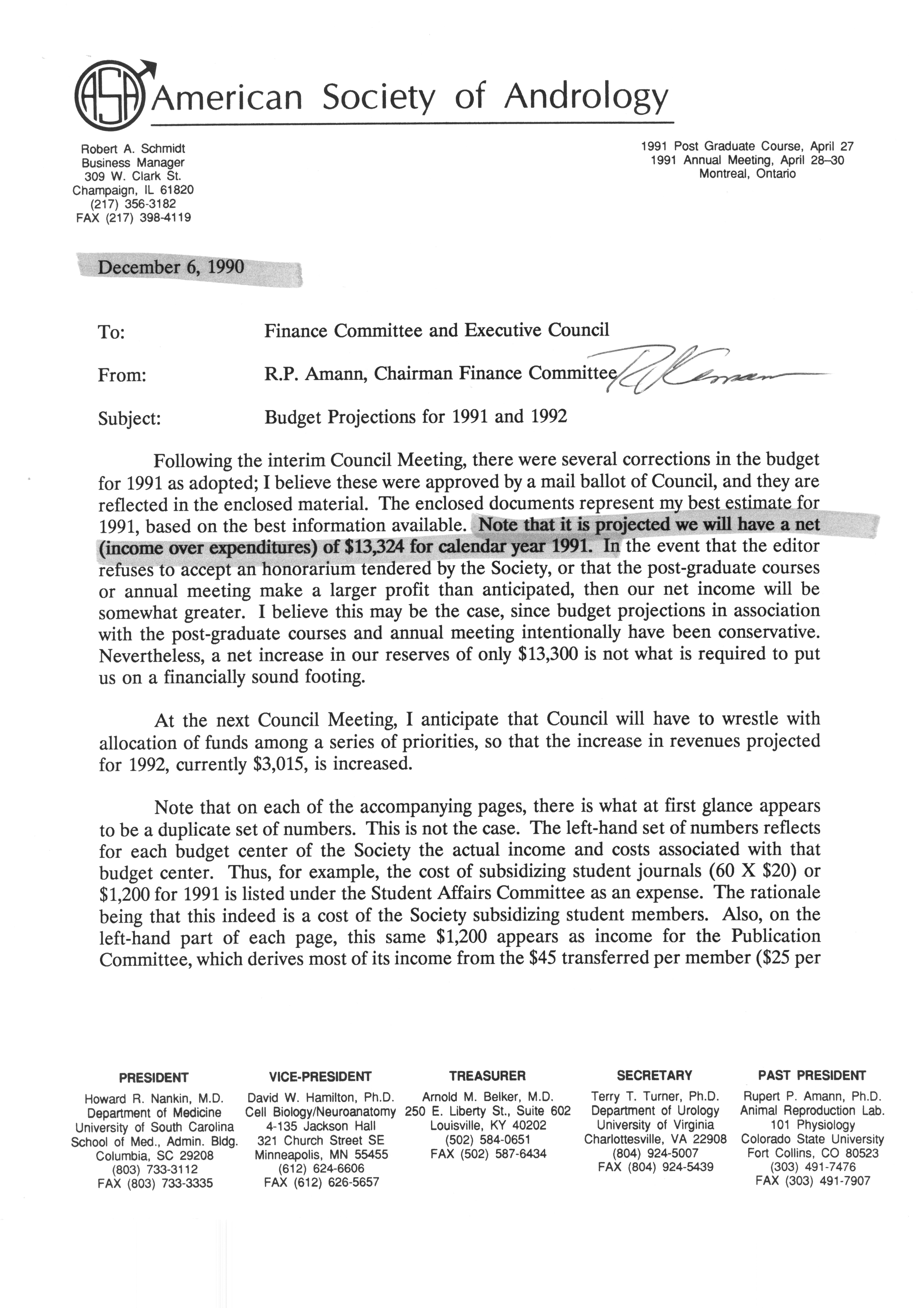 - "Finance Committee of the American Society of Andrology, 1990-95", American Society of Andrology Collection, Iowa State University Library Digital Collections