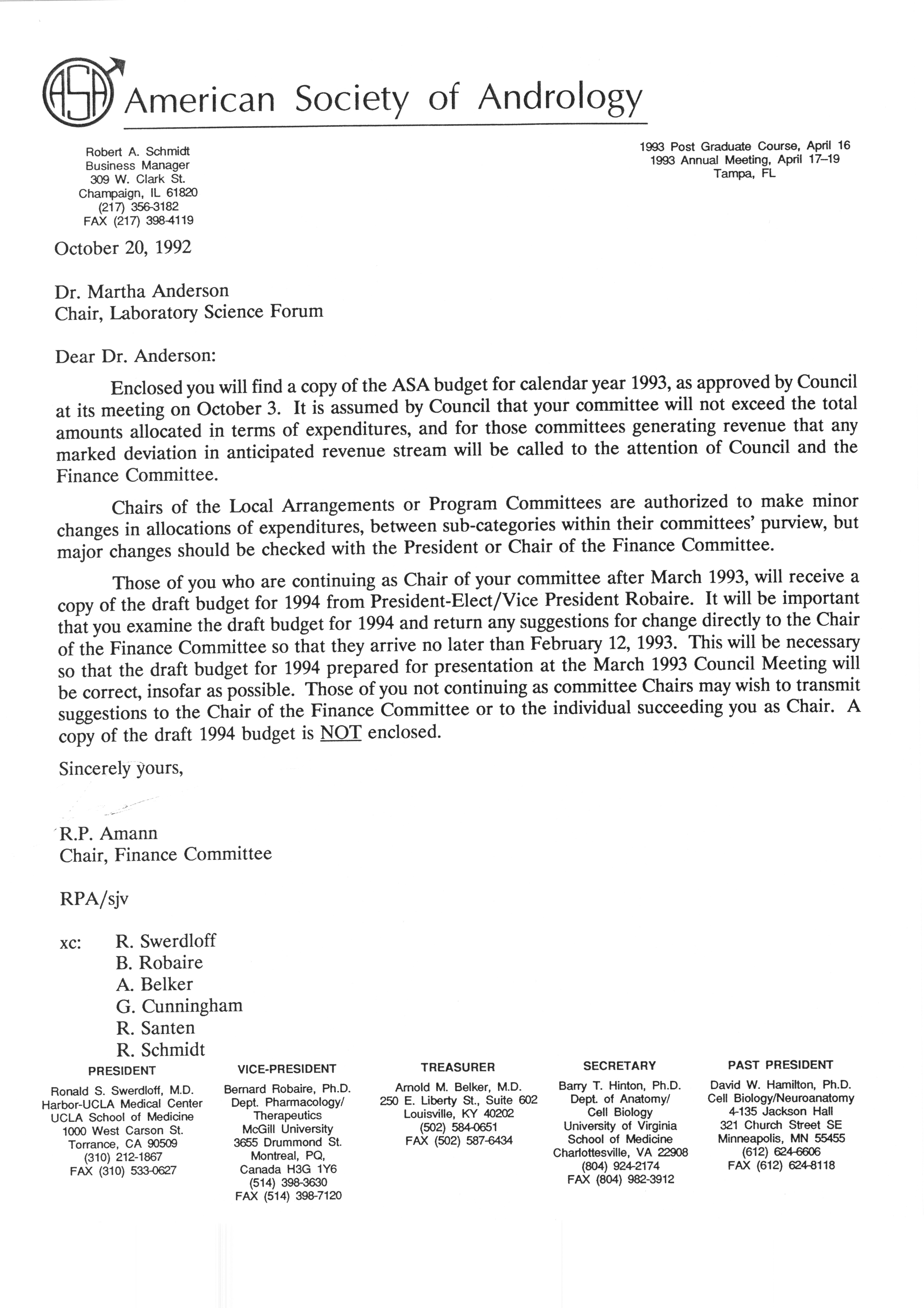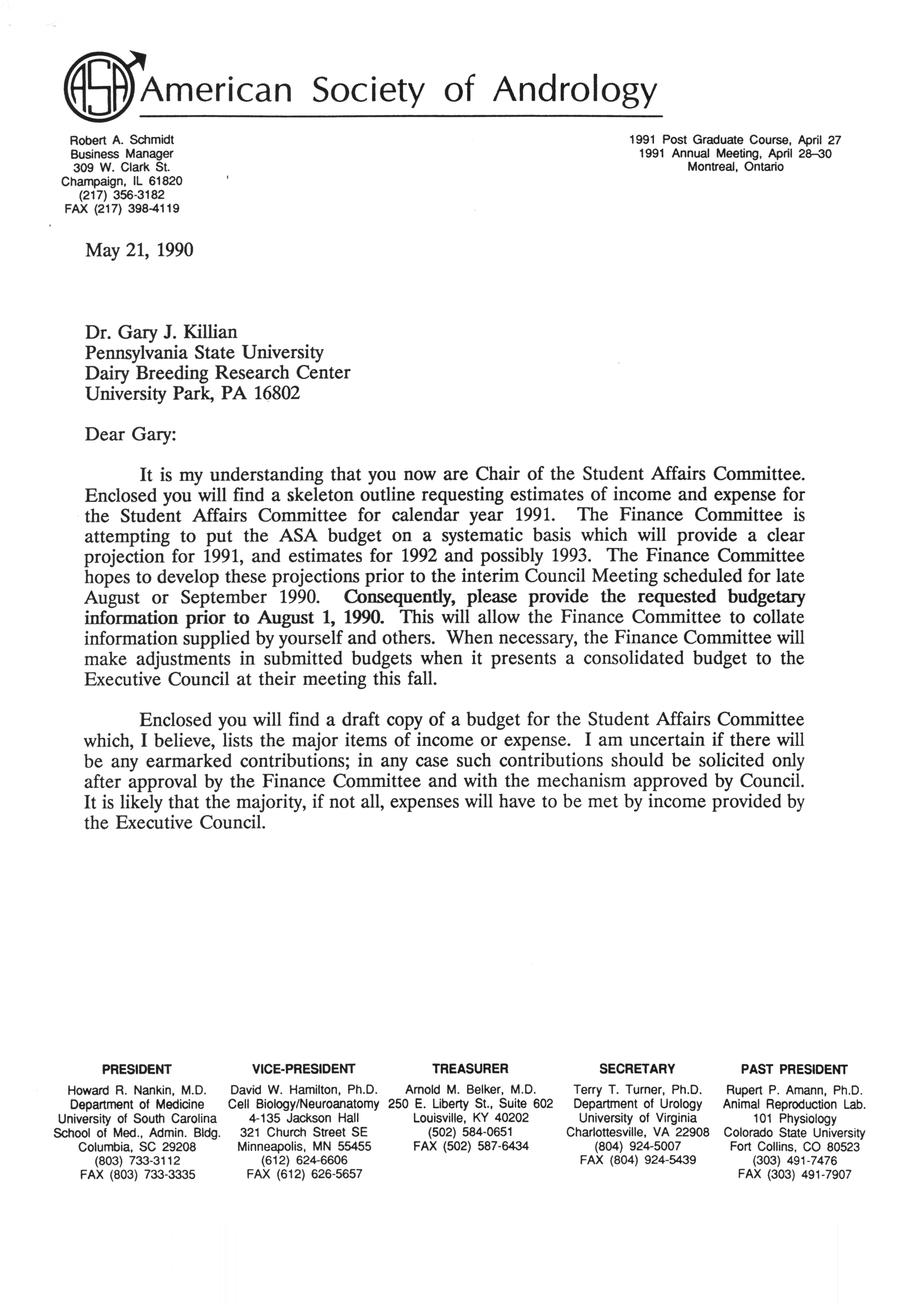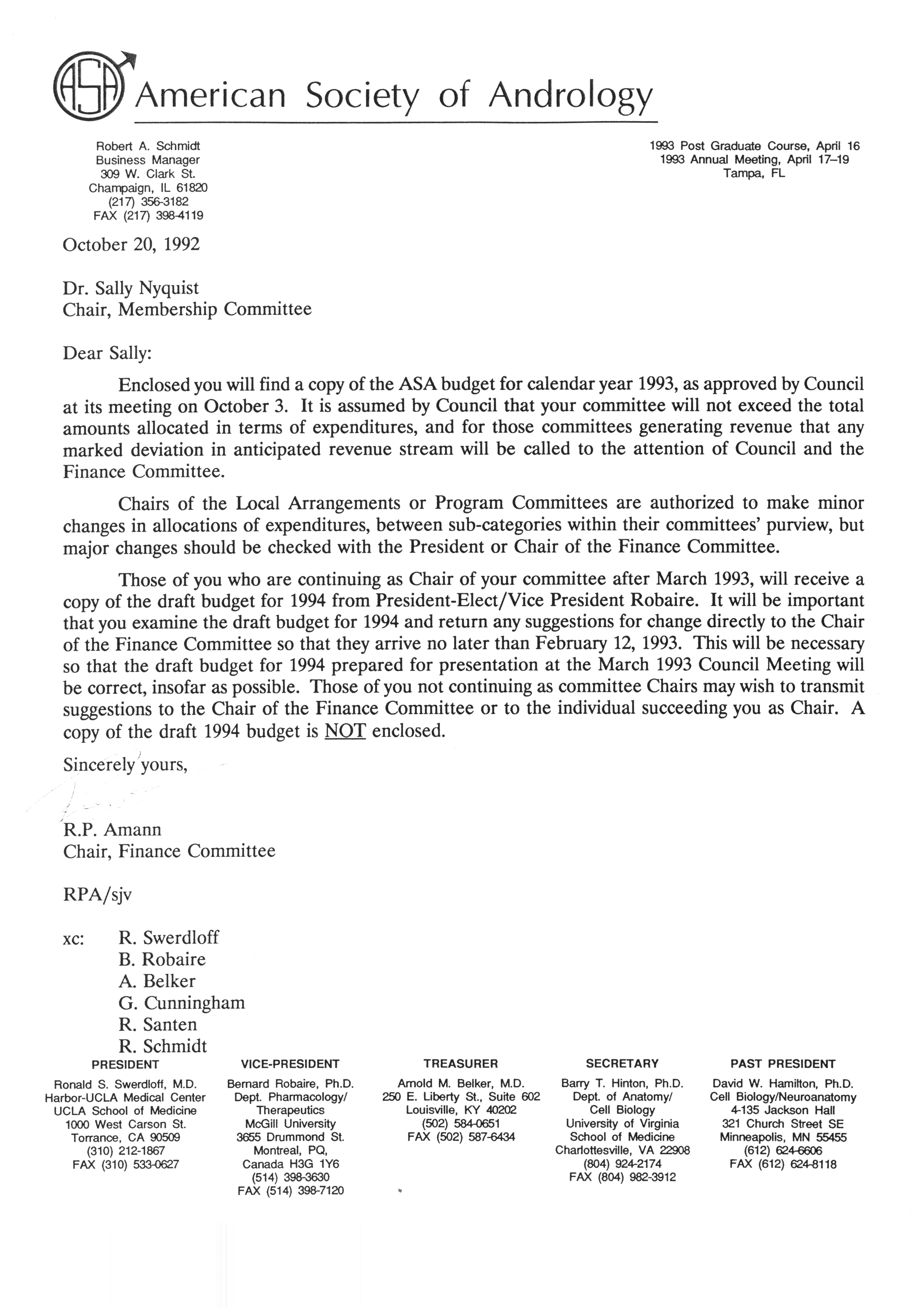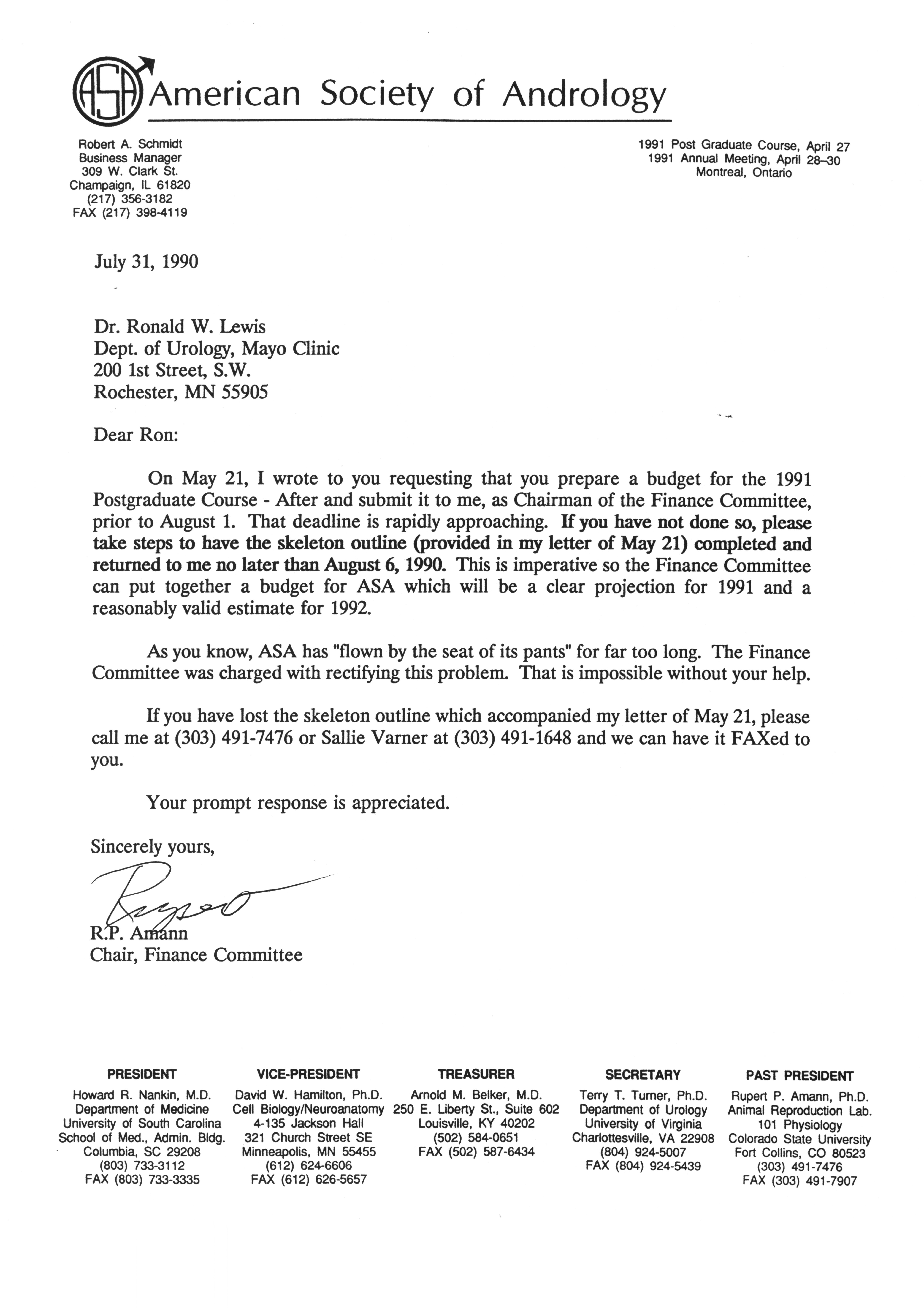 - "Finance Committee of the American Society of Andrology, 1990-95", American Society of Andrology Collection, Iowa State University Library Digital Collections