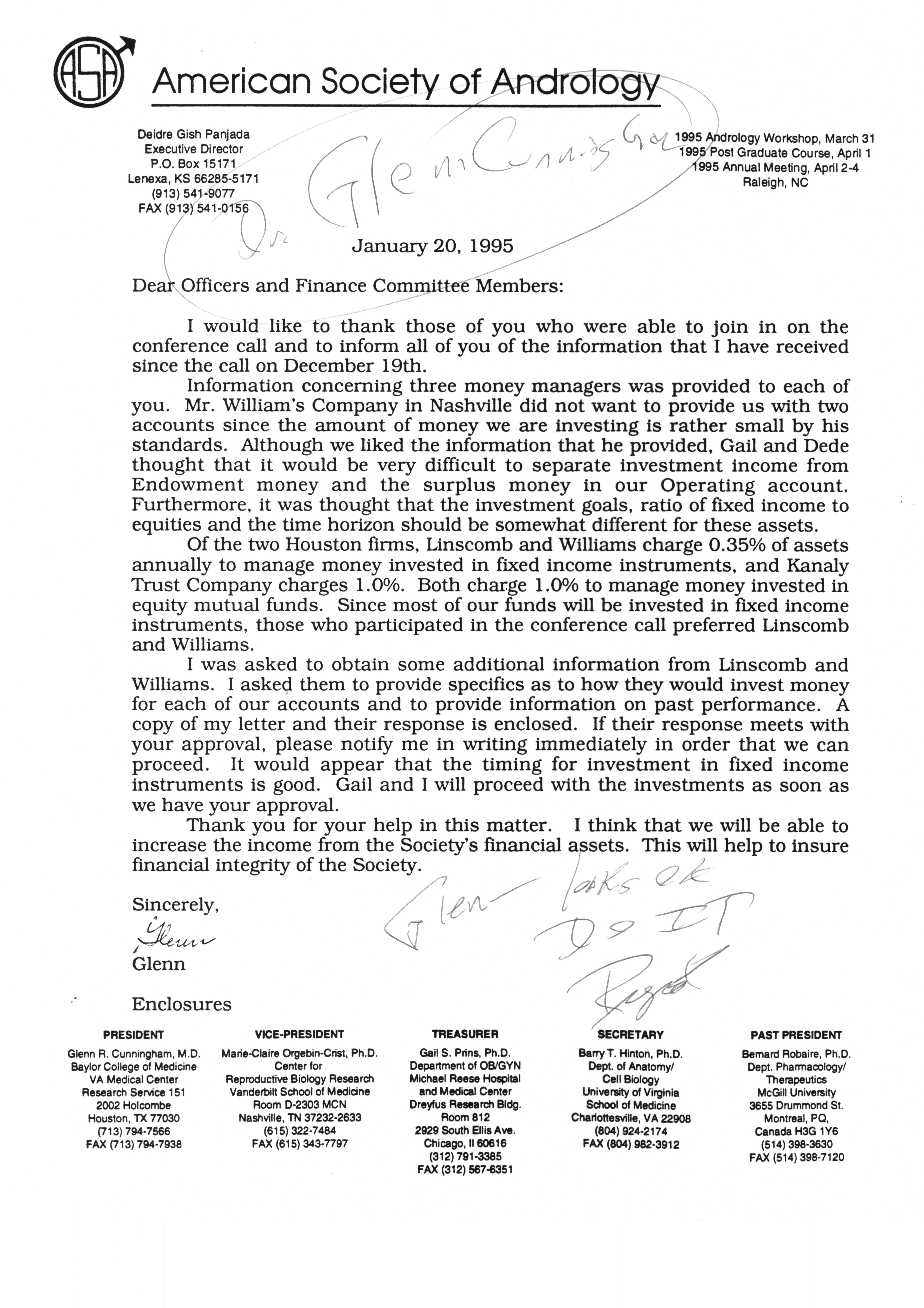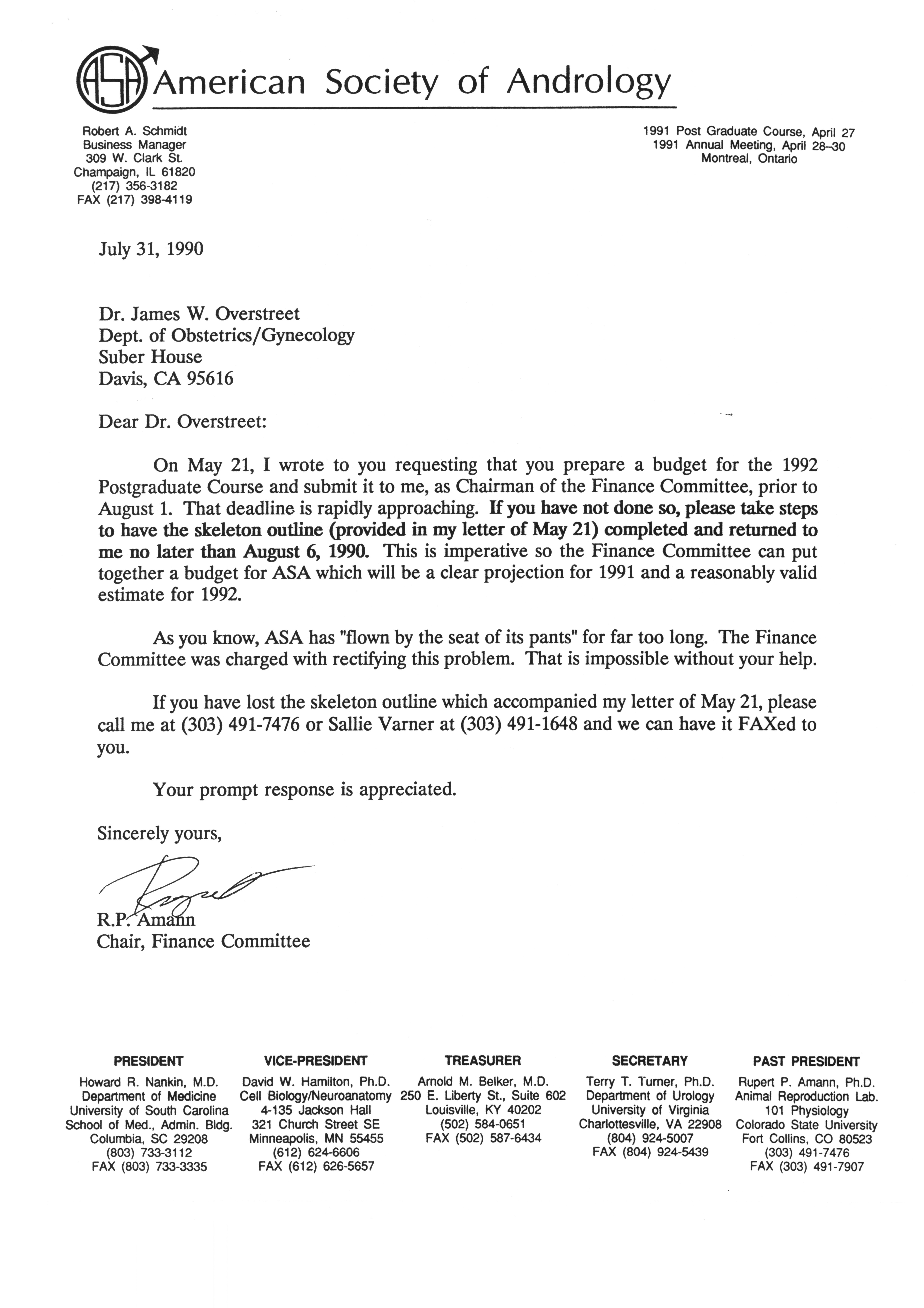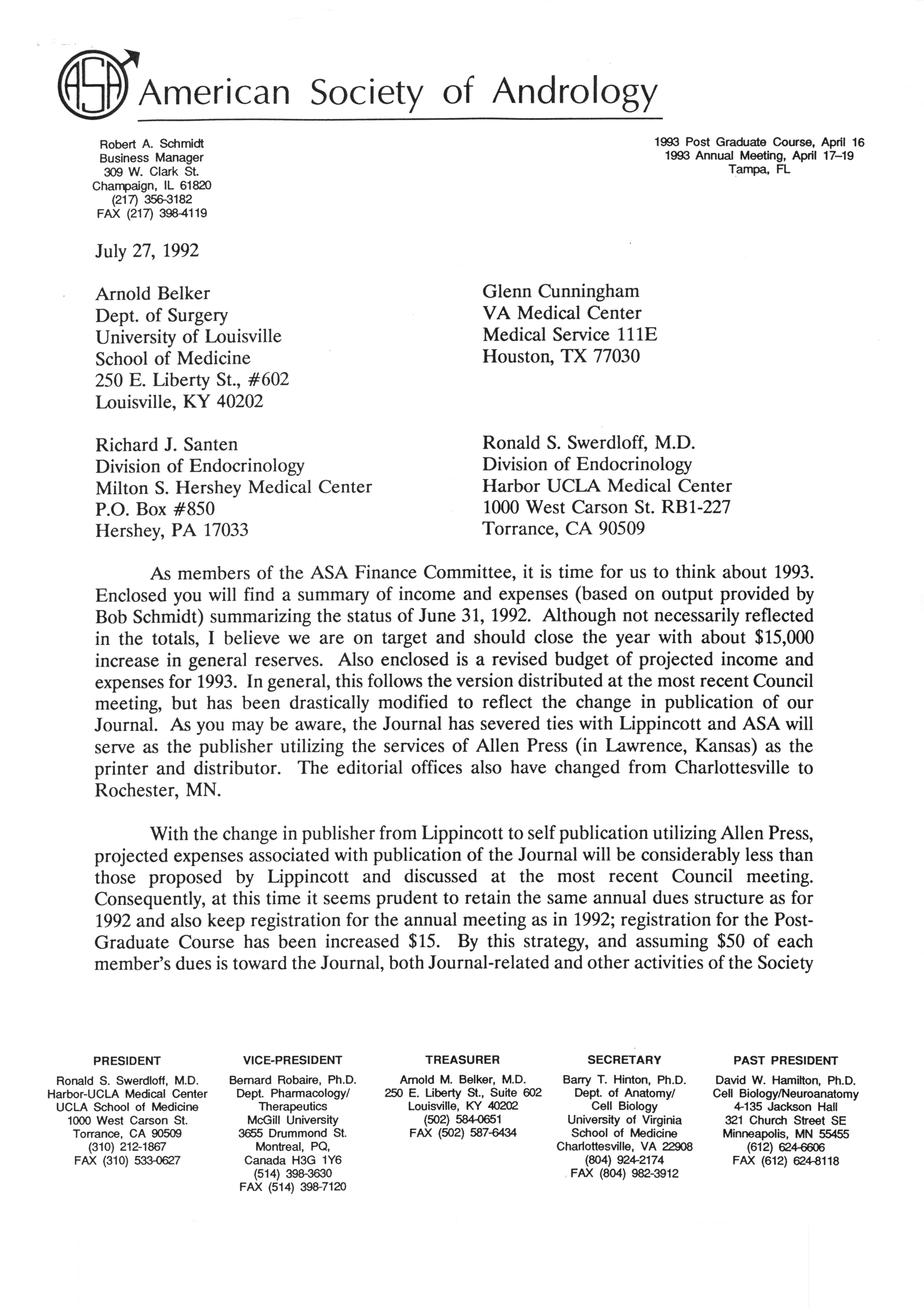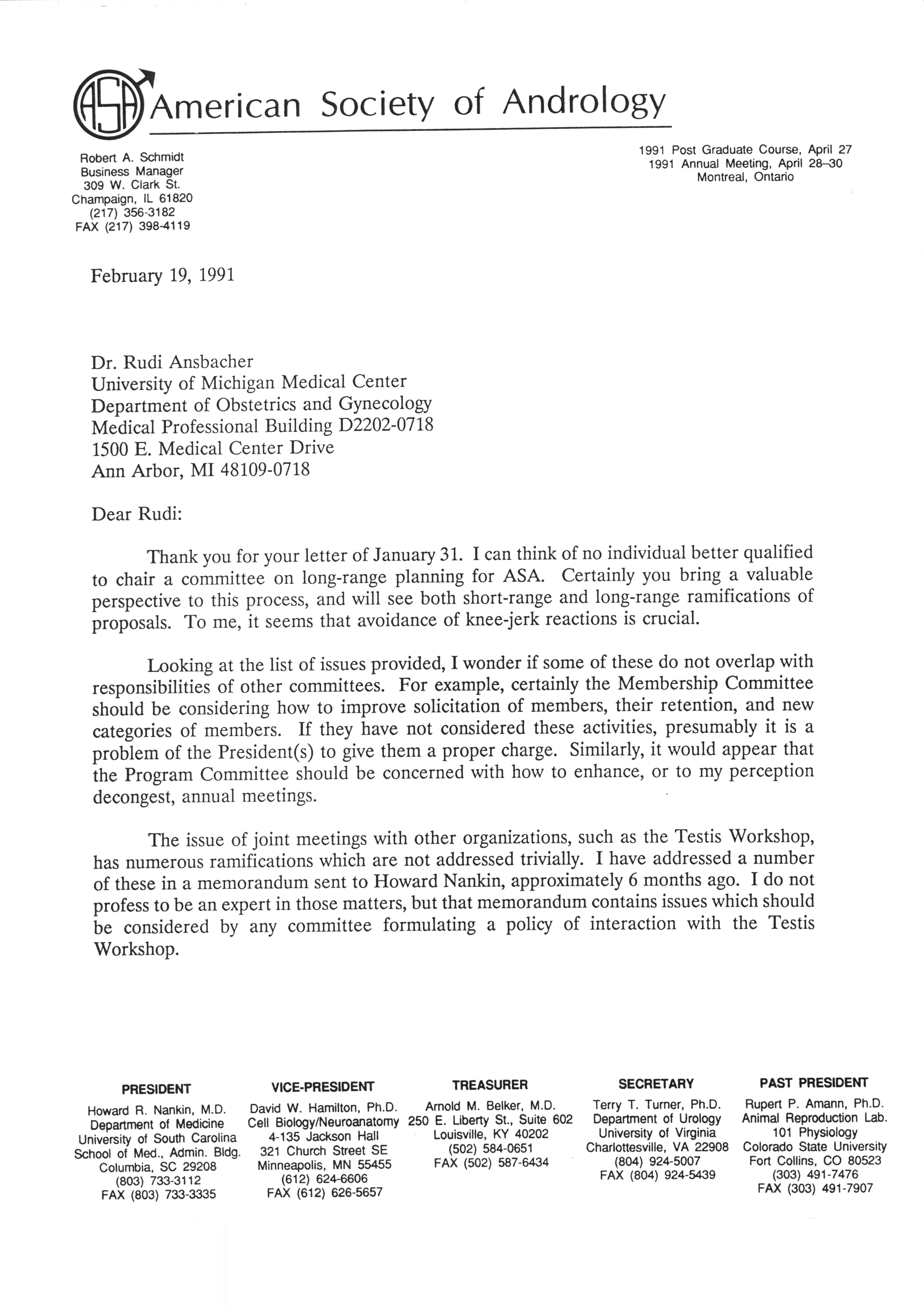 - "Finance Committee of the American Society of Andrology, 1990-95", American Society of Andrology Collection, Iowa State University Library Digital Collections