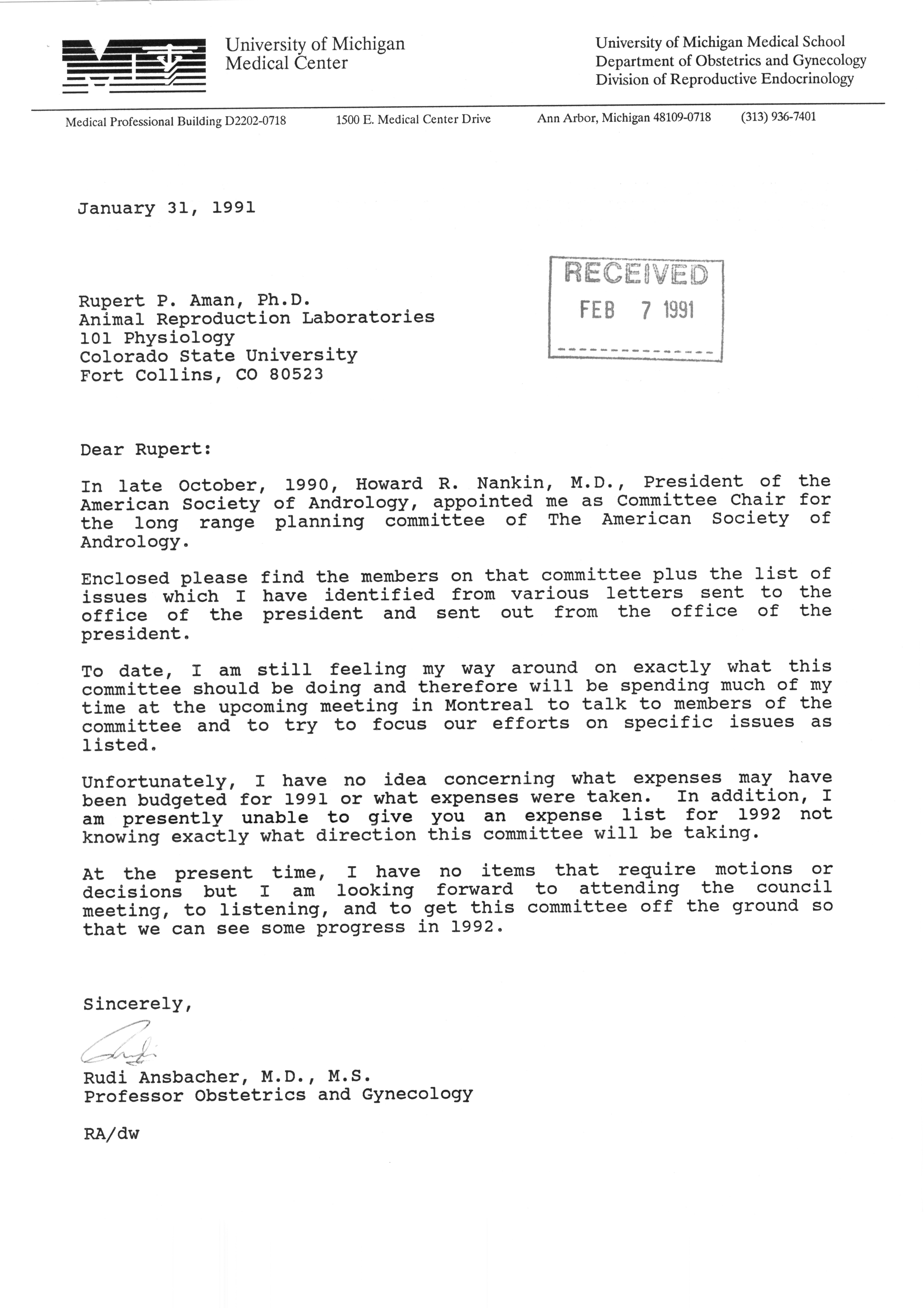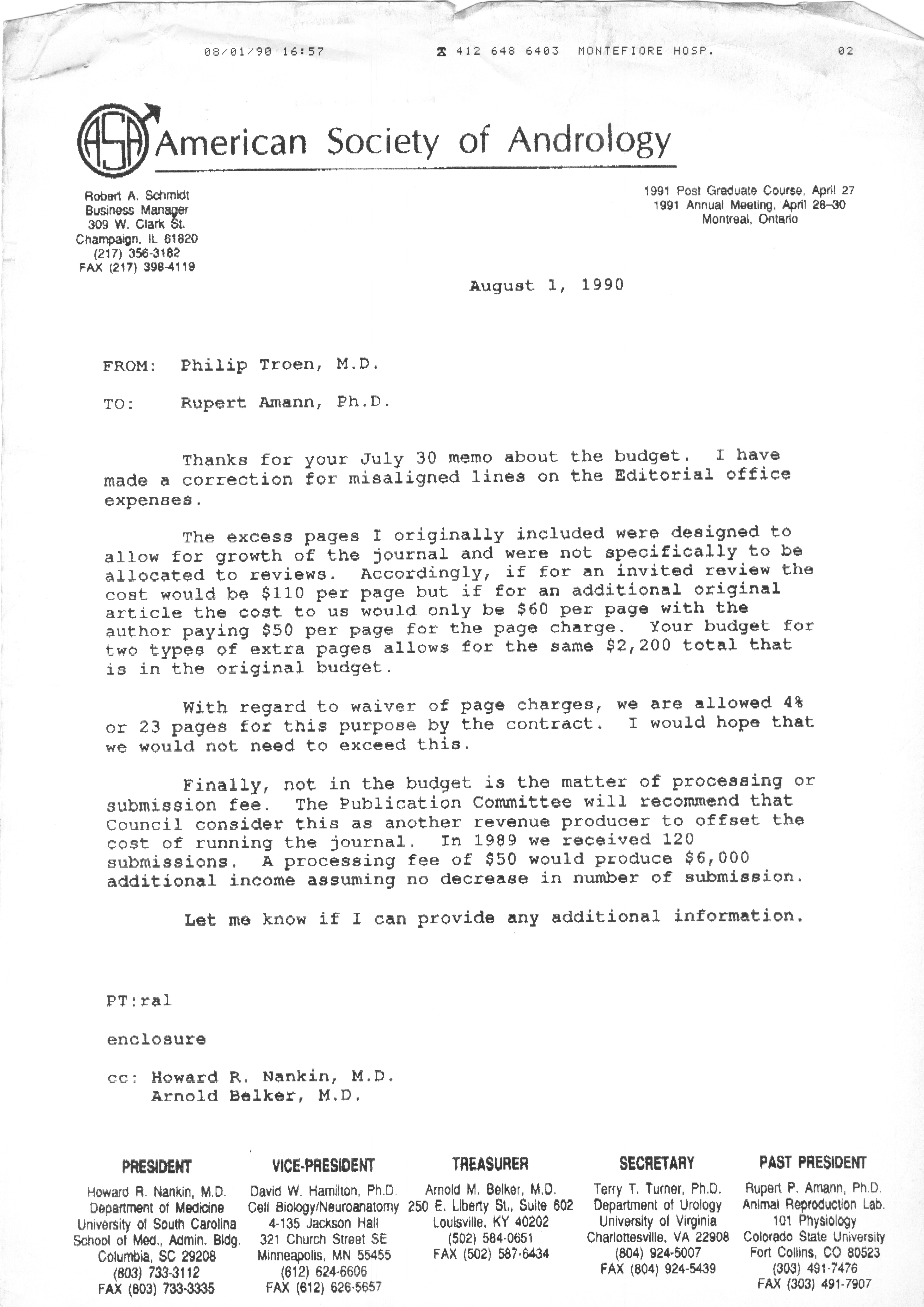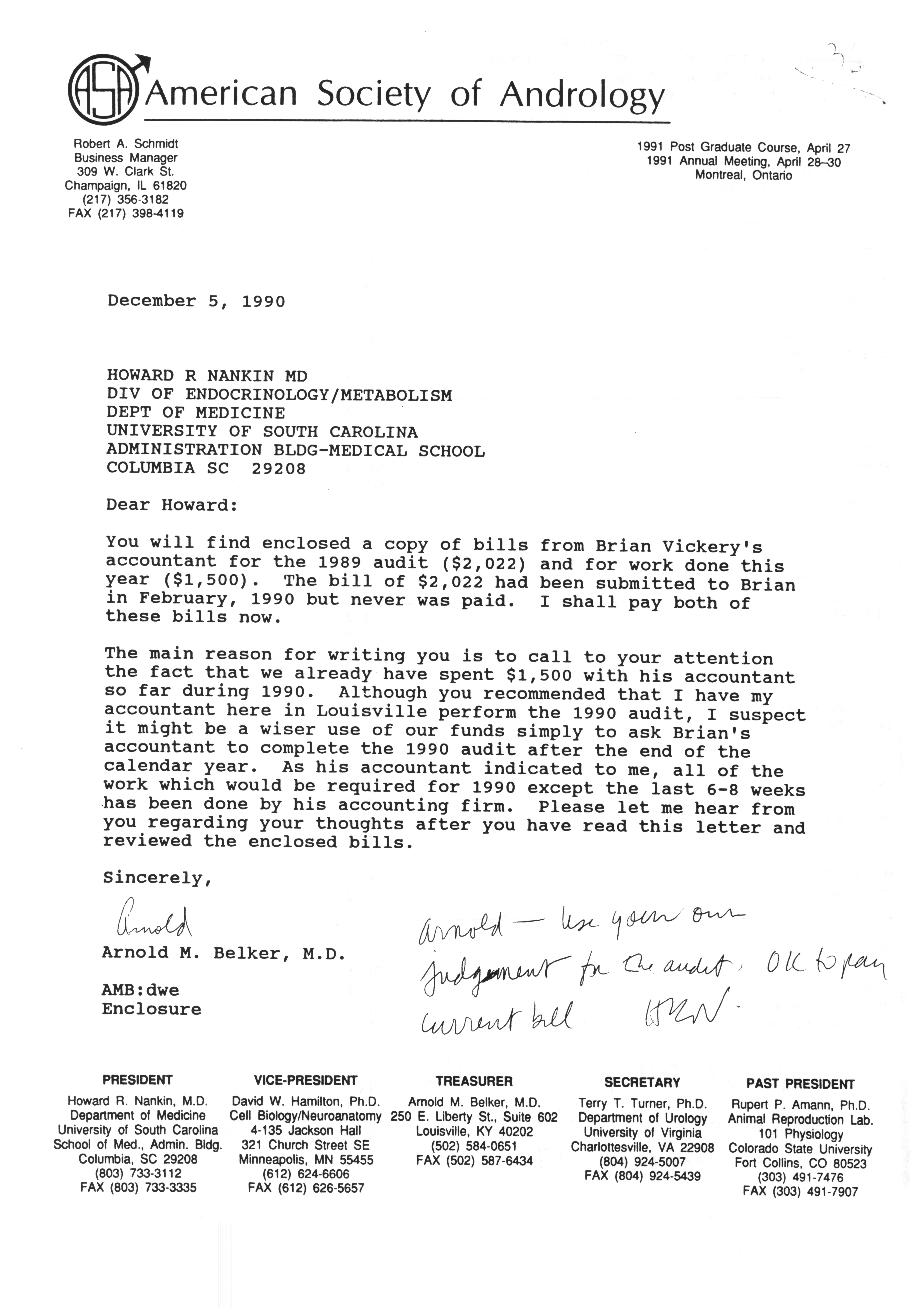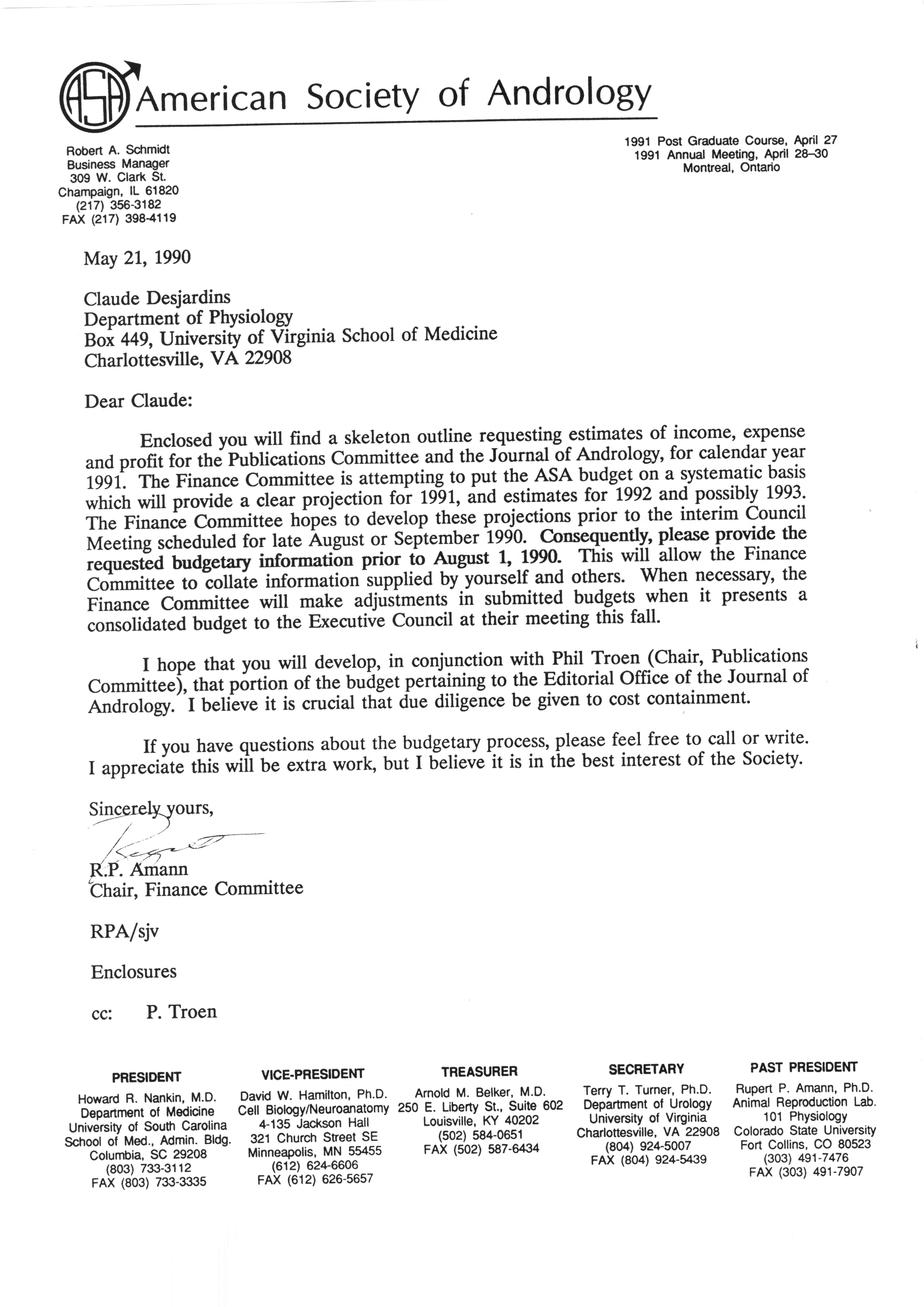 - "Finance Committee of the American Society of Andrology, 1990-95", American Society of Andrology Collection, Iowa State University Library Digital Collections