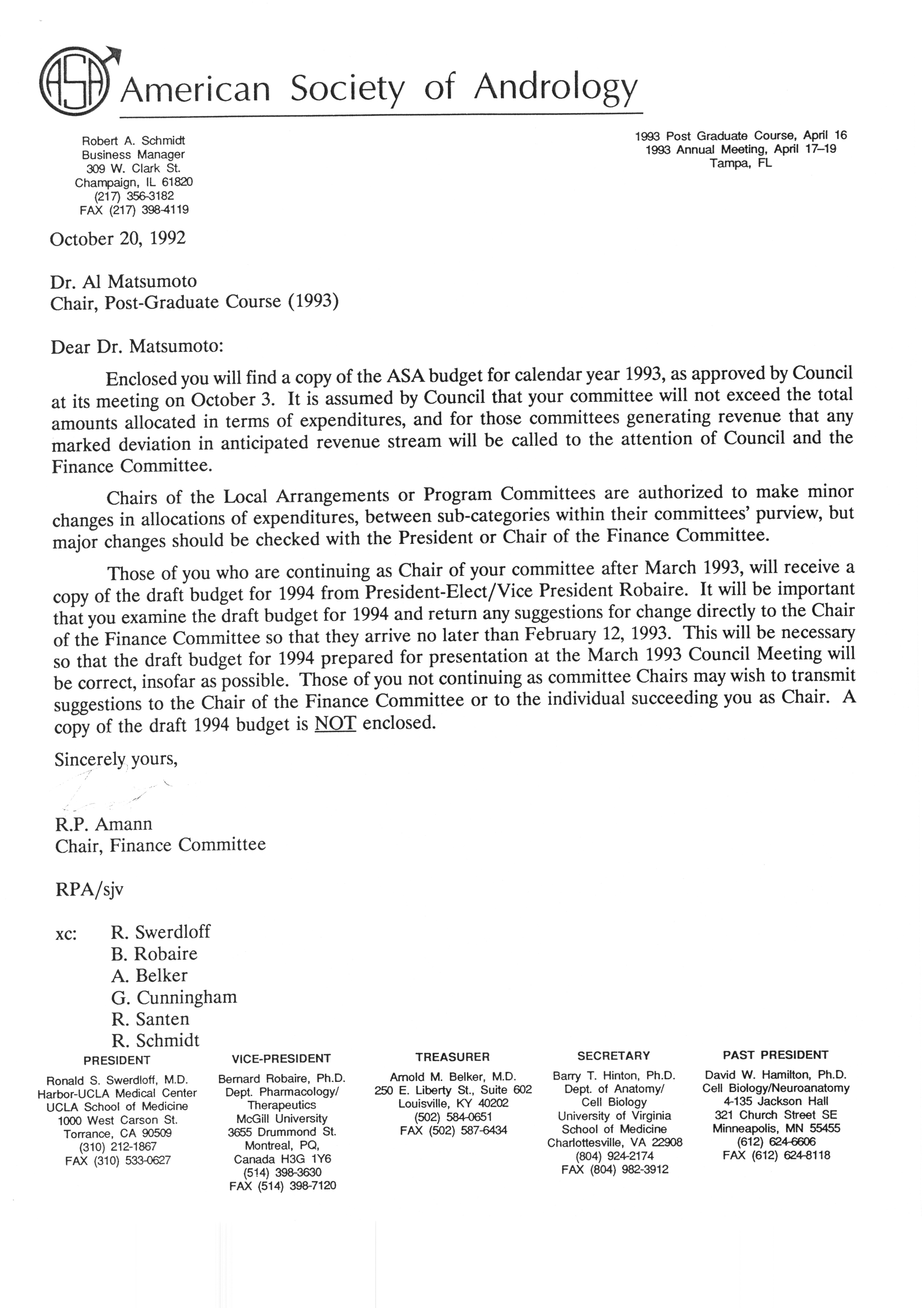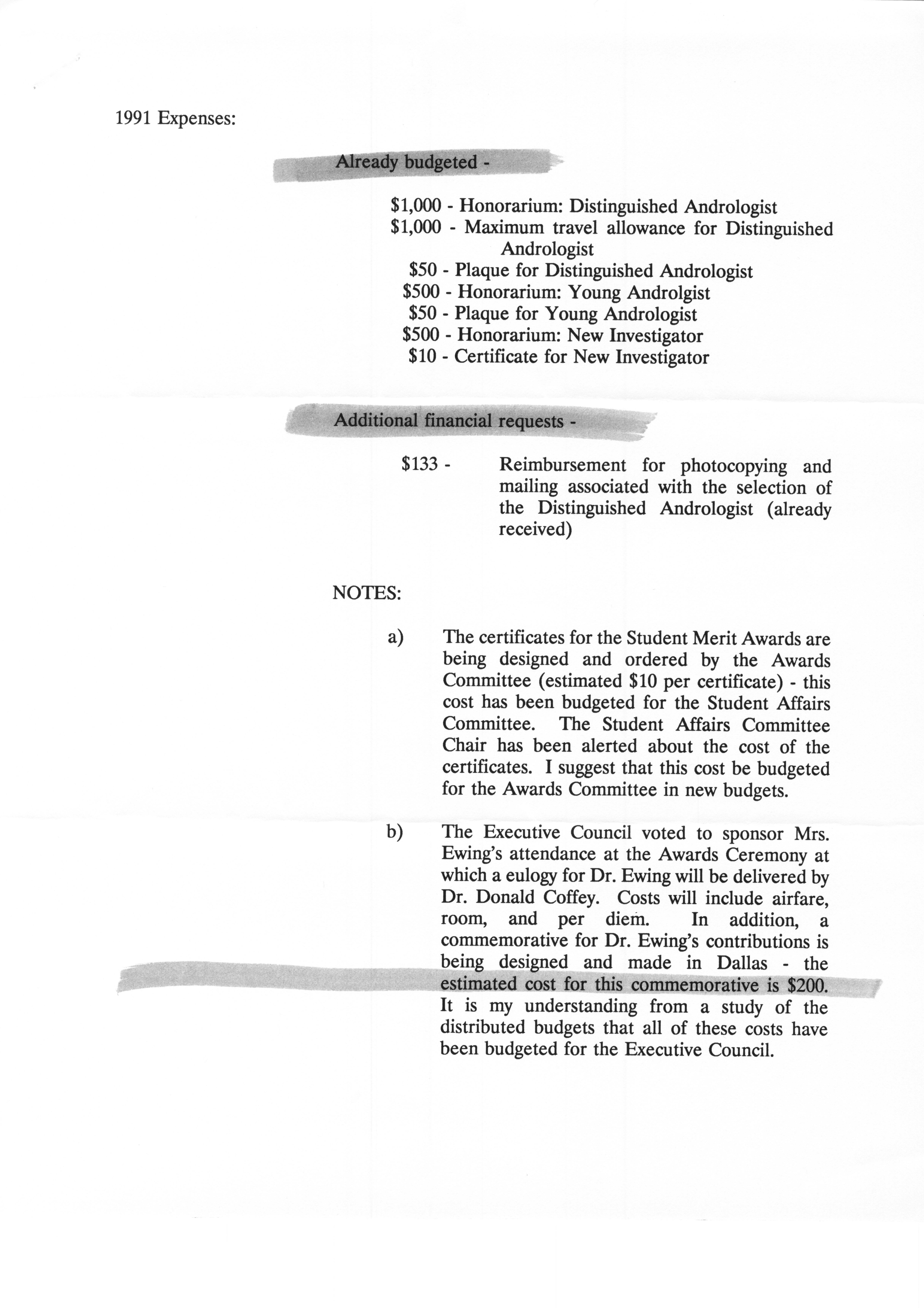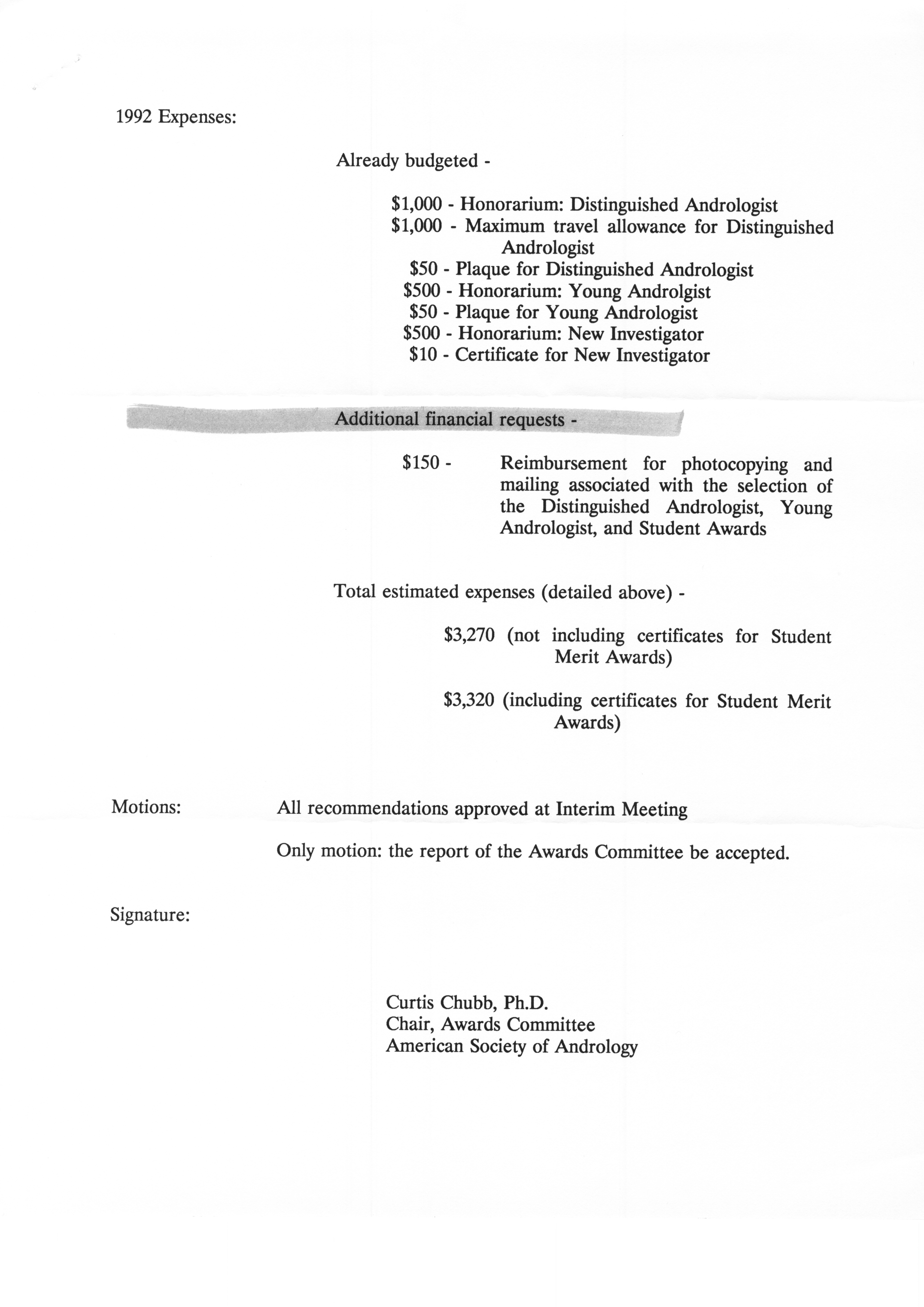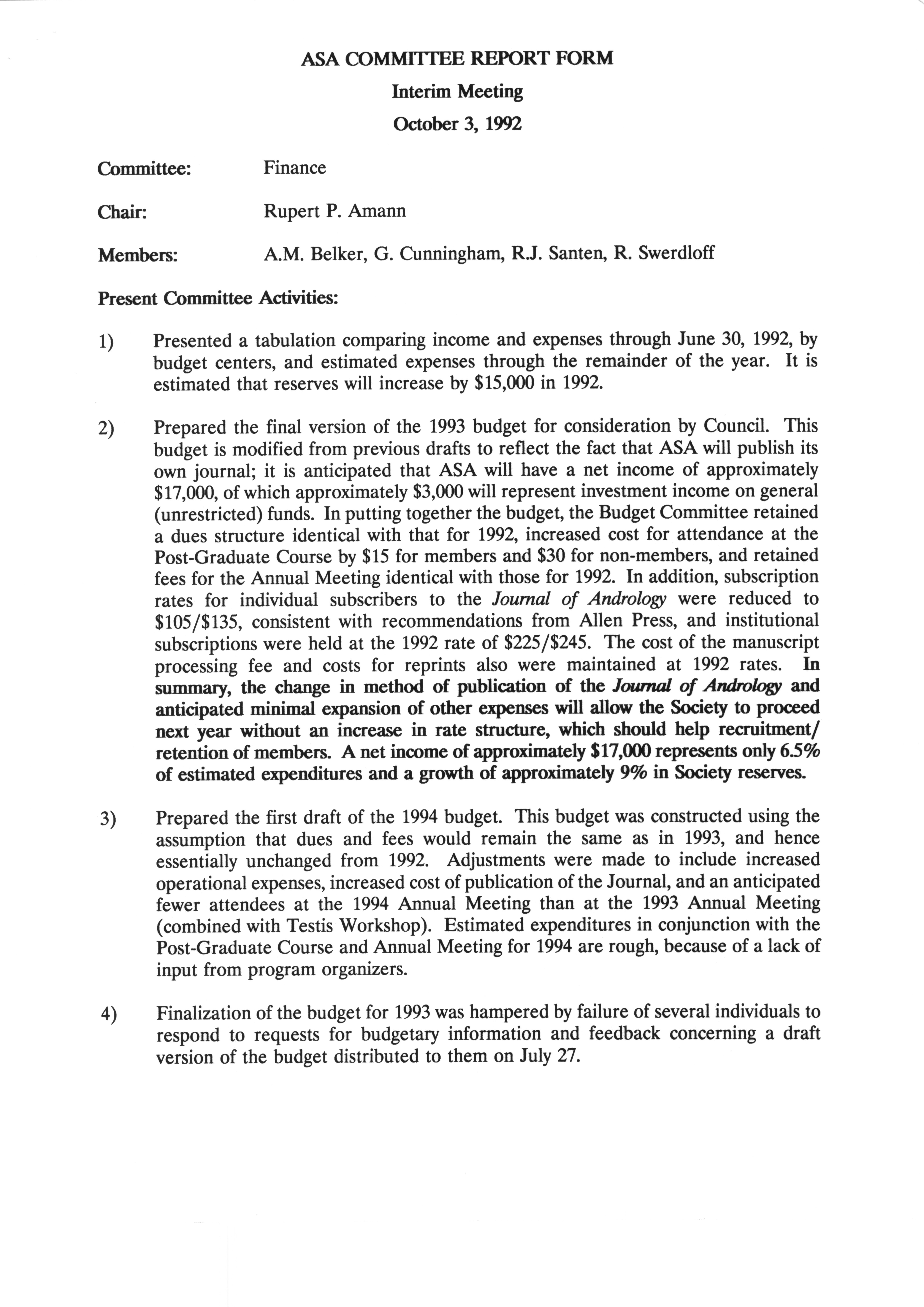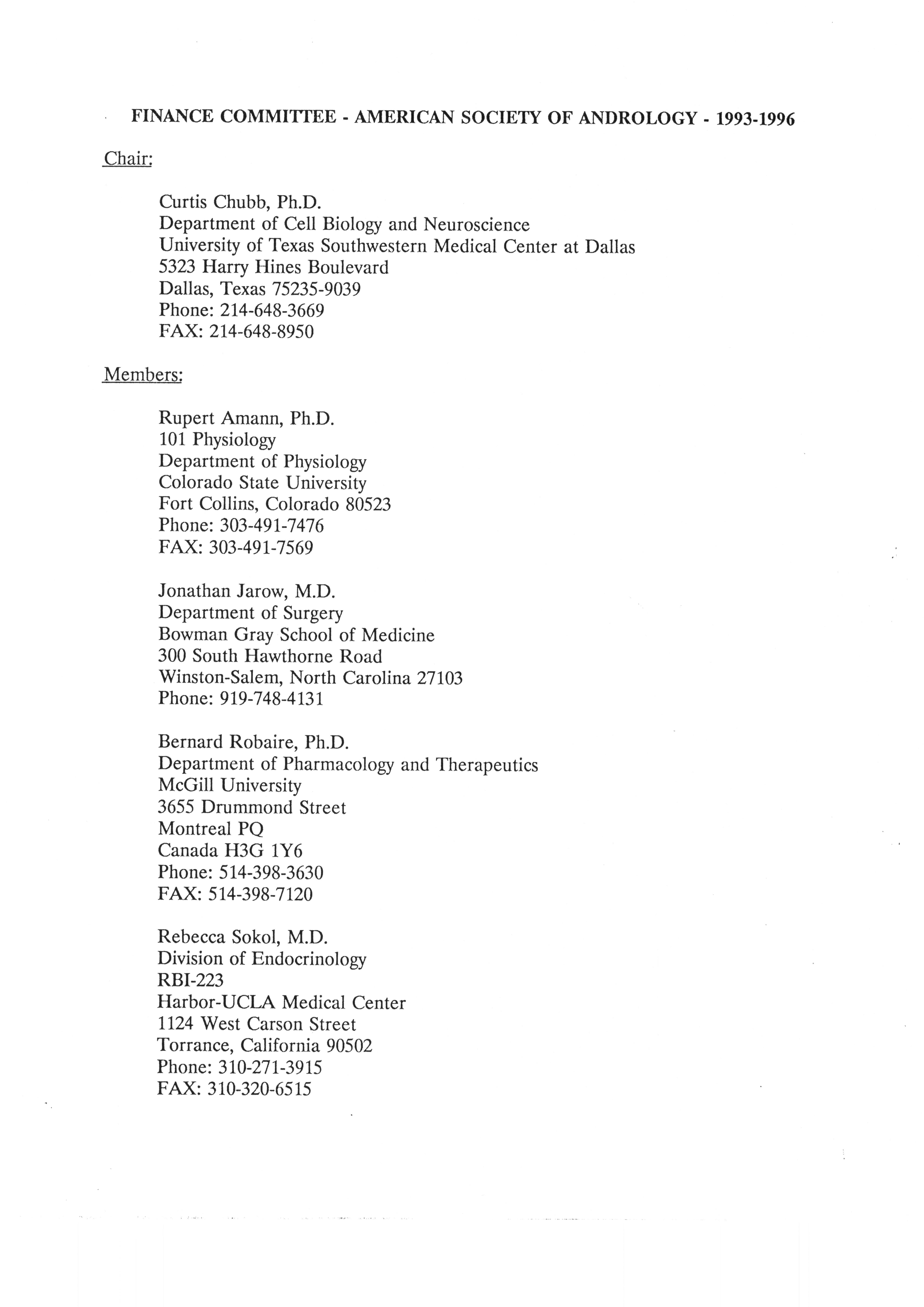 Finance Committee of the American Society of Andrology, 1990-95 Item Info