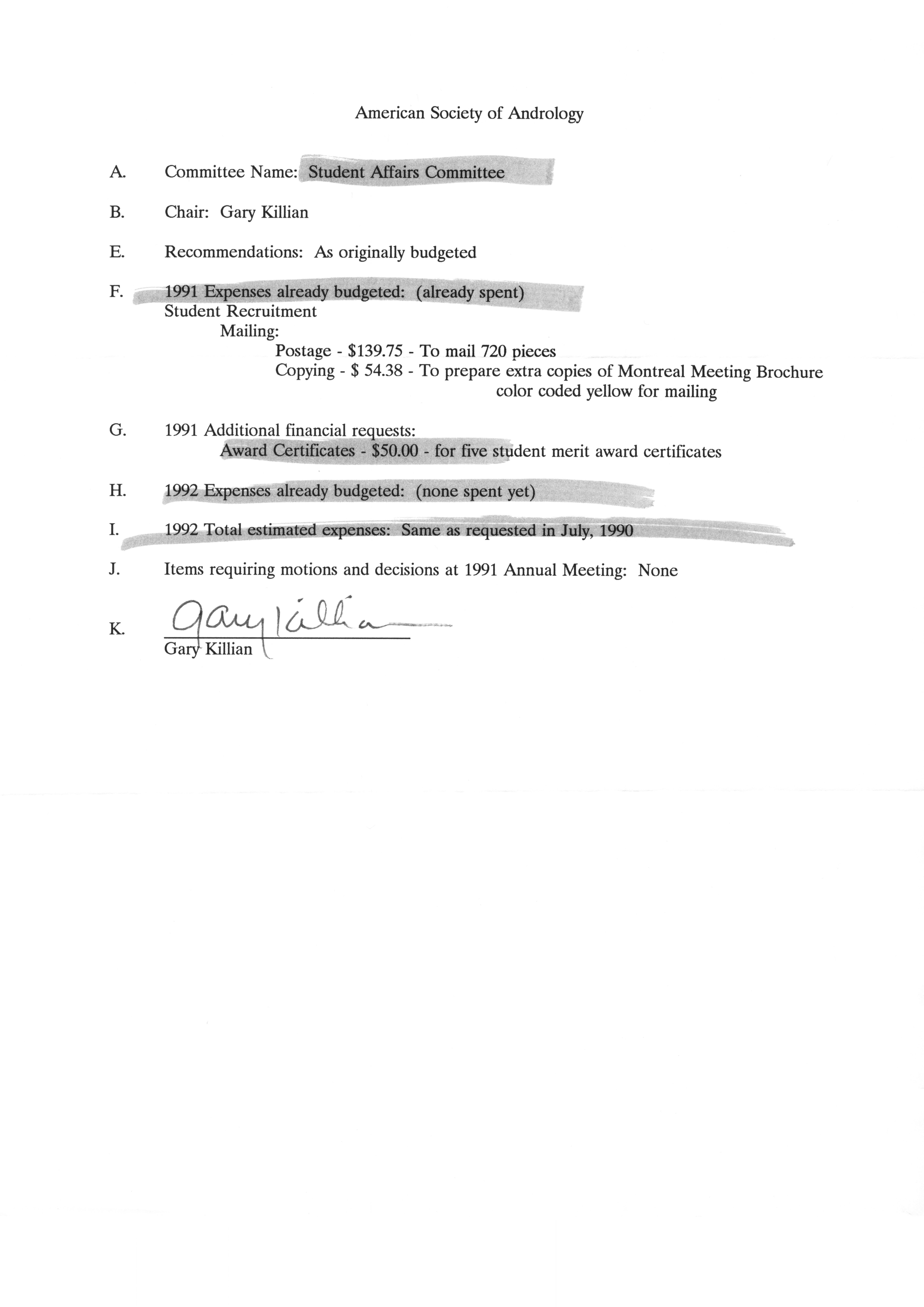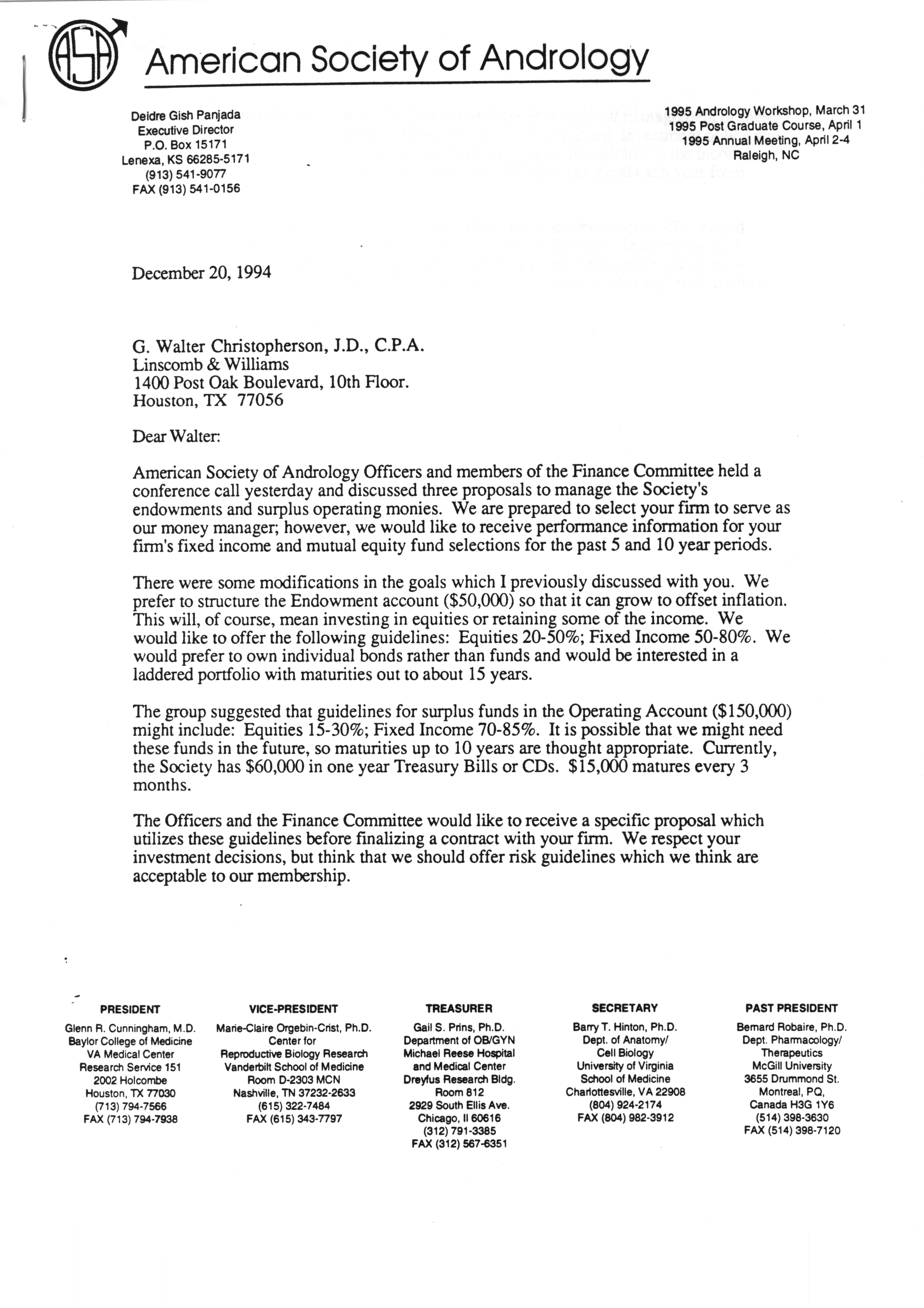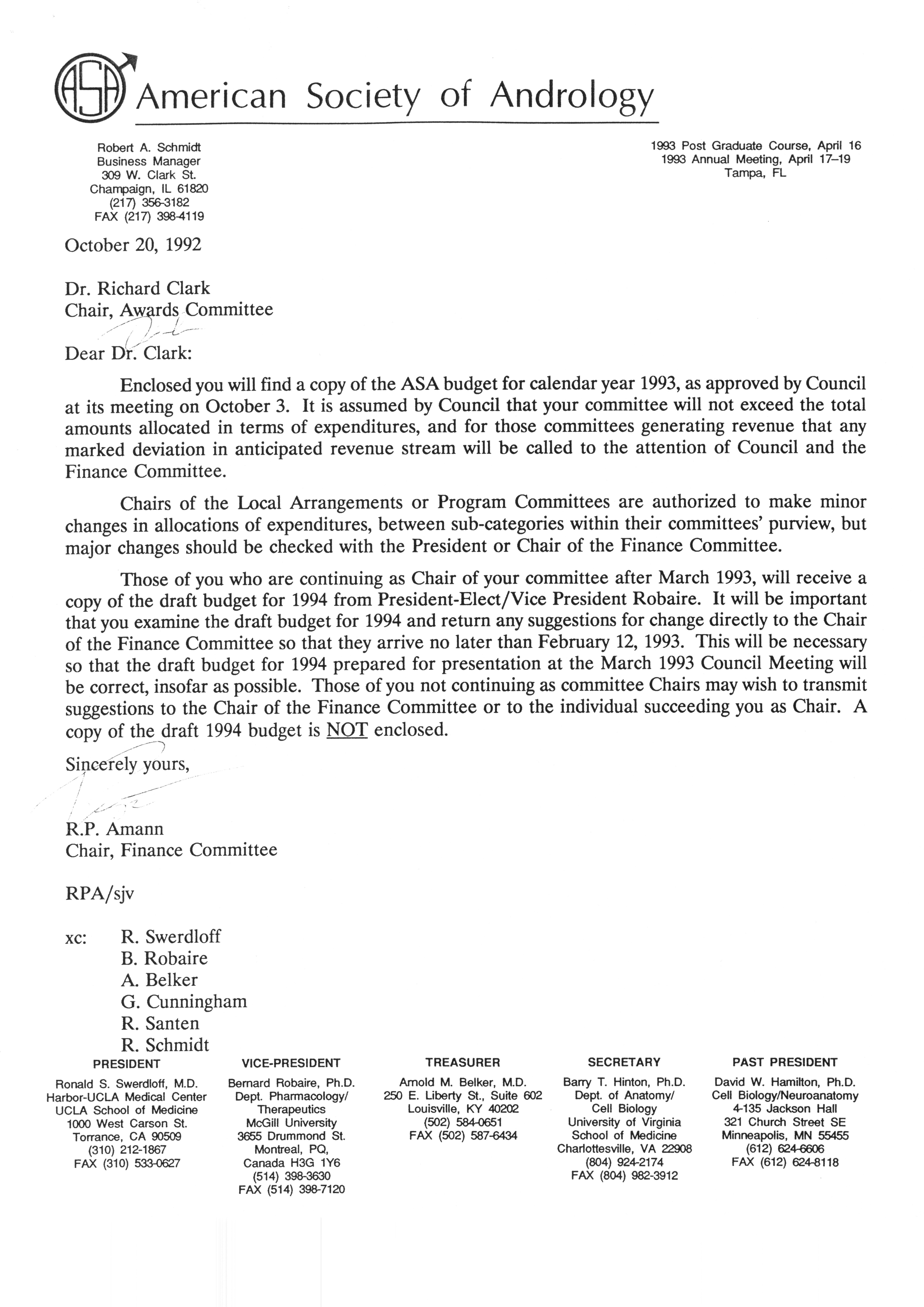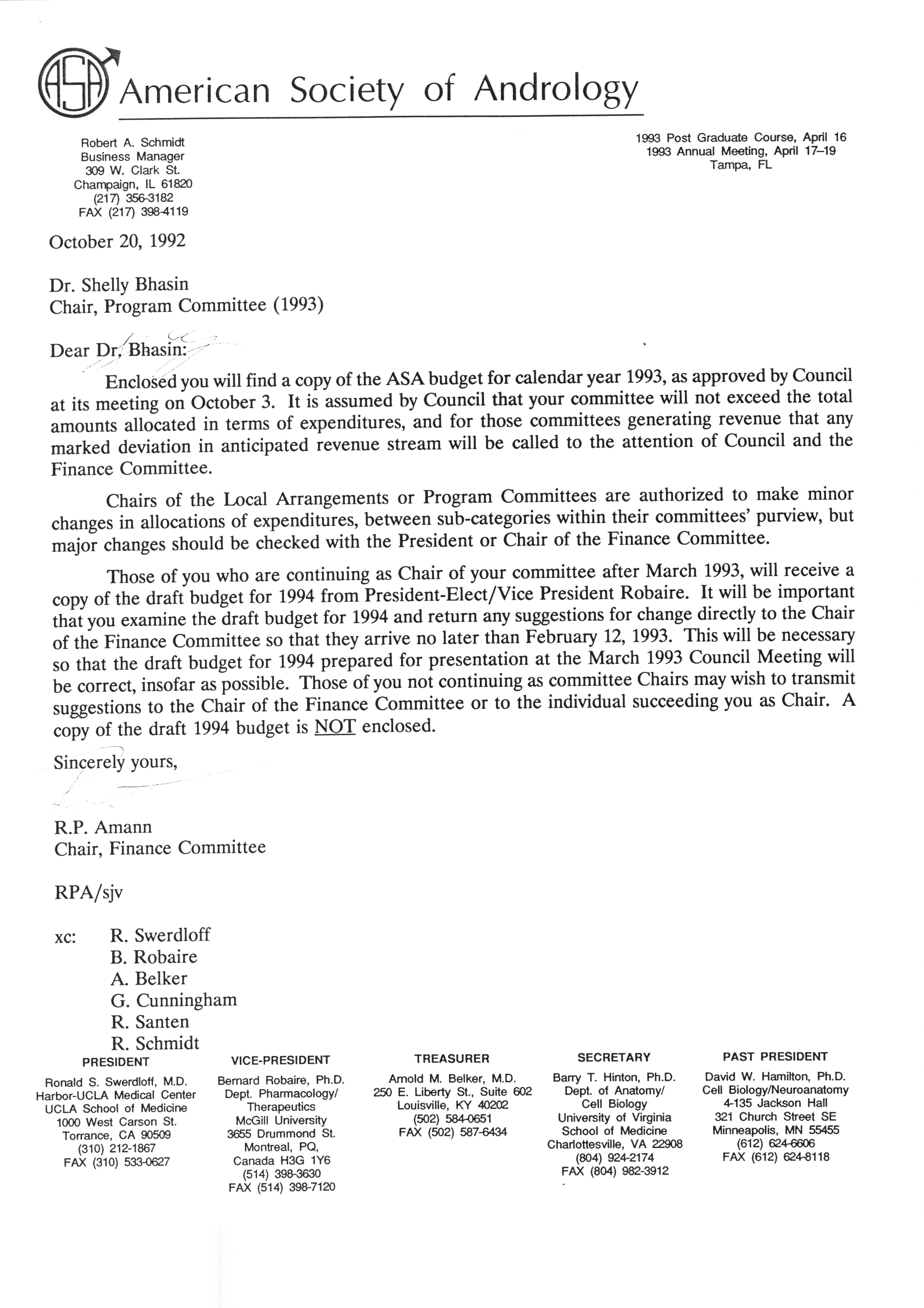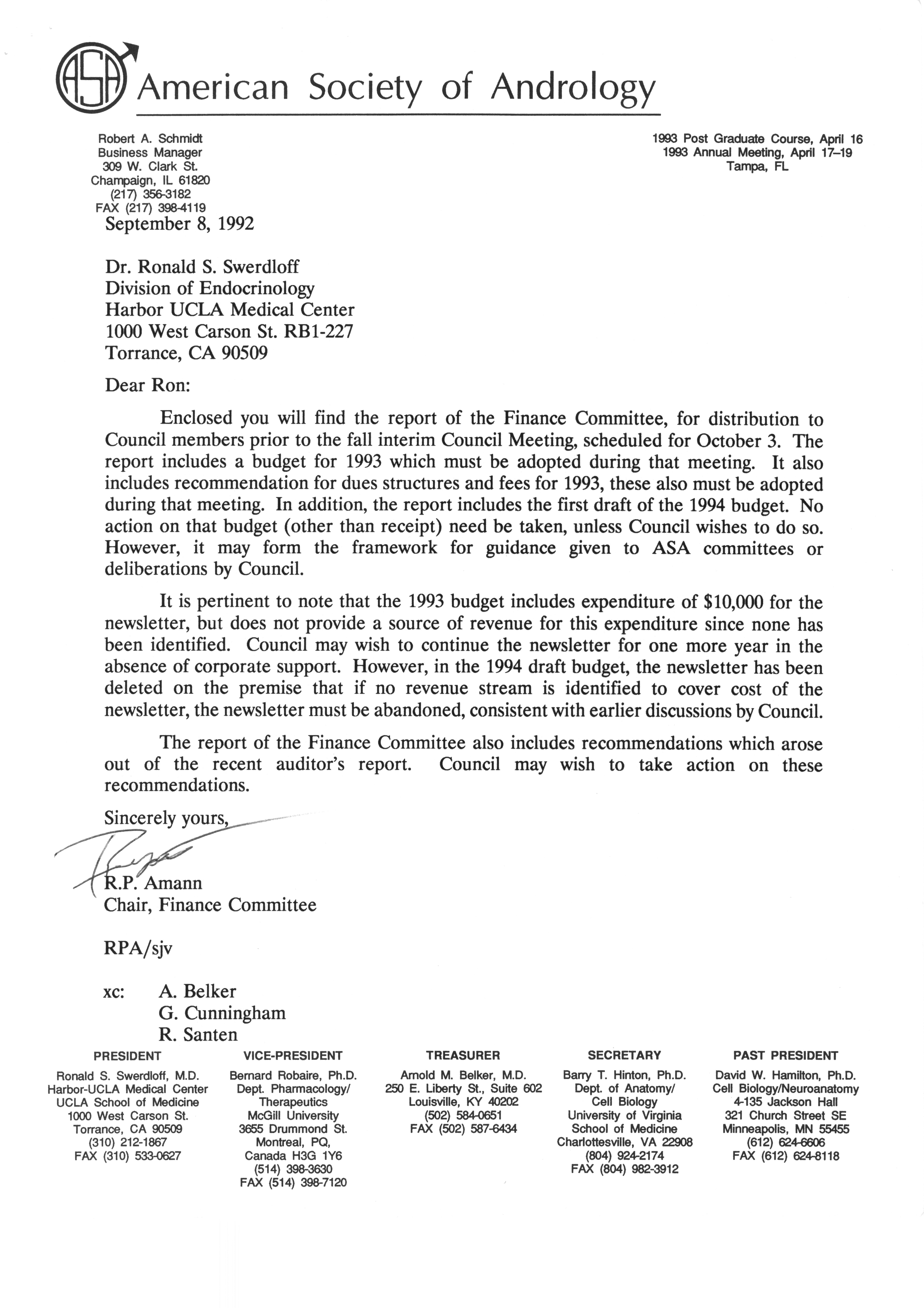 Finance Committee of the American Society of Andrology, 1990-95 Item Info