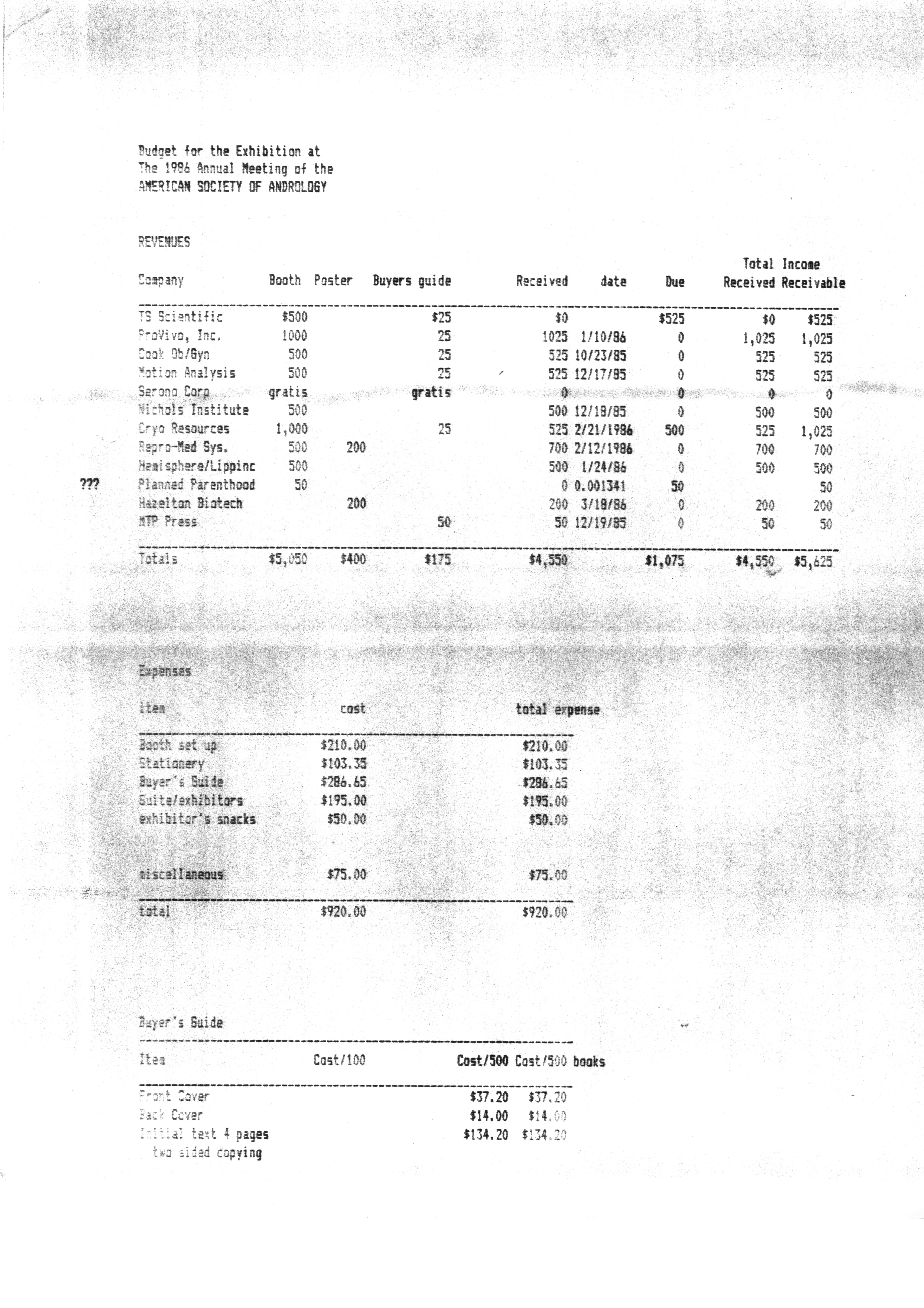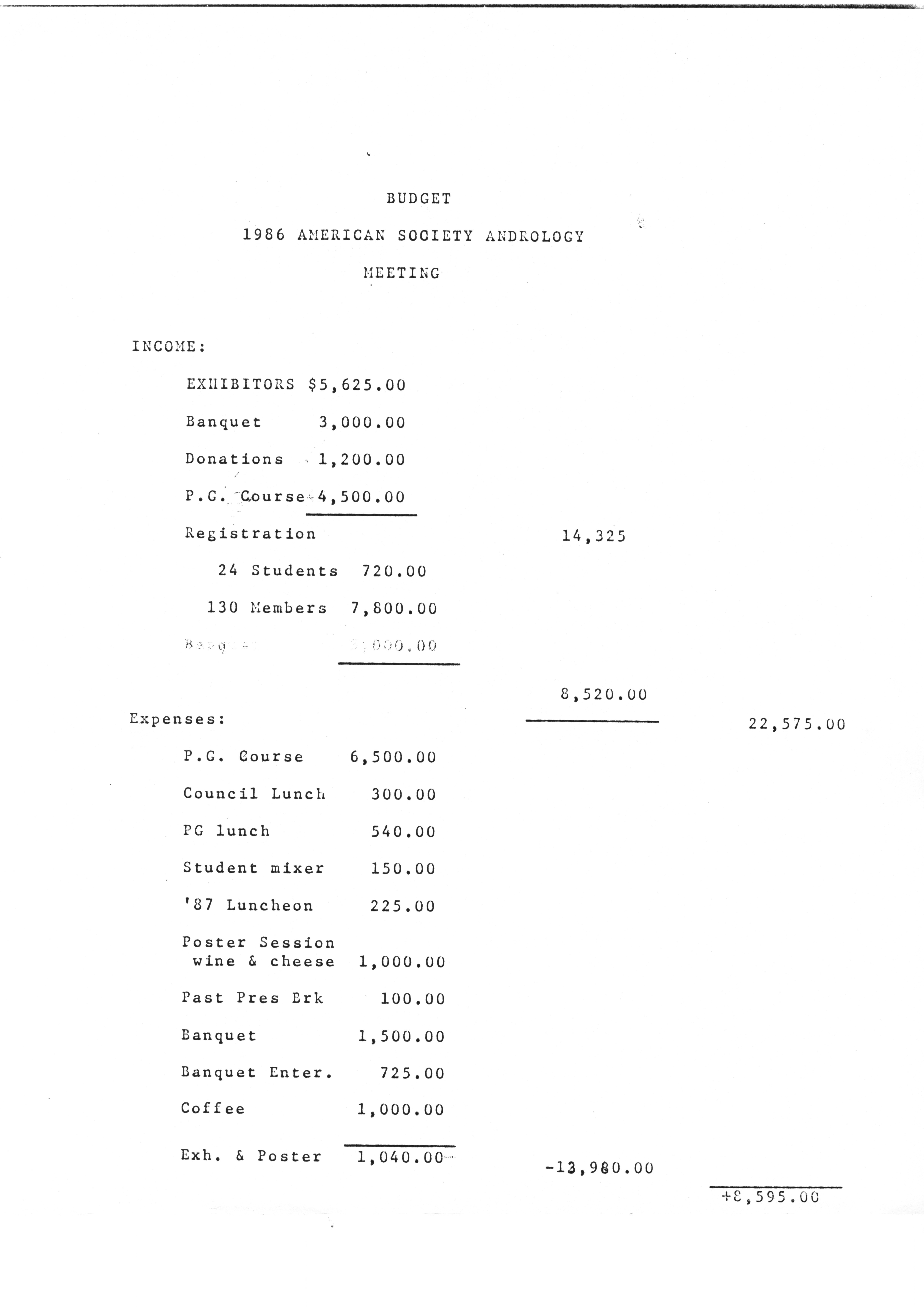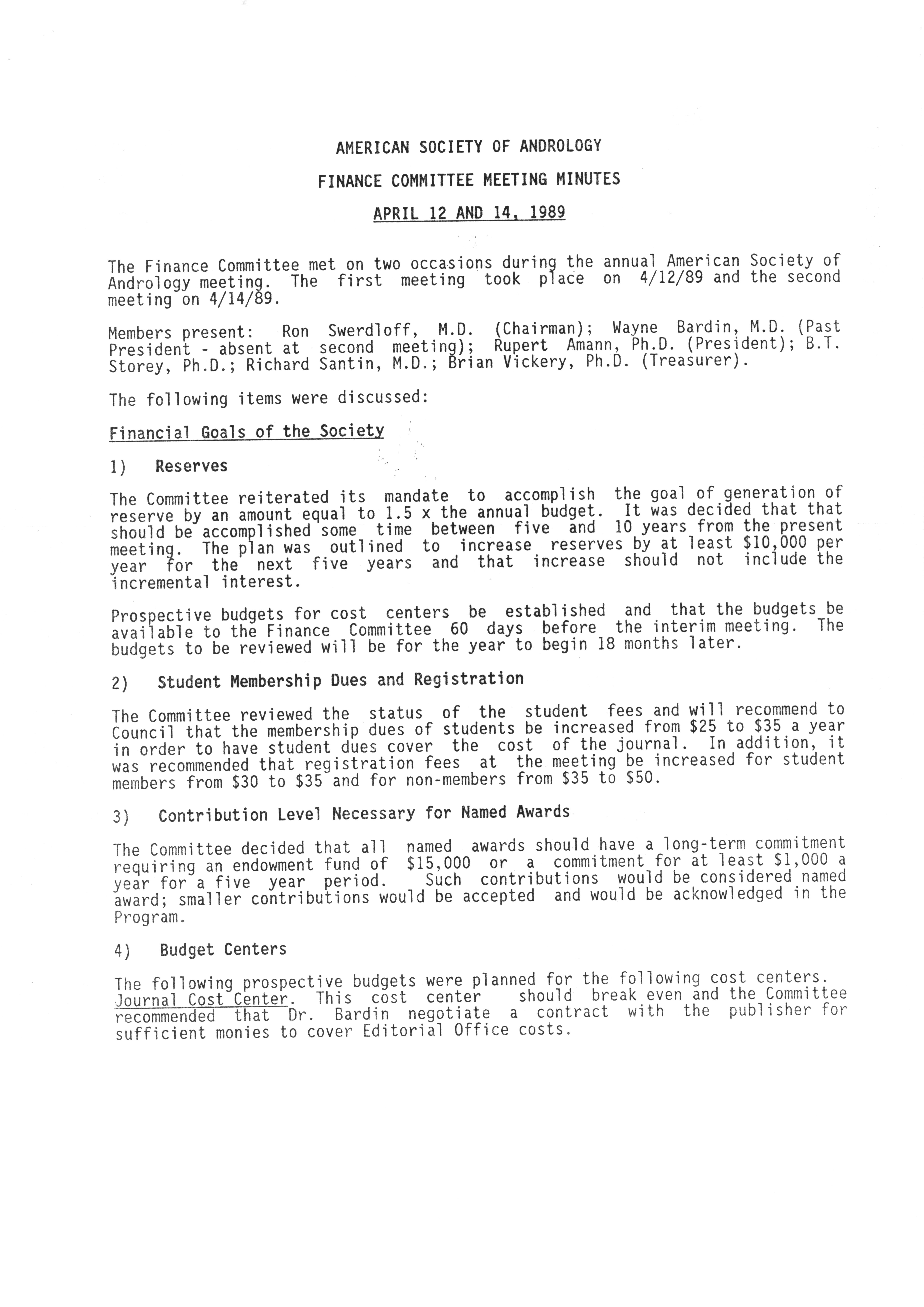 Finance Committee of the American Society of Andrology, 1988-89 Item Info