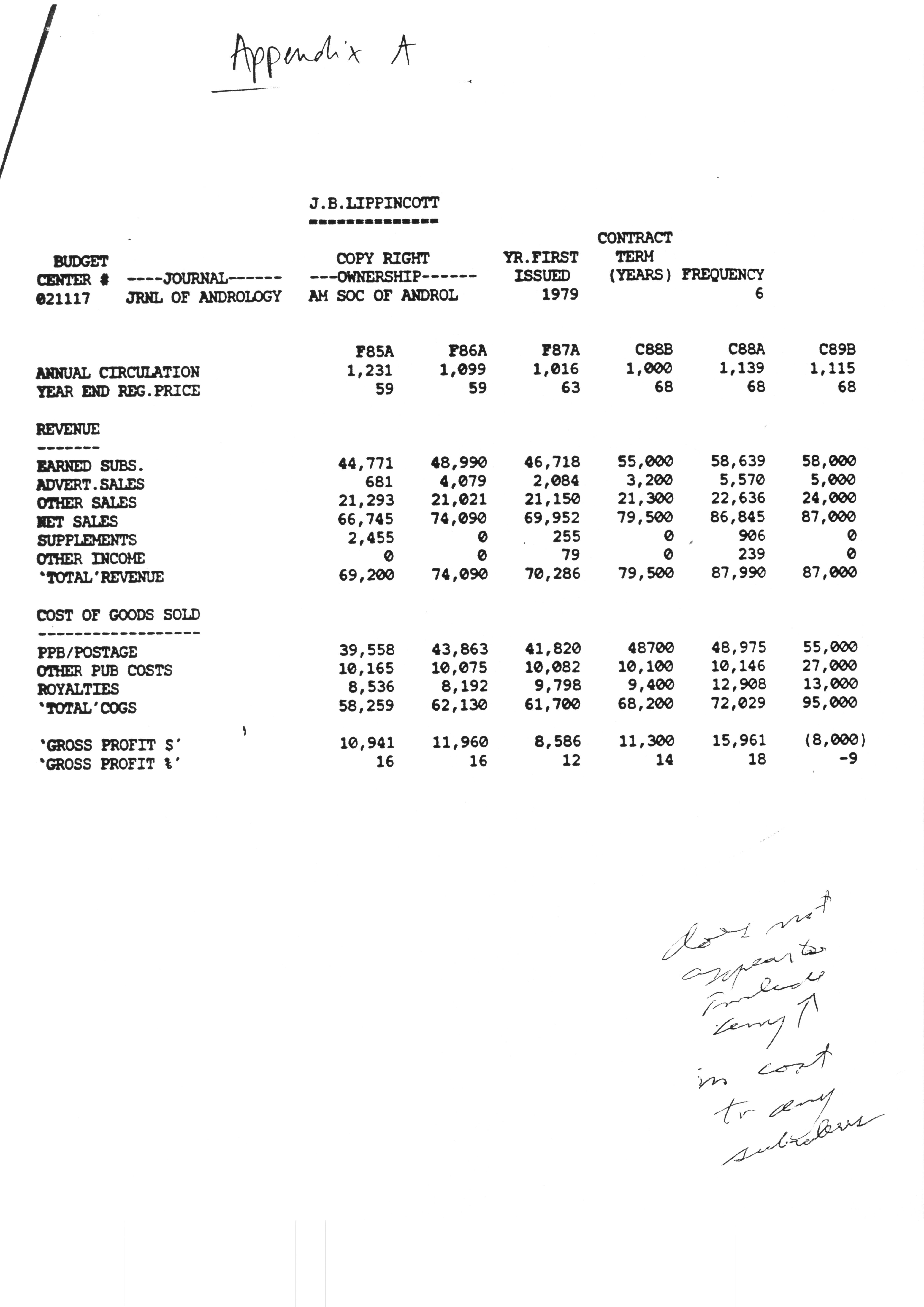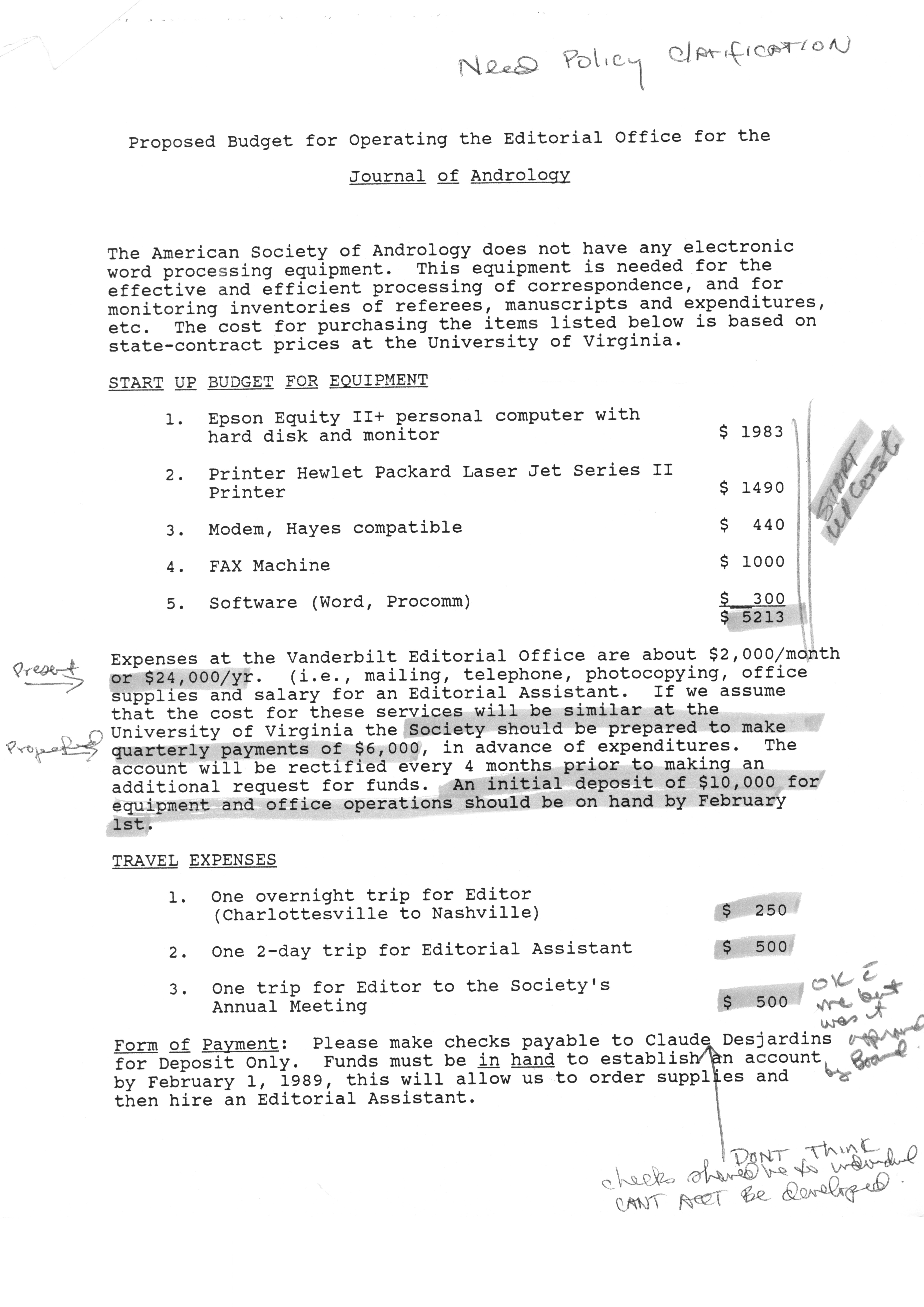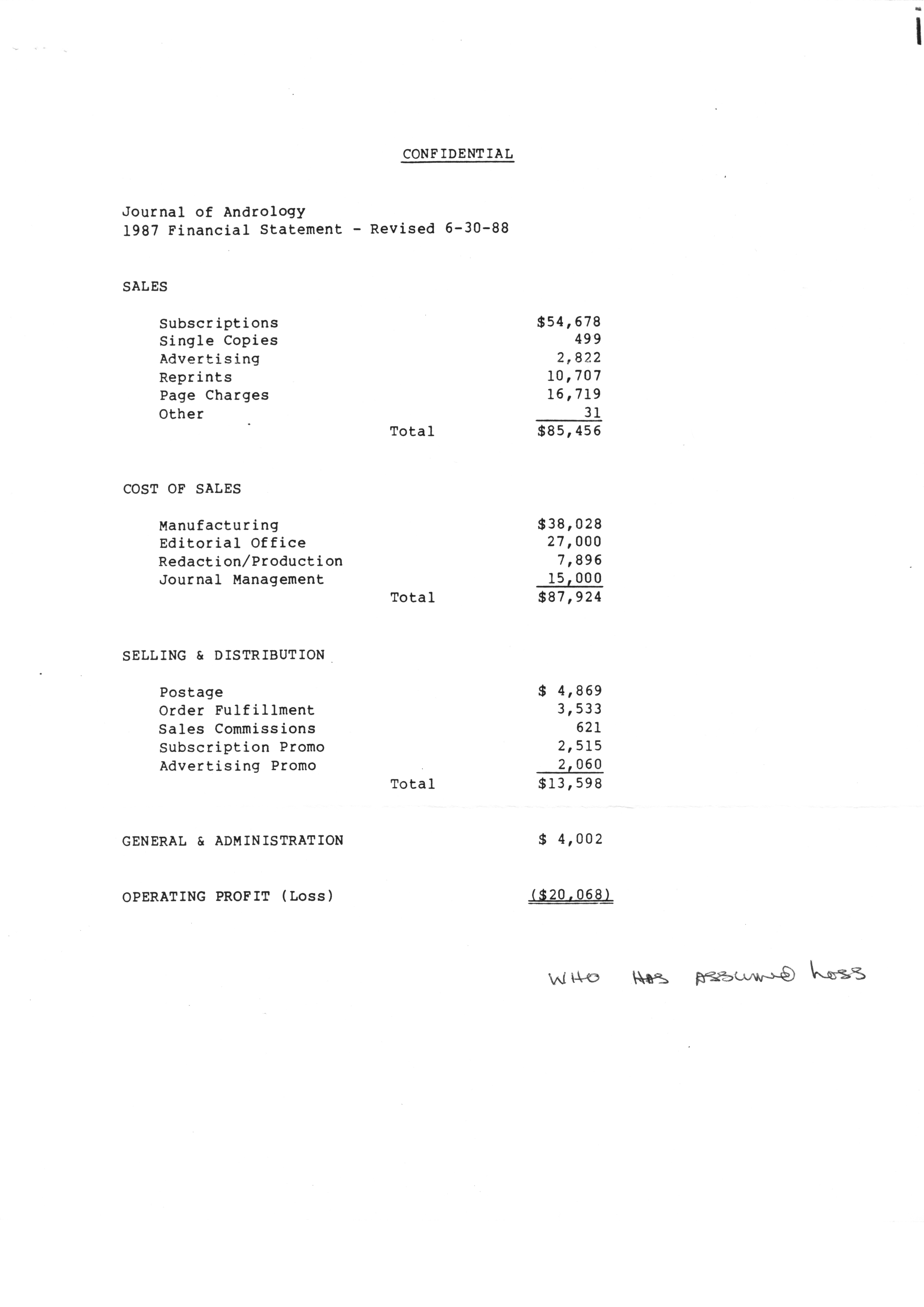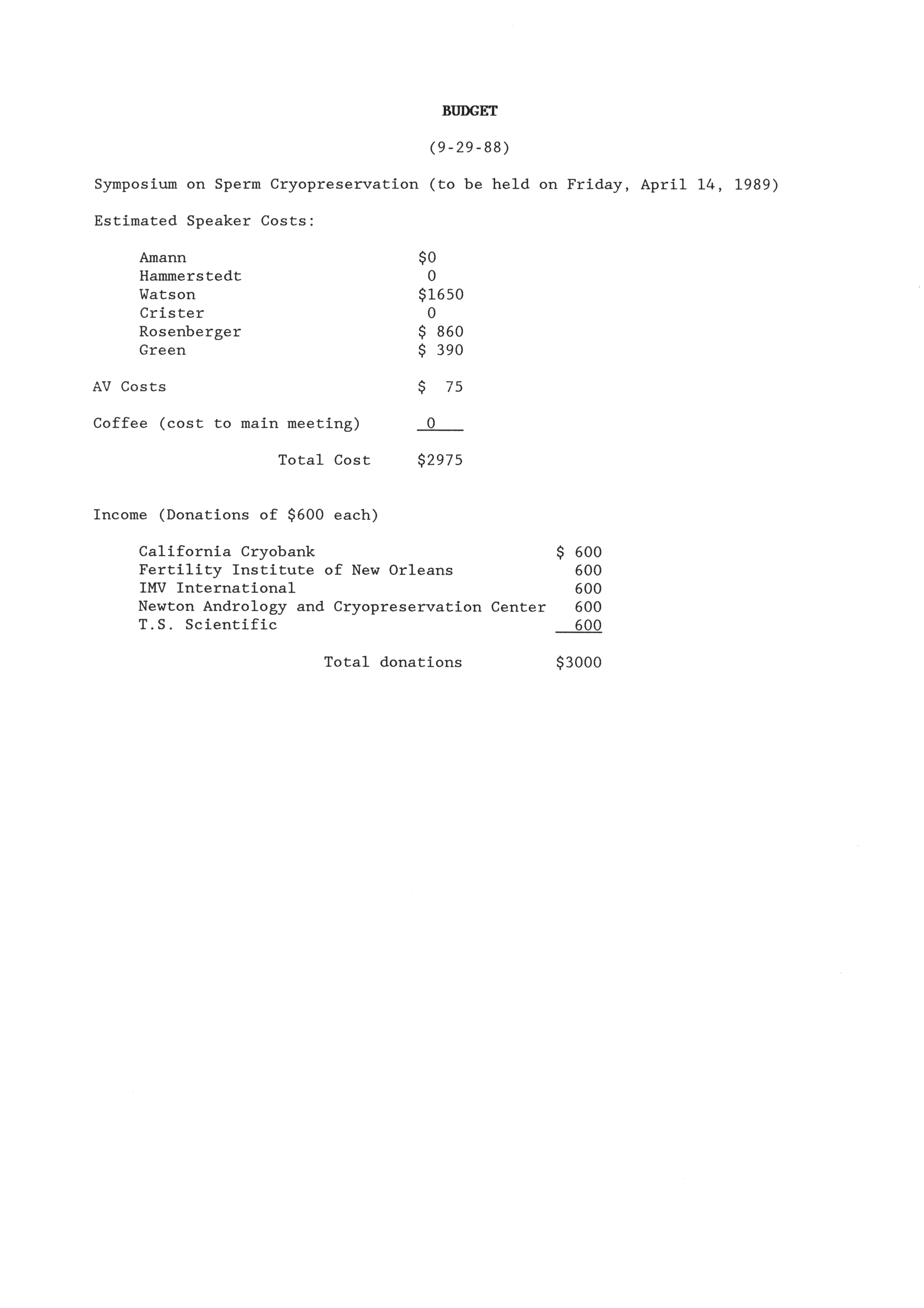 Finance Committee of the American Society of Andrology, 1988-89 Item Info