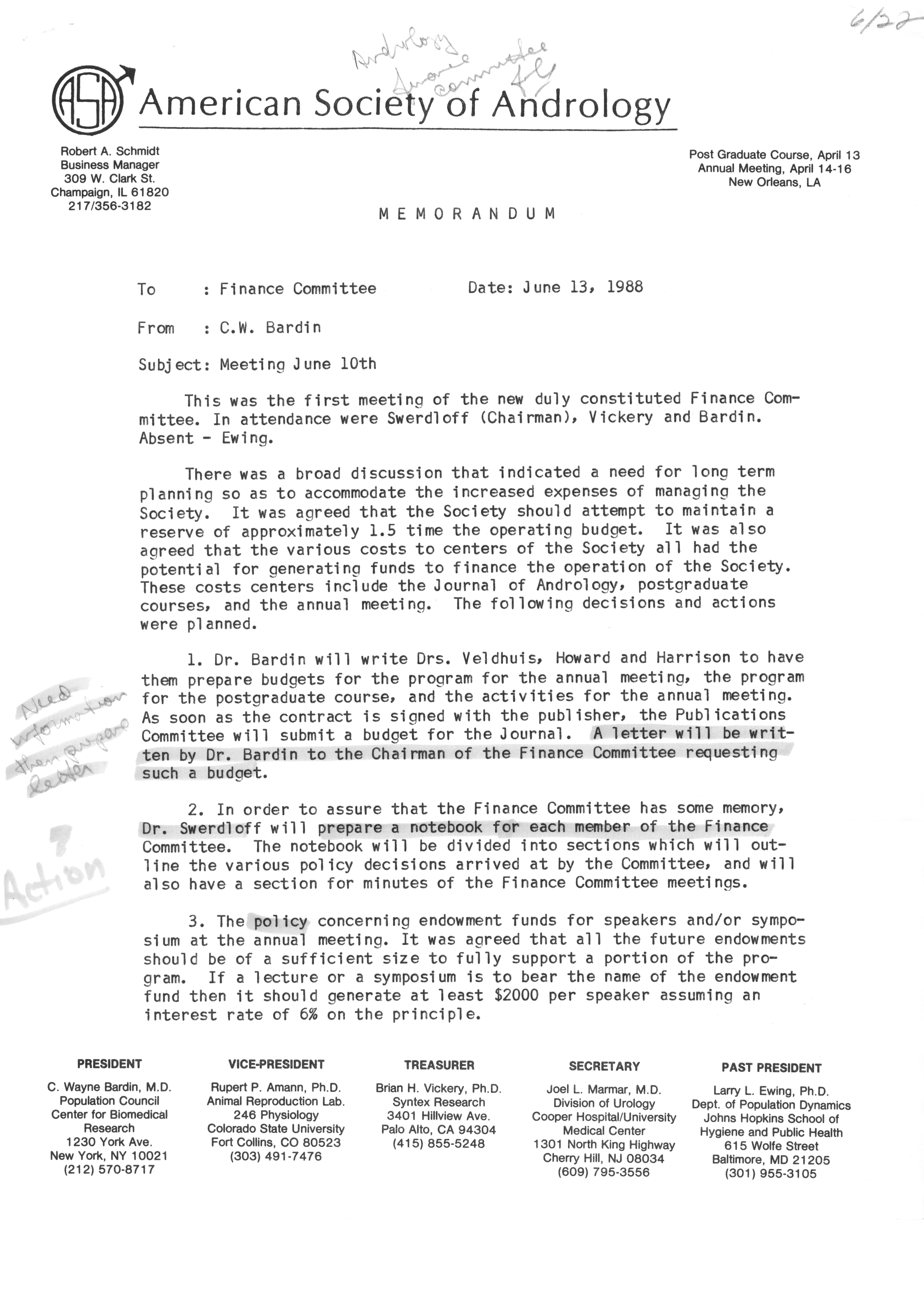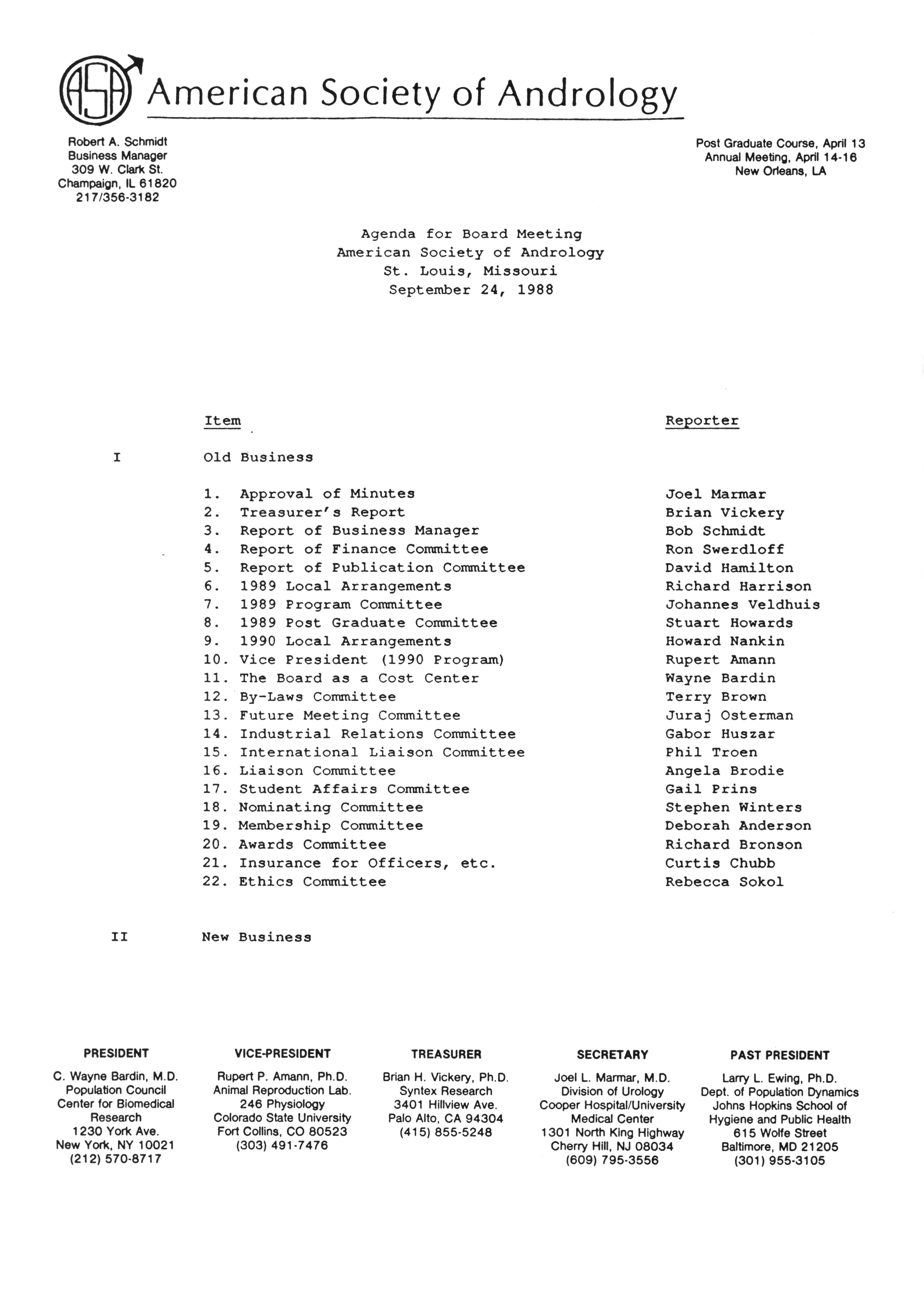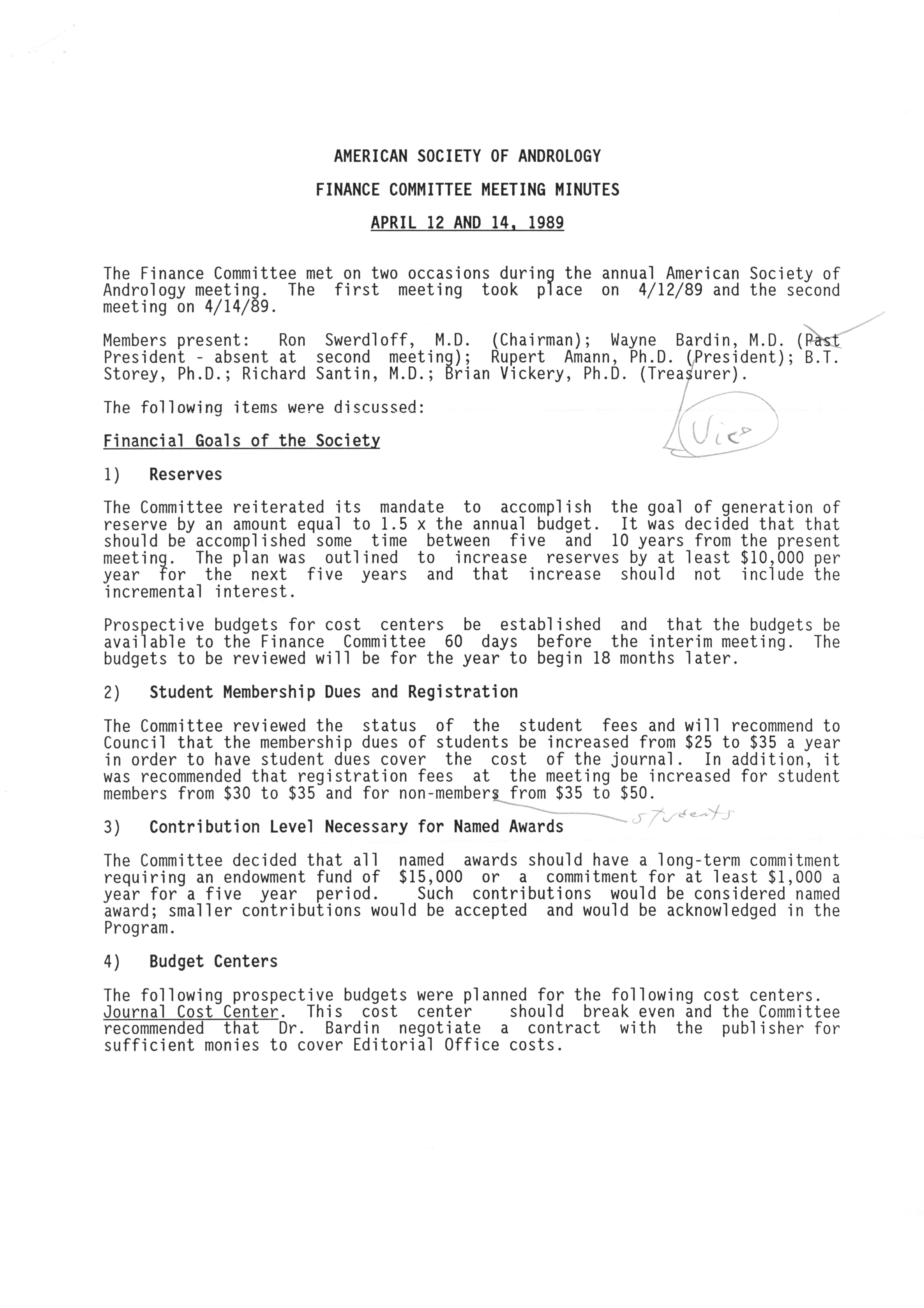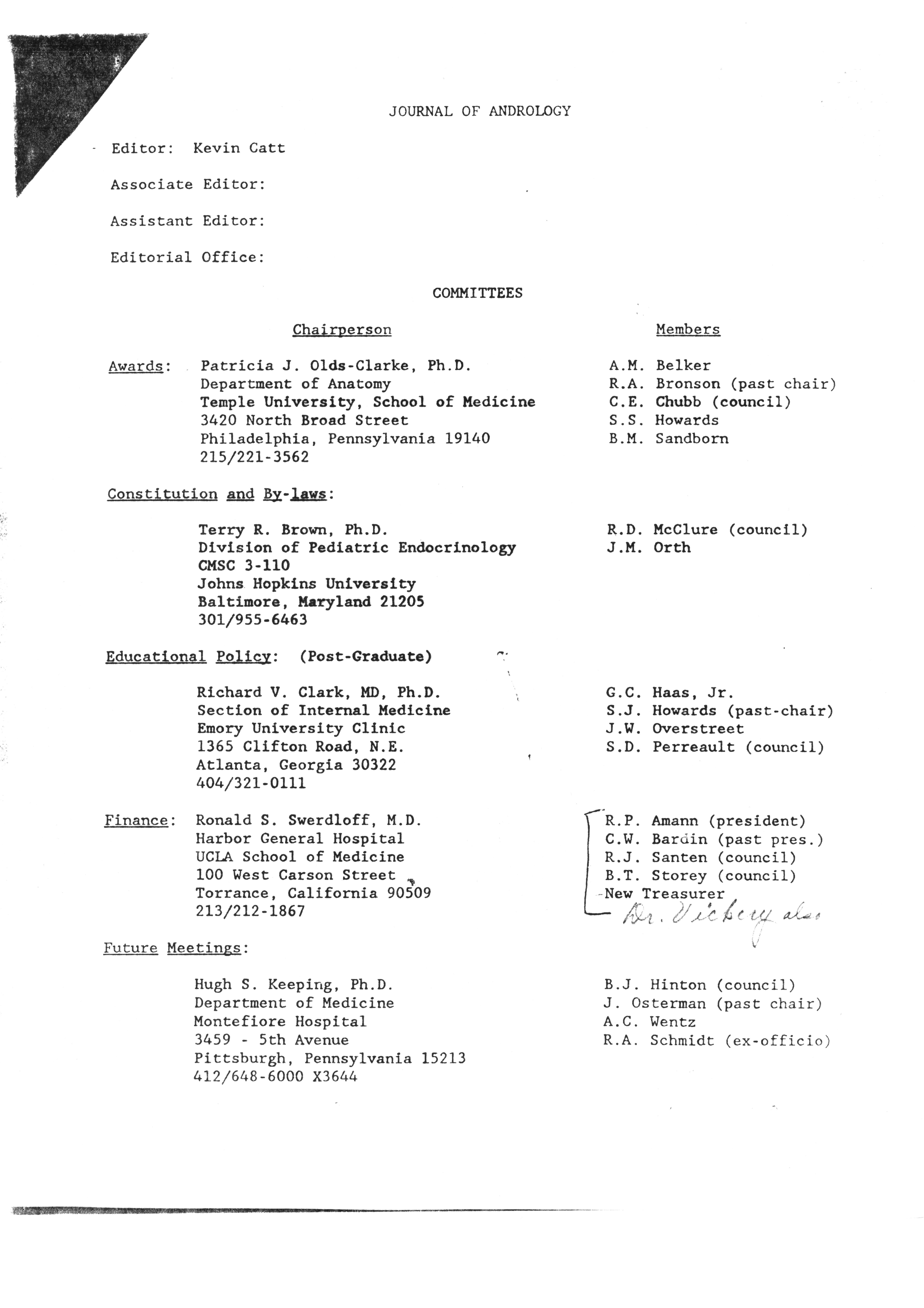 - "Finance Committee of the American Society of Andrology, 1988-89", American Society of Andrology Collection, Iowa State University Library Digital Collections