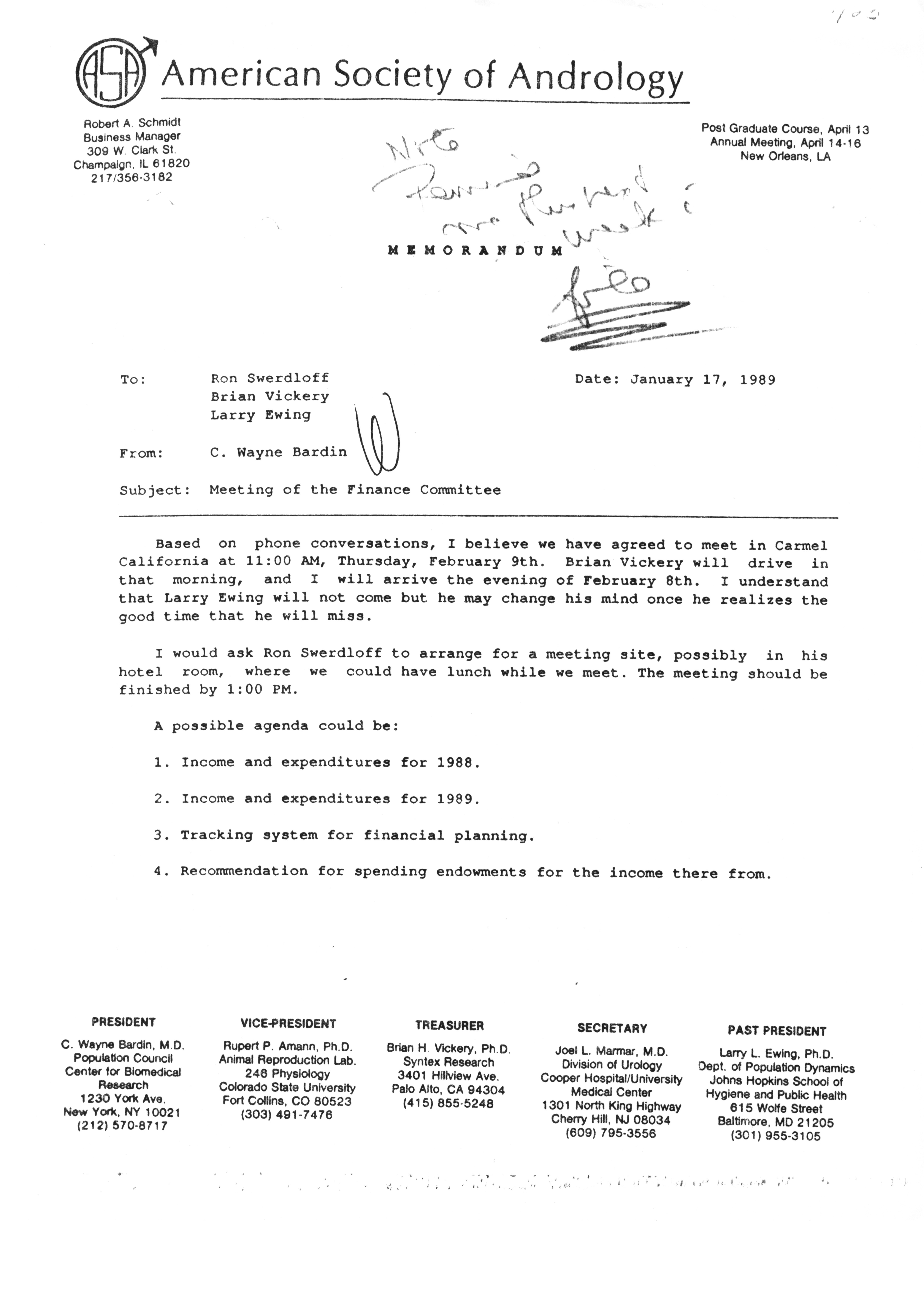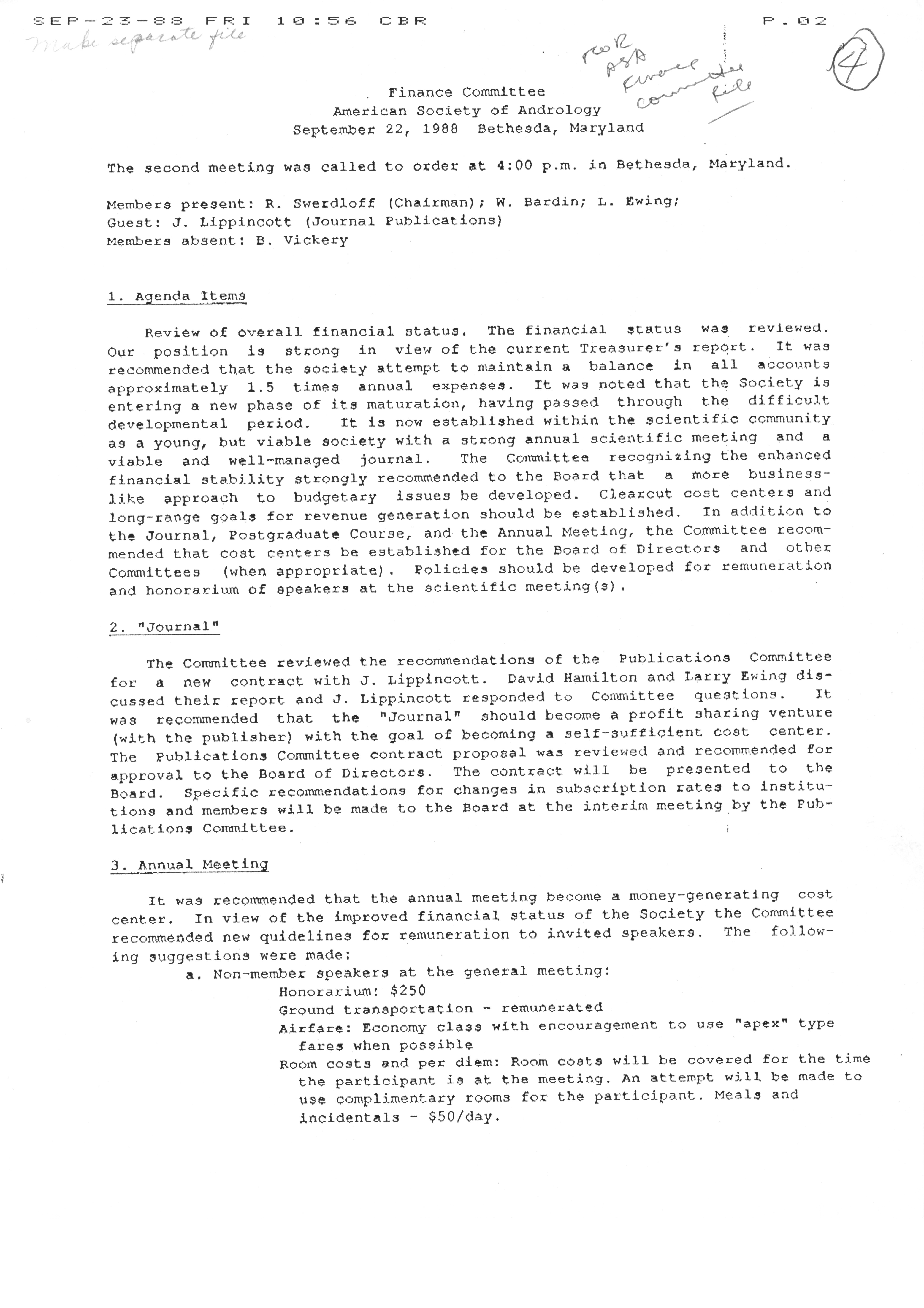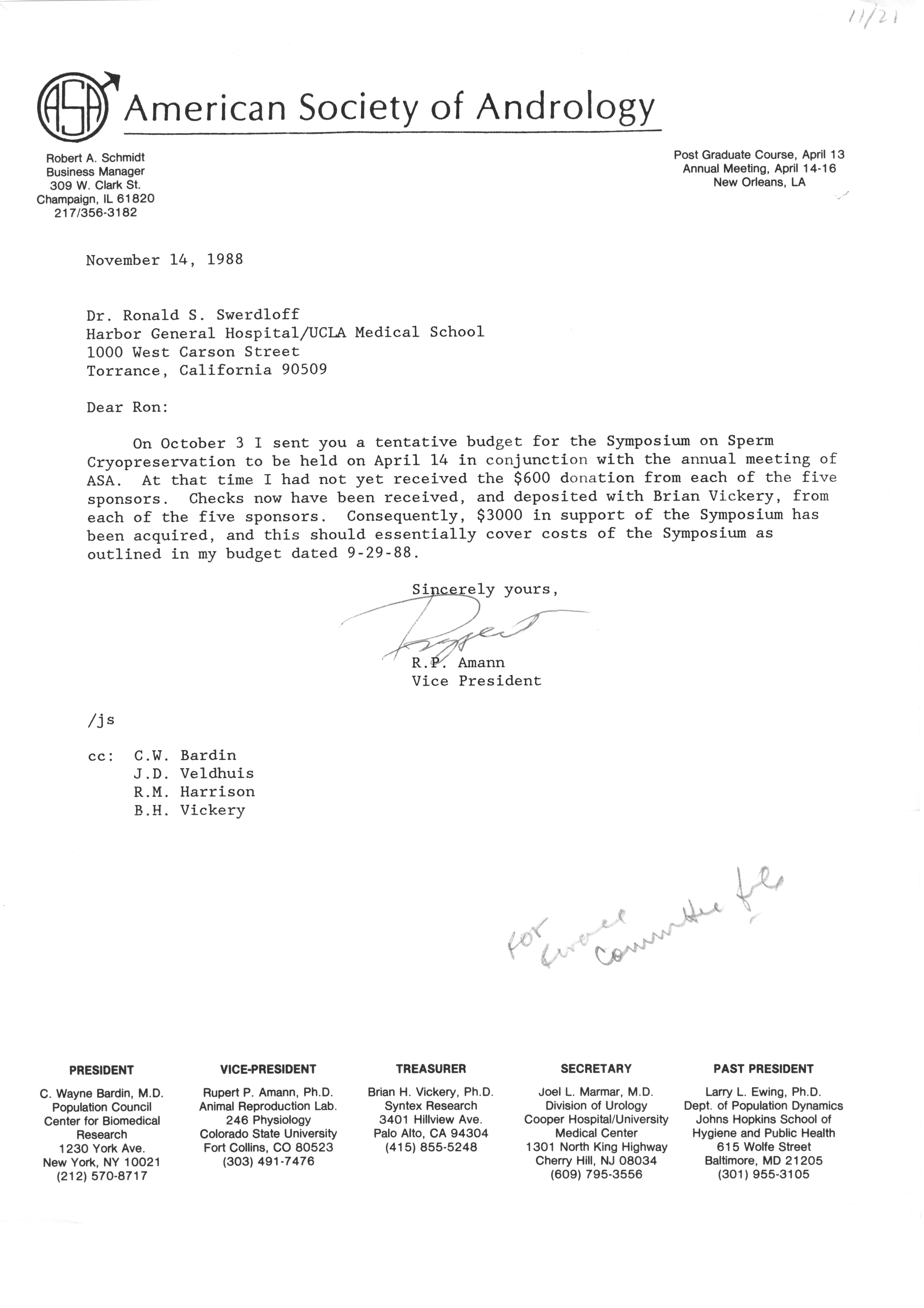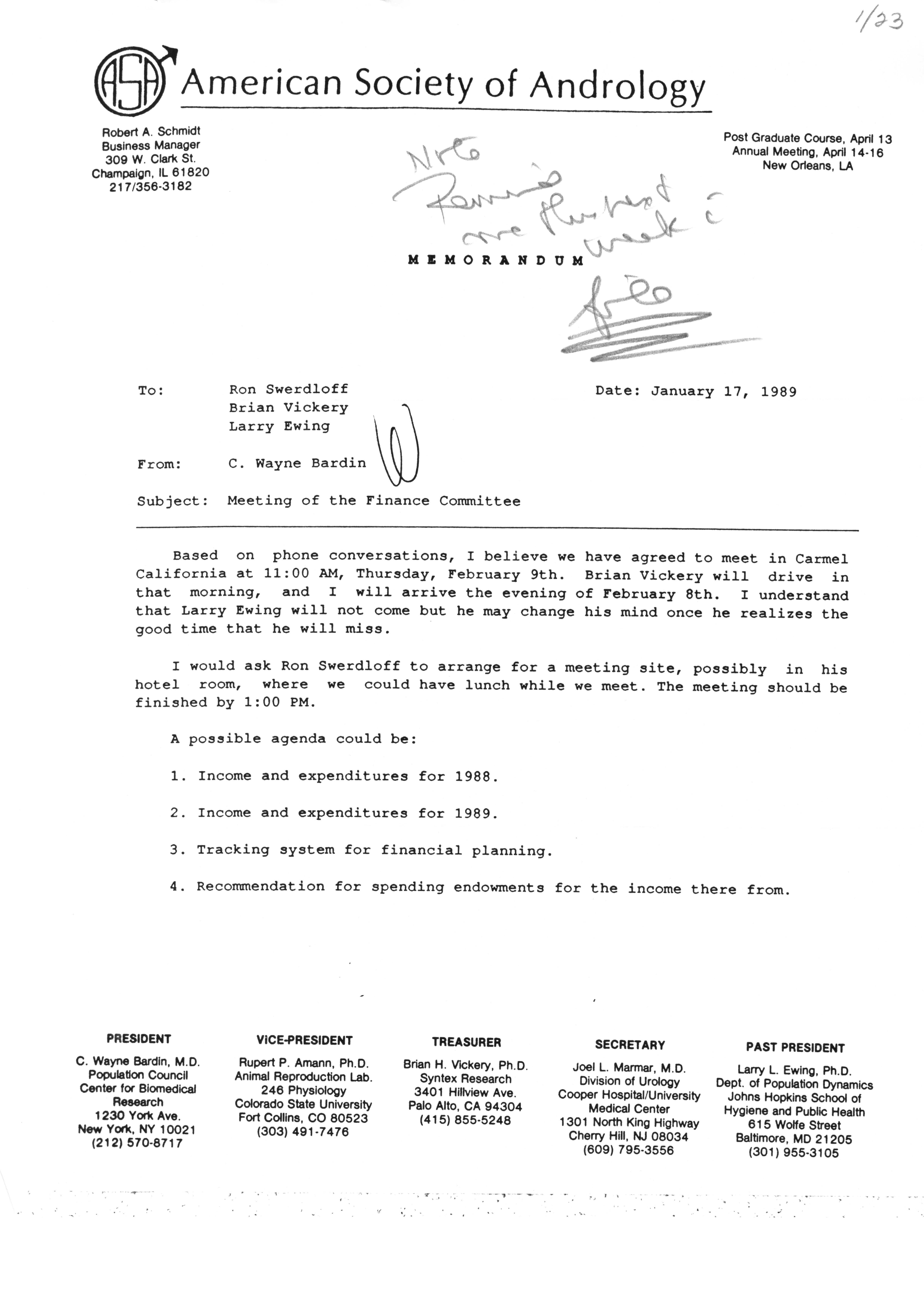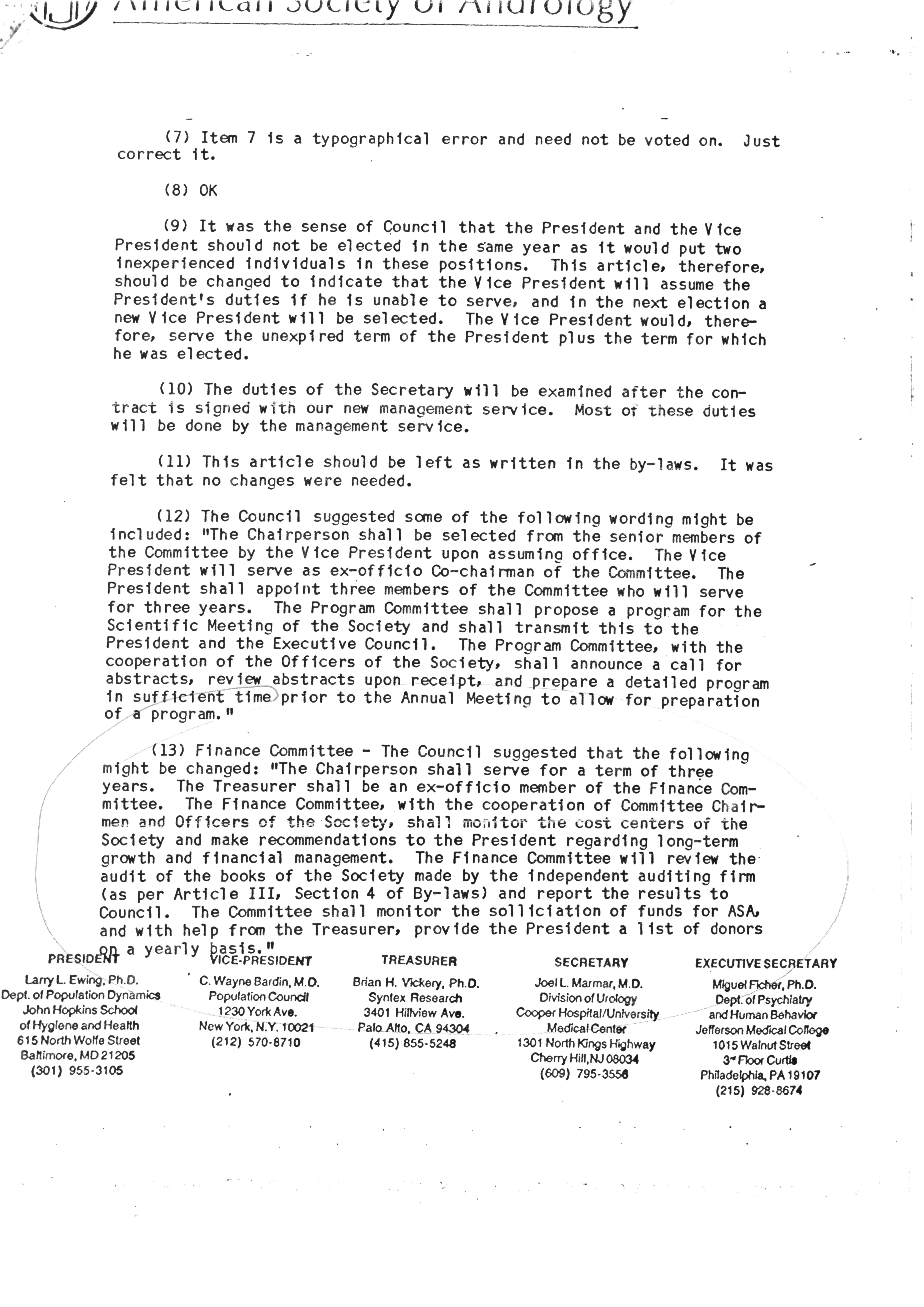 - "Finance Committee of the American Society of Andrology, 1988-89", American Society of Andrology Collection, Iowa State University Library Digital Collections
