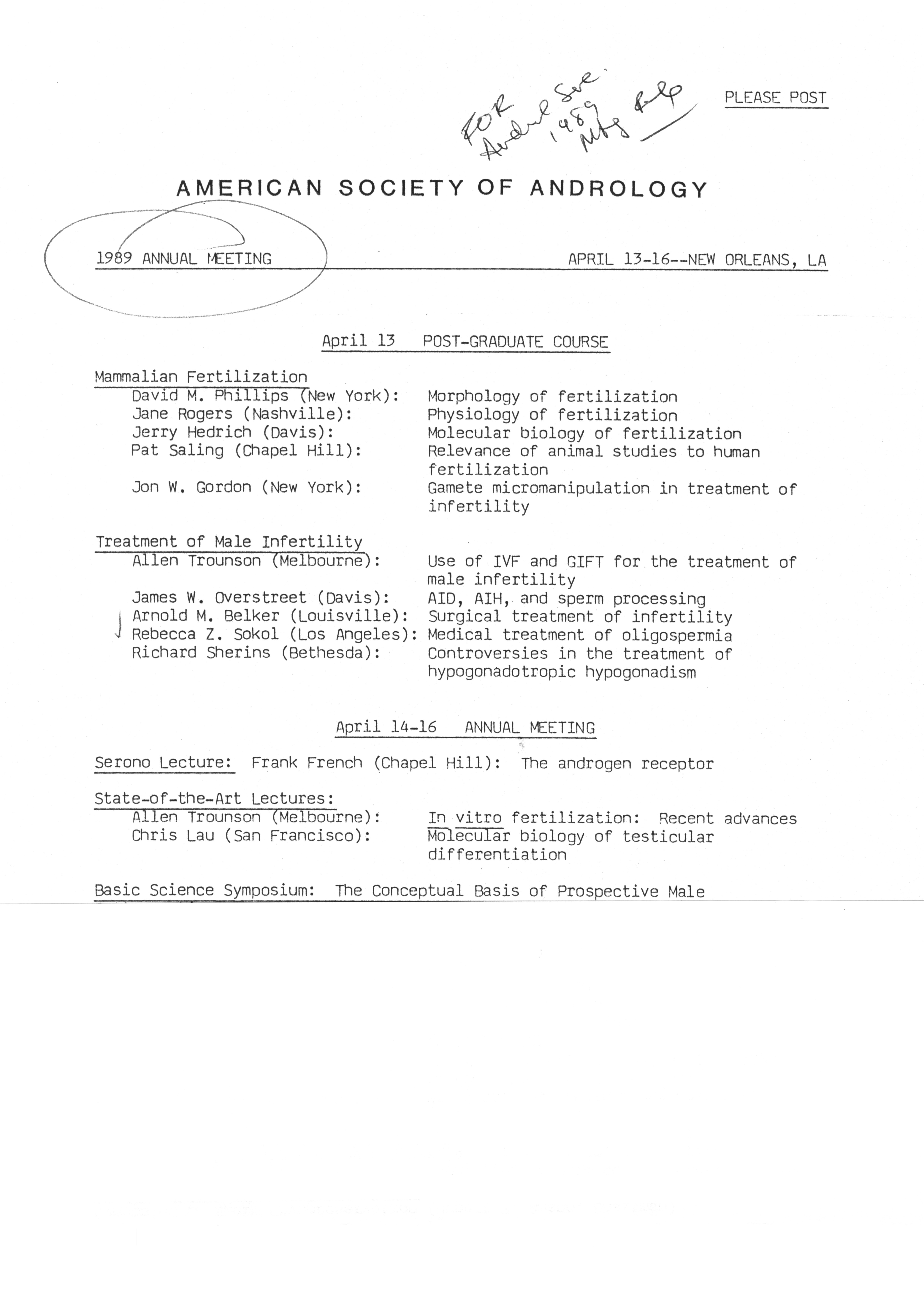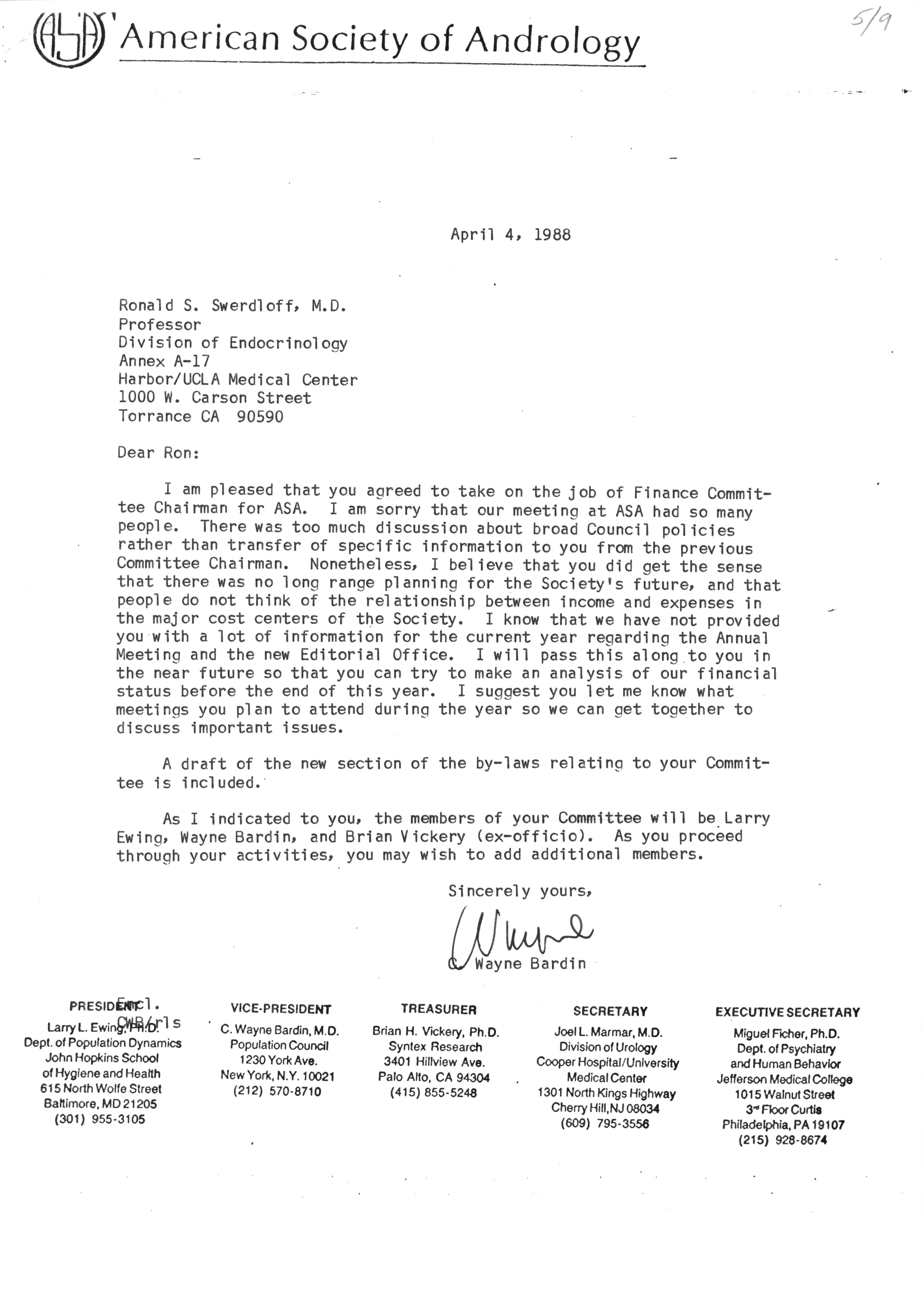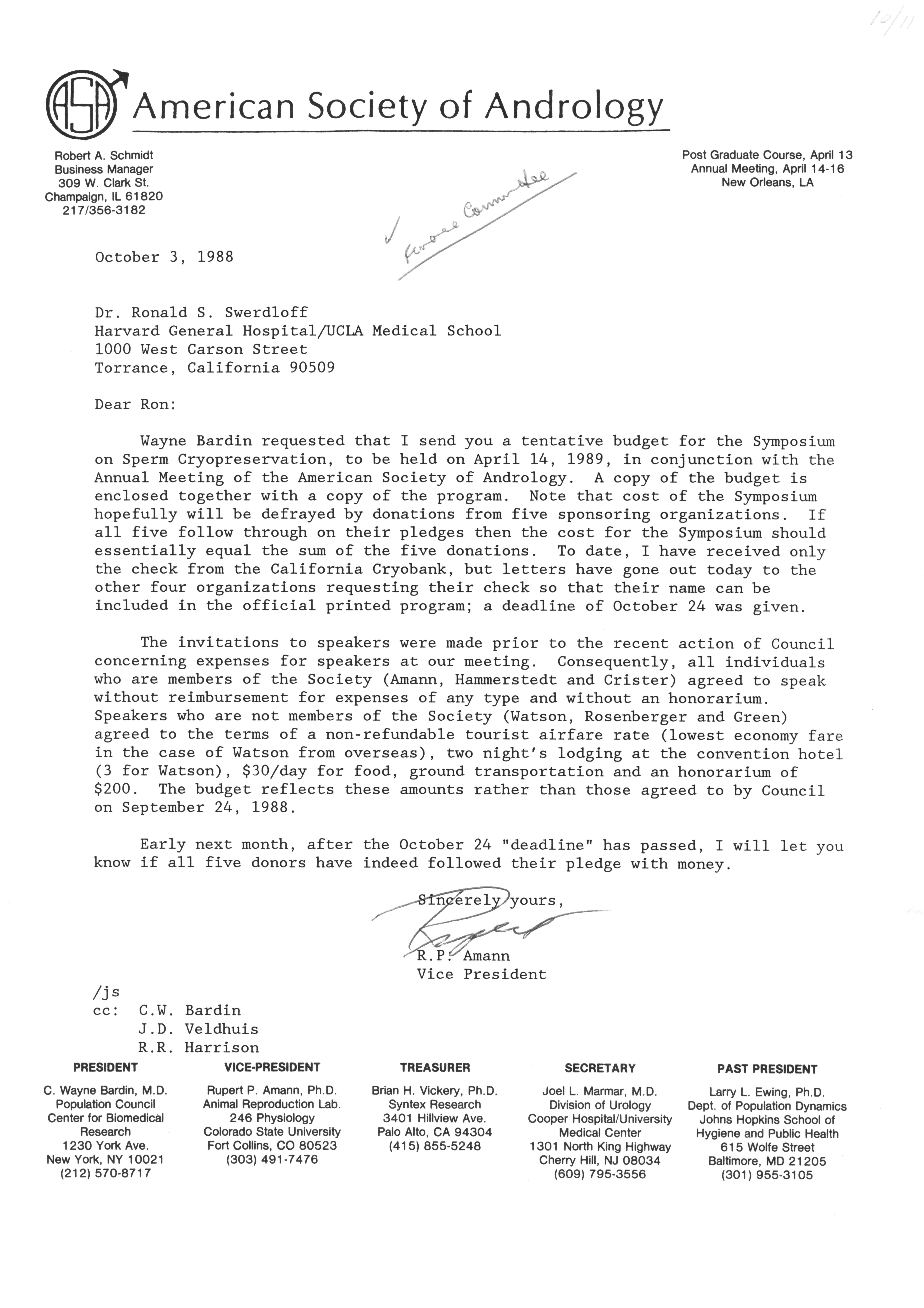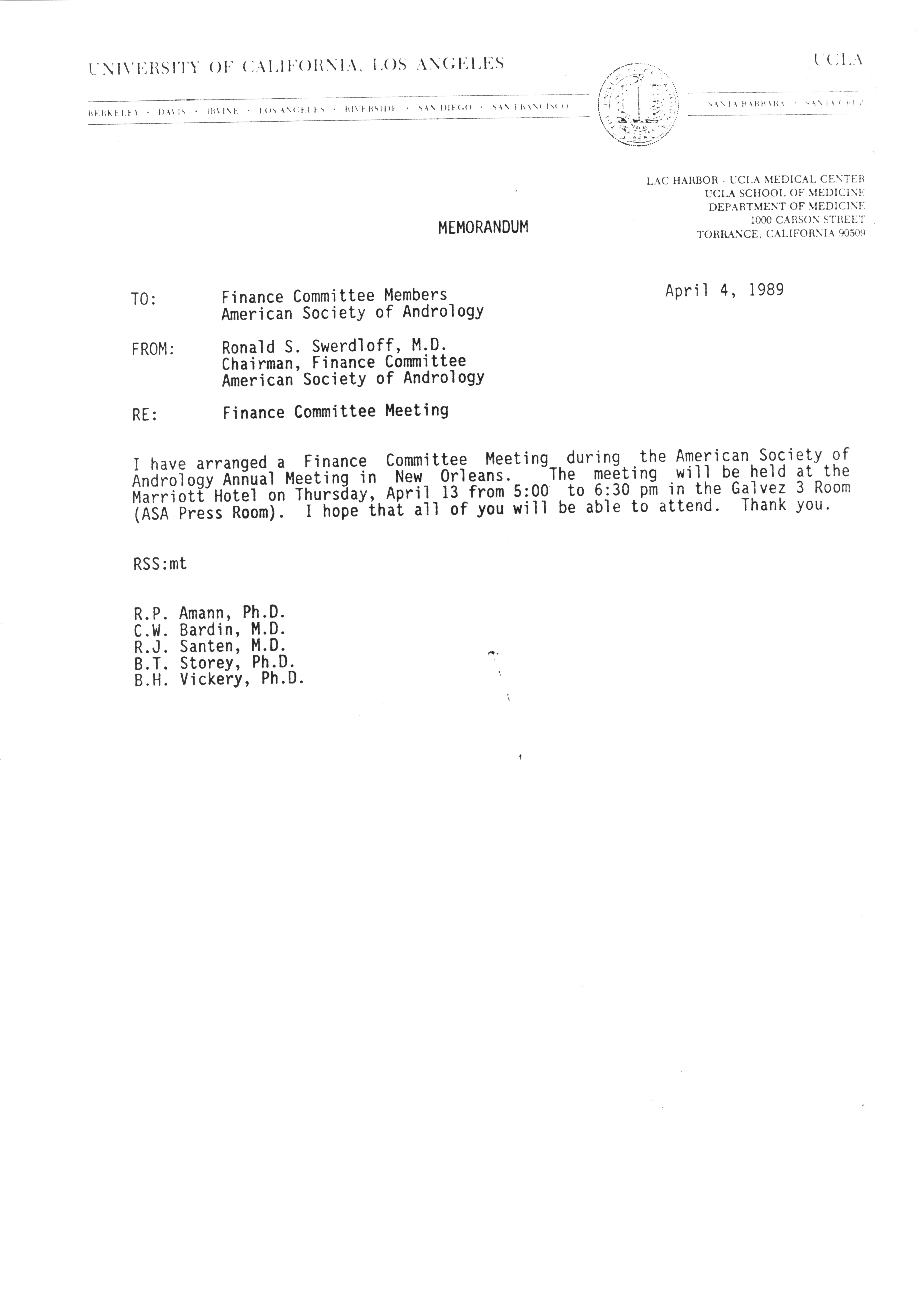 - "Finance Committee of the American Society of Andrology, 1988-89", American Society of Andrology Collection, Iowa State University Library Digital Collections