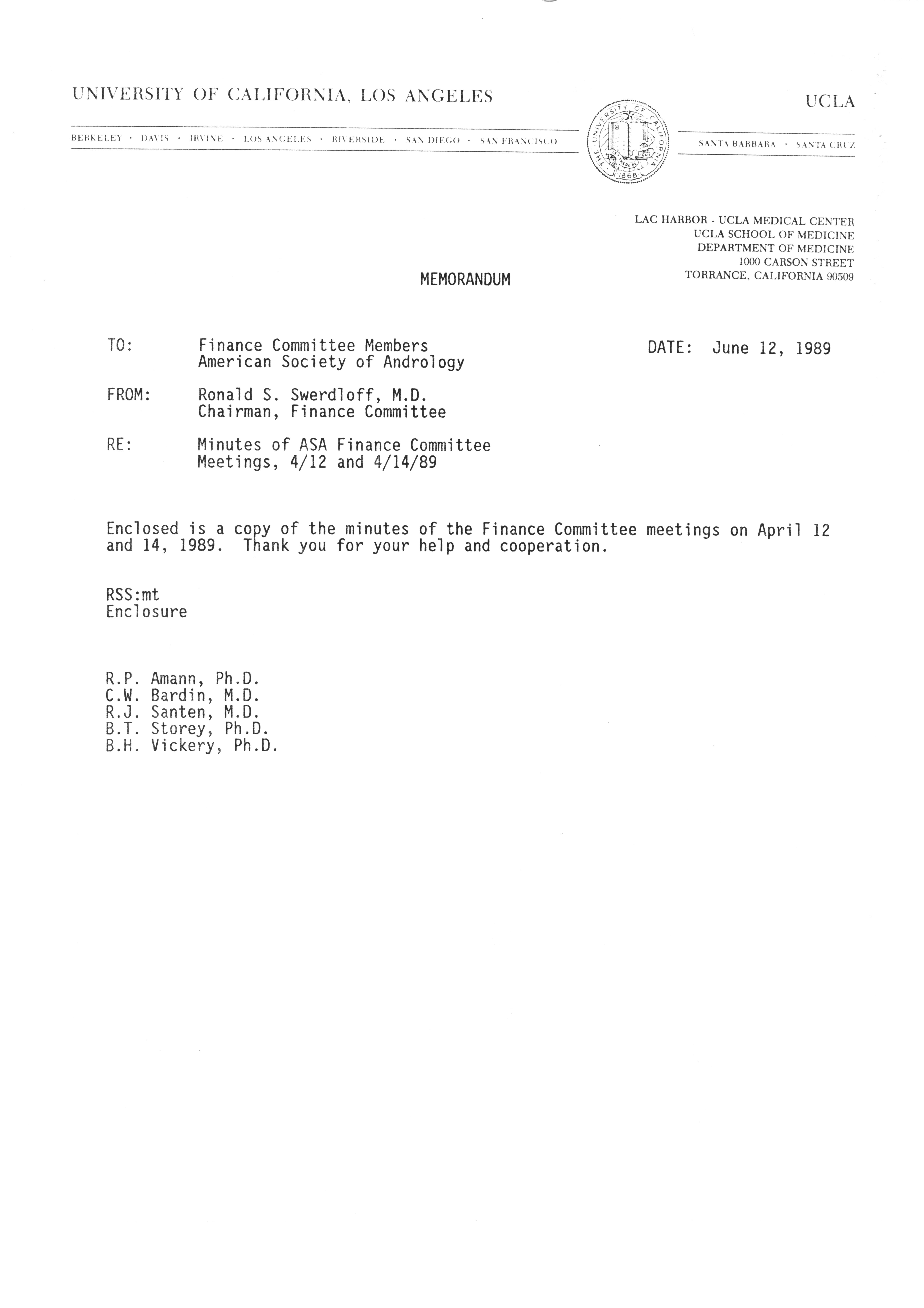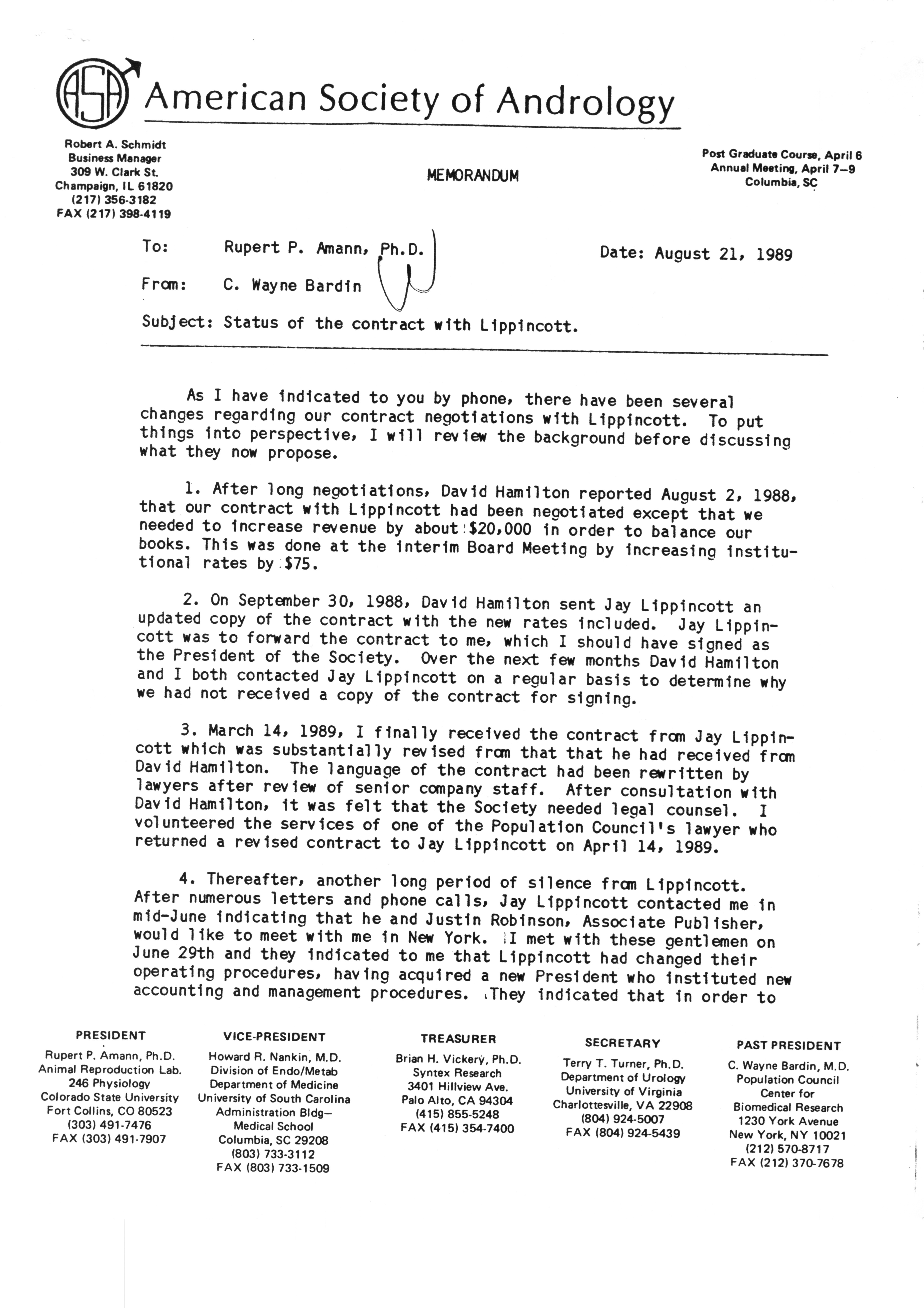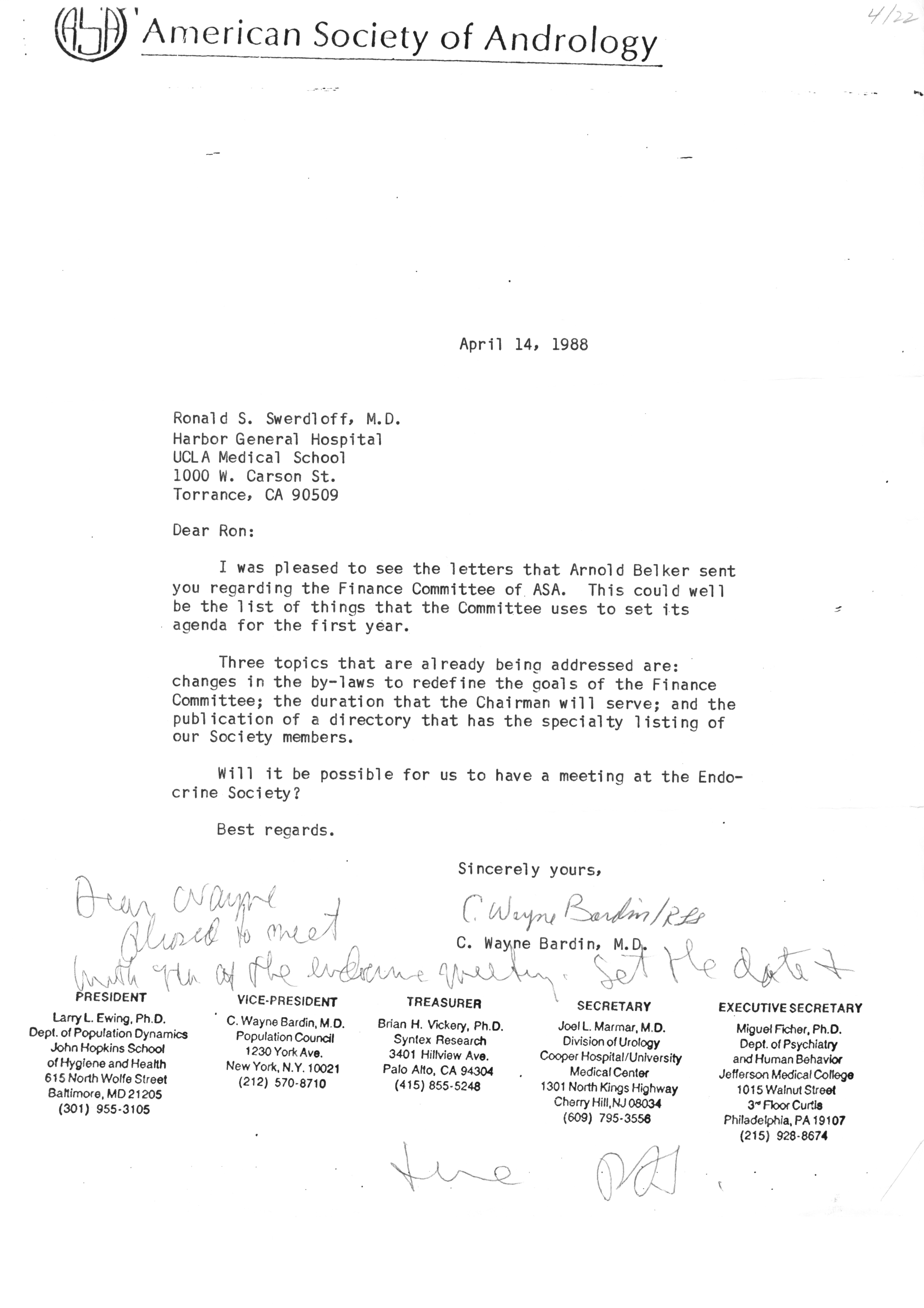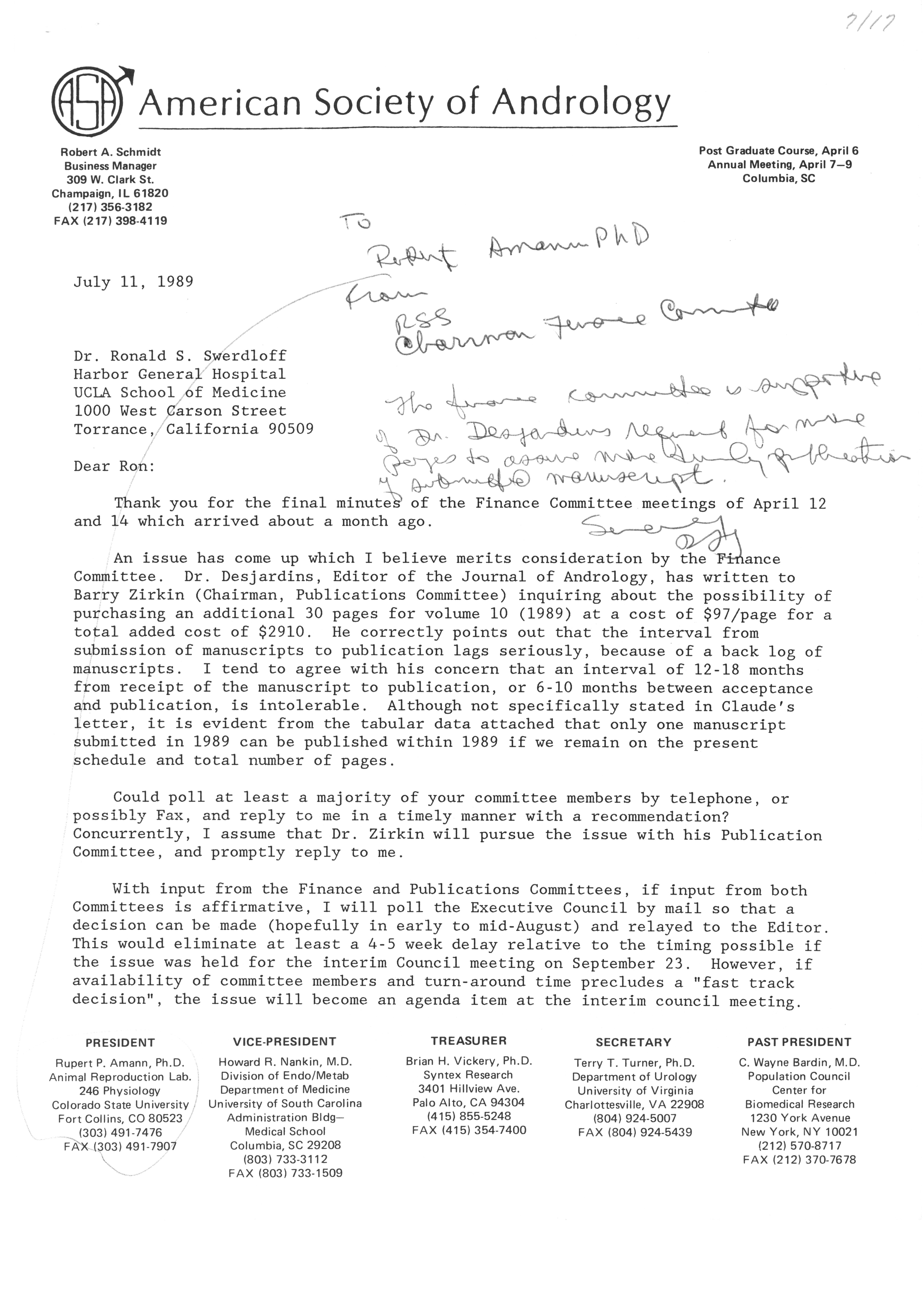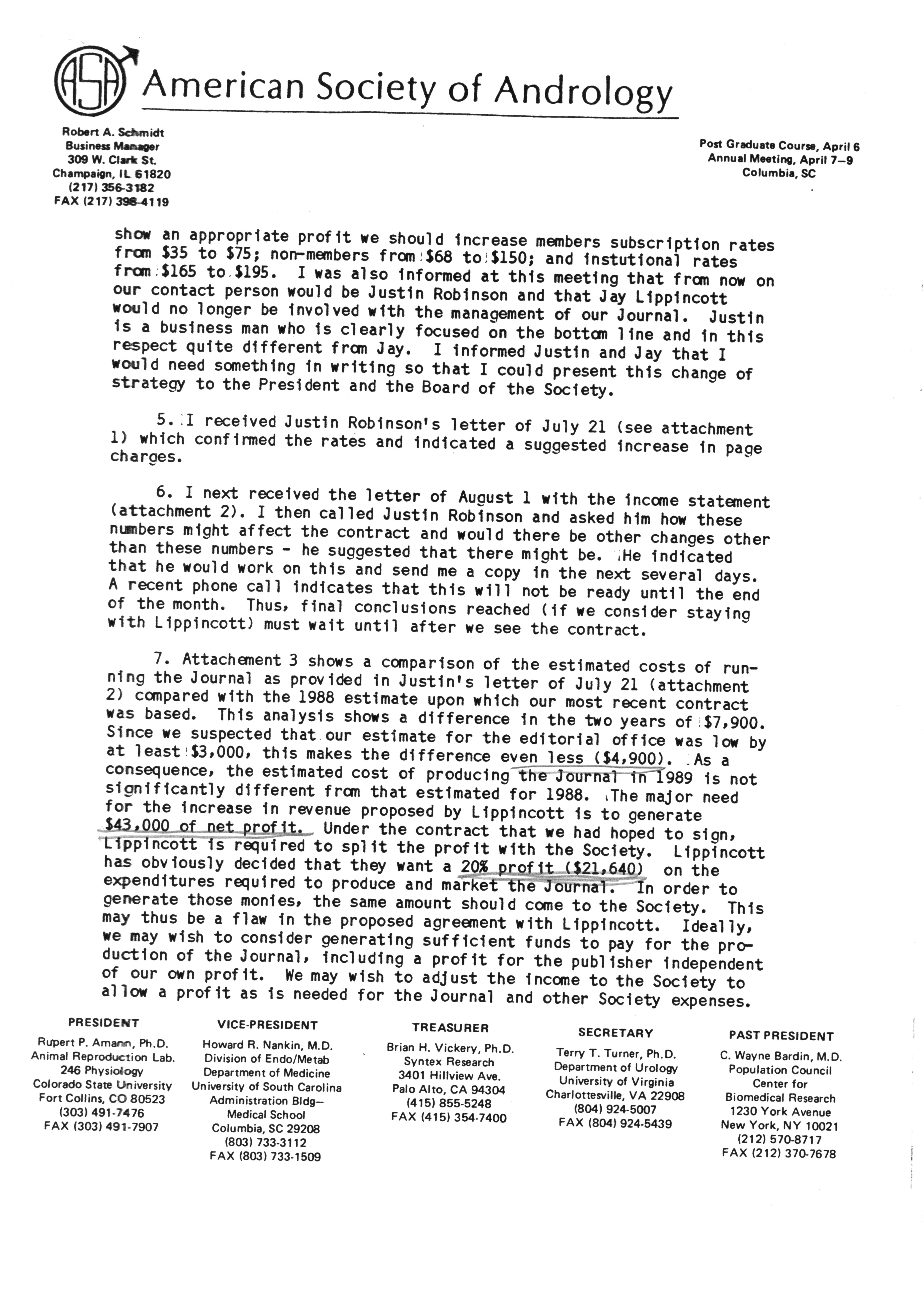 - "Finance Committee of the American Society of Andrology, 1988-89", American Society of Andrology Collection, Iowa State University Library Digital Collections