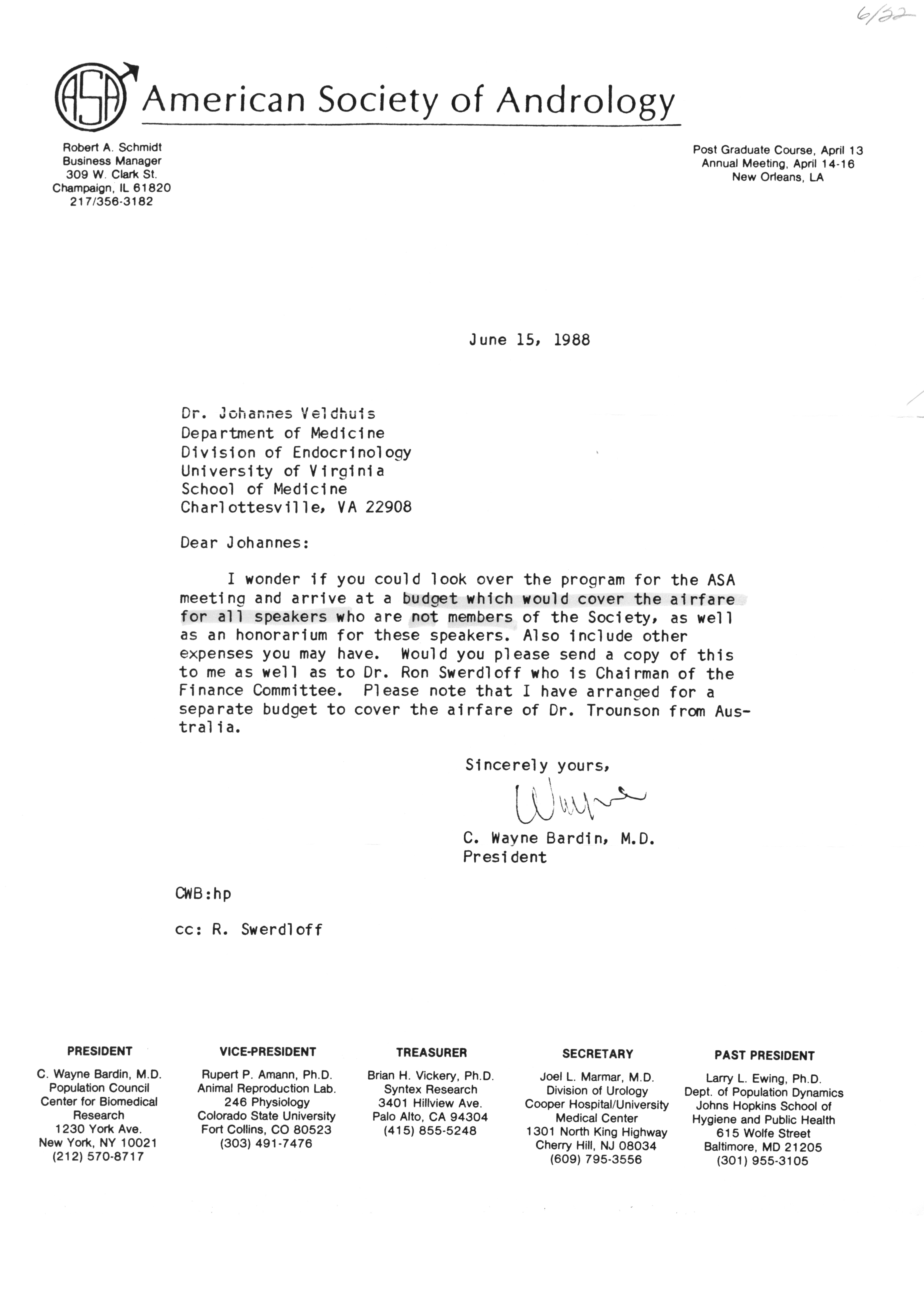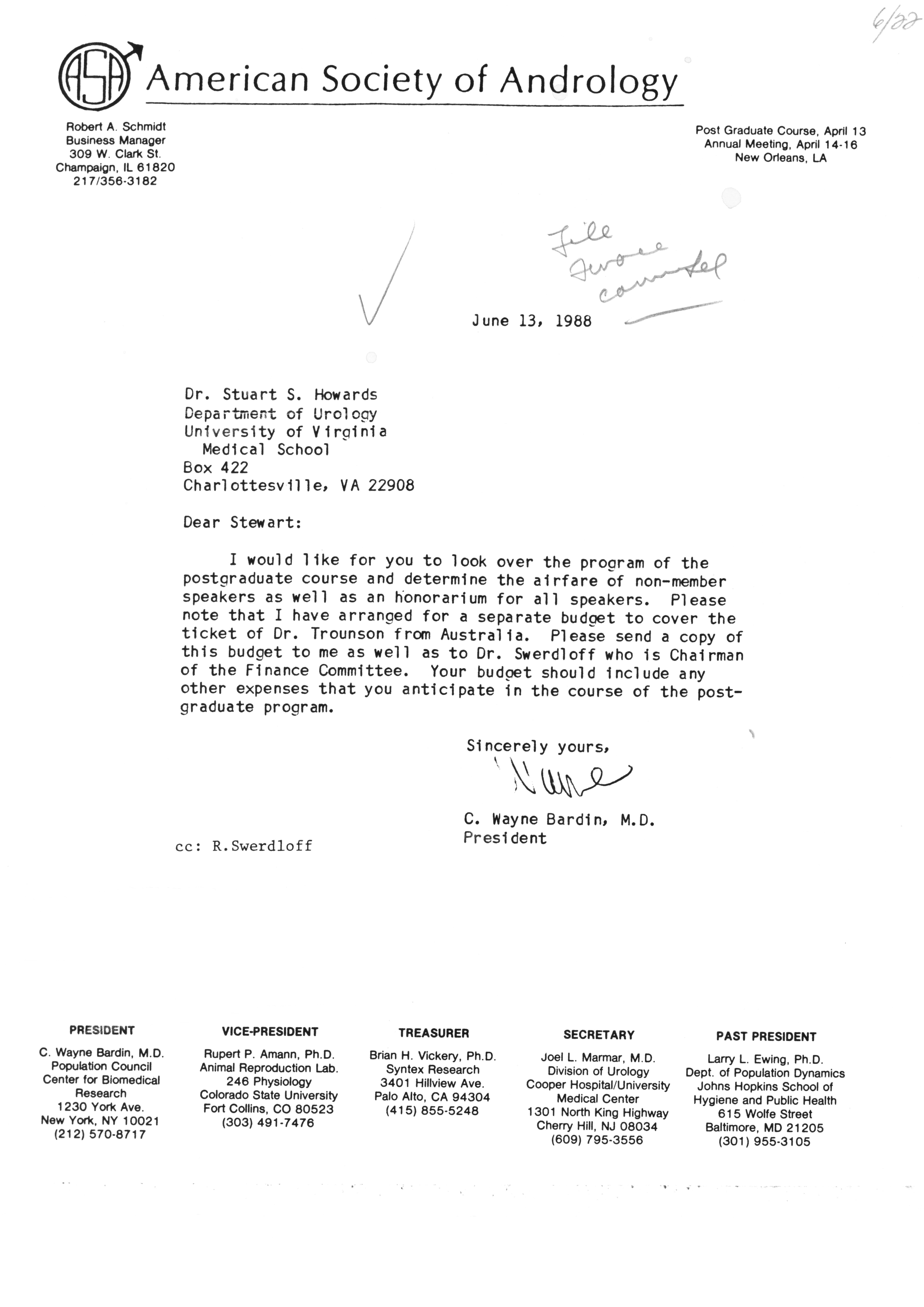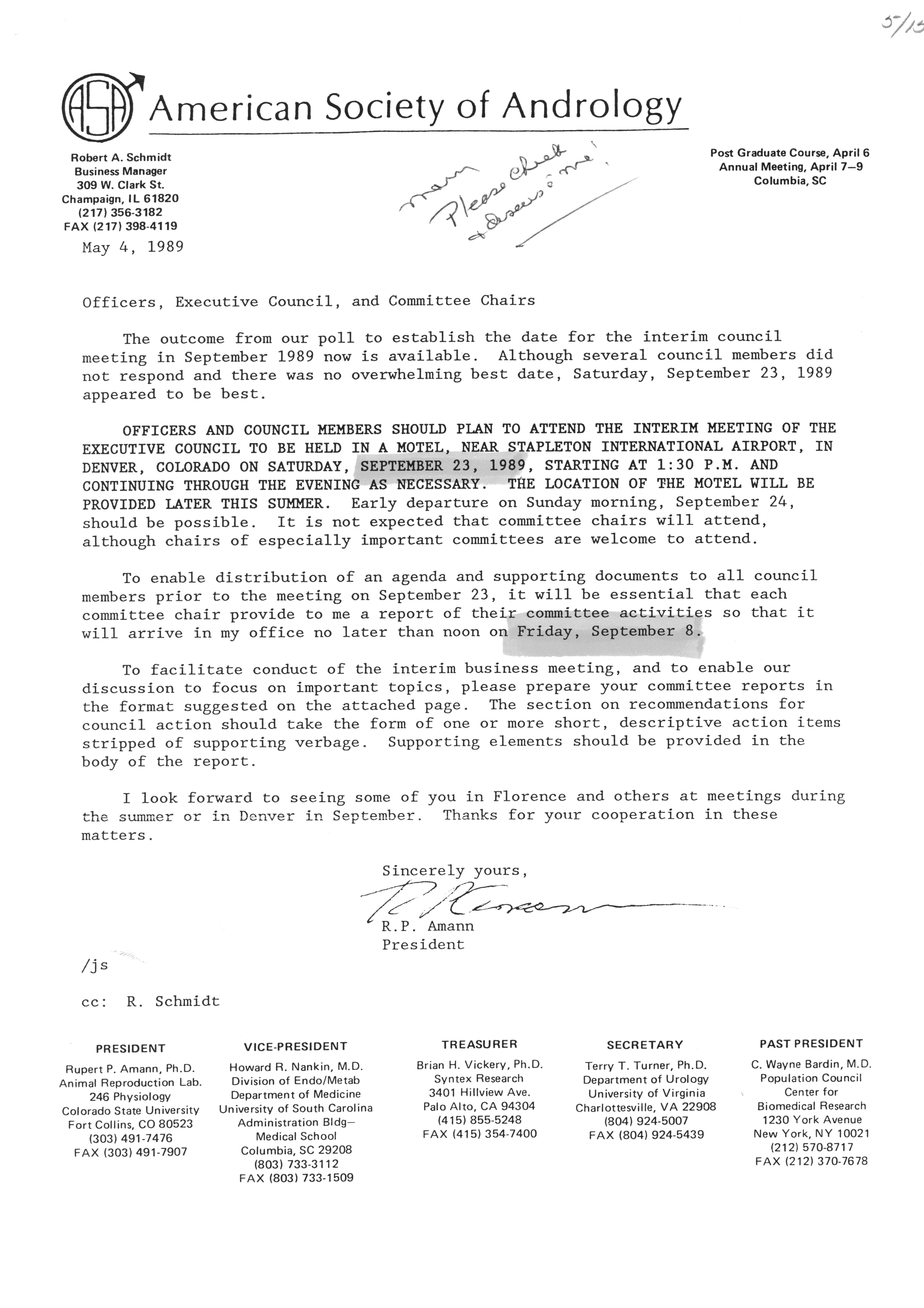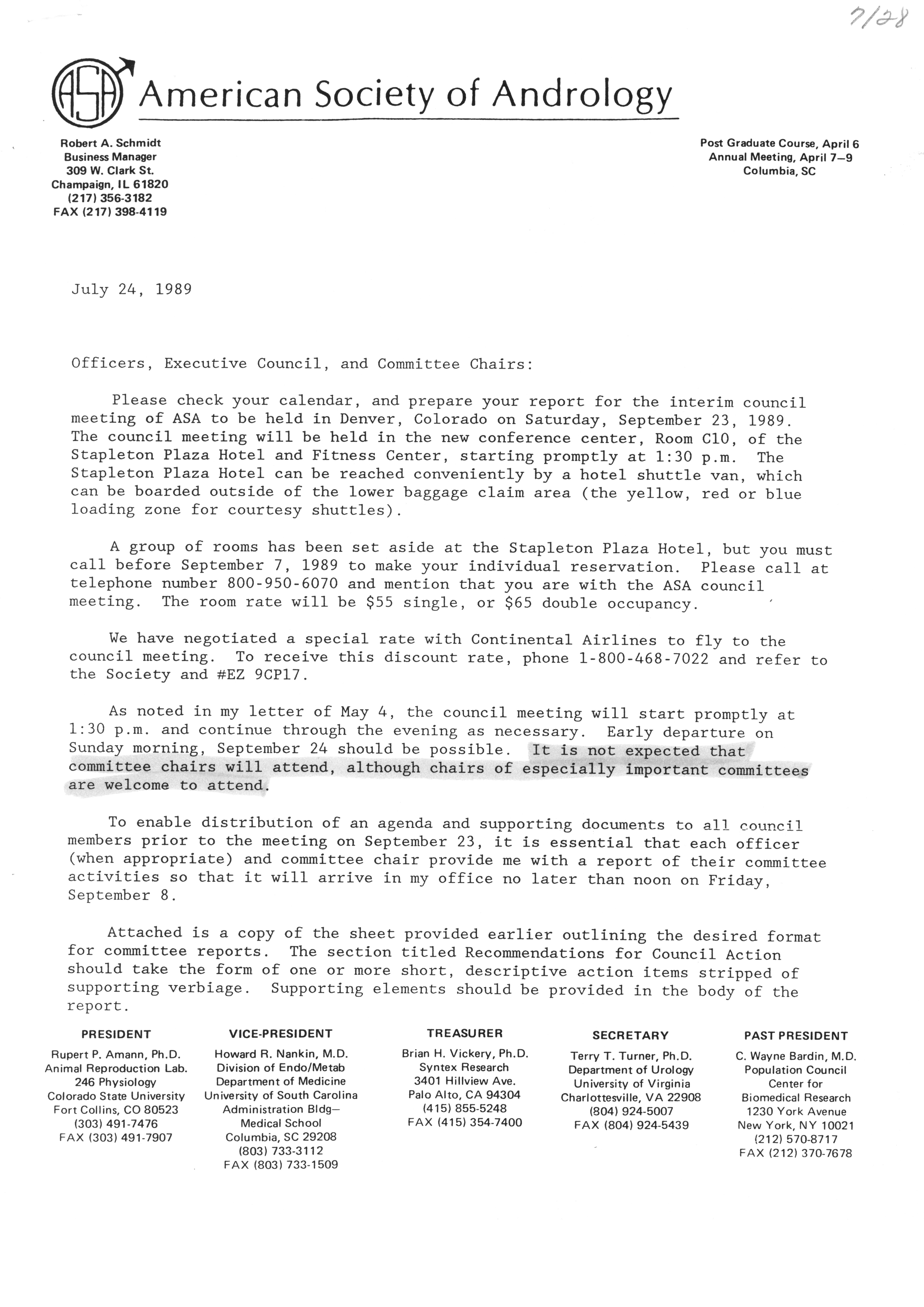 - "Finance Committee of the American Society of Andrology, 1988-89", American Society of Andrology Collection, Iowa State University Library Digital Collections