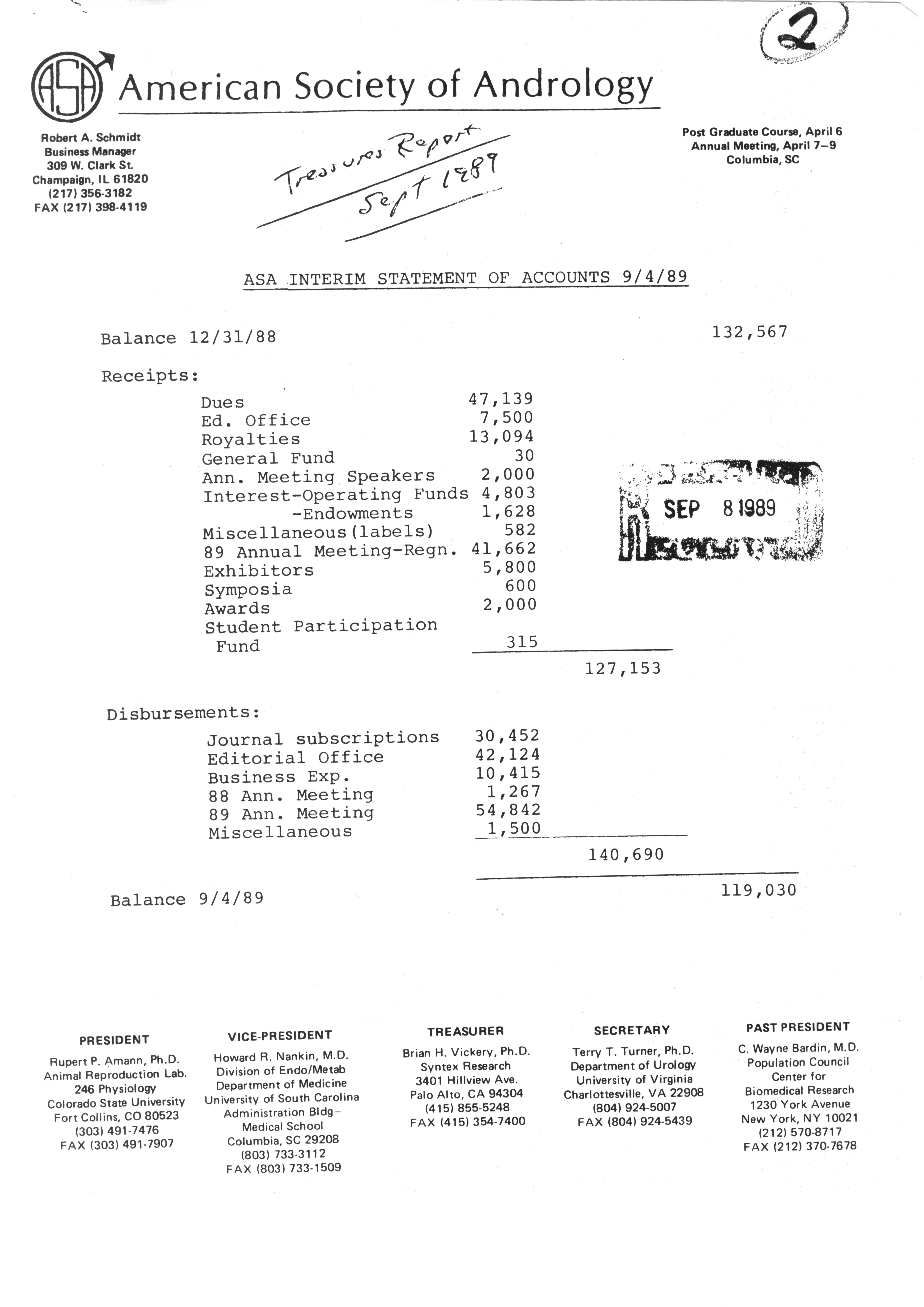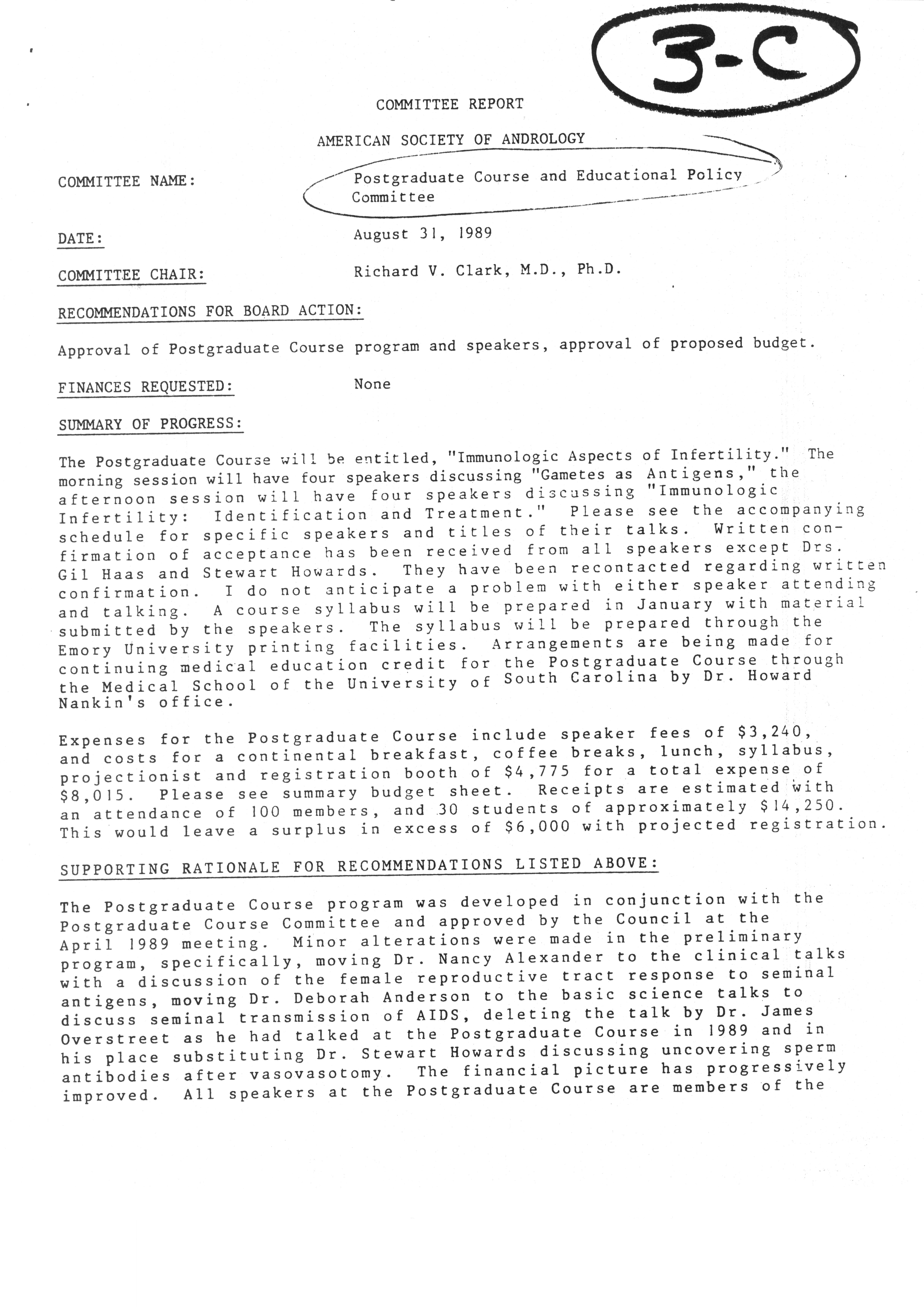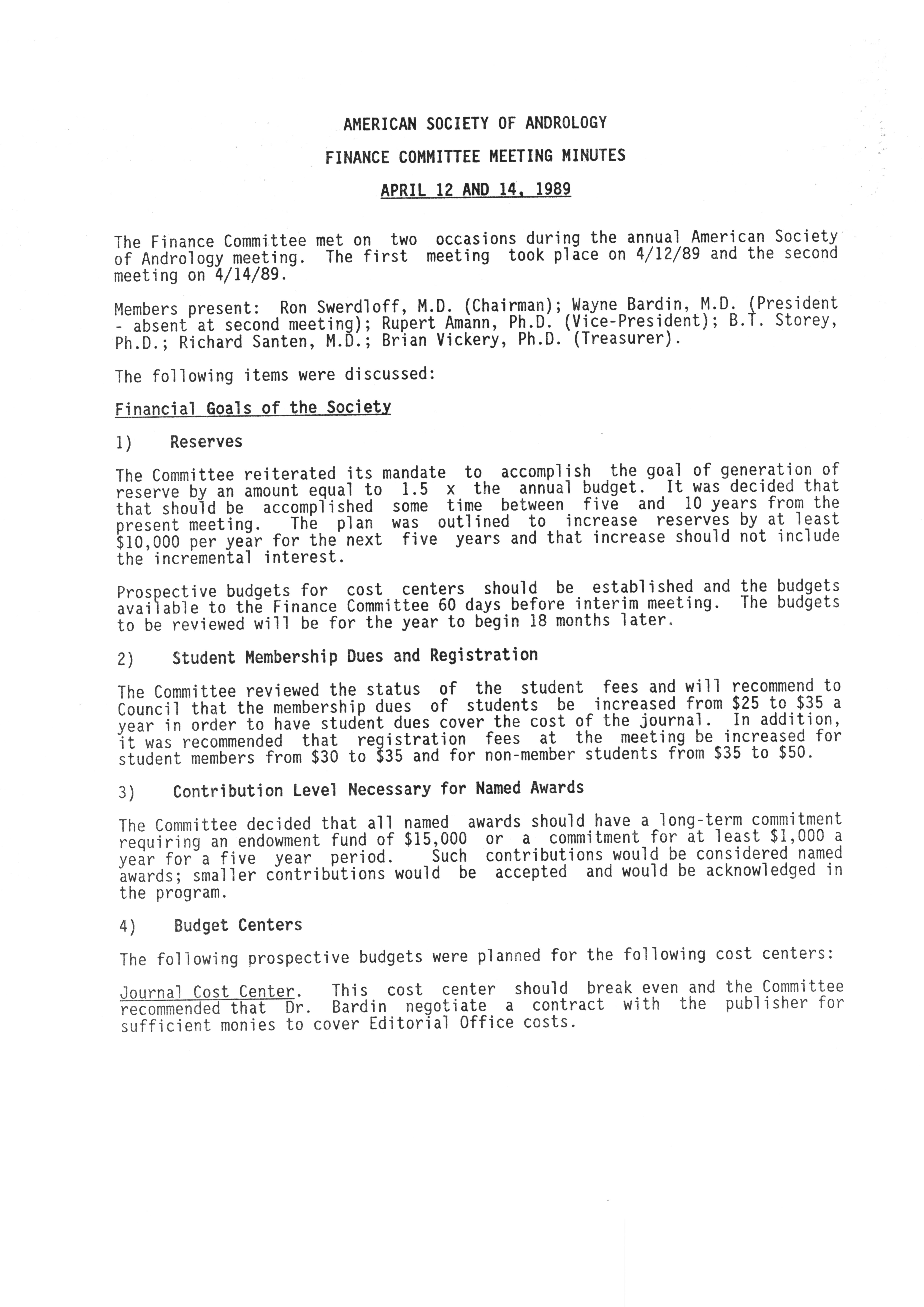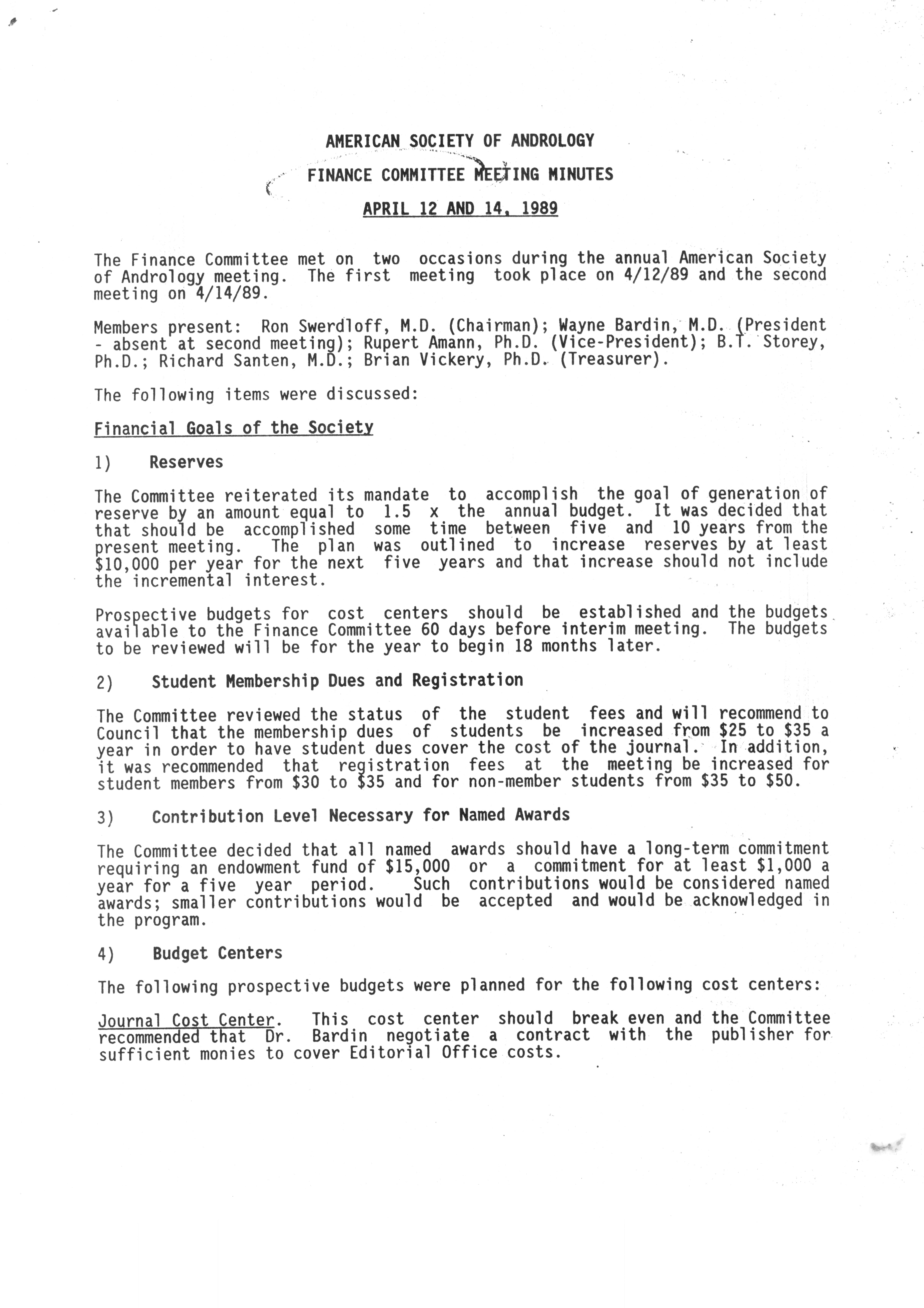 Finance Committee of the American Society of Andrology, 1989 Item Info
