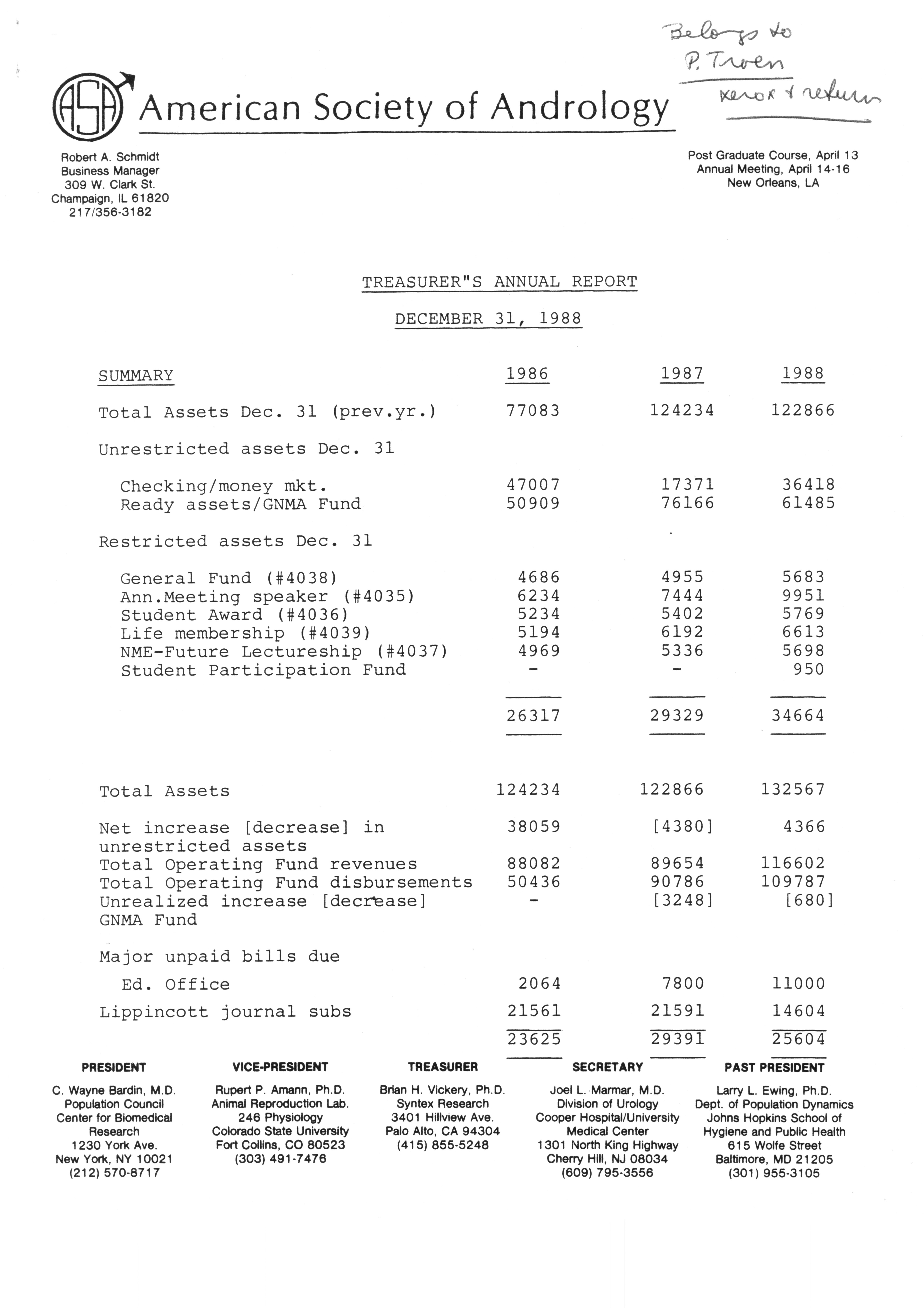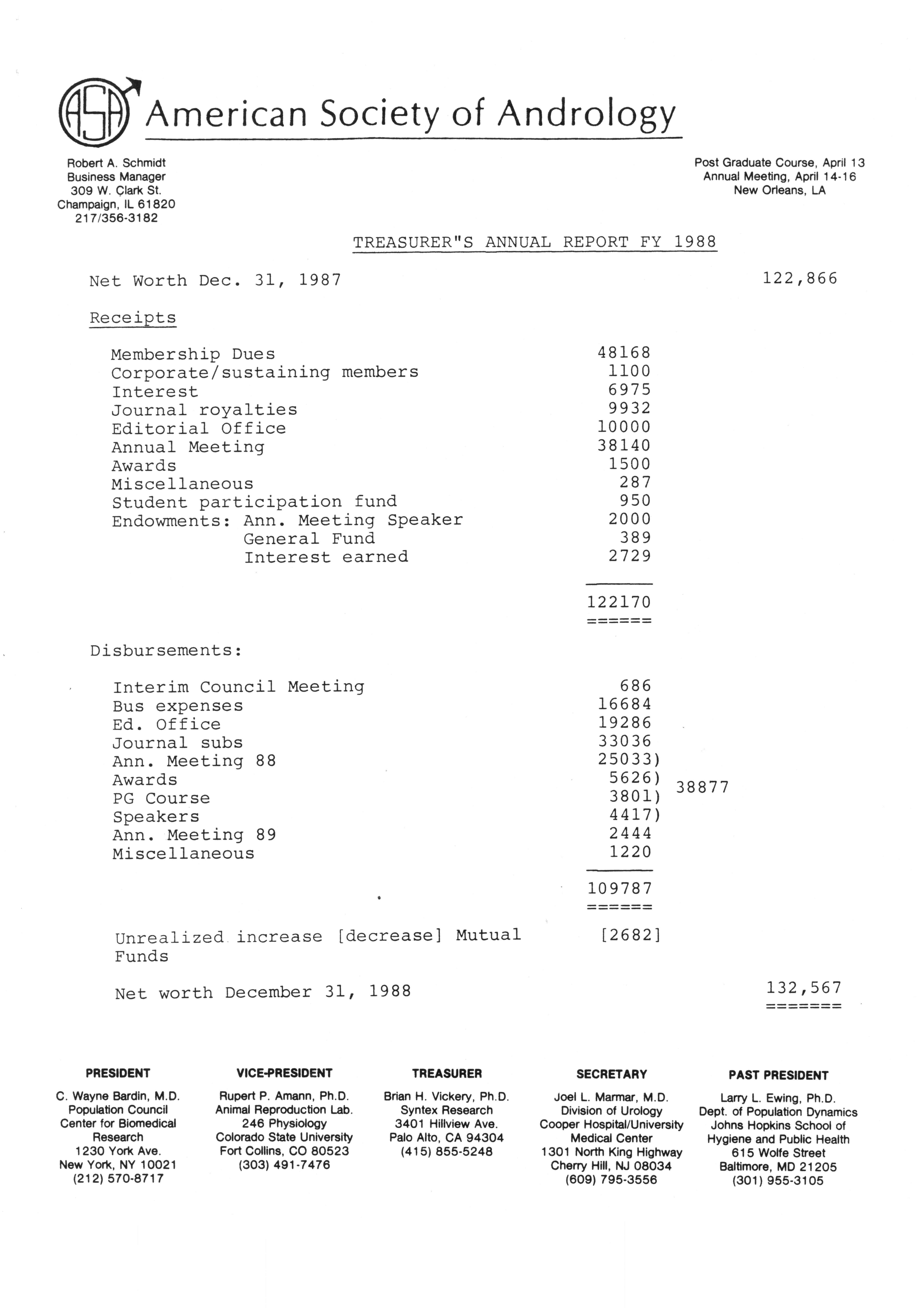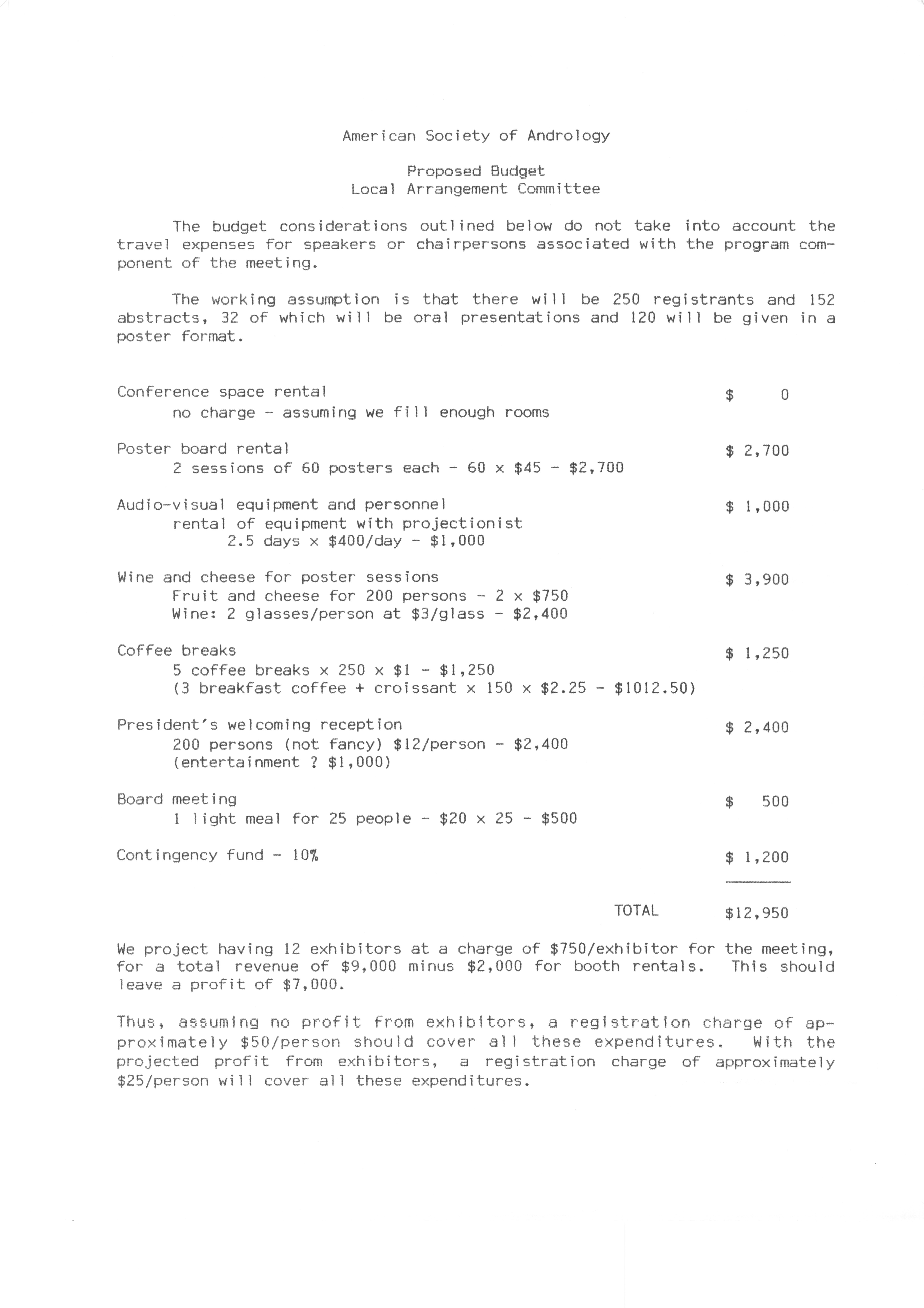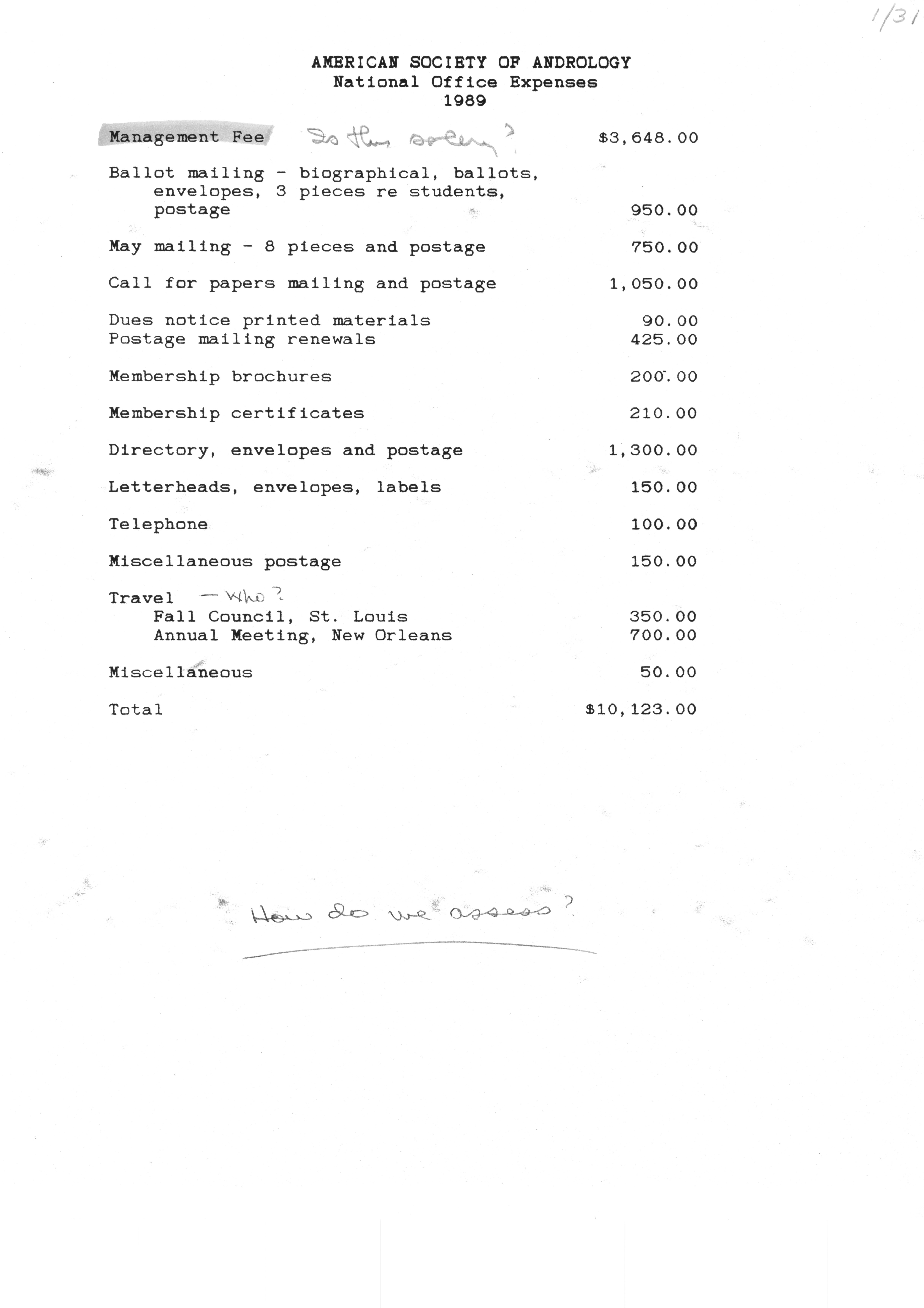 Finance Committee of the American Society of Andrology, 1989 Item Info