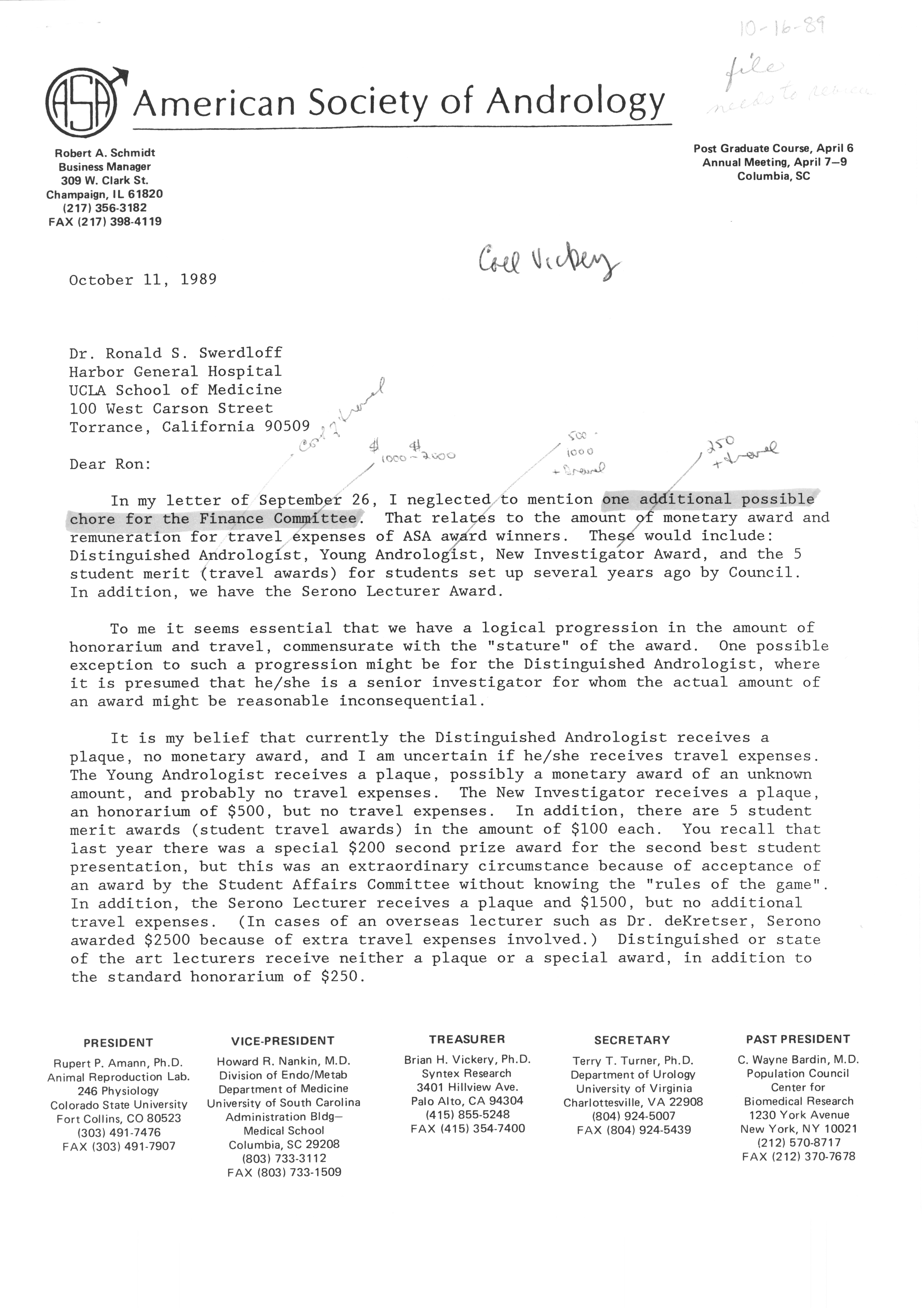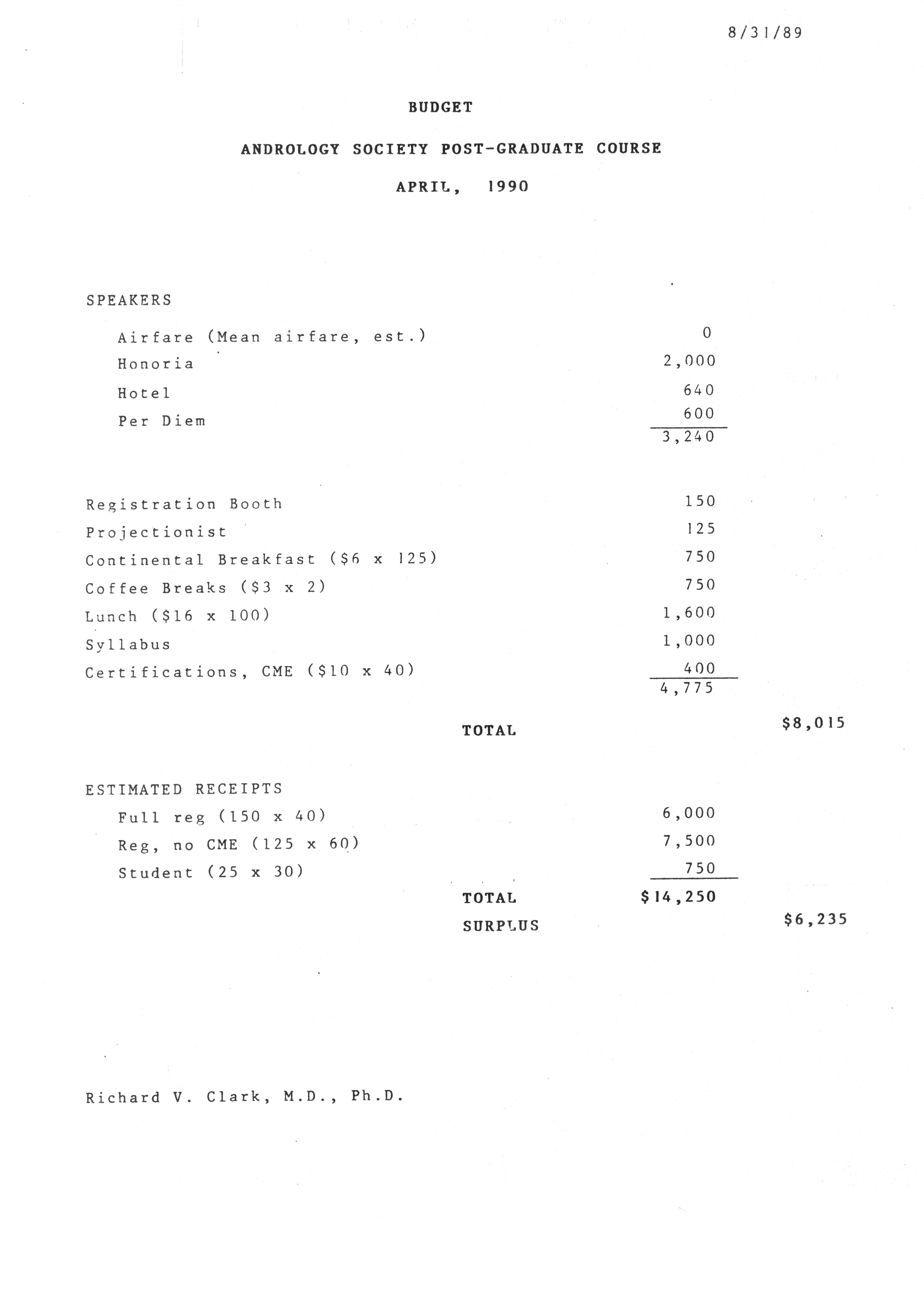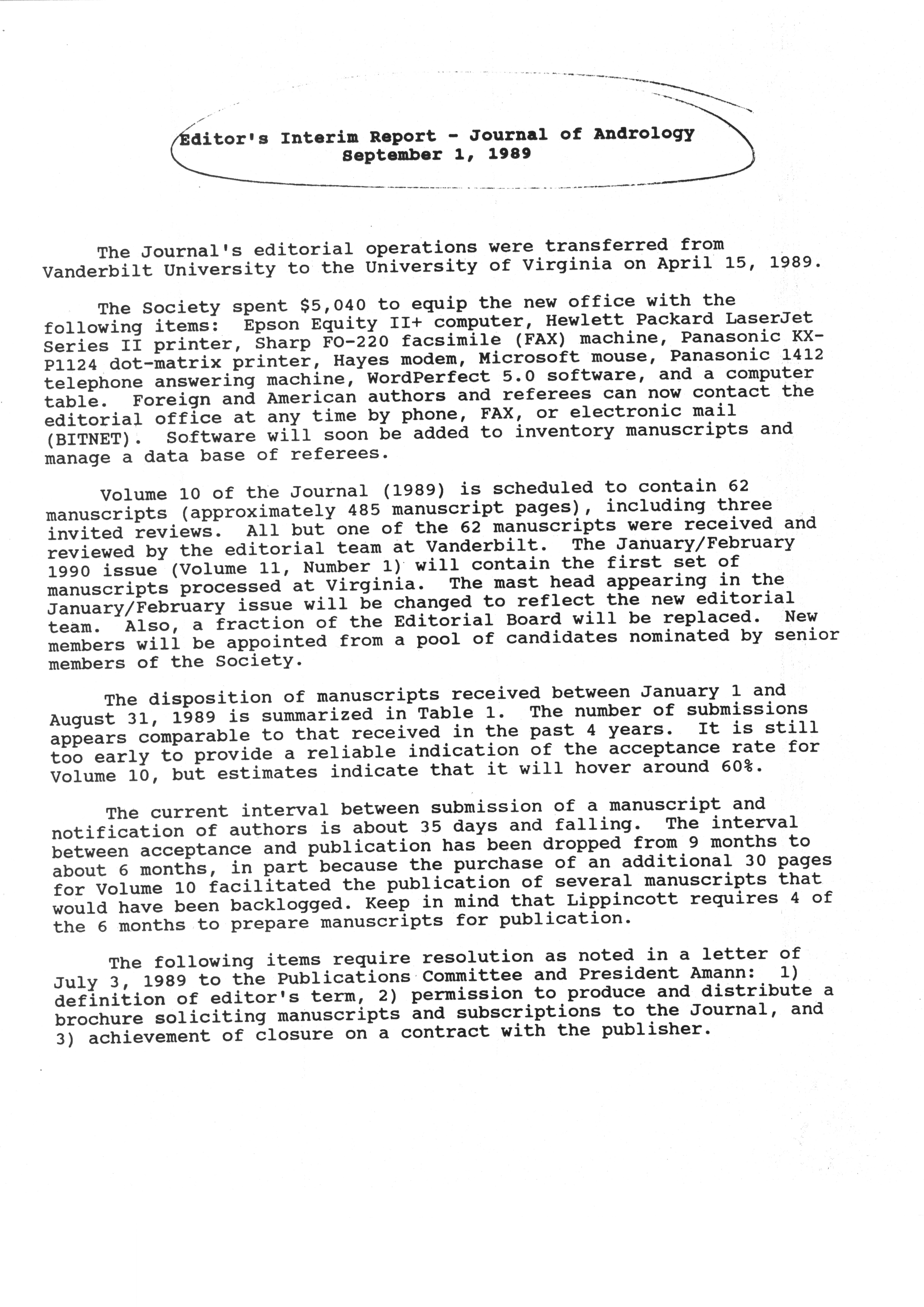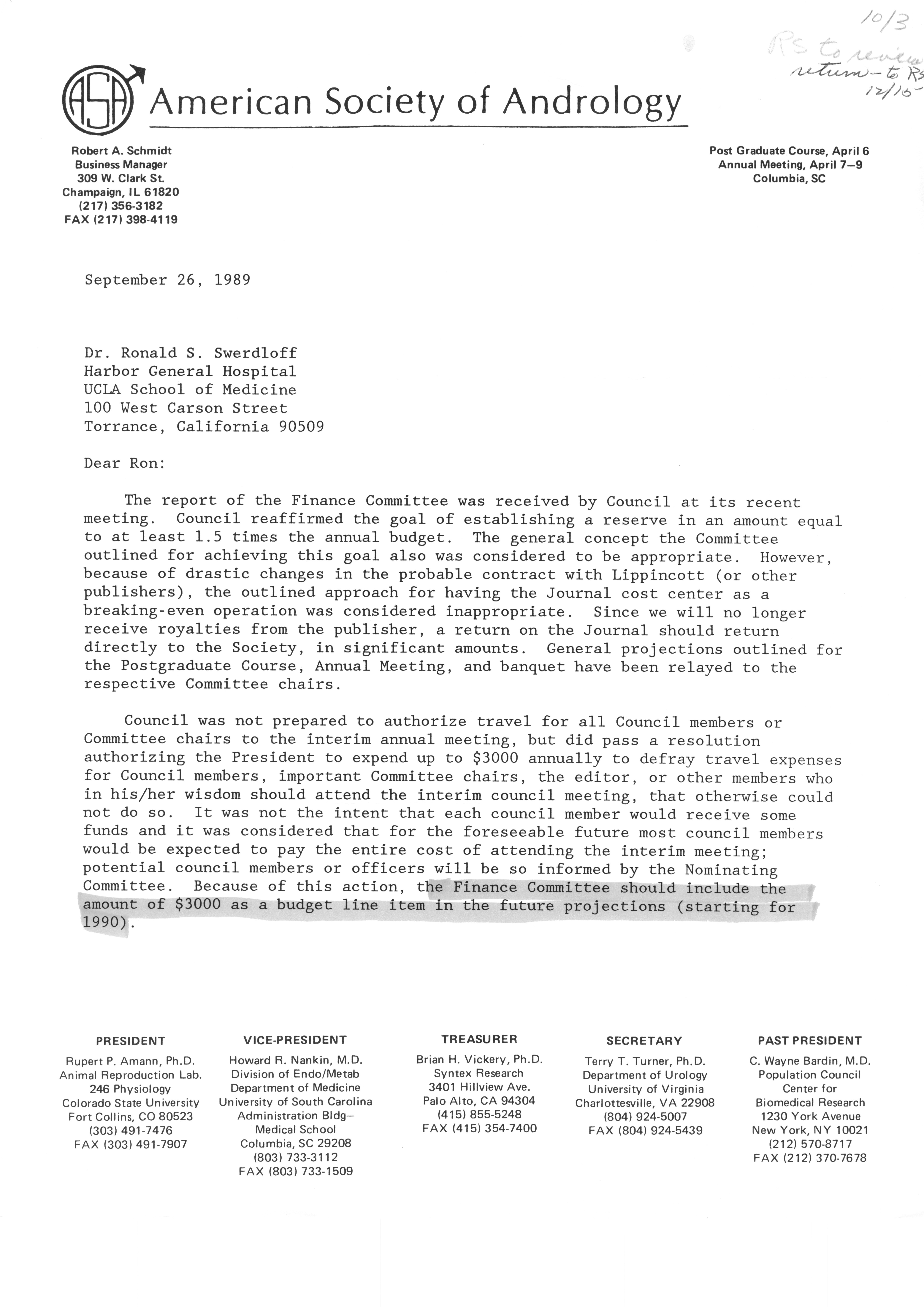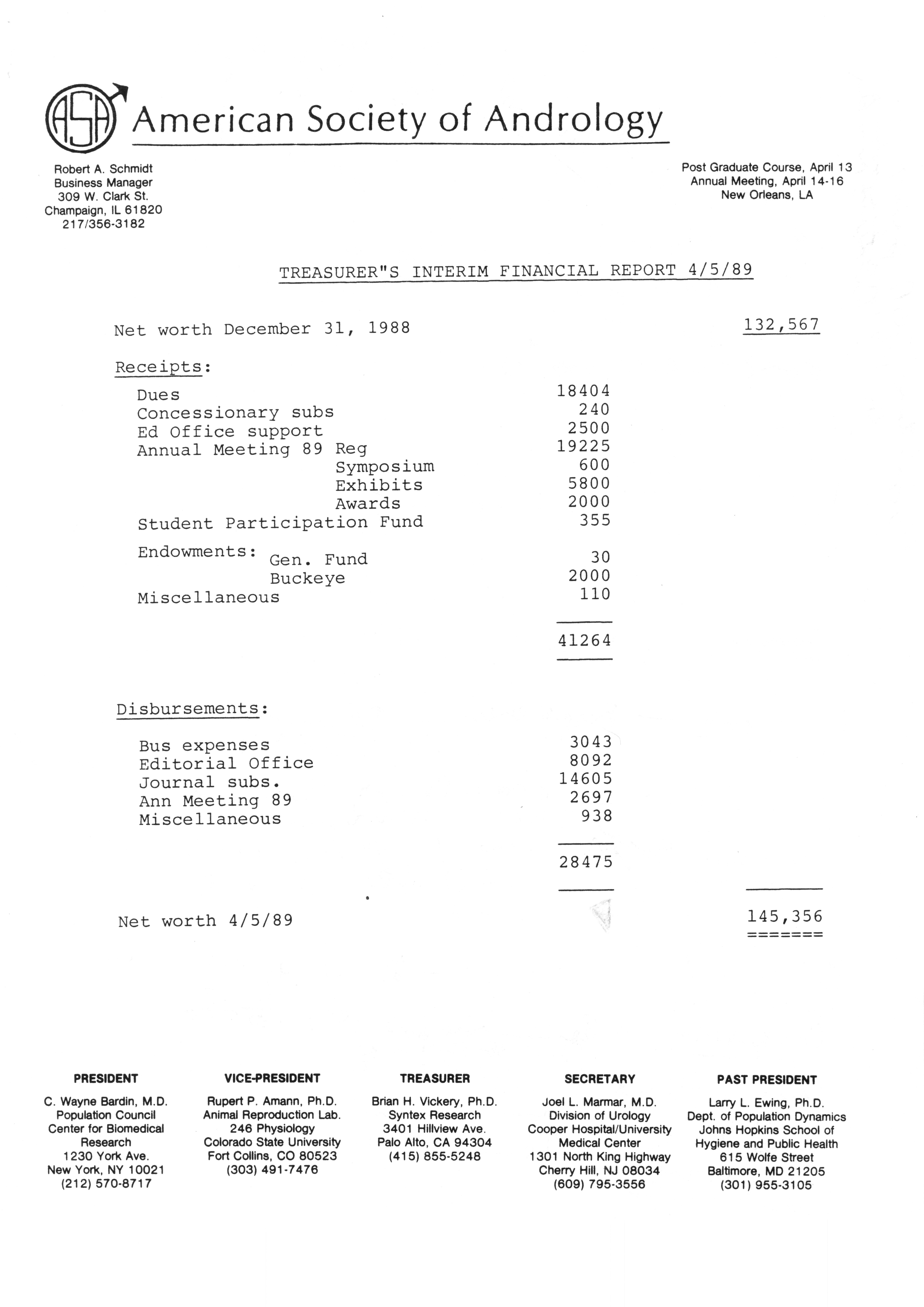 Finance Committee of the American Society of Andrology, 1989 Item Info