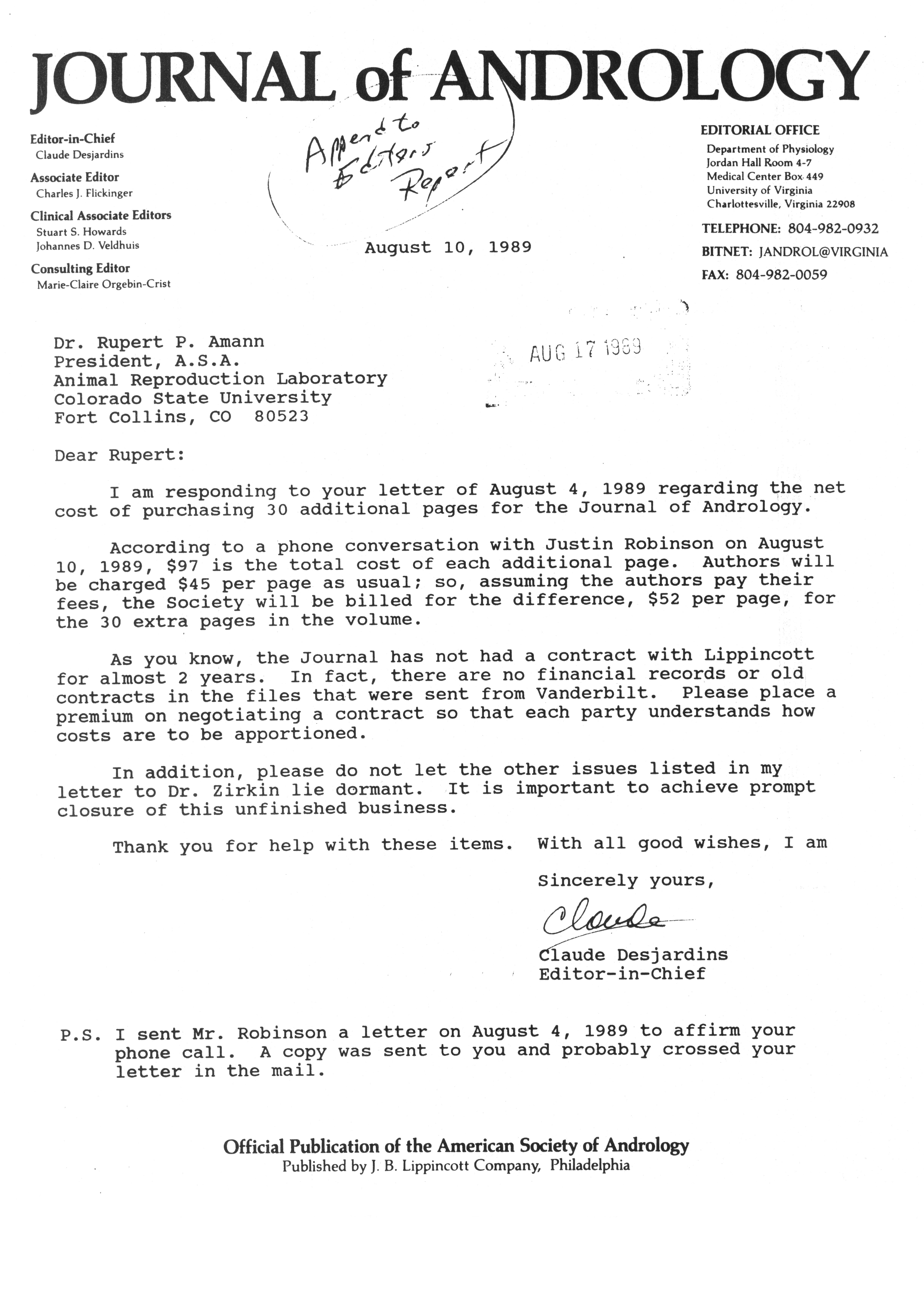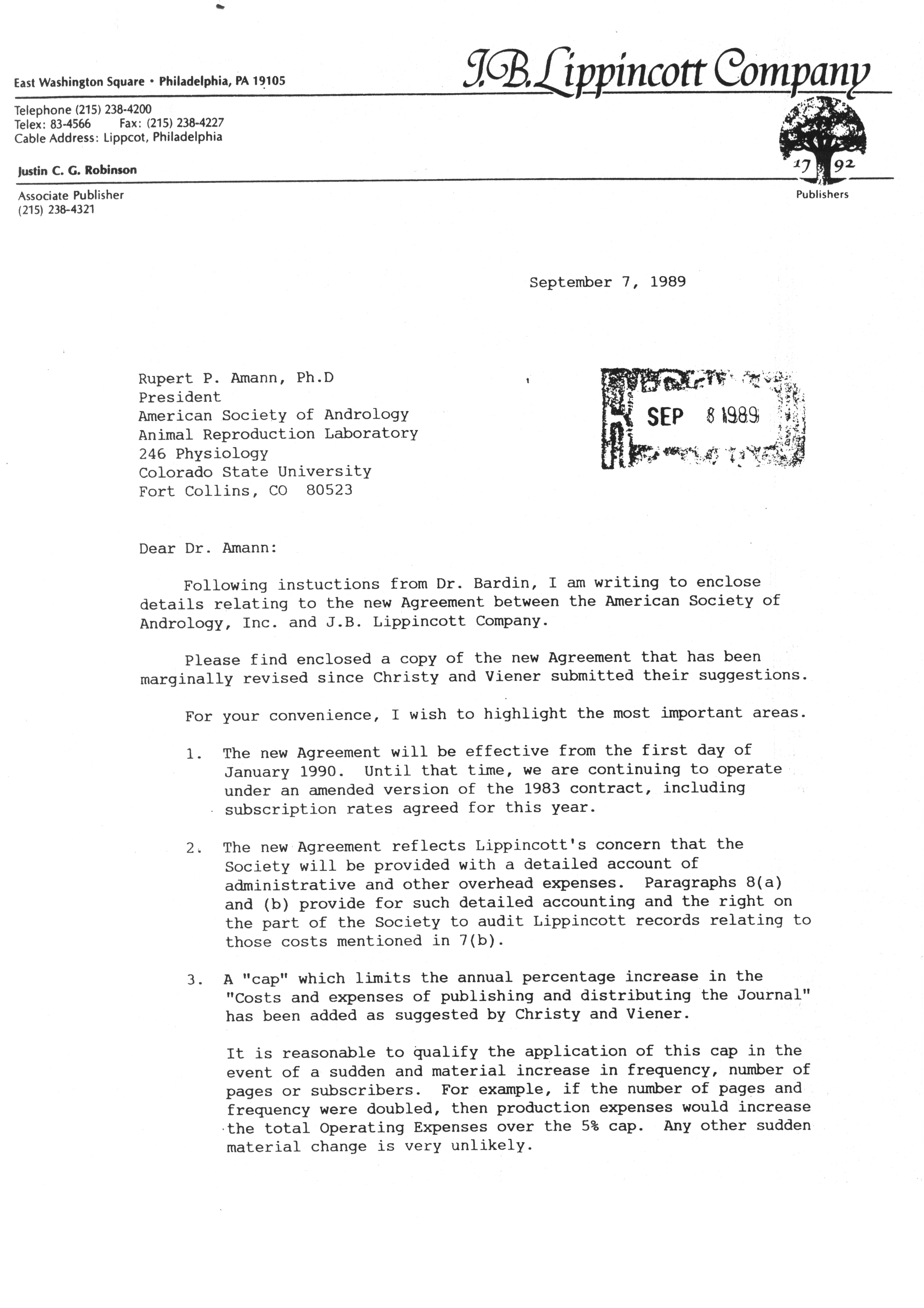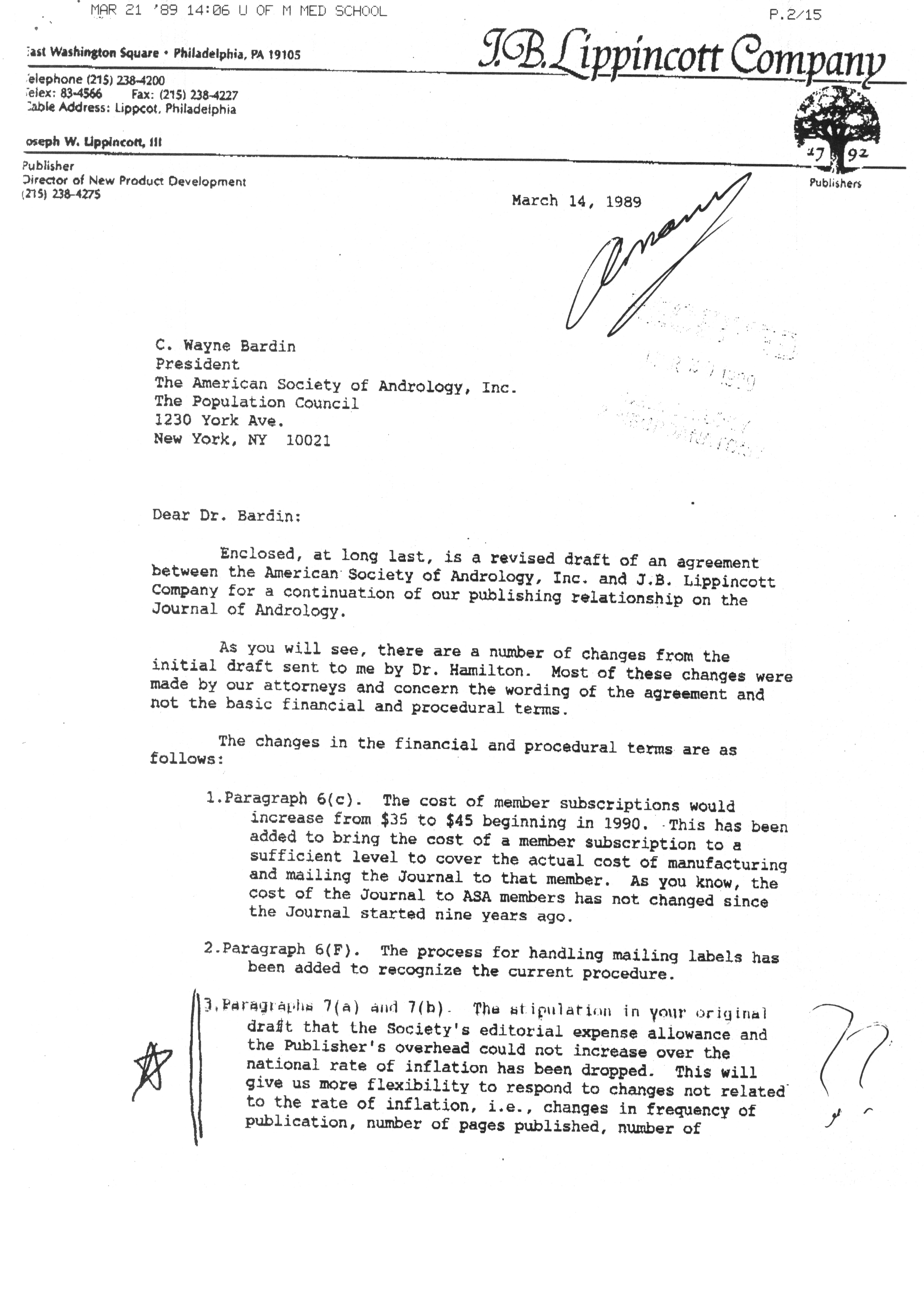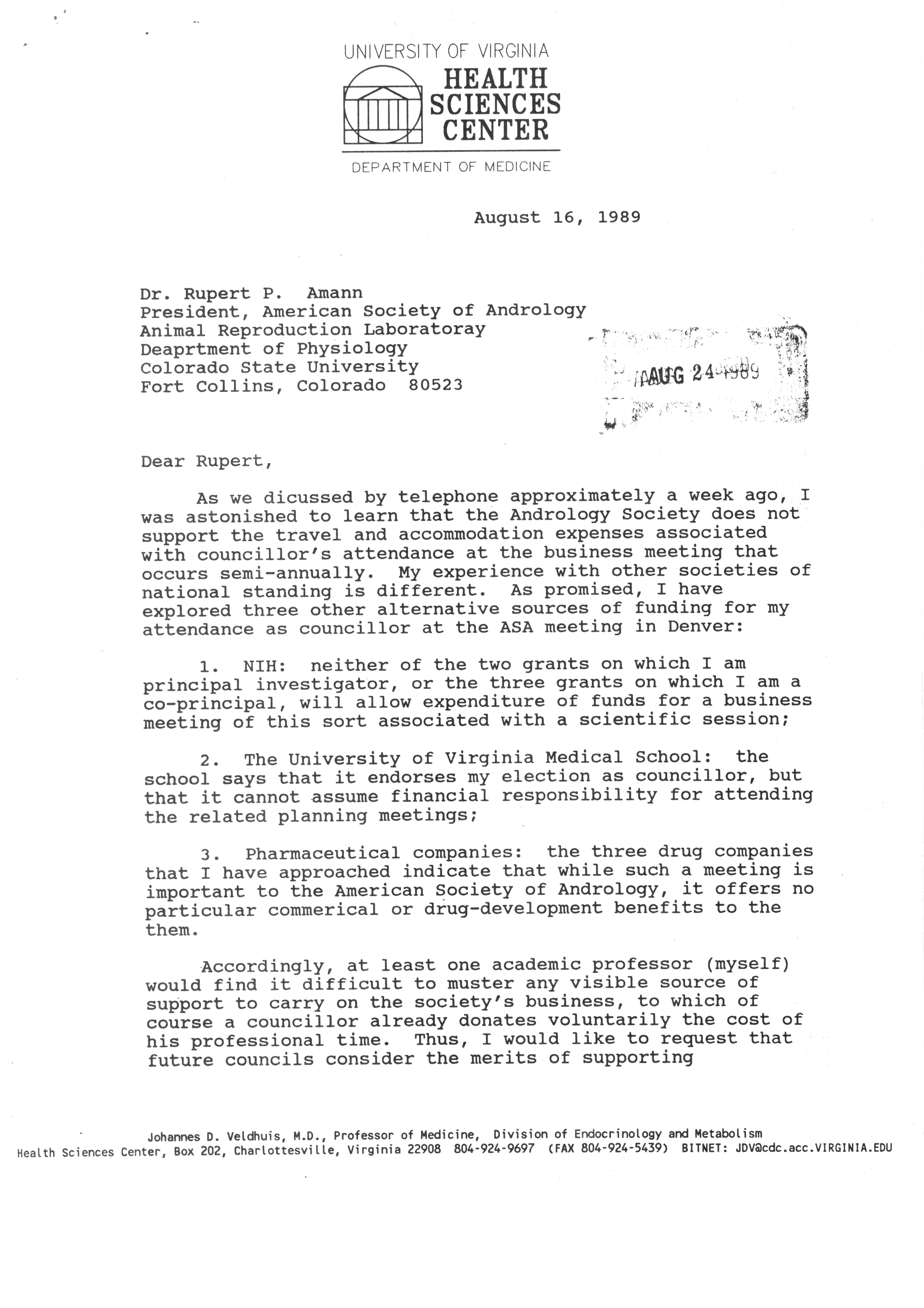 Finance Committee of the American Society of Andrology, 1989 Item Info