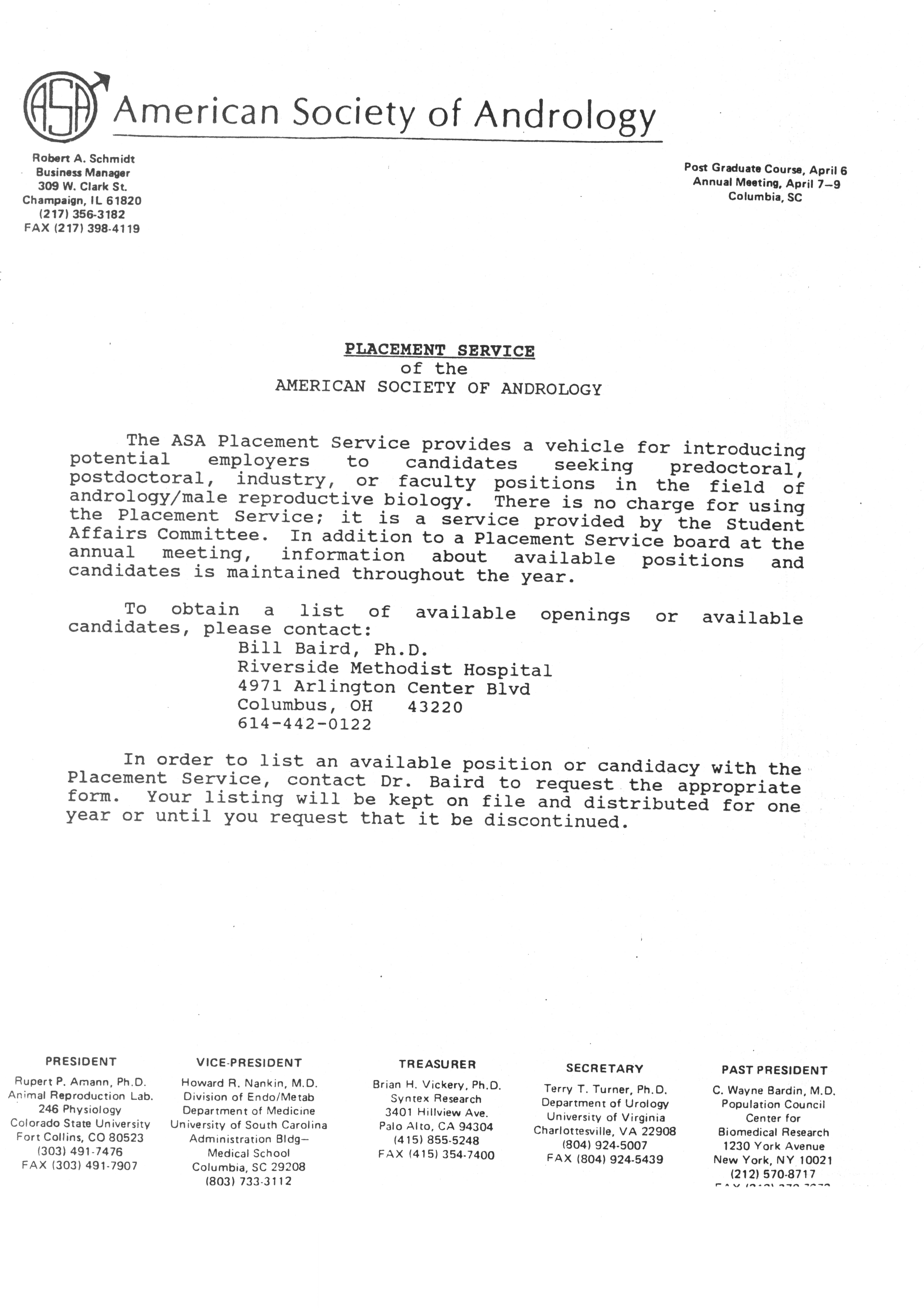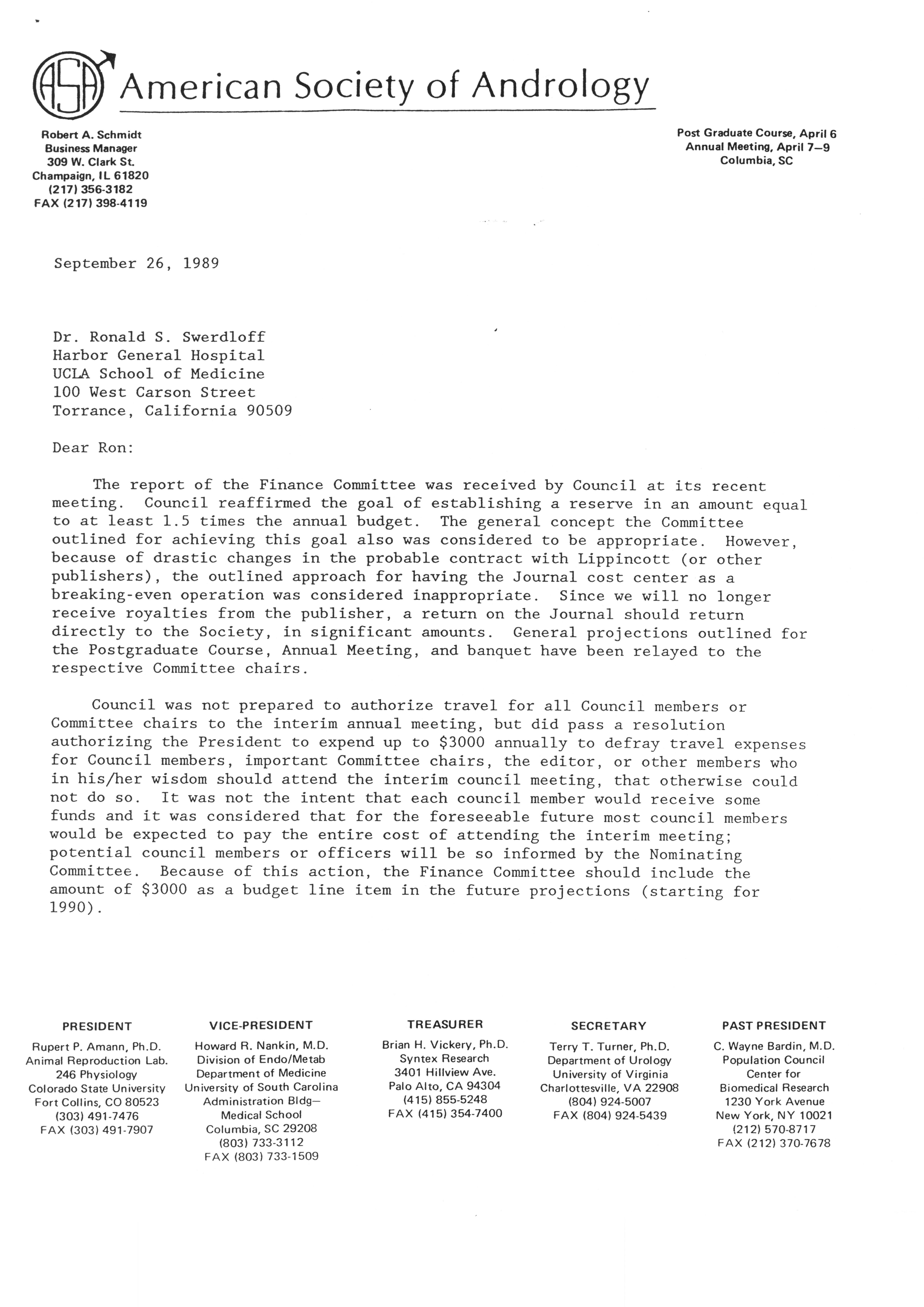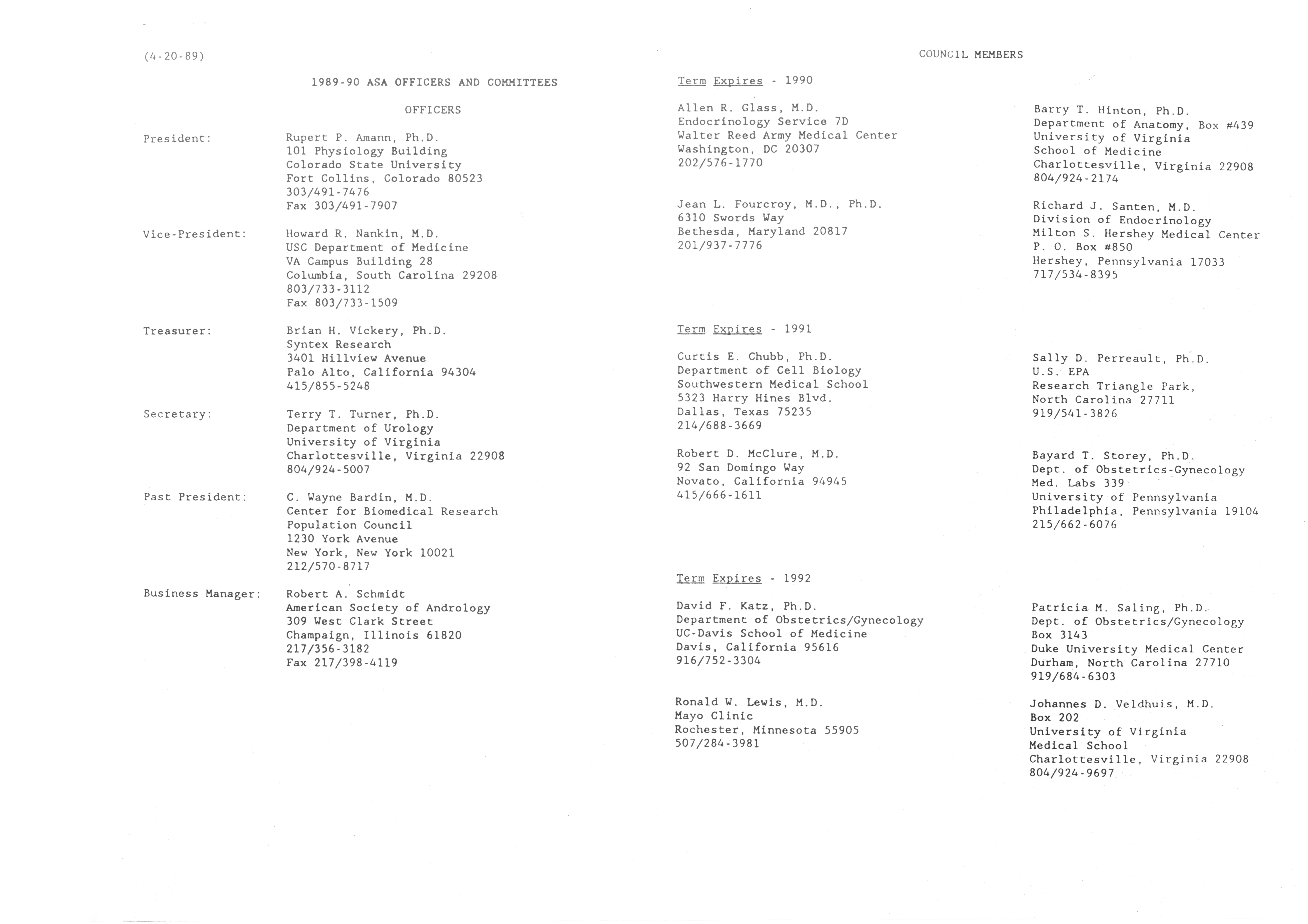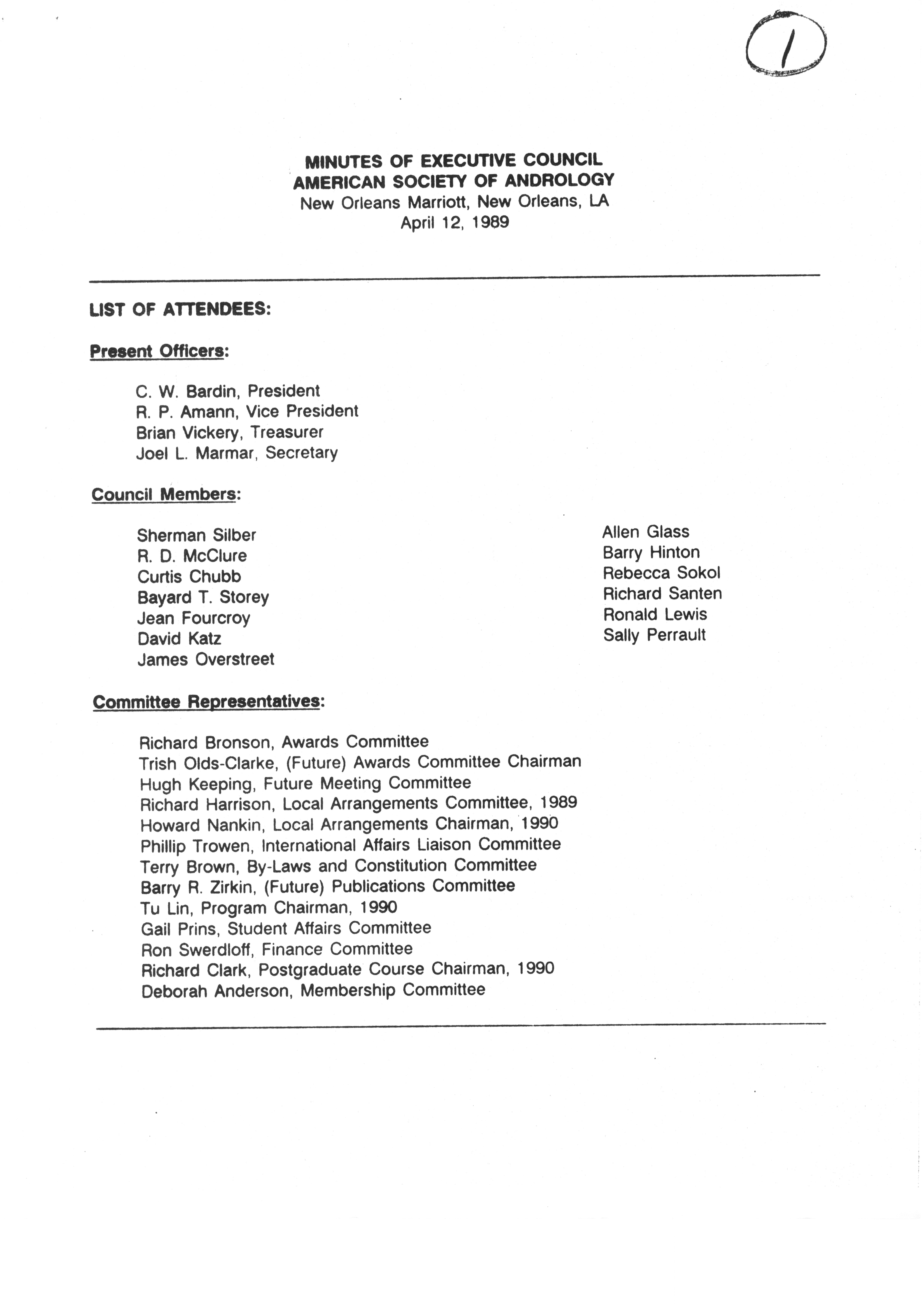 - "Finance Committee of the American Society of Andrology, 1989", American Society of Andrology Collection, Iowa State University Library Digital Collections