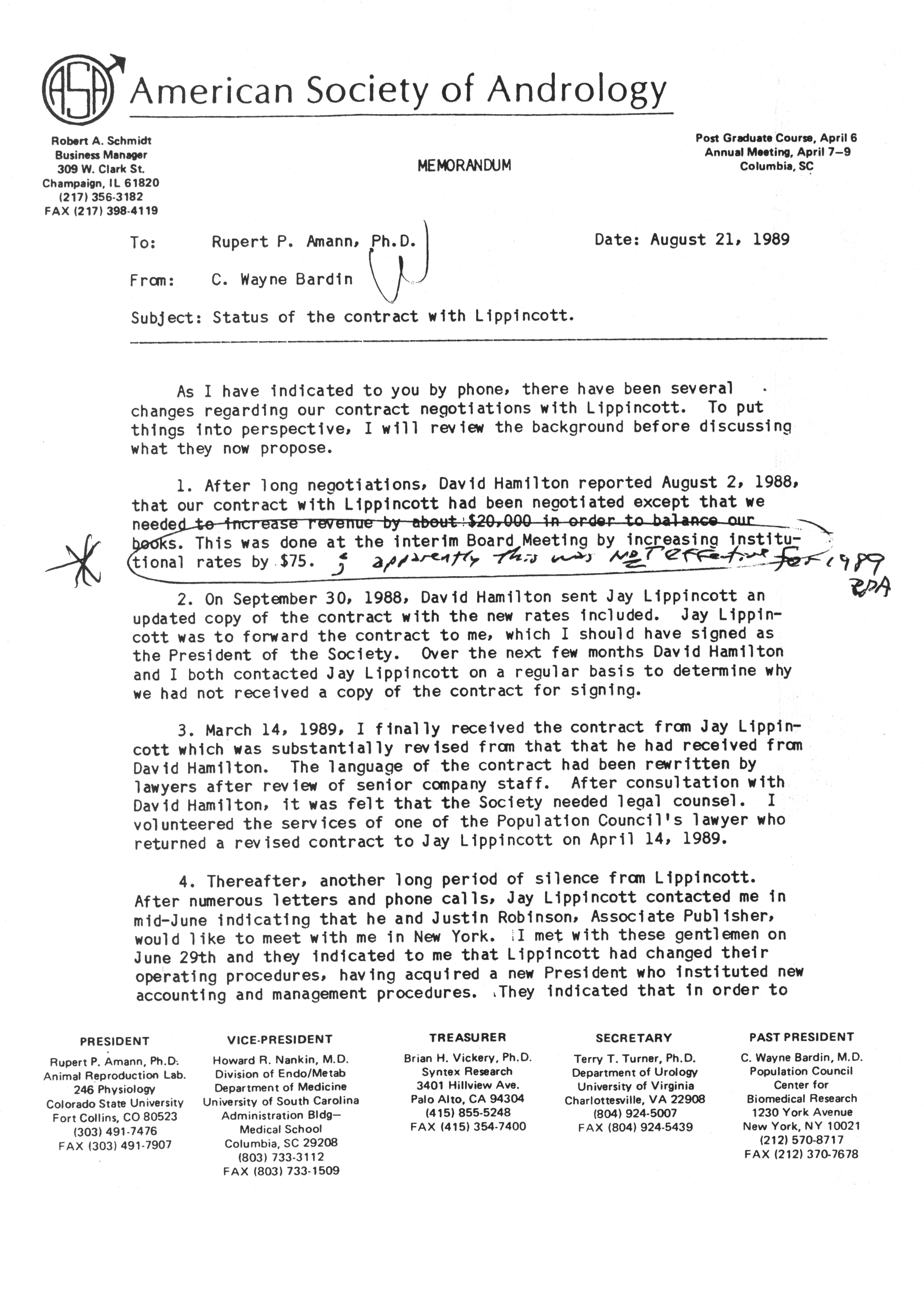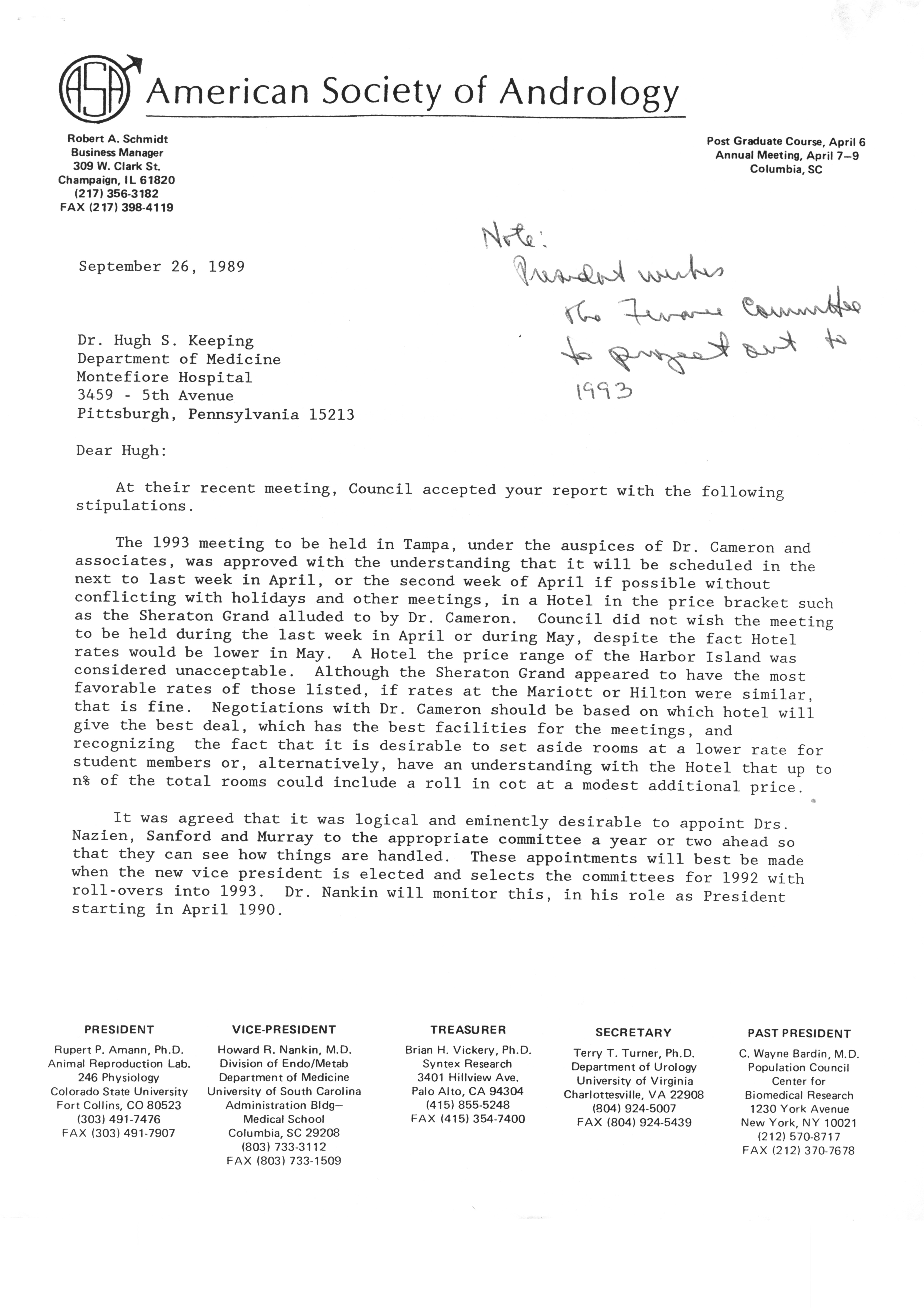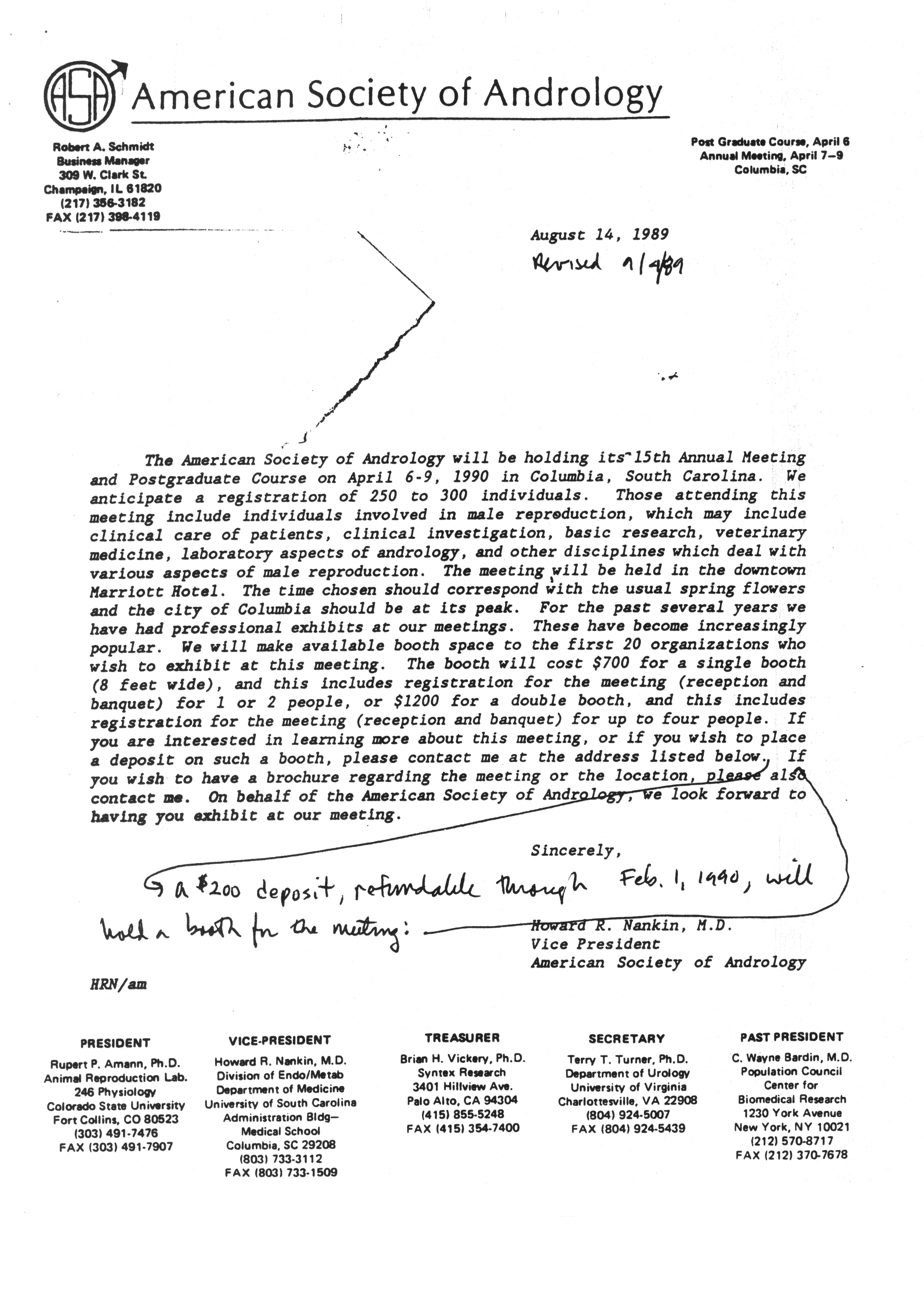 - "Finance Committee of the American Society of Andrology, 1989", American Society of Andrology Collection, Iowa State University Library Digital Collections