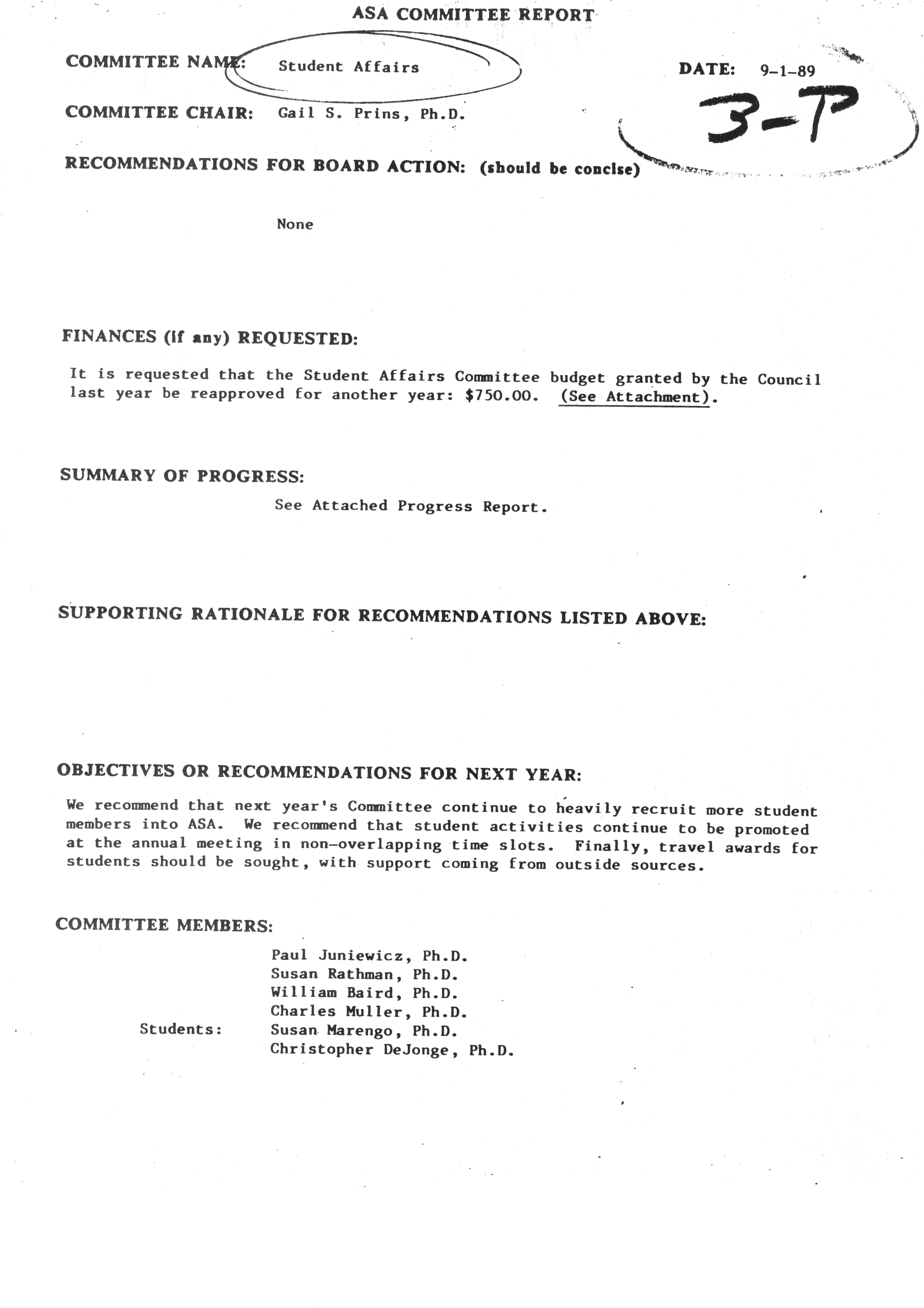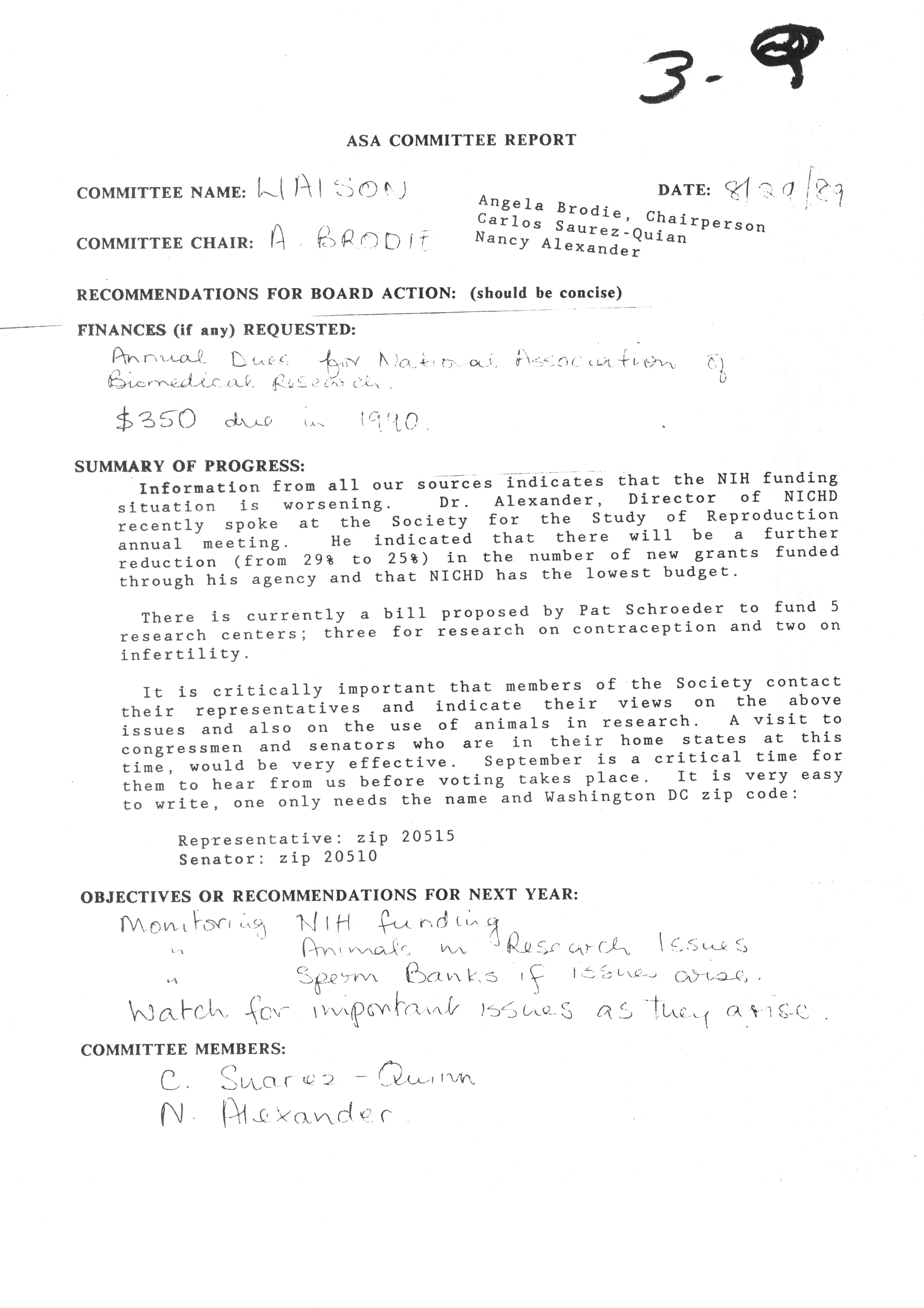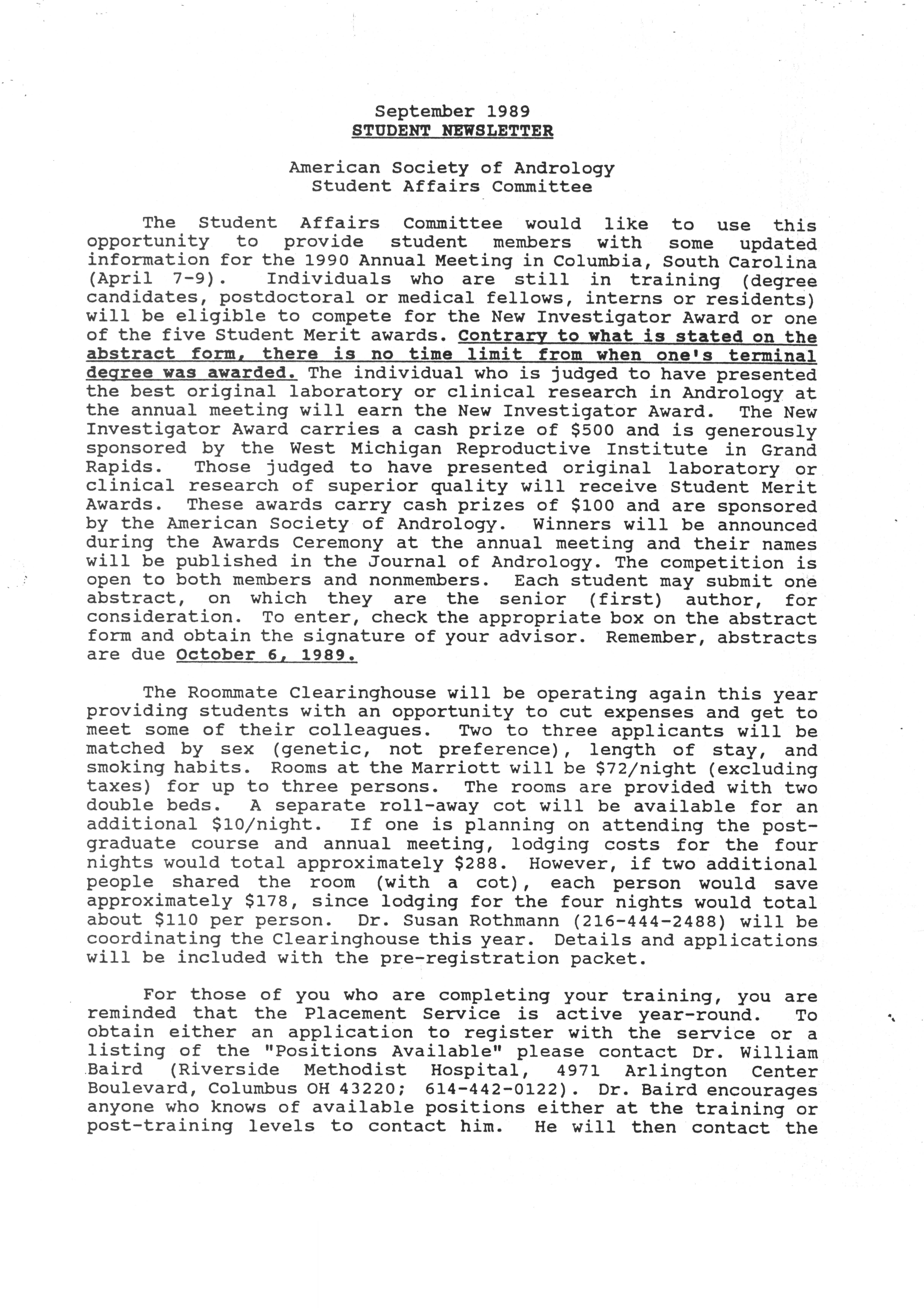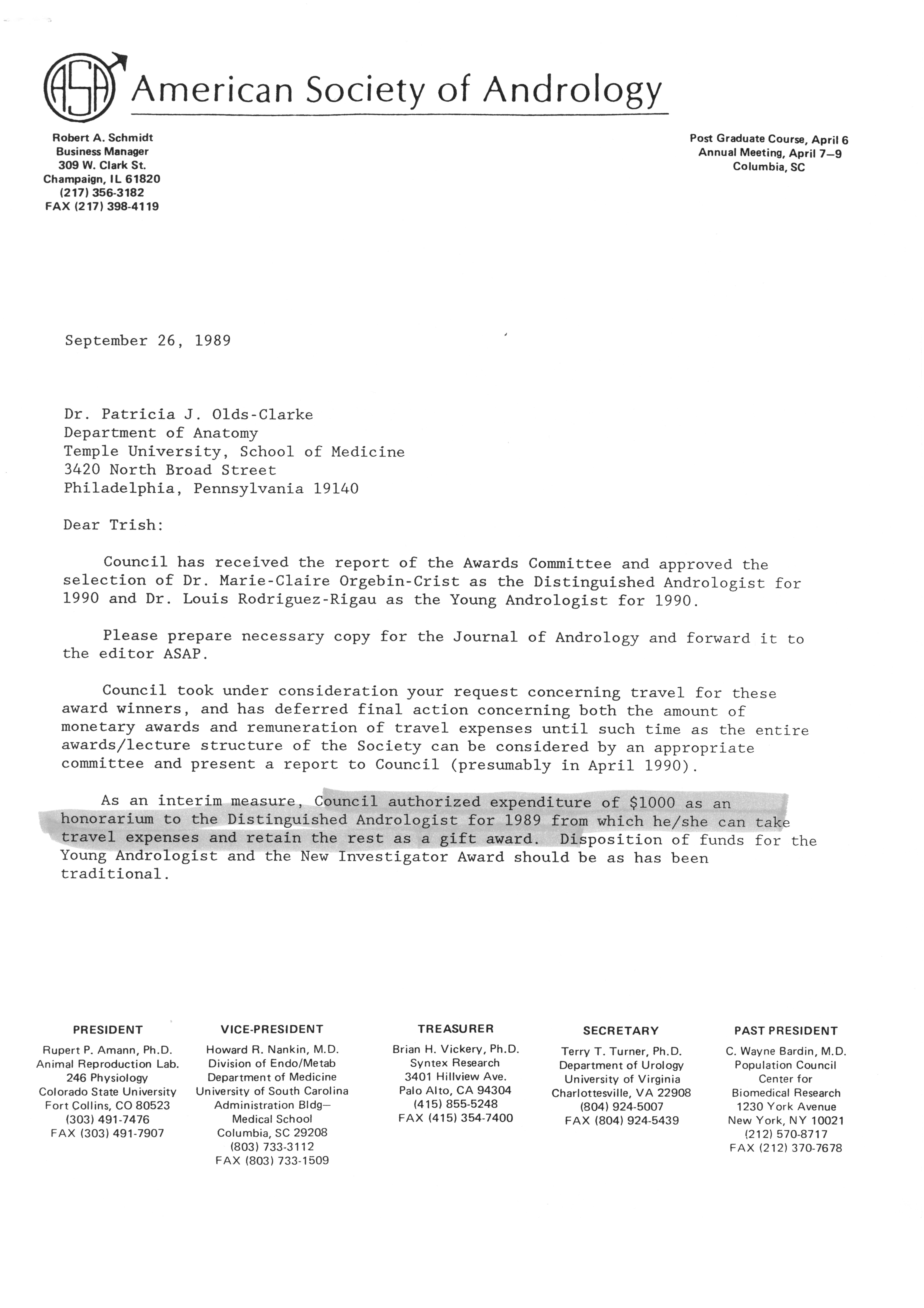 - "Finance Committee of the American Society of Andrology, 1989", American Society of Andrology Collection, Iowa State University Library Digital Collections