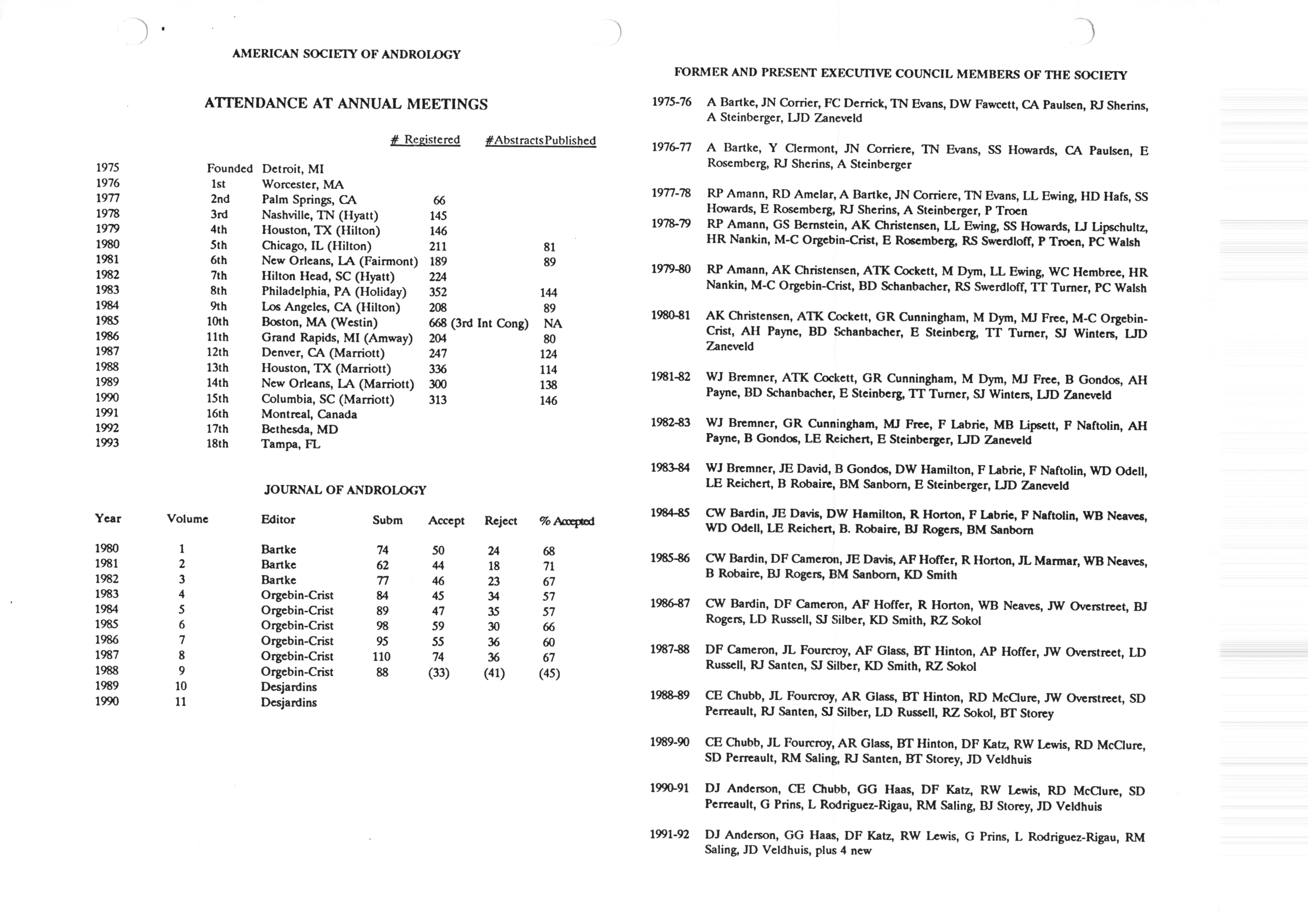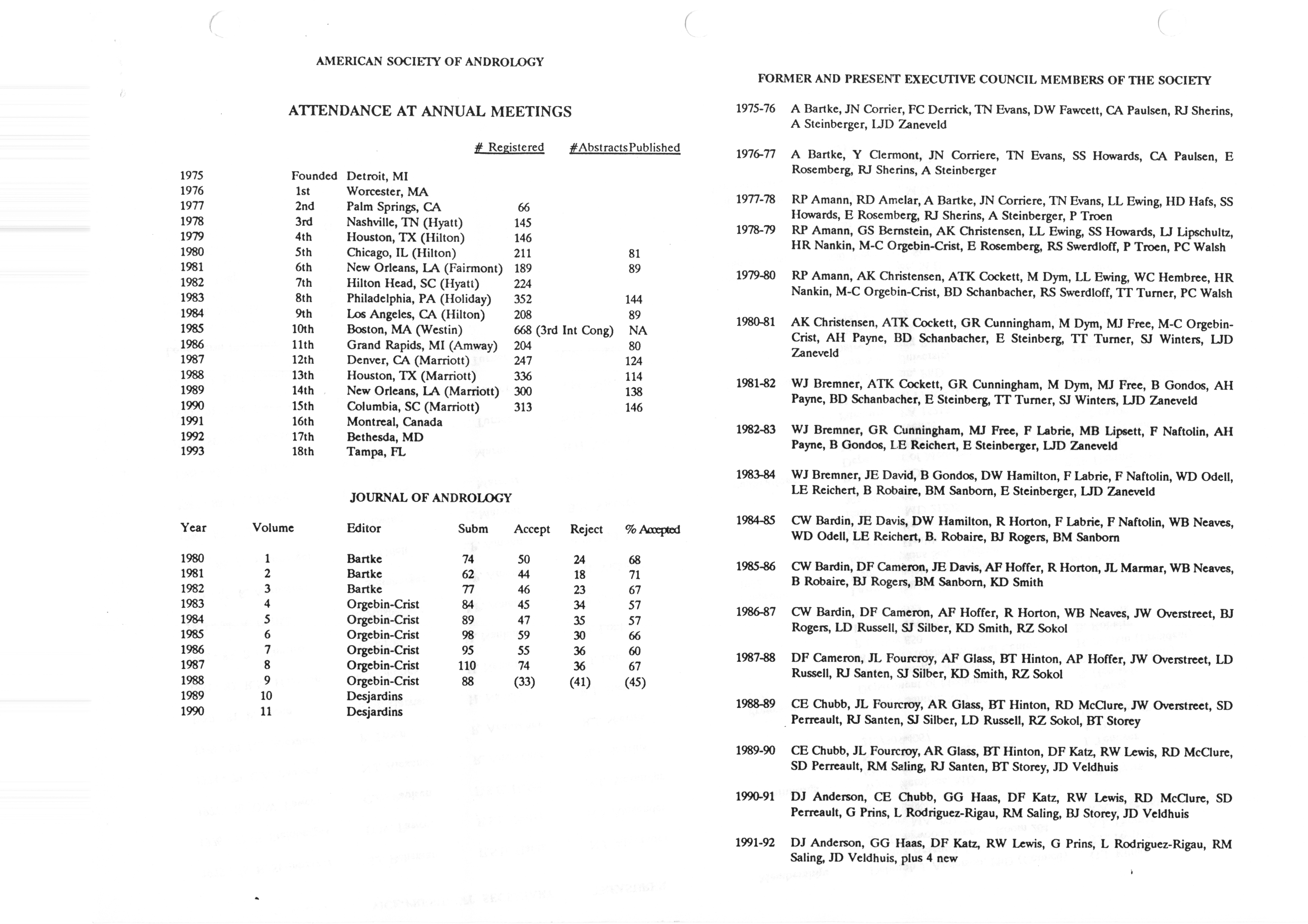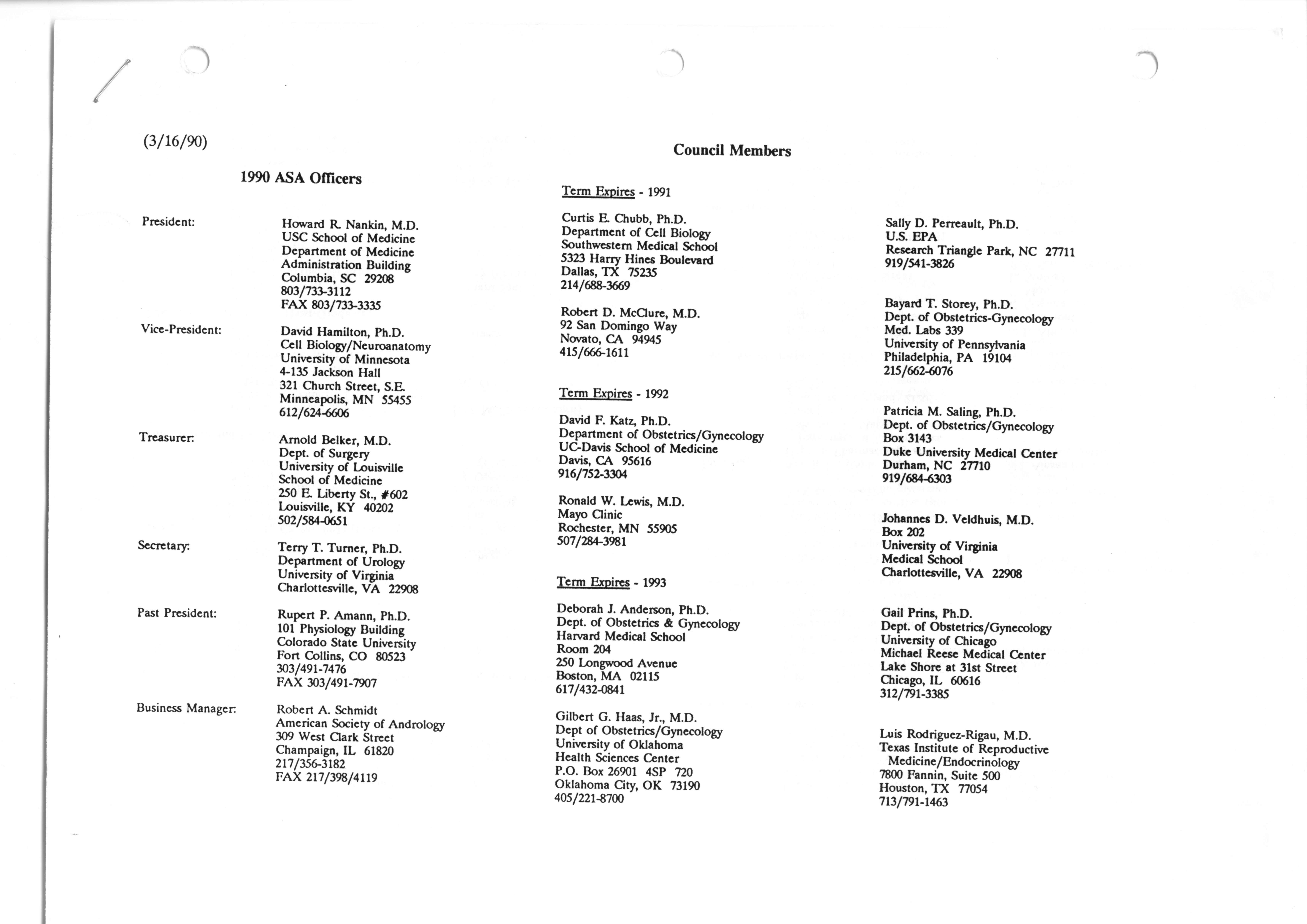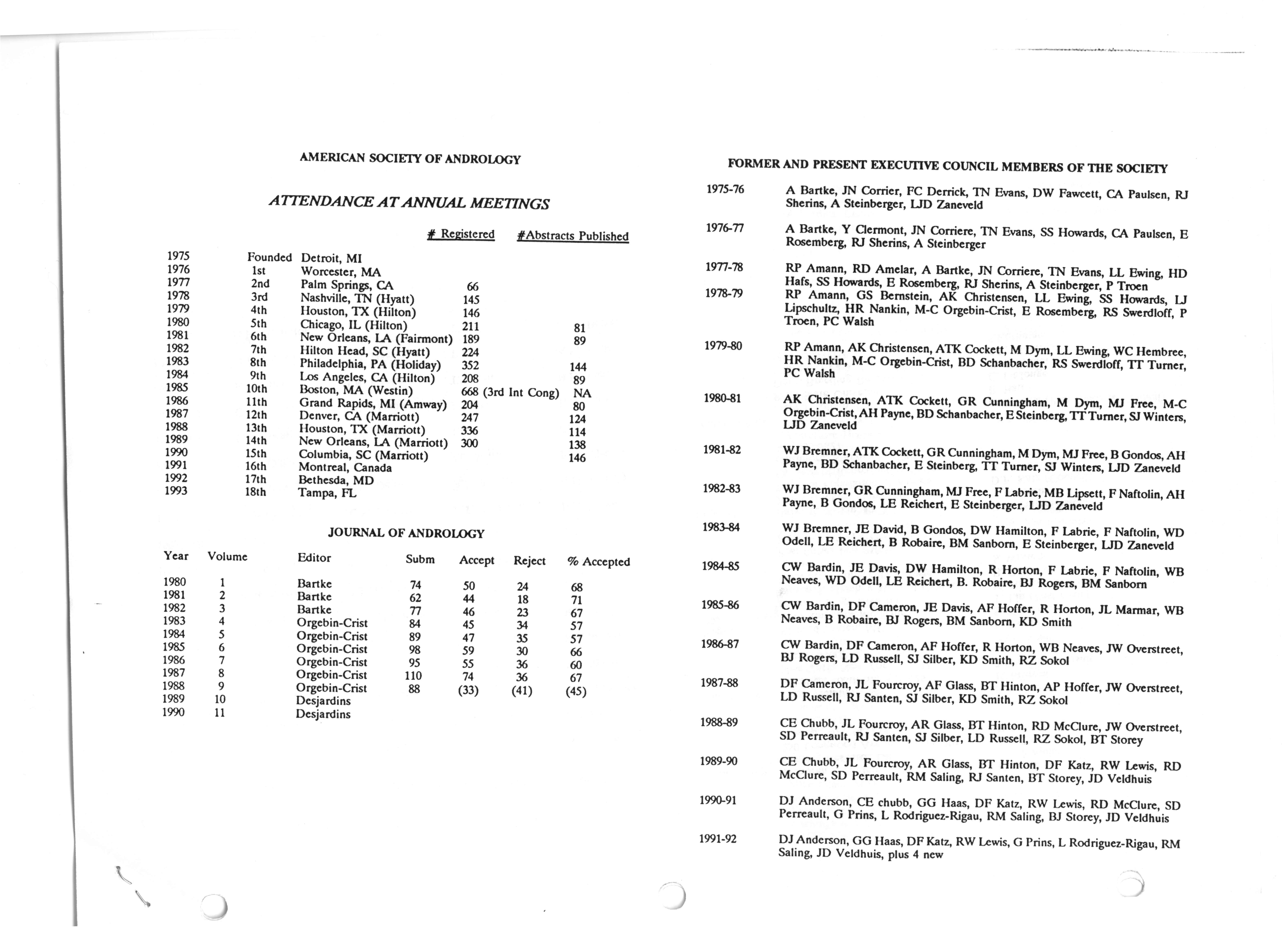 - "Executive Council Meetings correspondence of the American Society of Andrology, 1990", American Society of Andrology Collection, Iowa State University Library Digital Collections