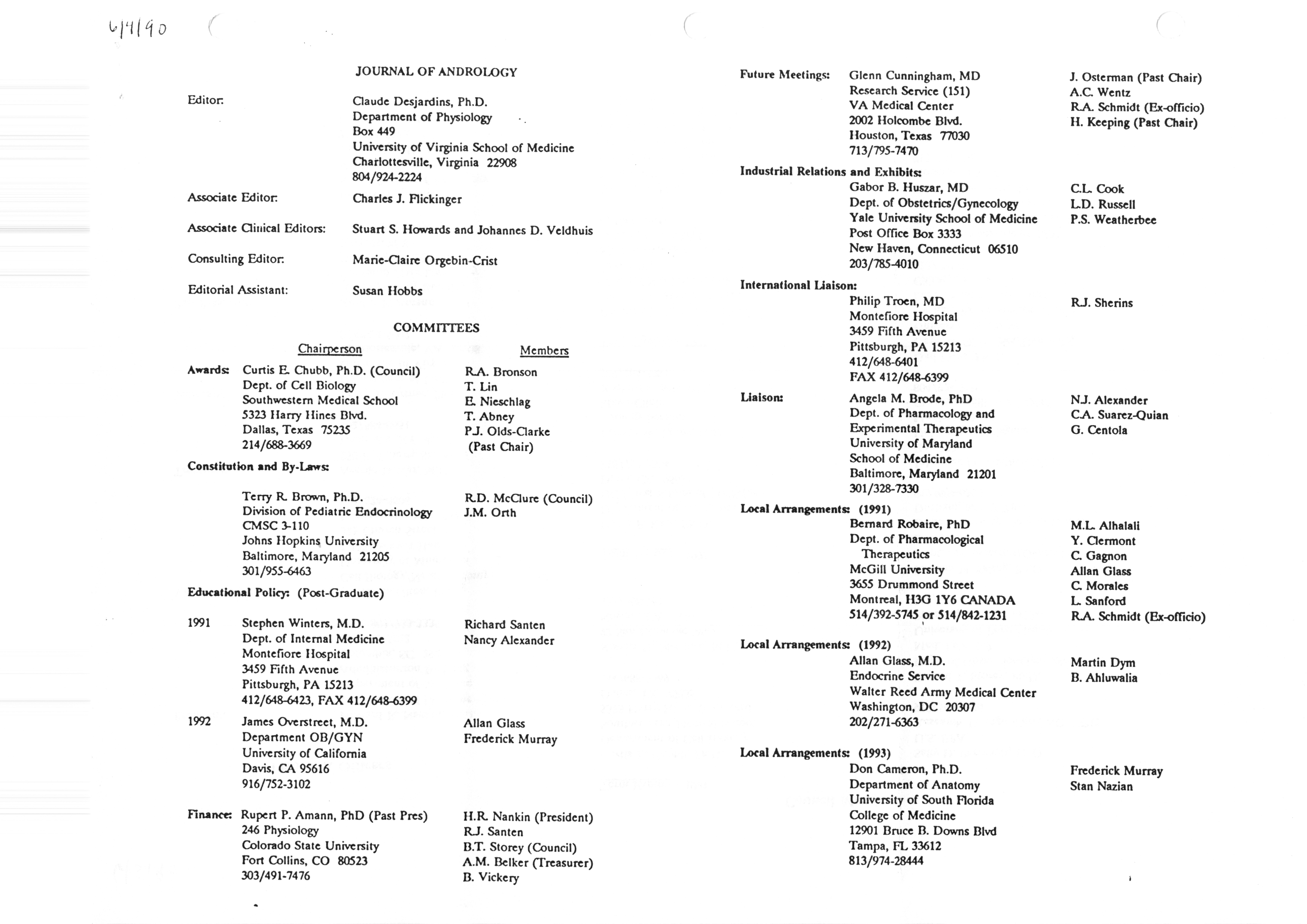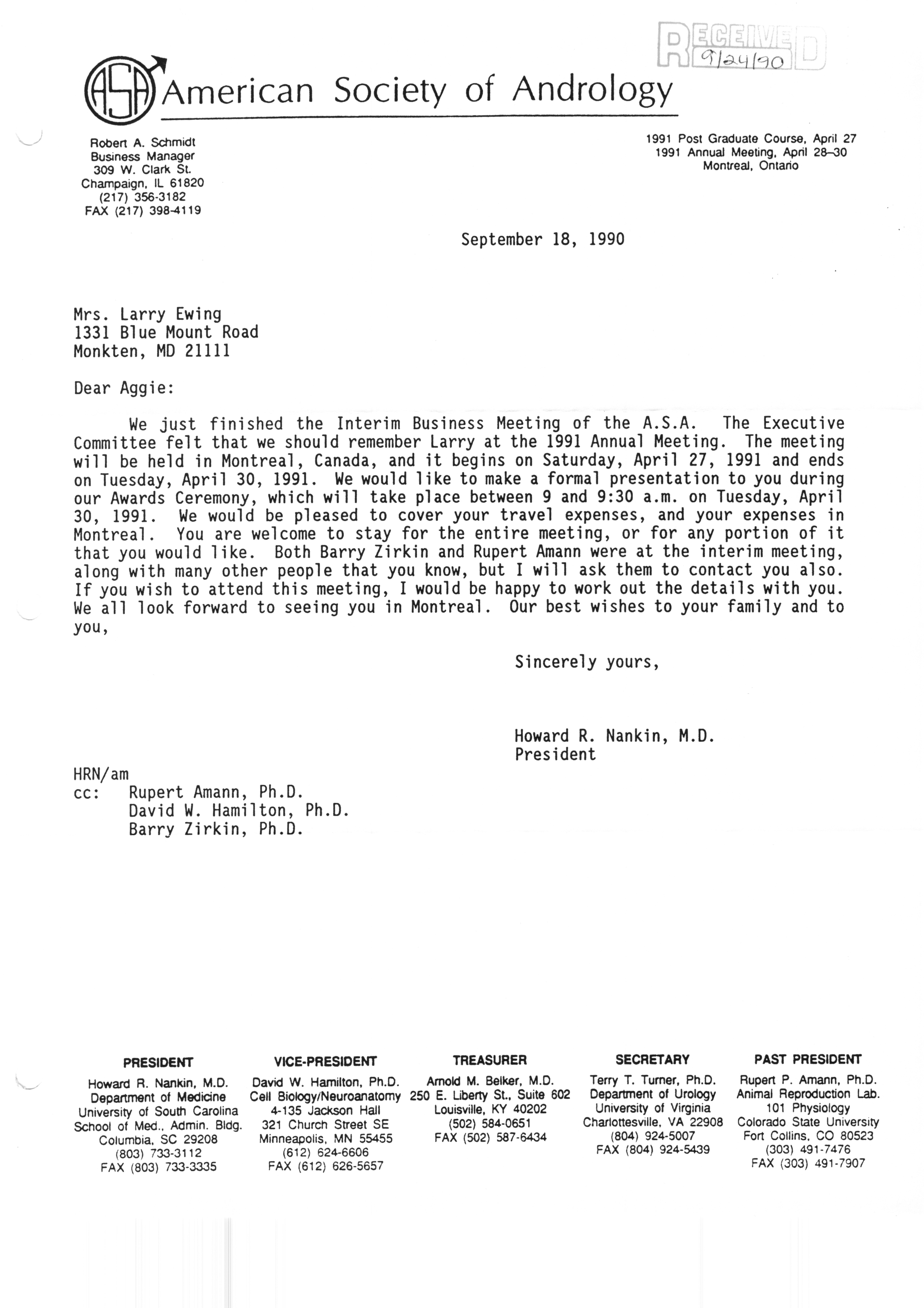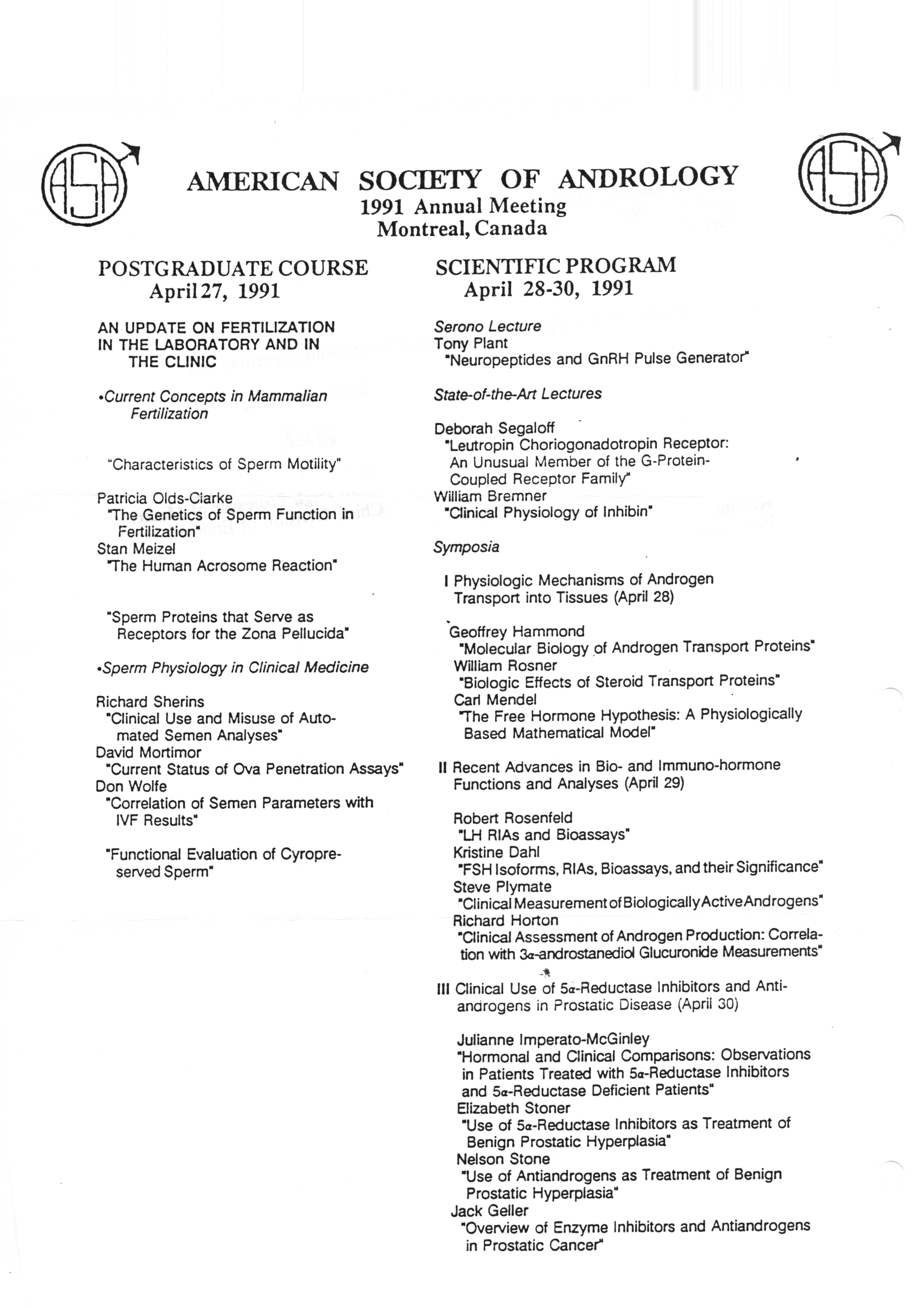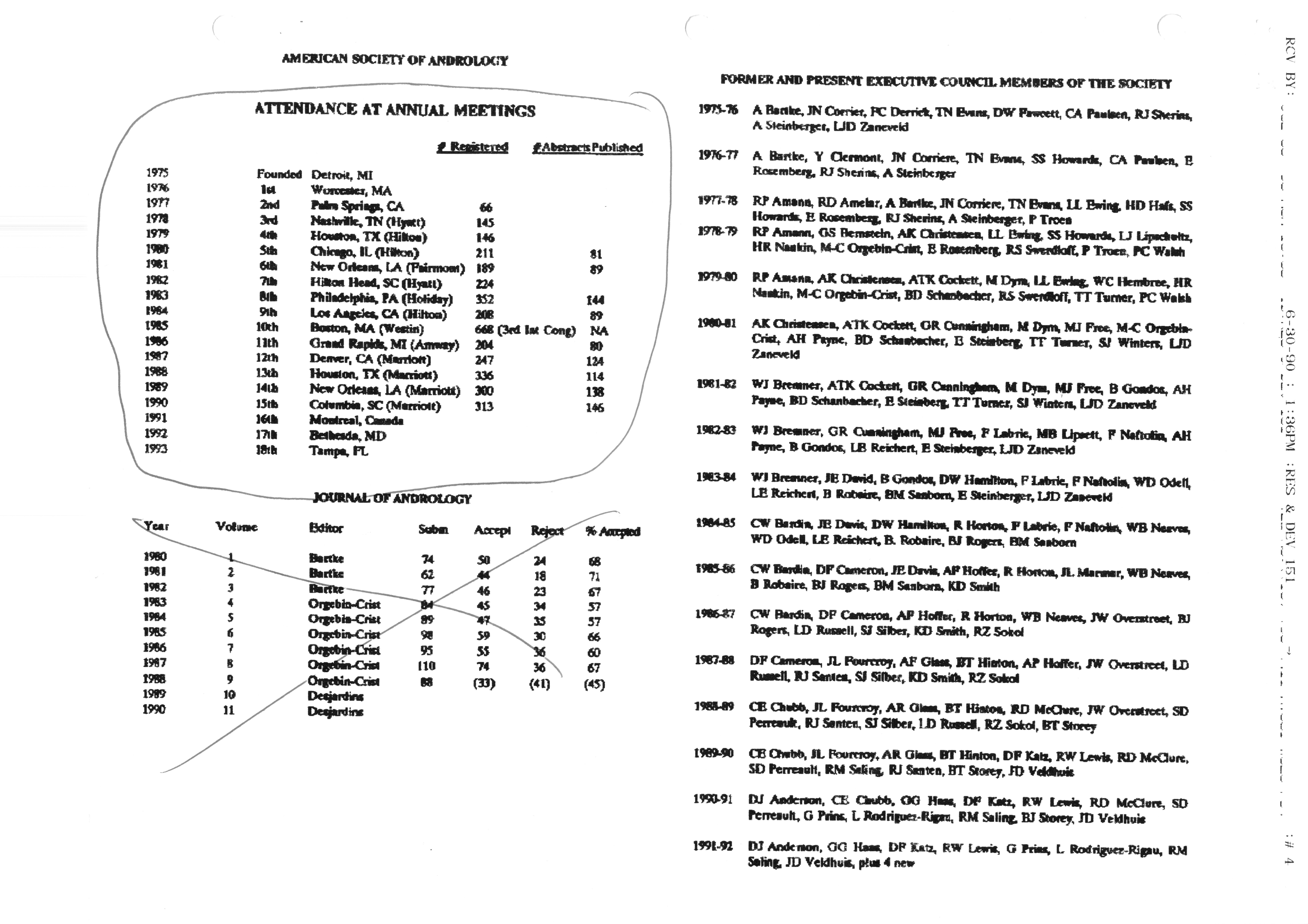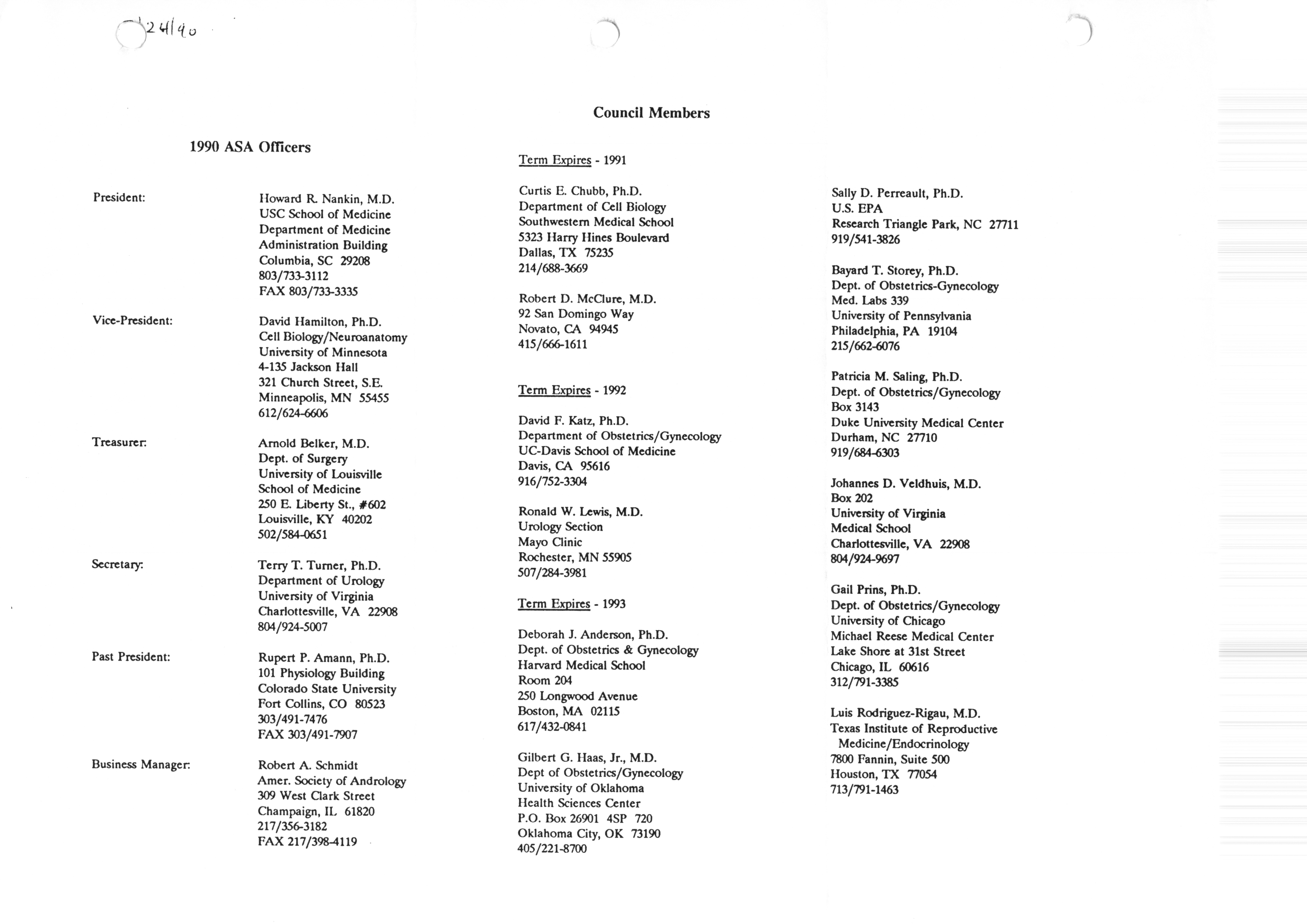 - "Executive Council Meetings correspondence of the American Society of Andrology, 1990", American Society of Andrology Collection, Iowa State University Library Digital Collections