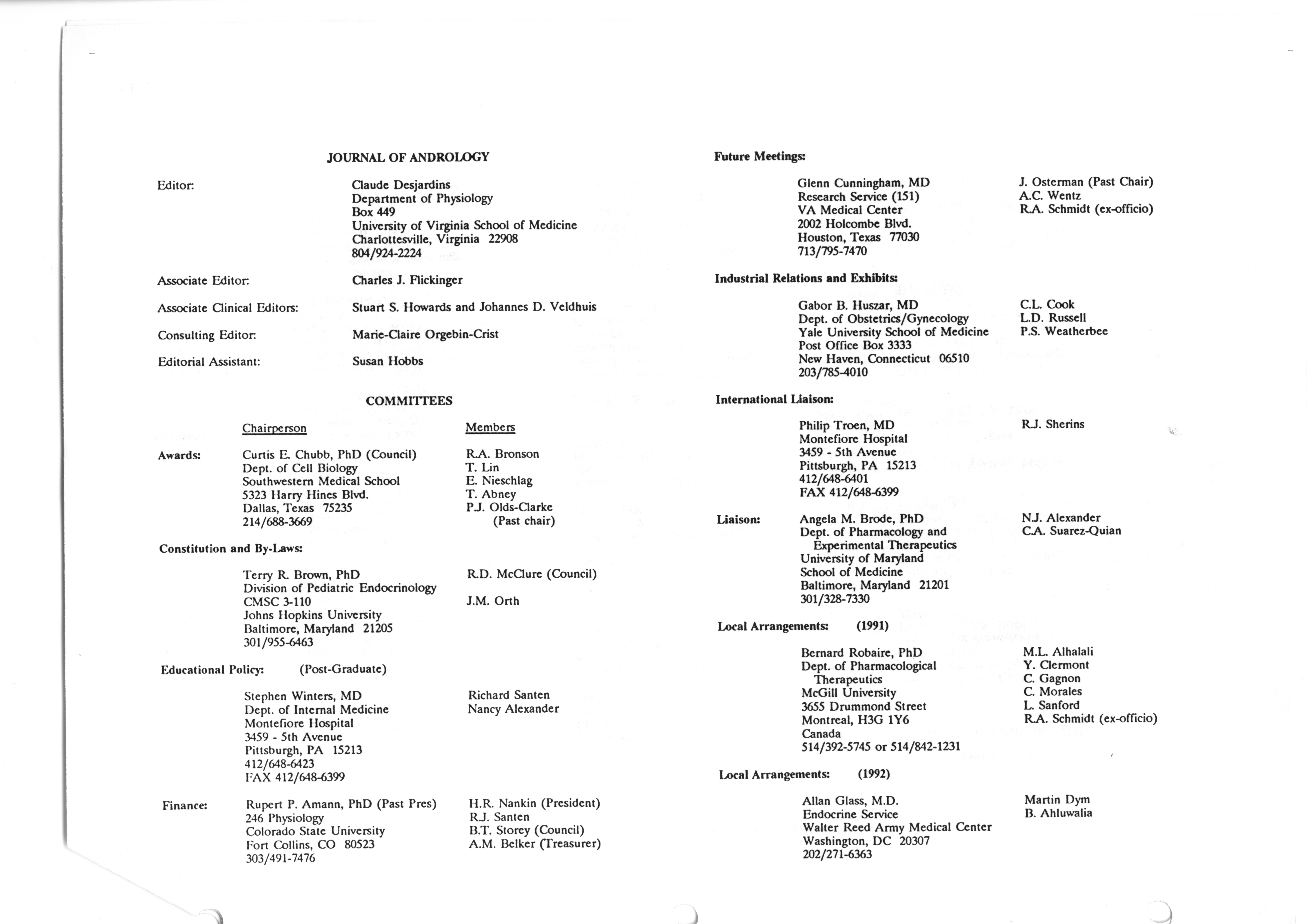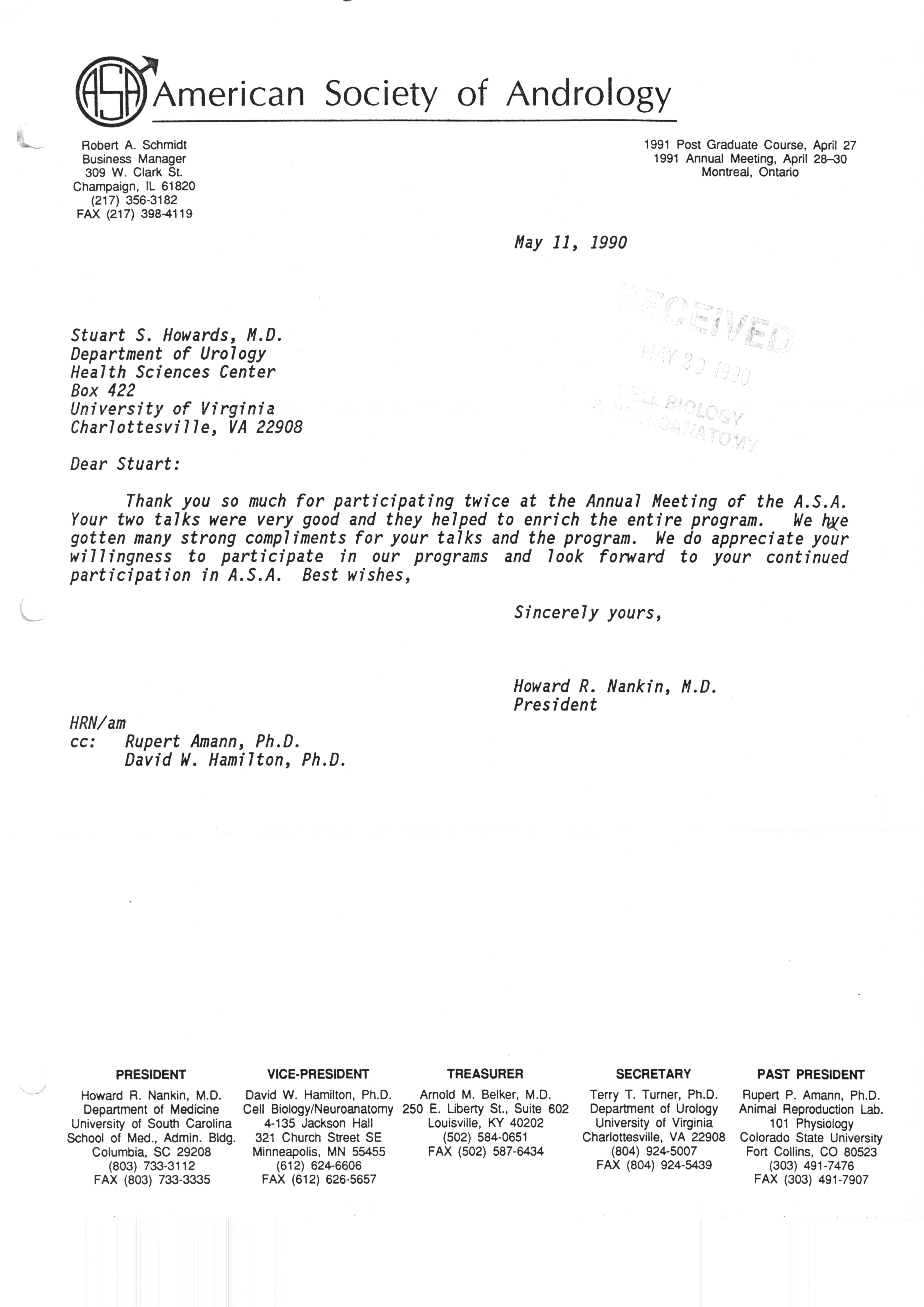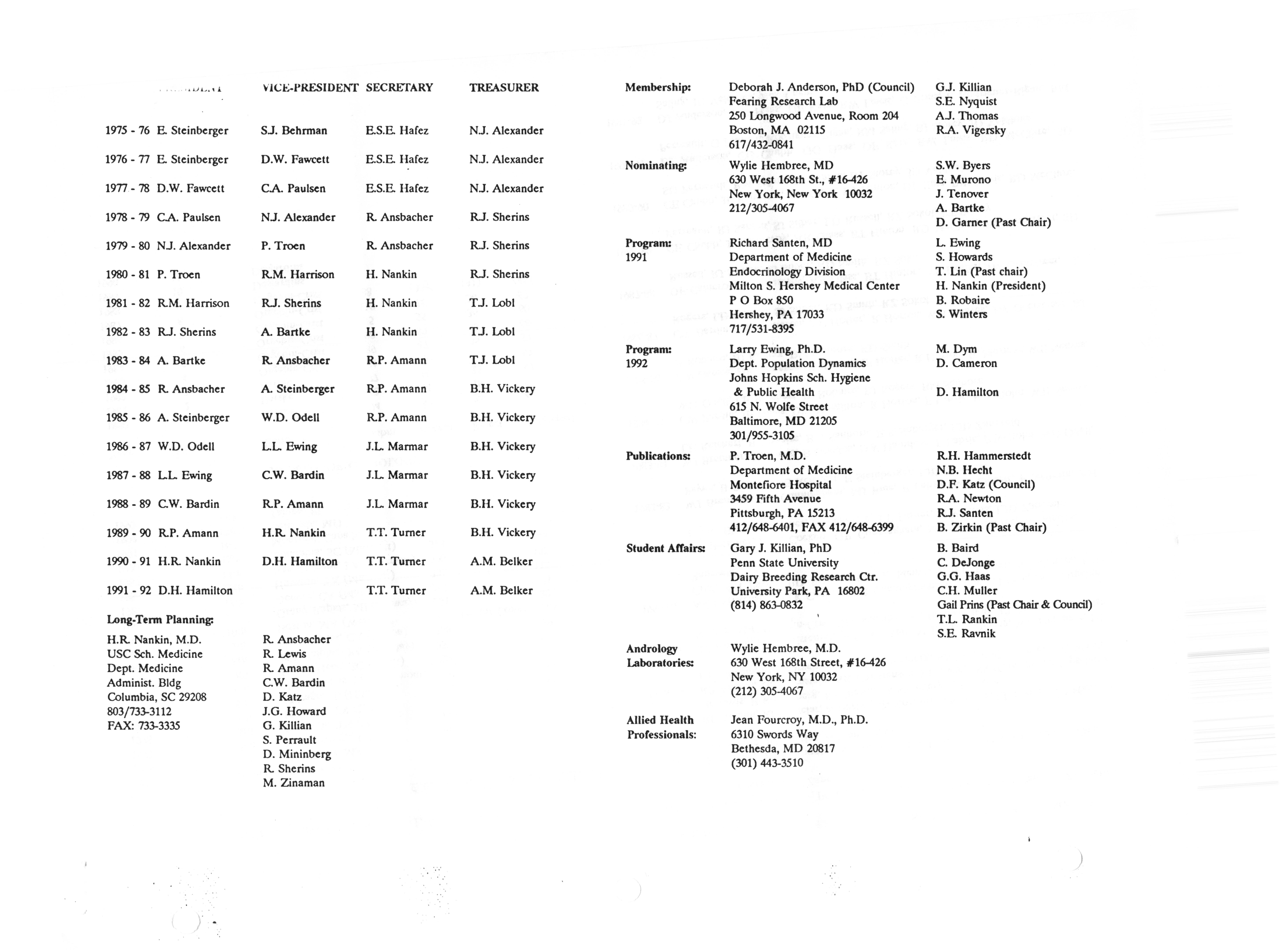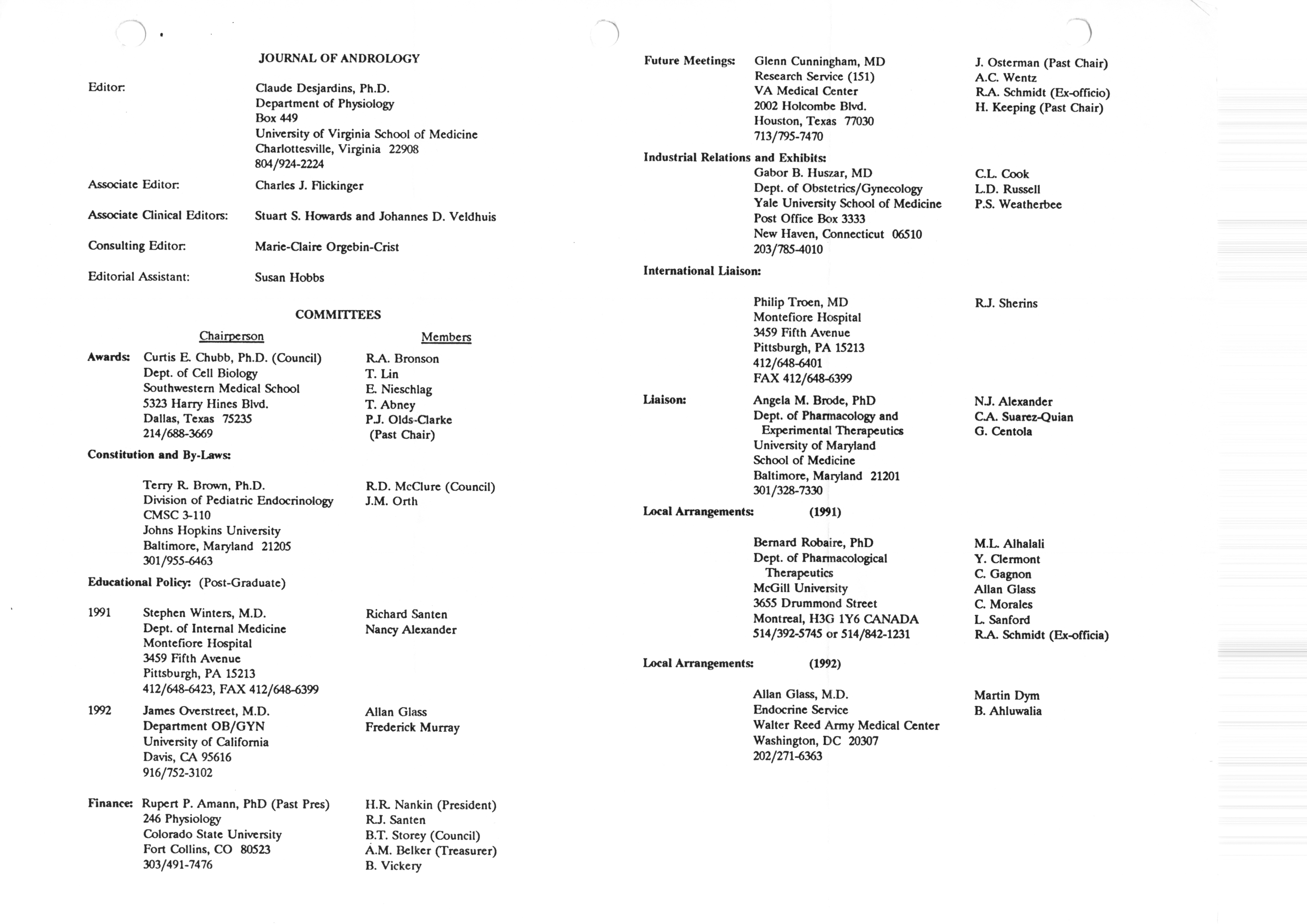 - "Executive Council Meetings correspondence of the American Society of Andrology, 1990", American Society of Andrology Collection, Iowa State University Library Digital Collections