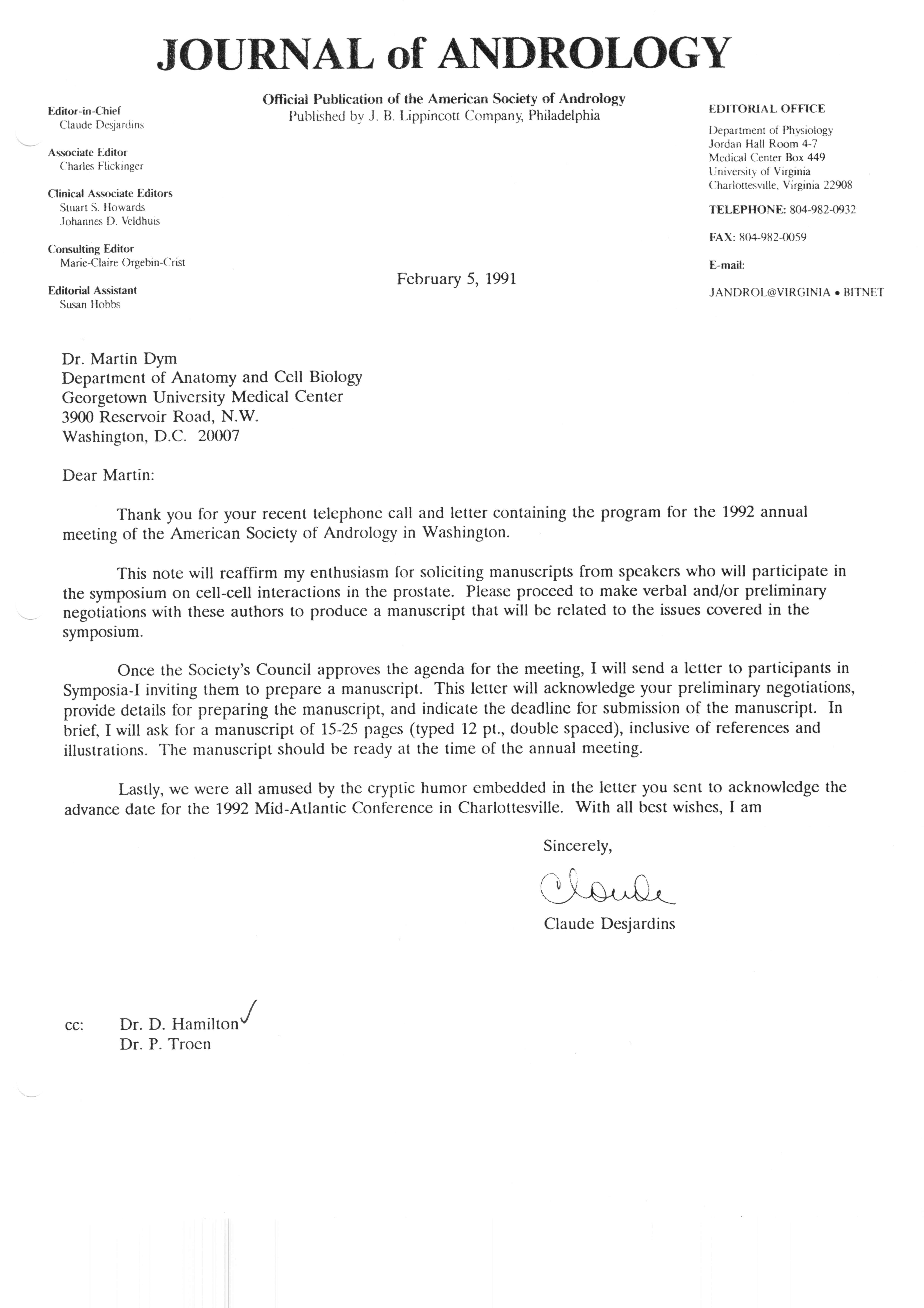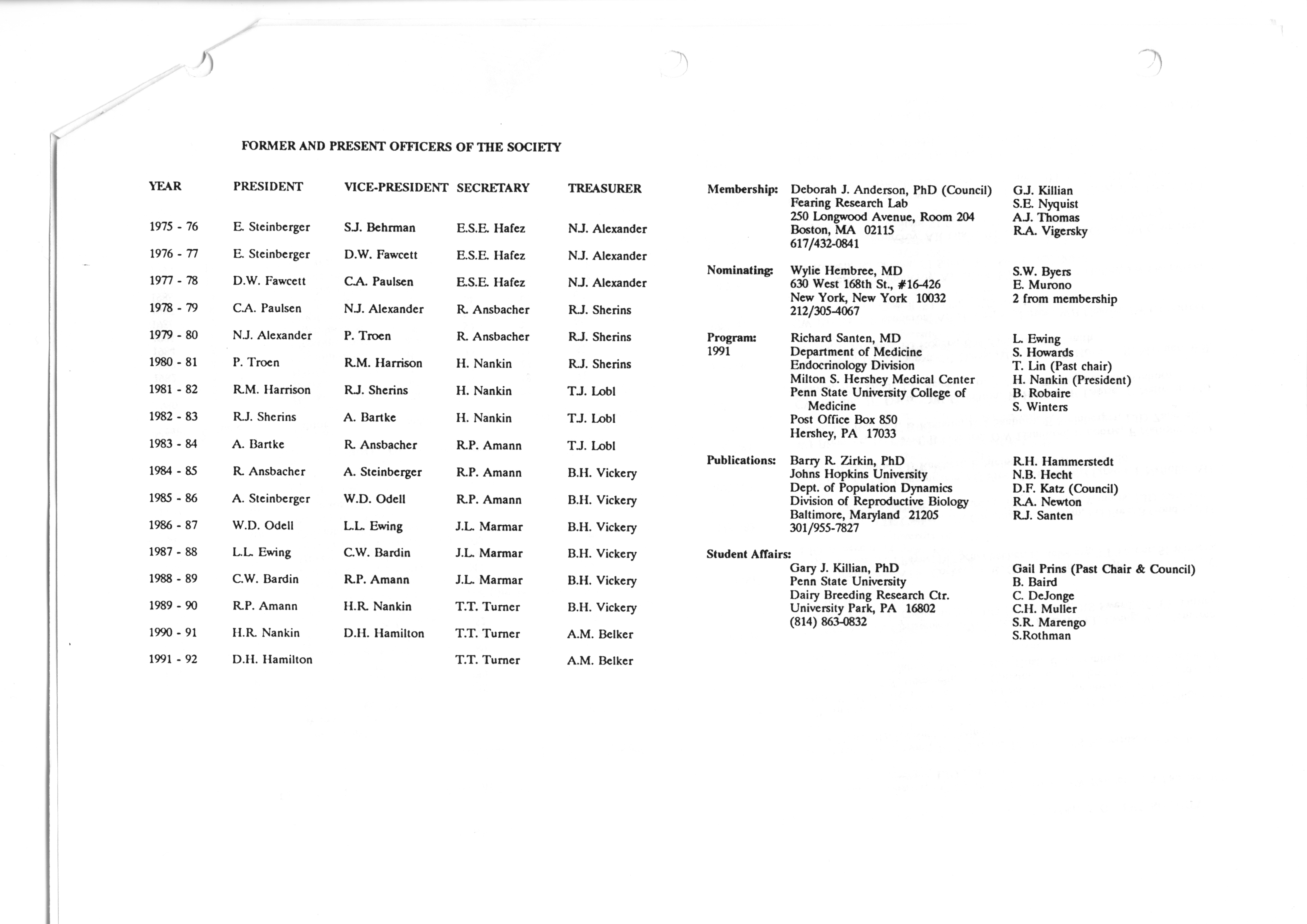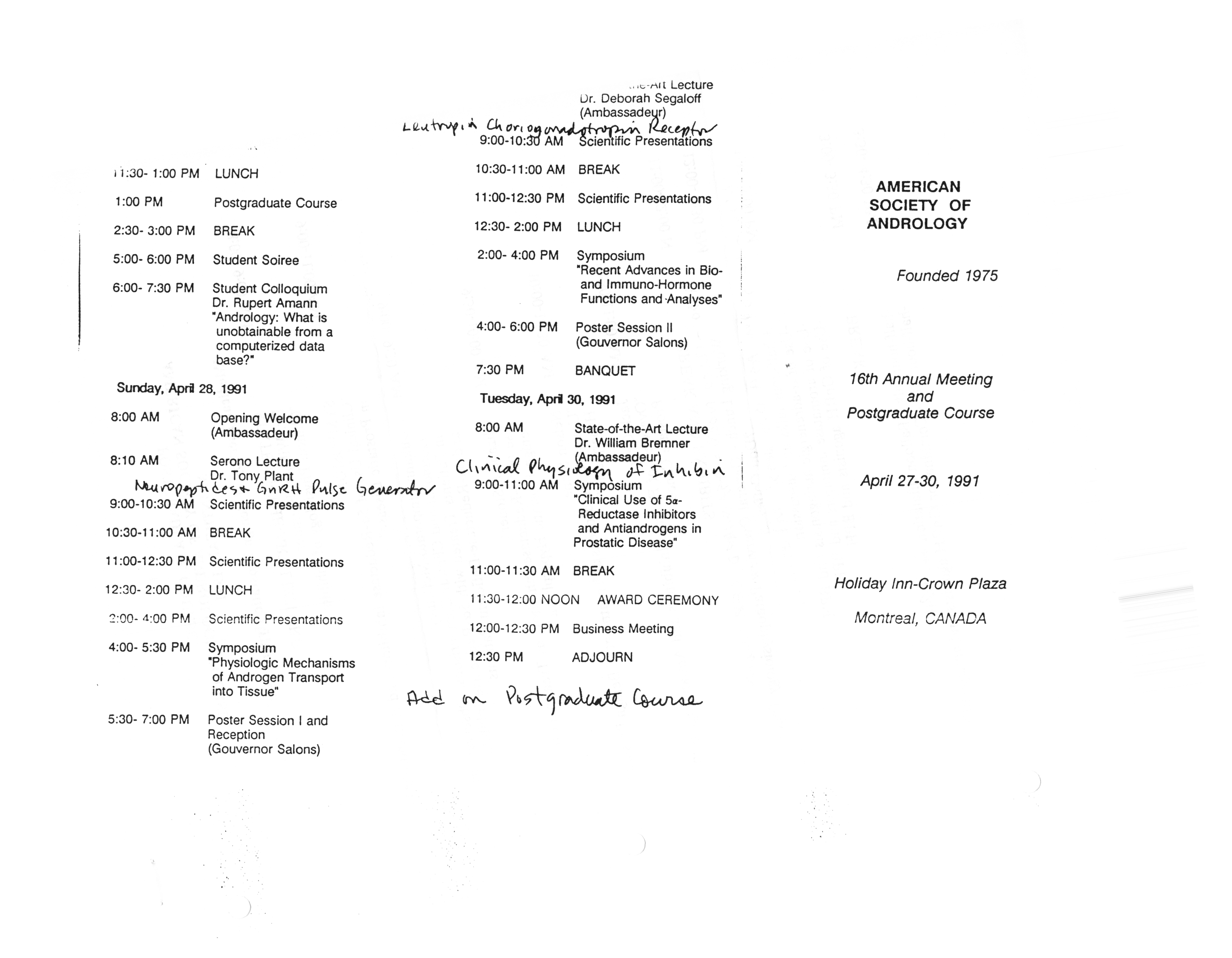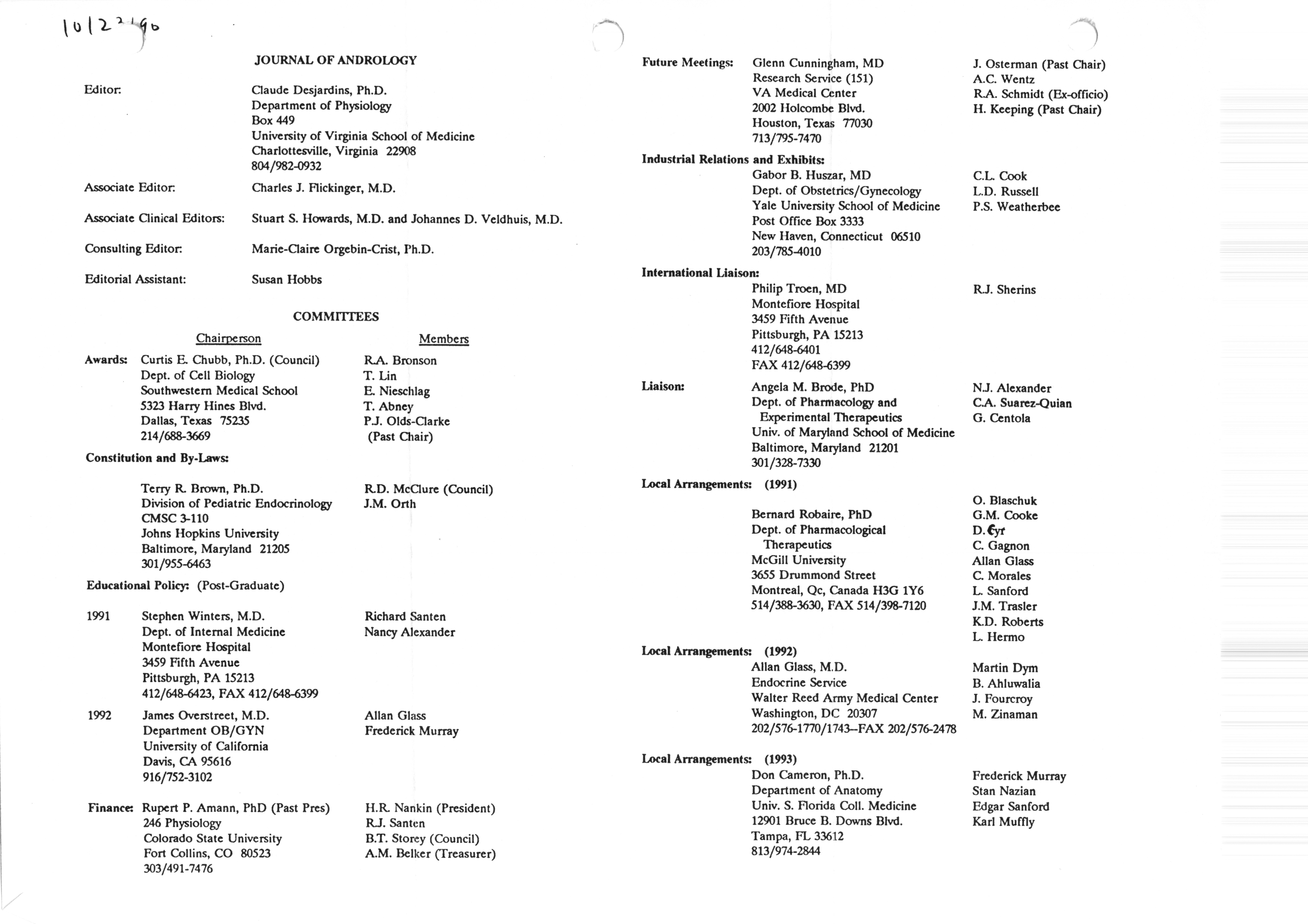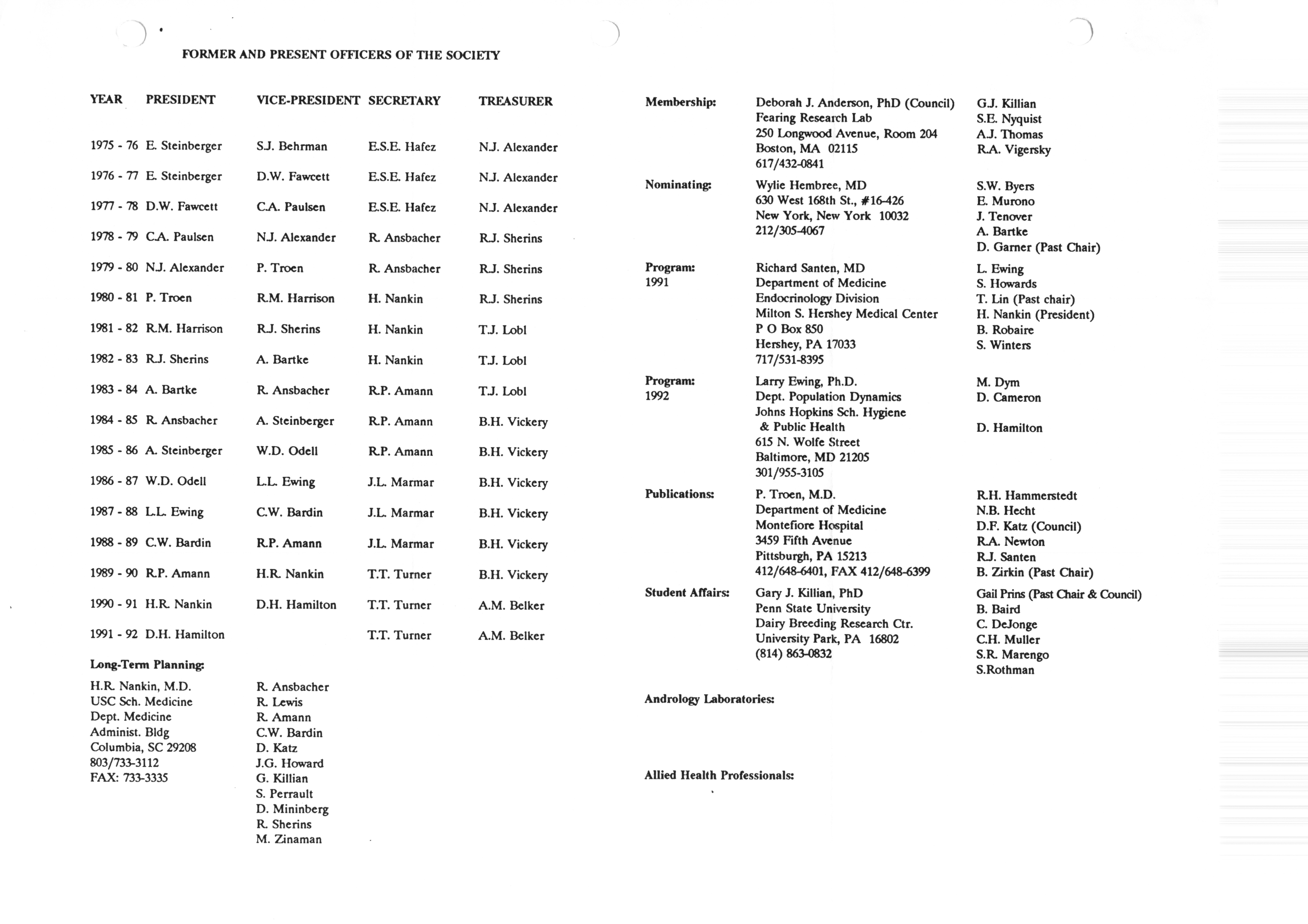 - "Executive Council Meetings correspondence of the American Society of Andrology, 1990", American Society of Andrology Collection, Iowa State University Library Digital Collections