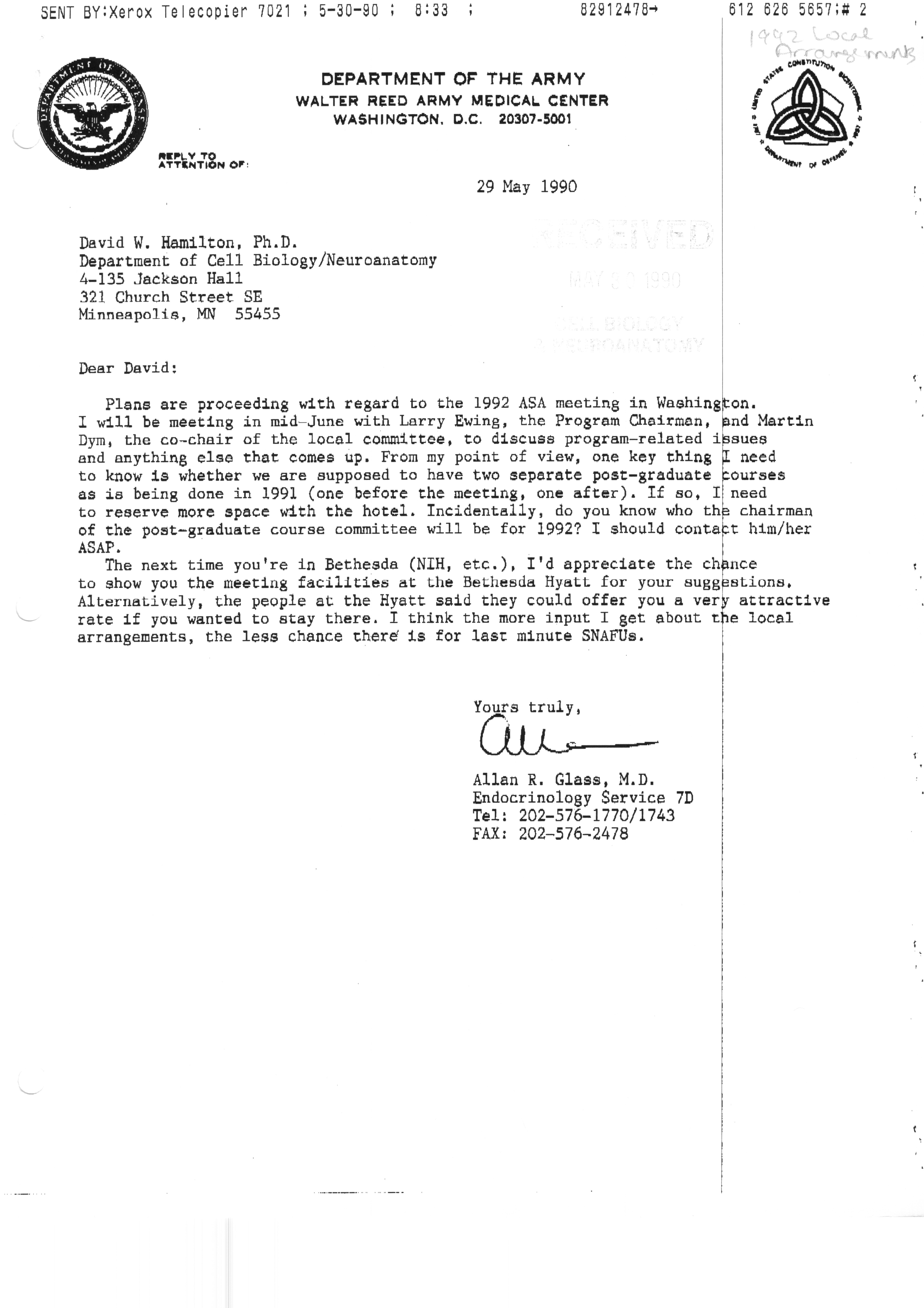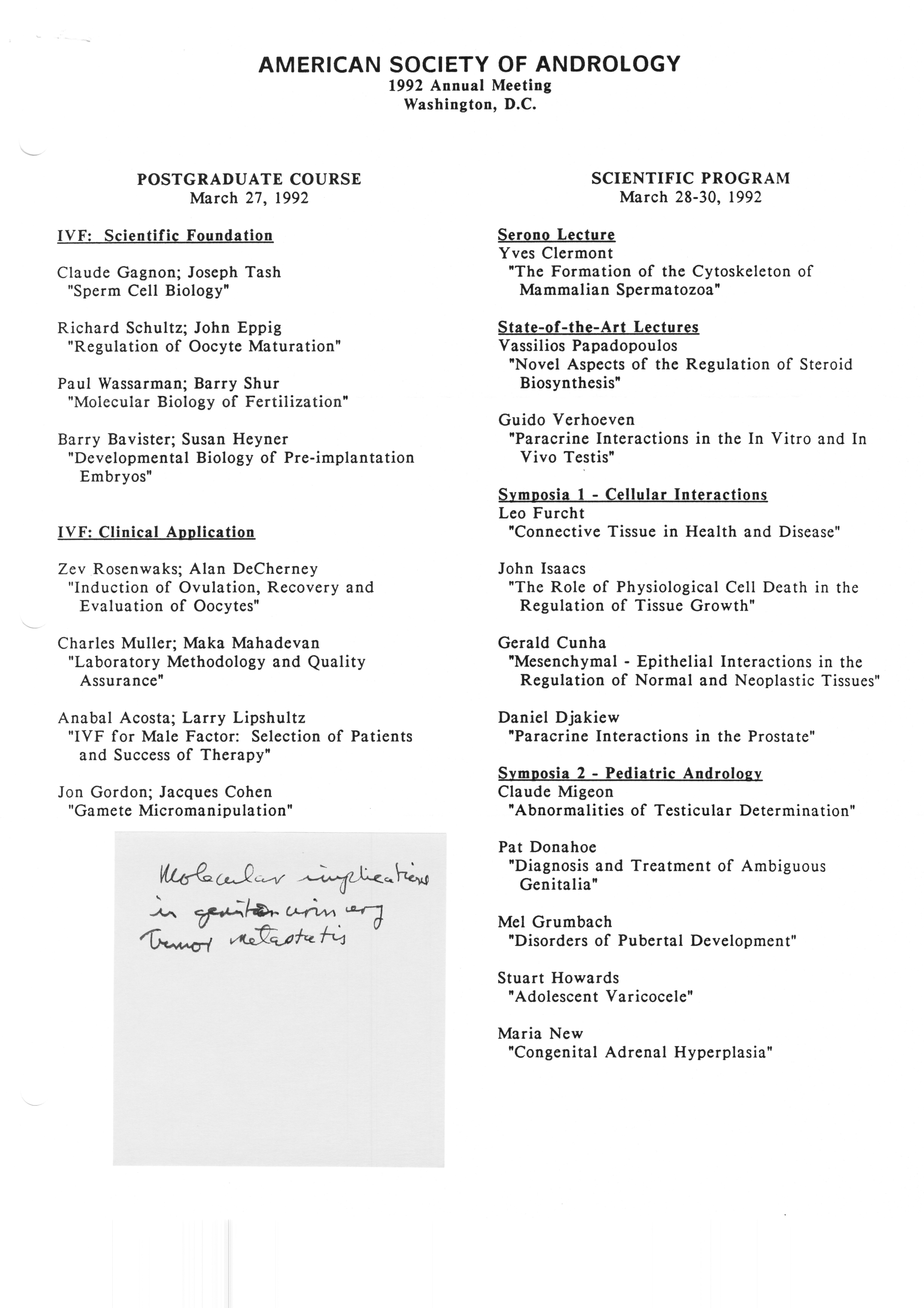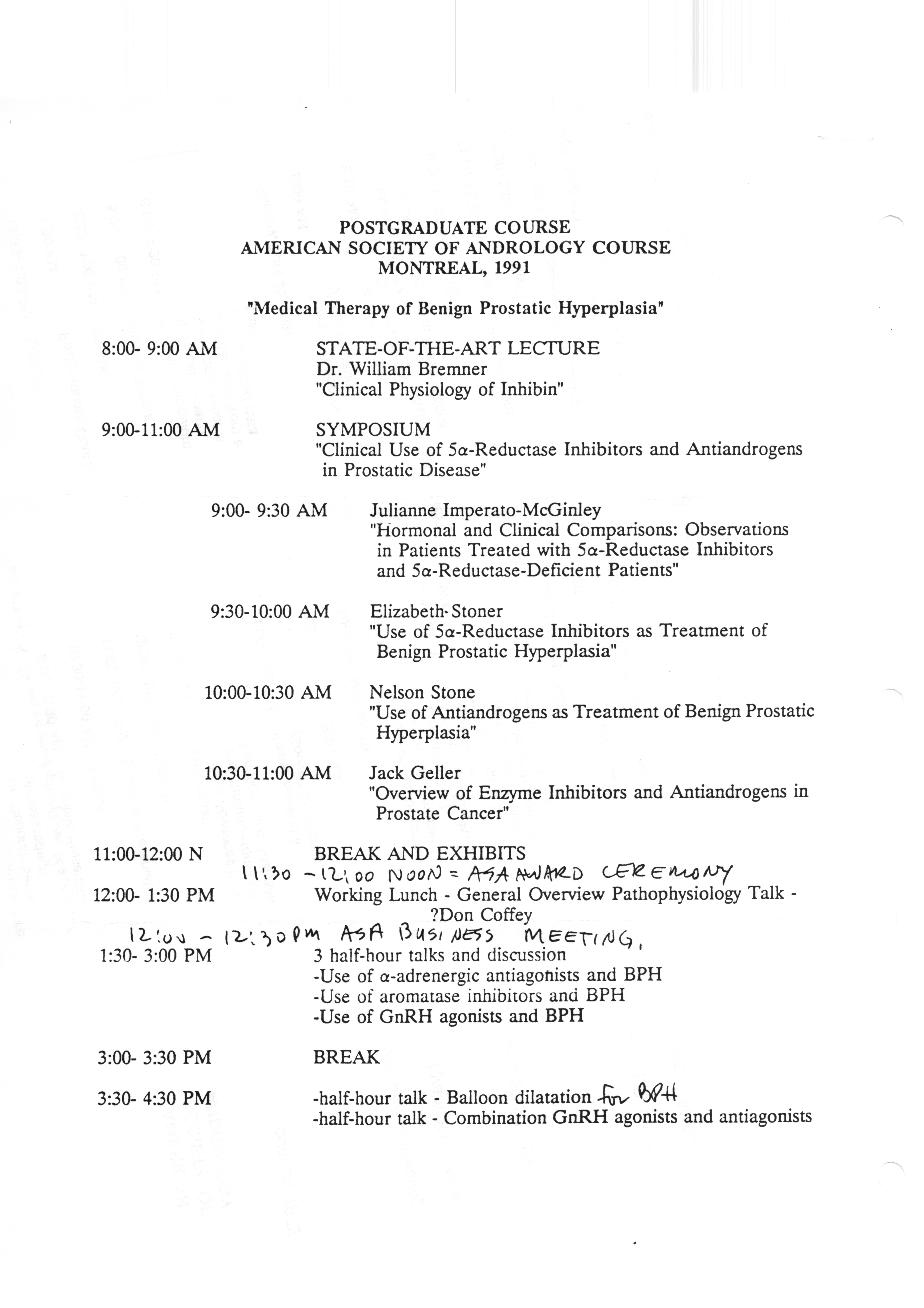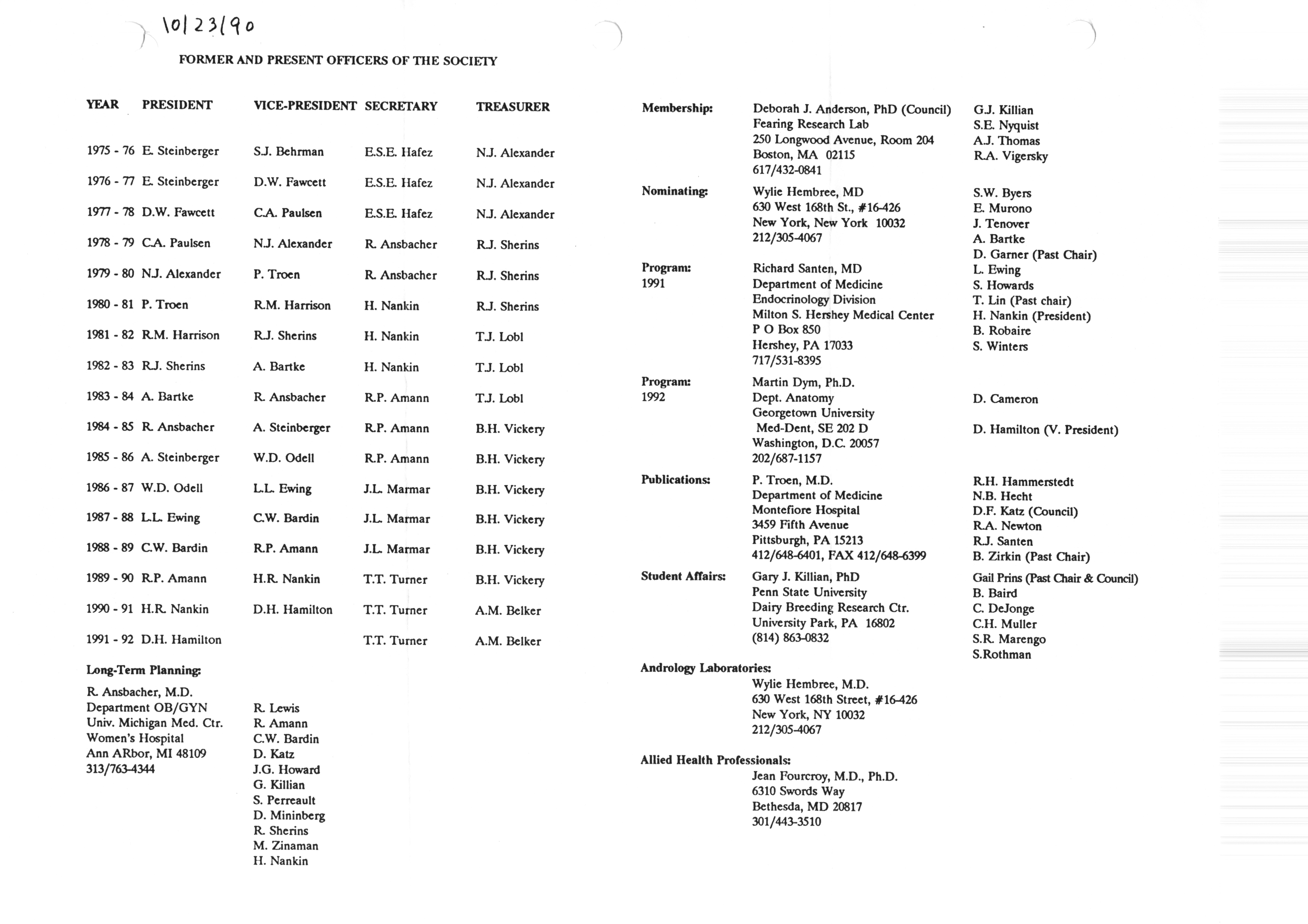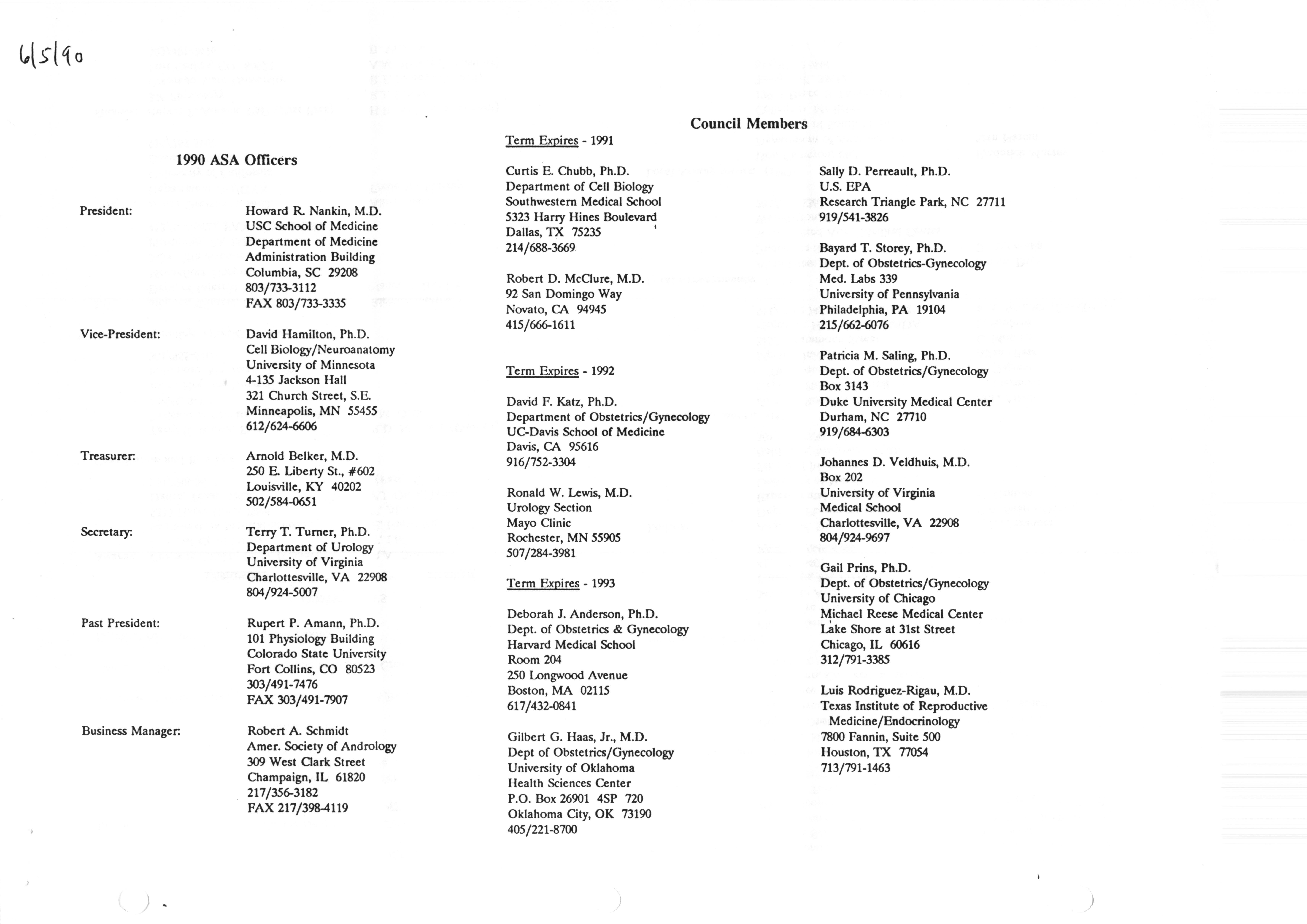 - Executive Council Meetings correspondence of the American Society of Andrology, 1990