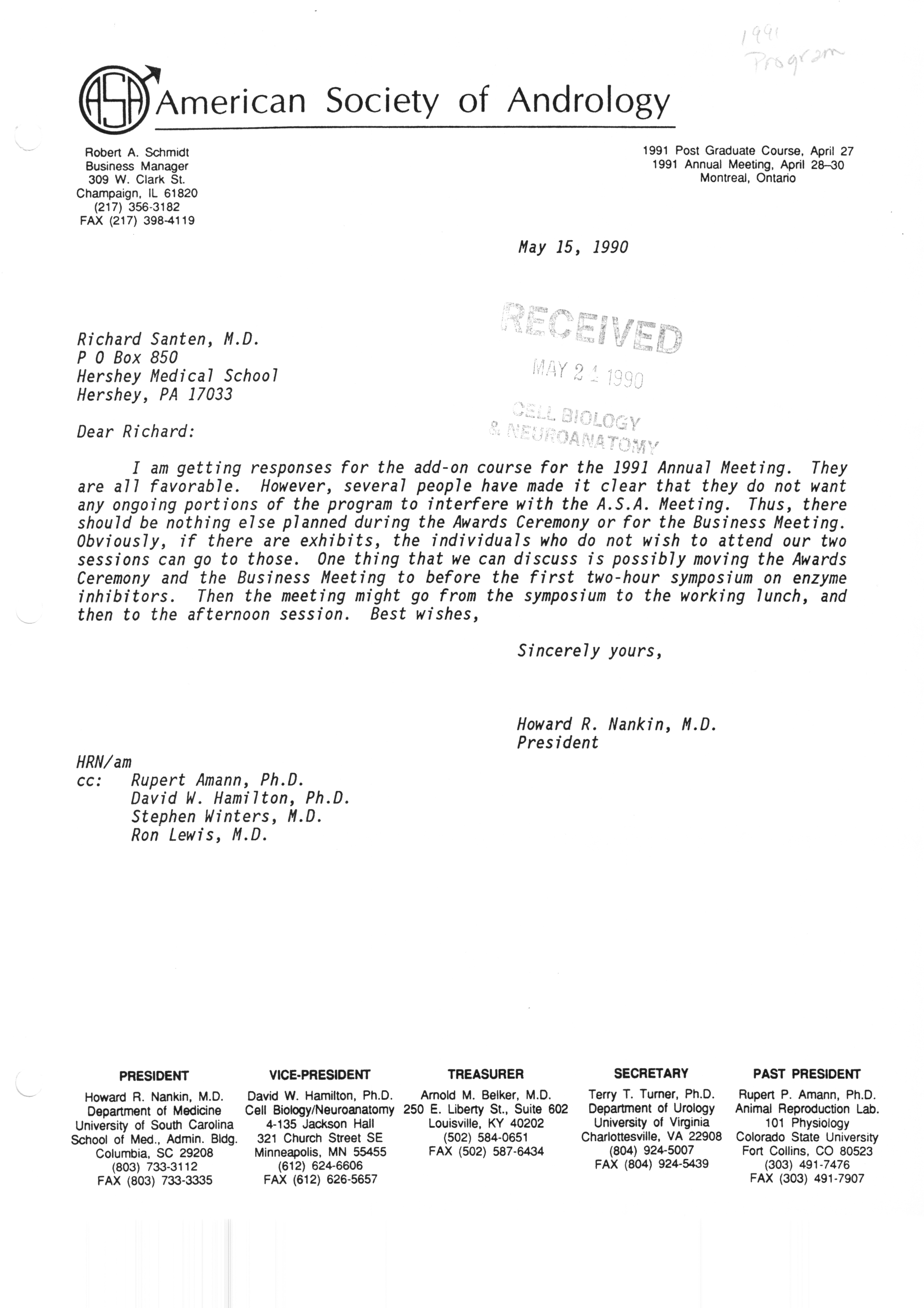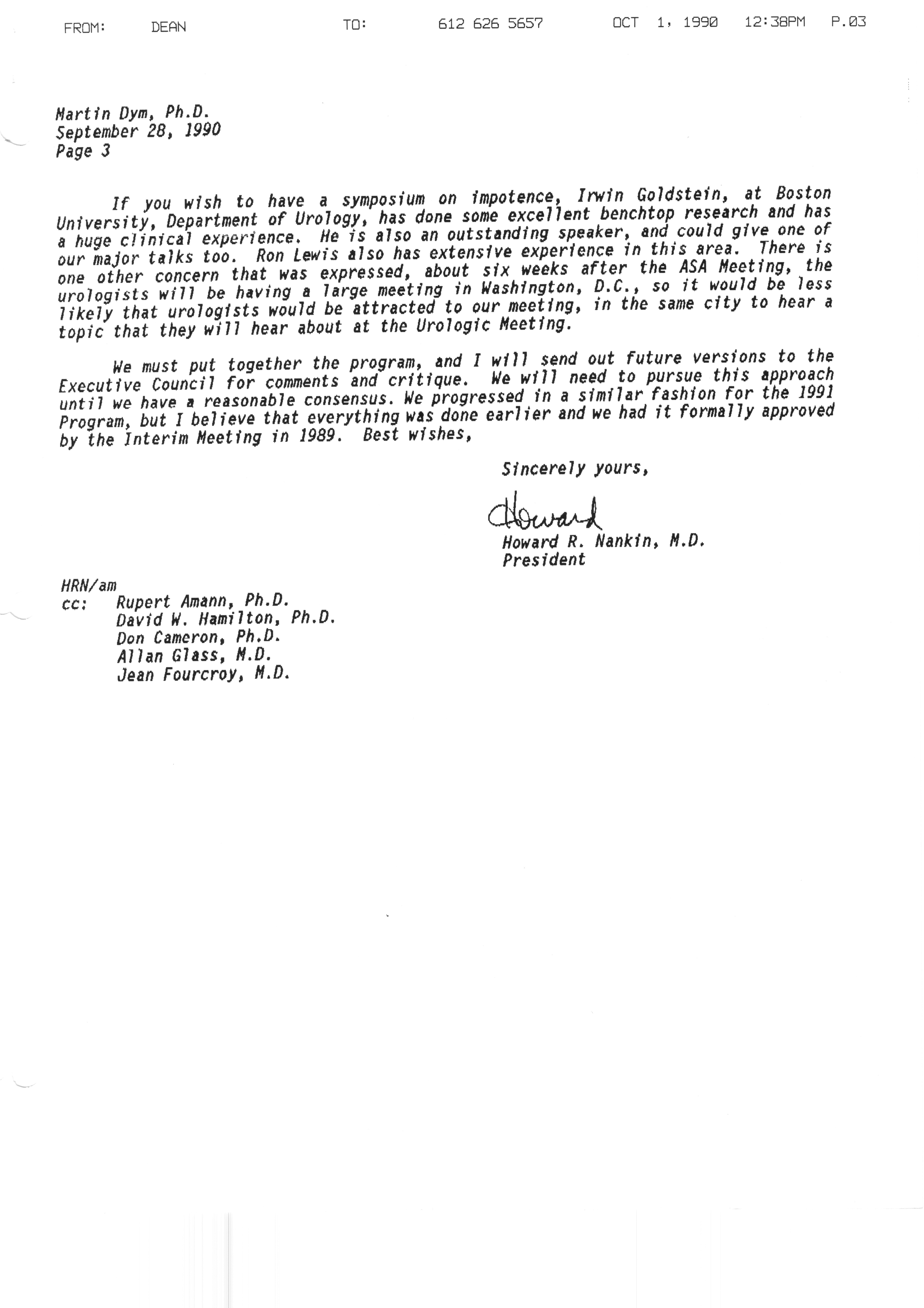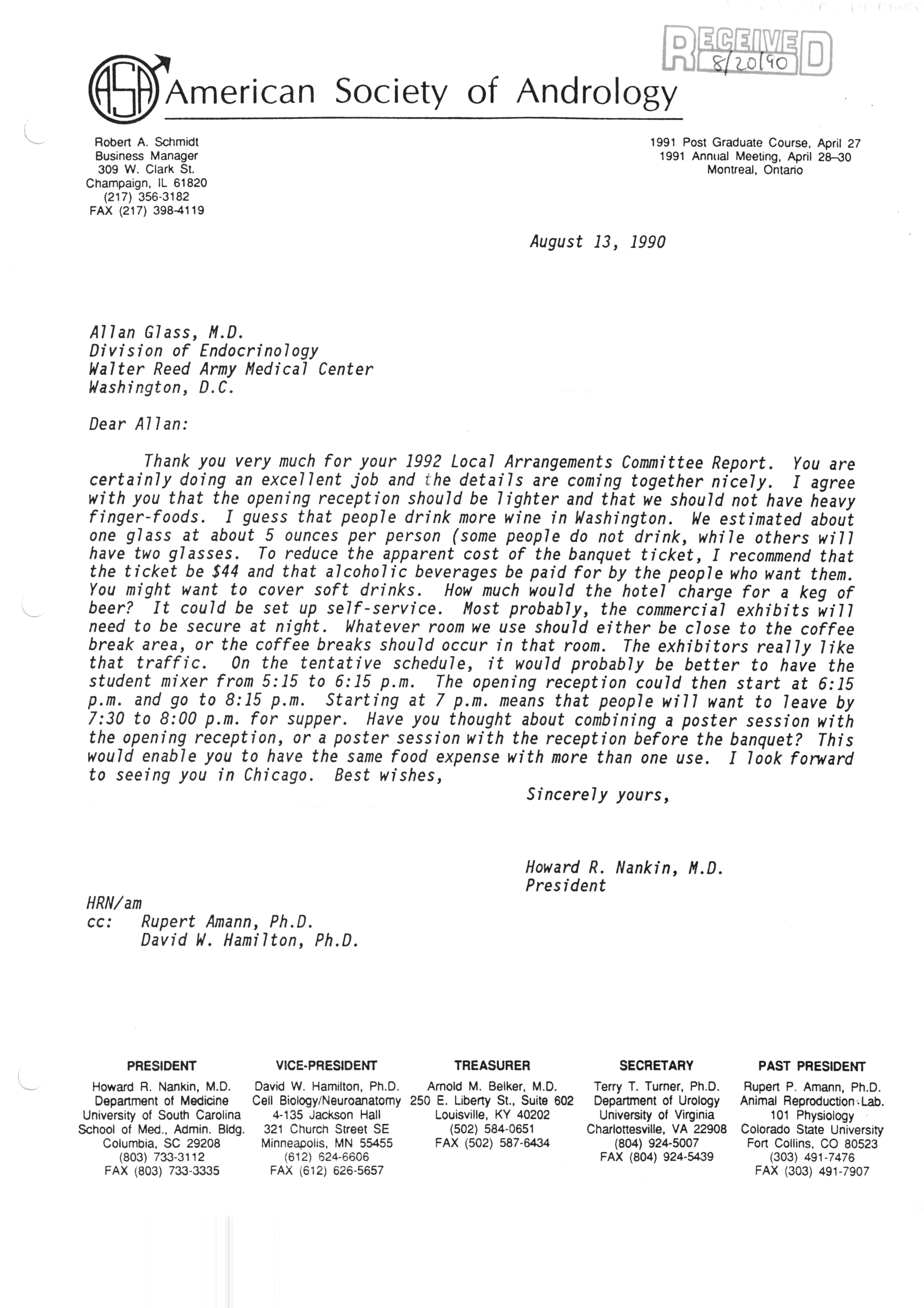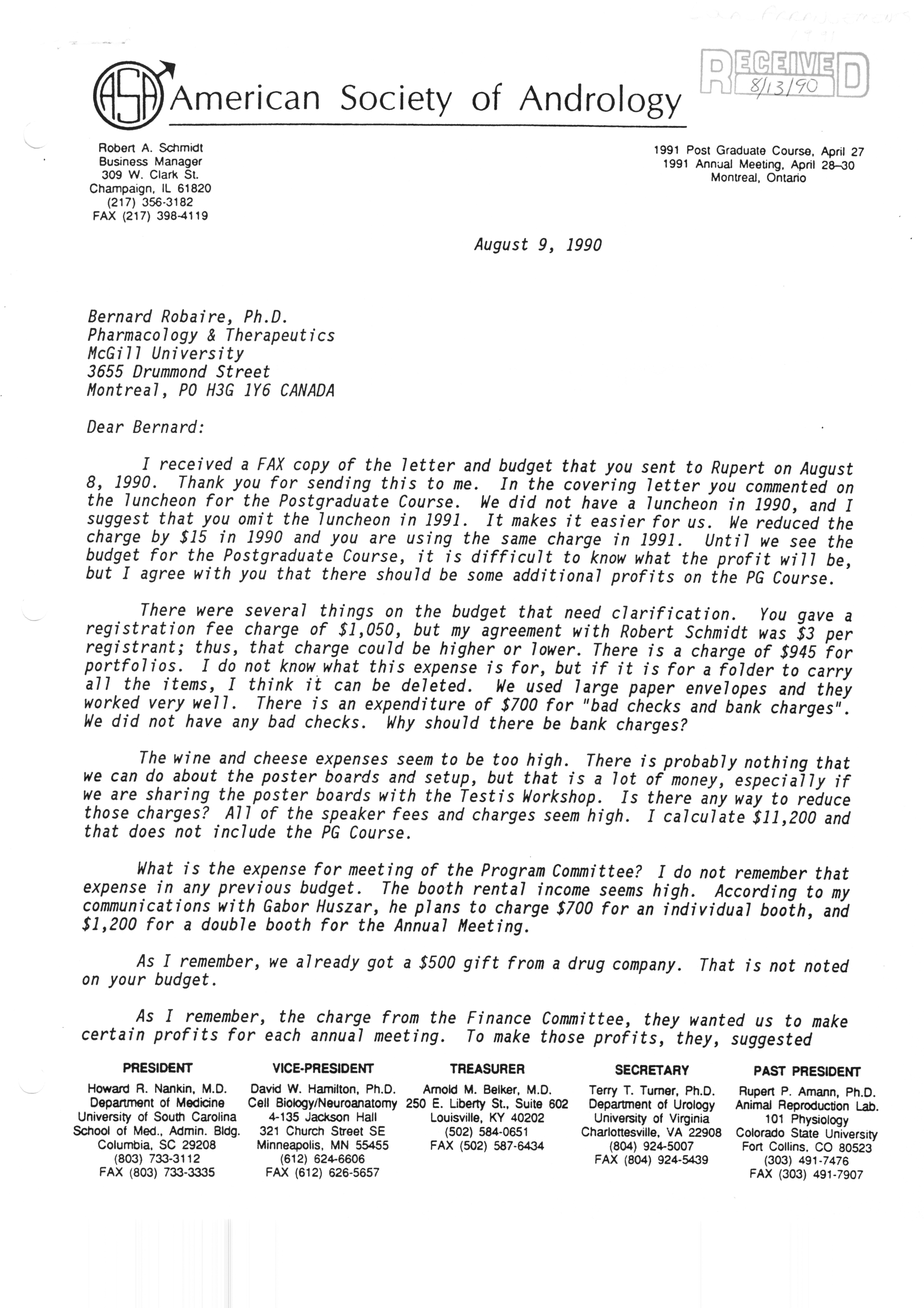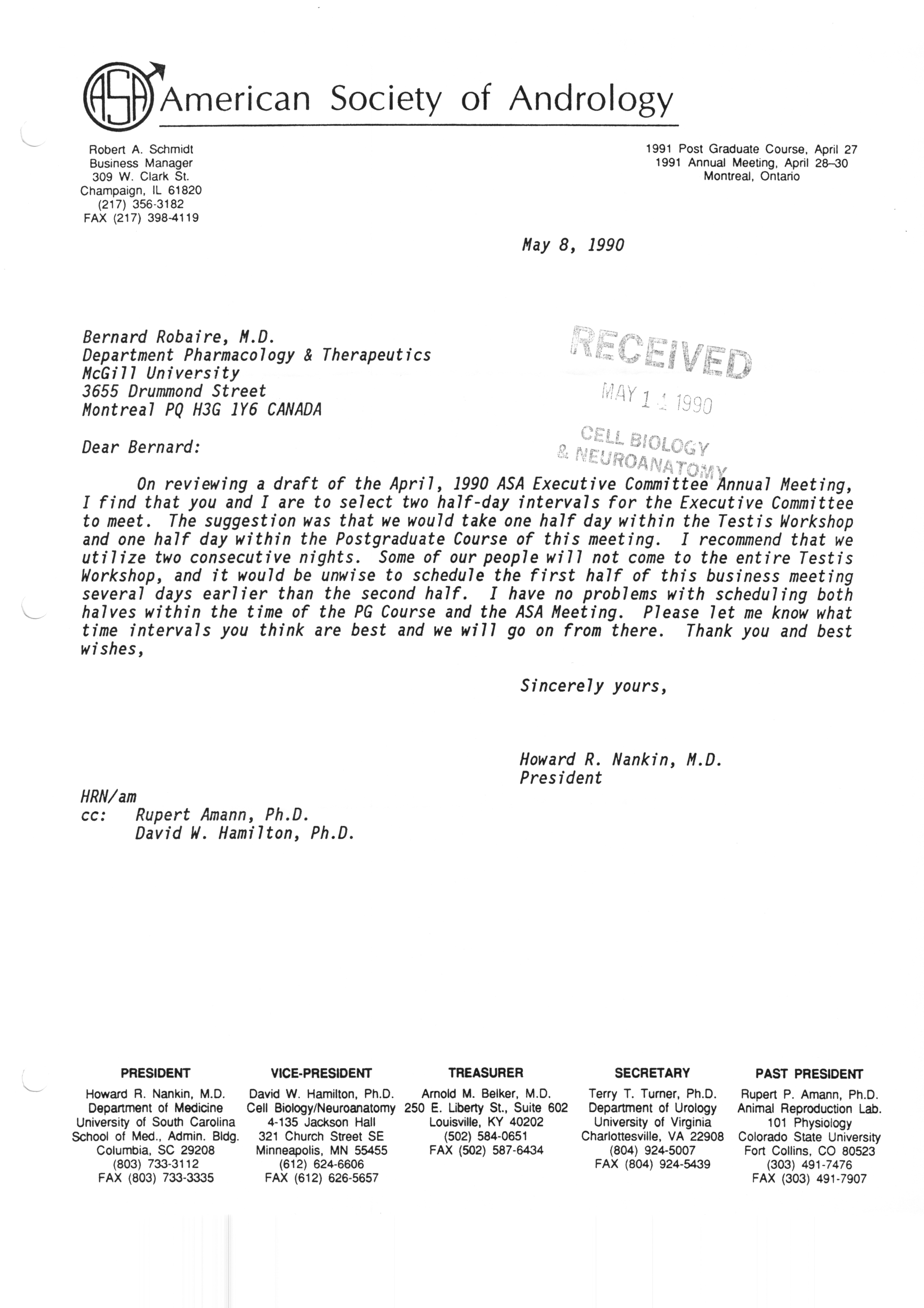 Executive Council Meetings correspondence of the American Society of Andrology, 1990