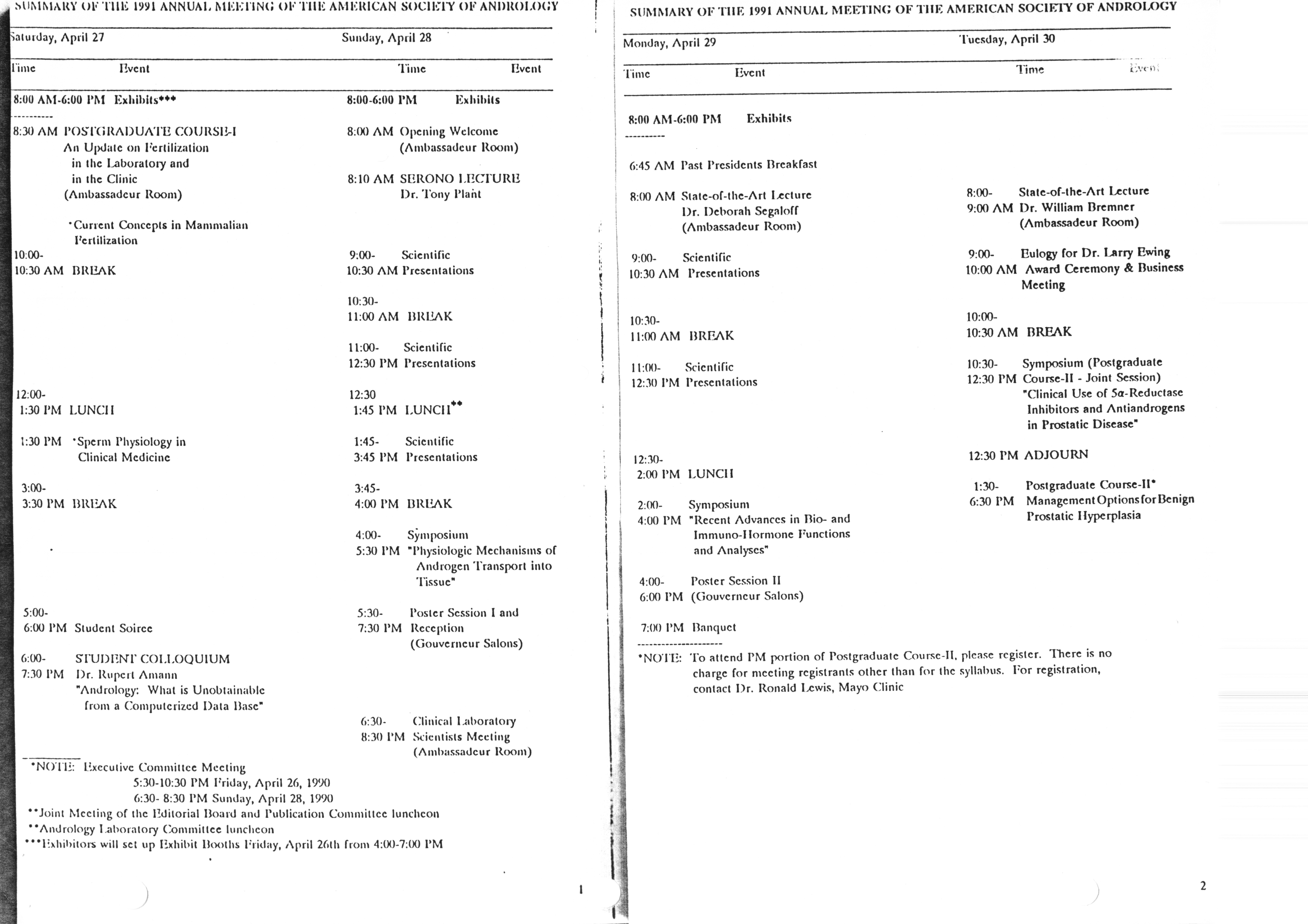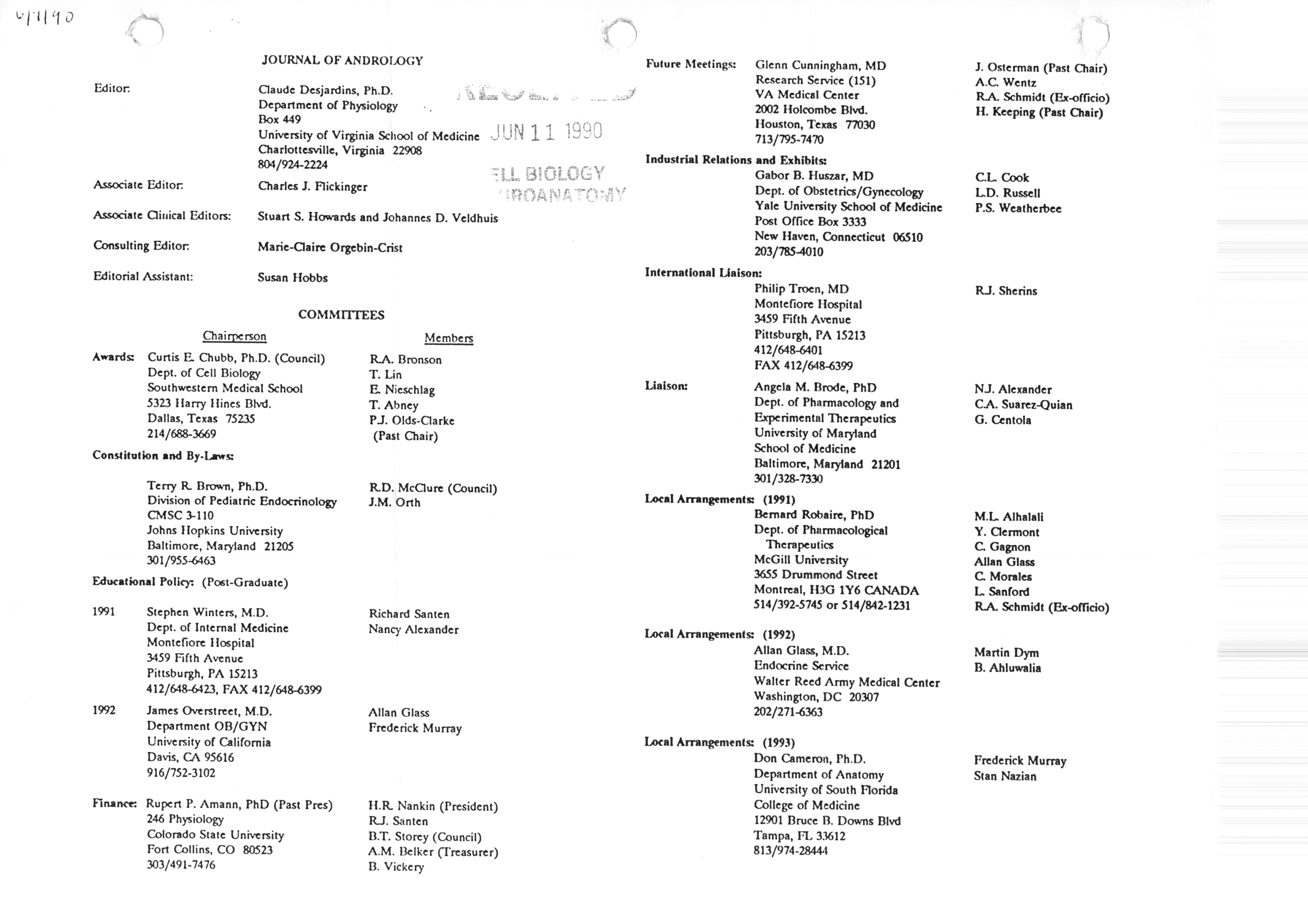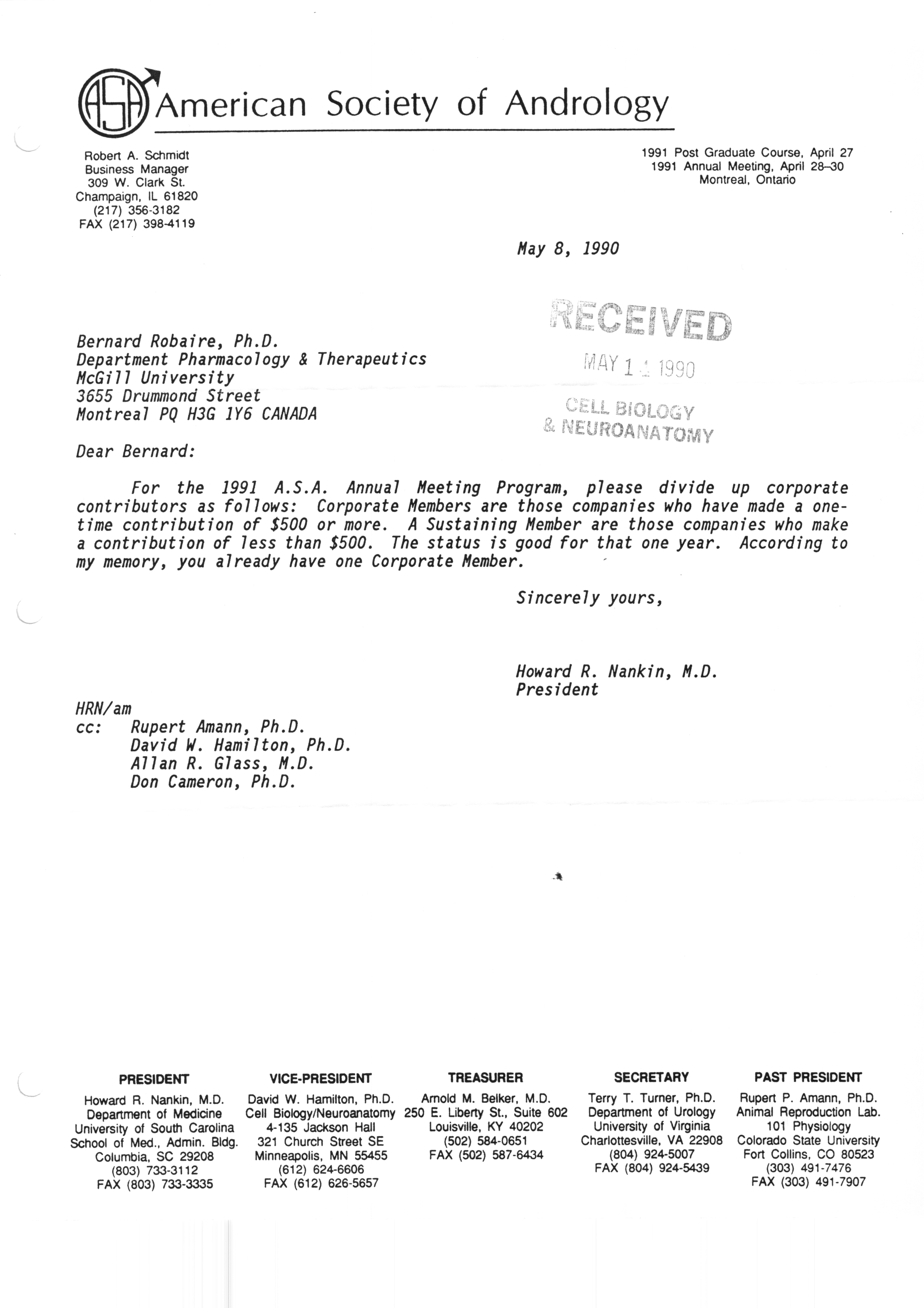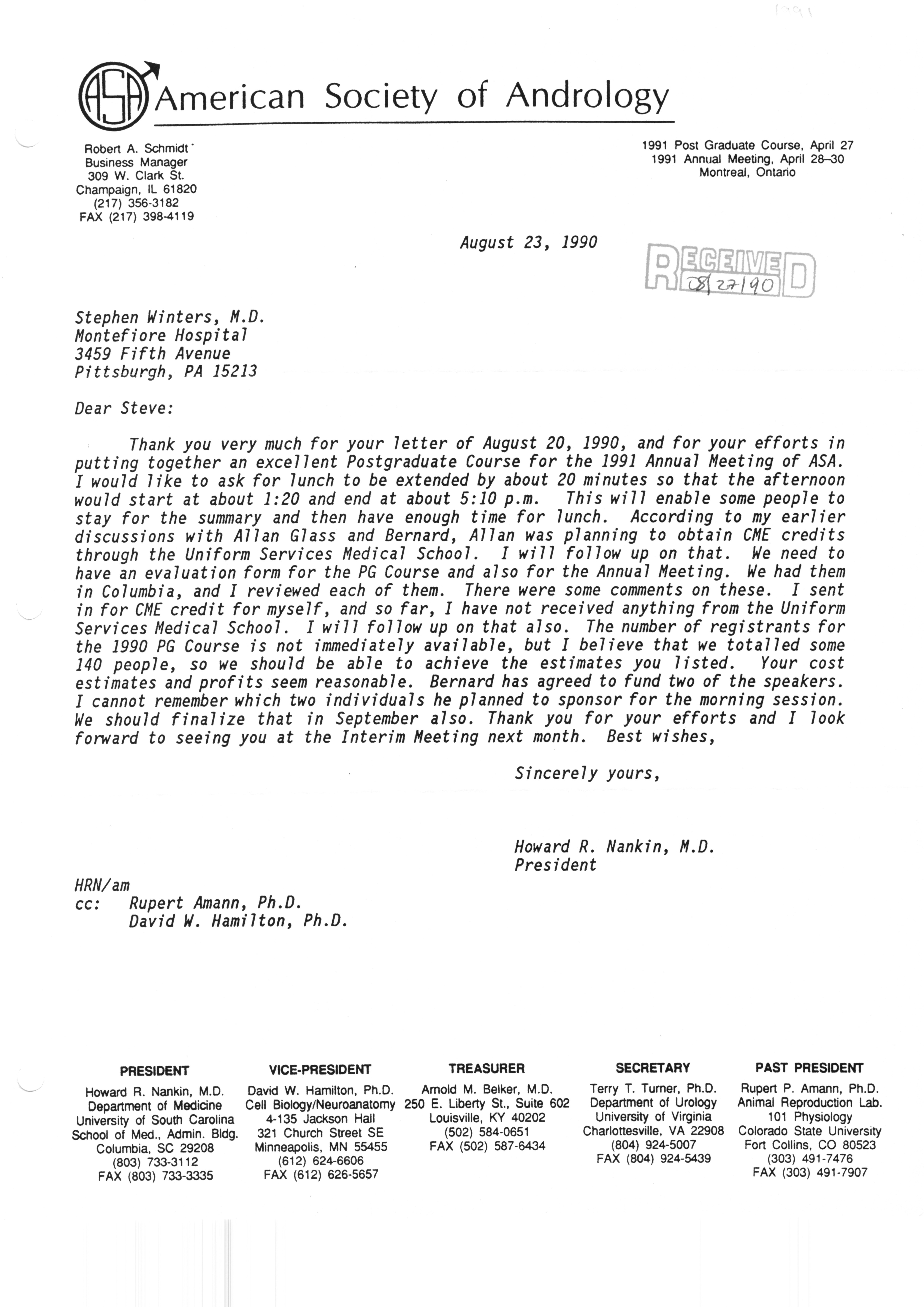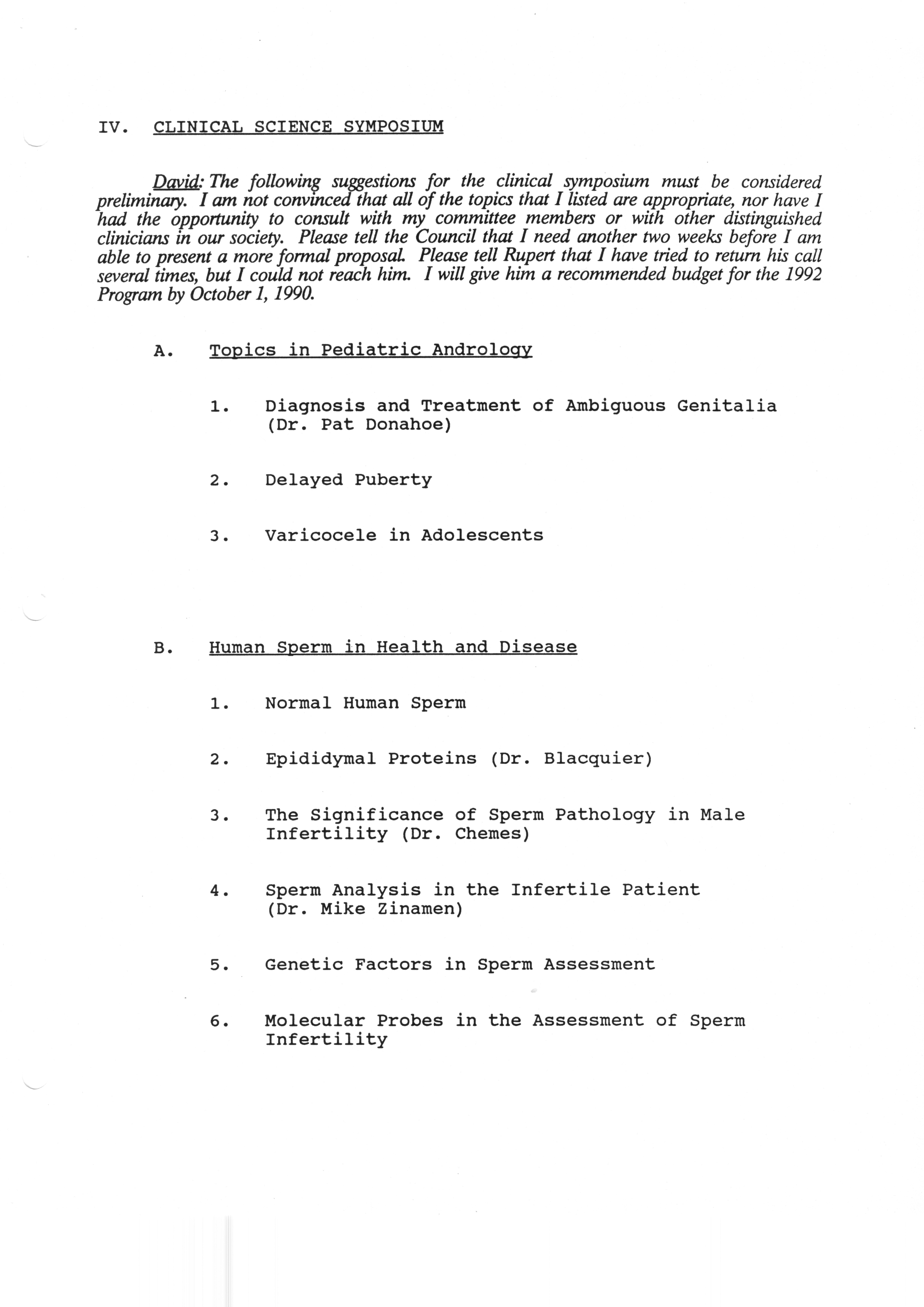 Executive Council Meetings correspondence of the American Society of Andrology, 1990