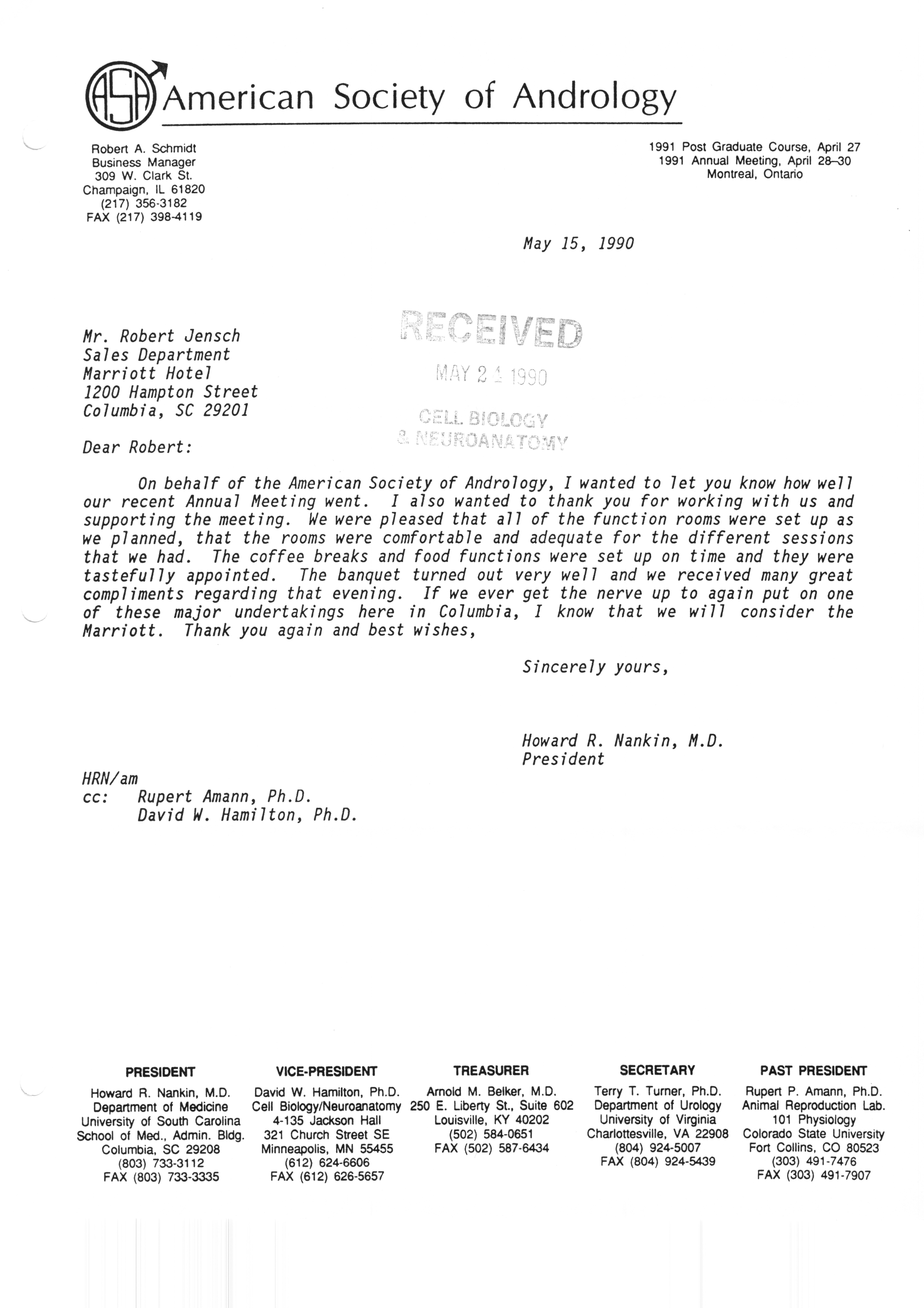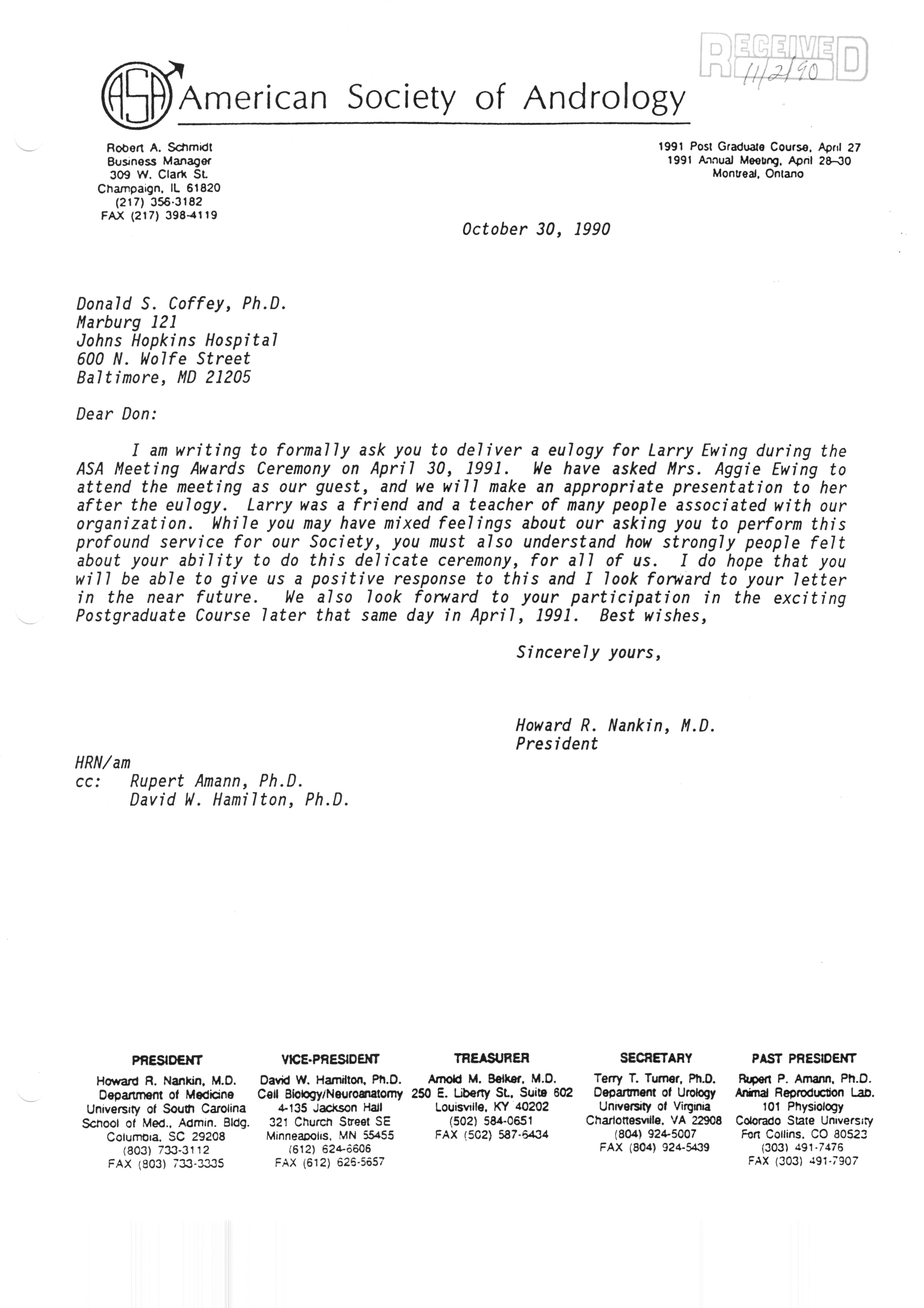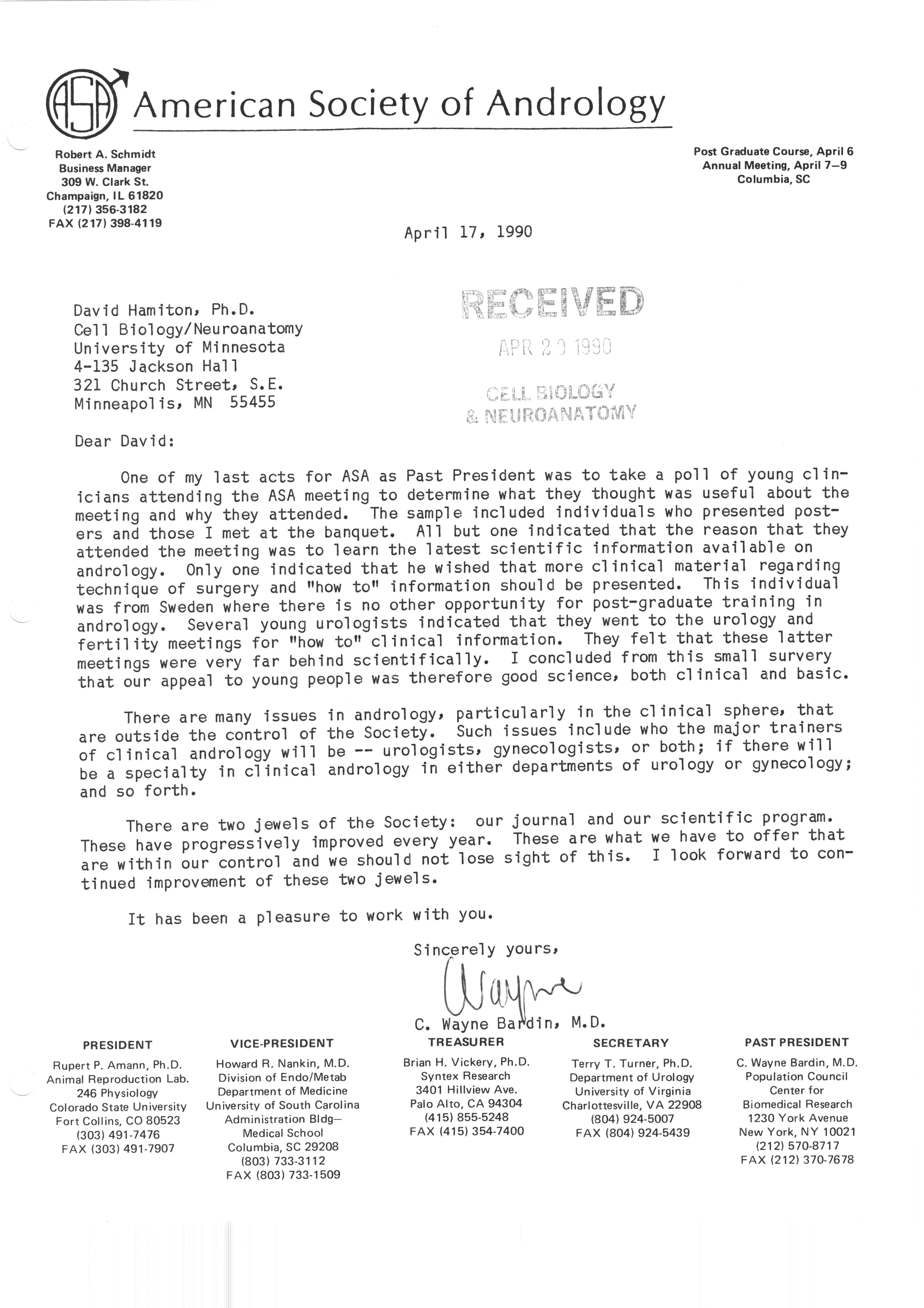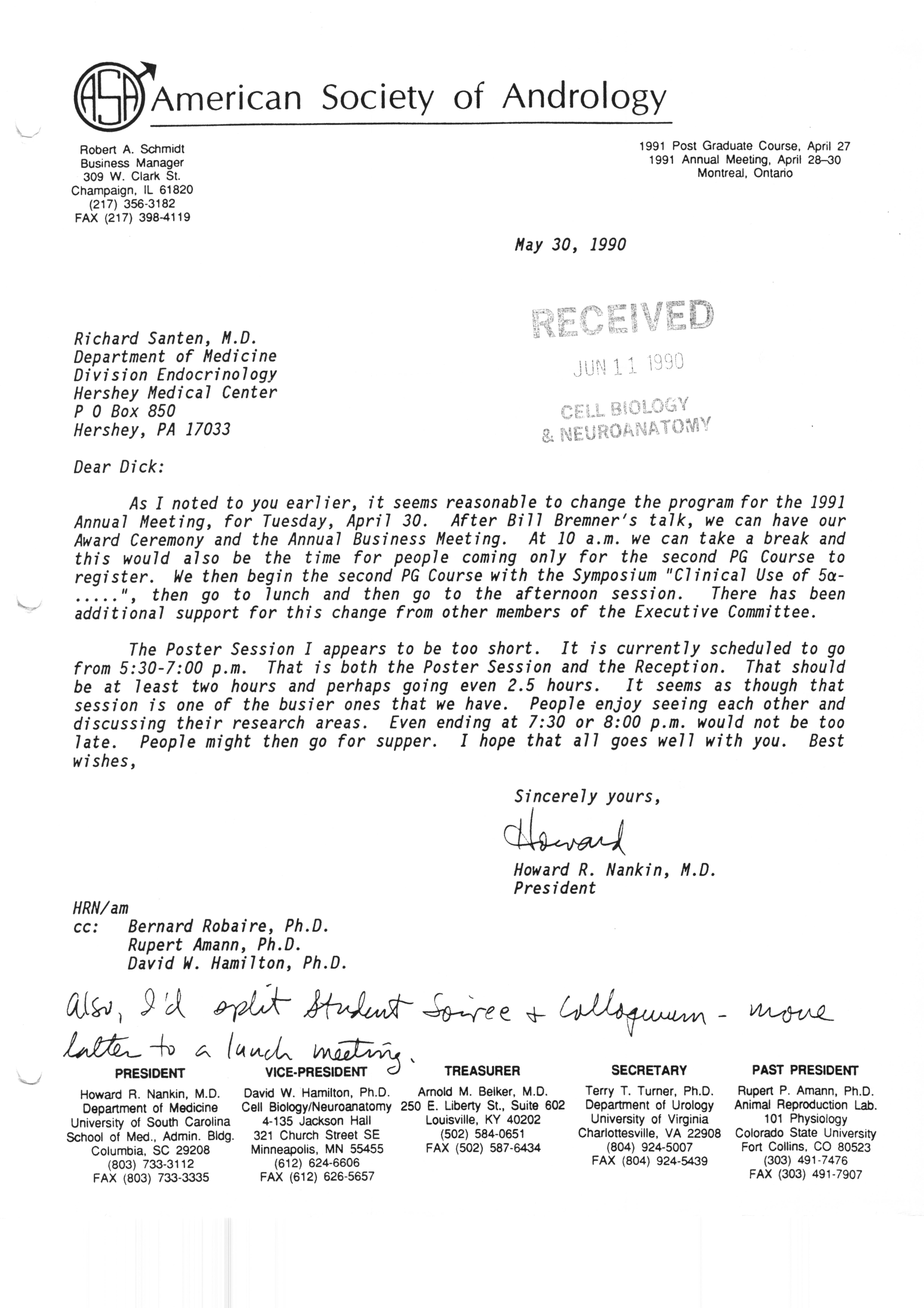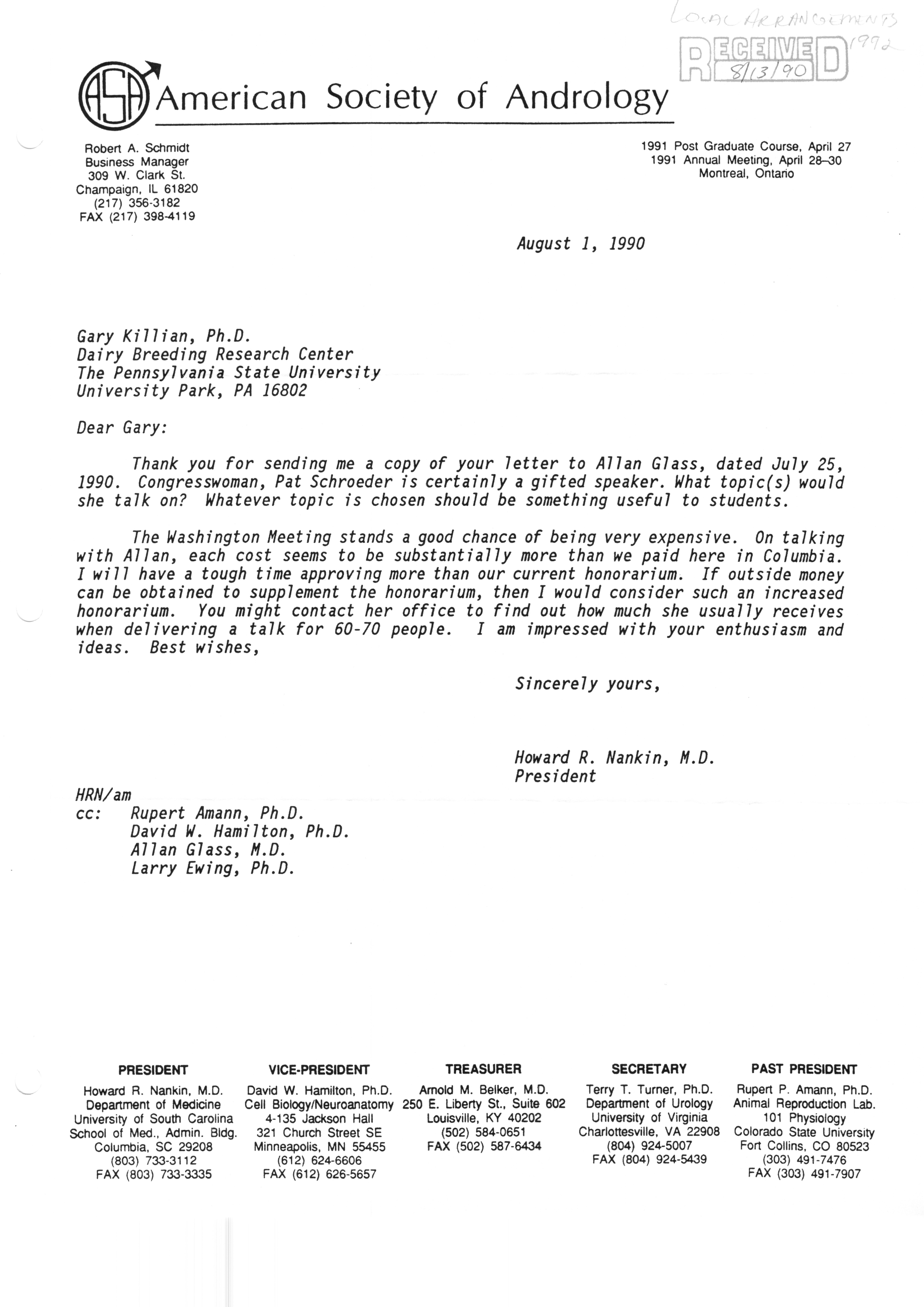 Executive Council Meetings correspondence of the American Society of Andrology, 1990
