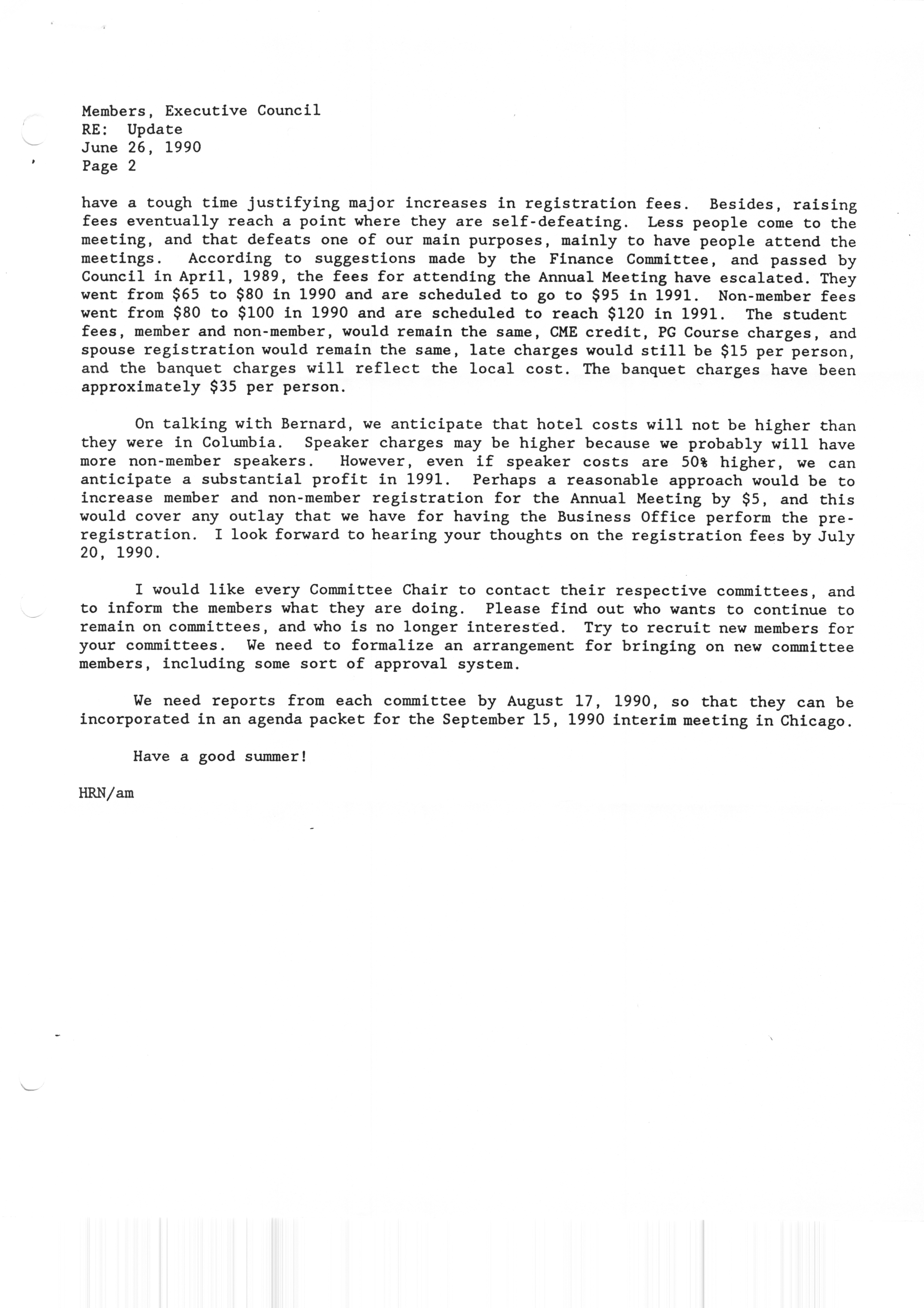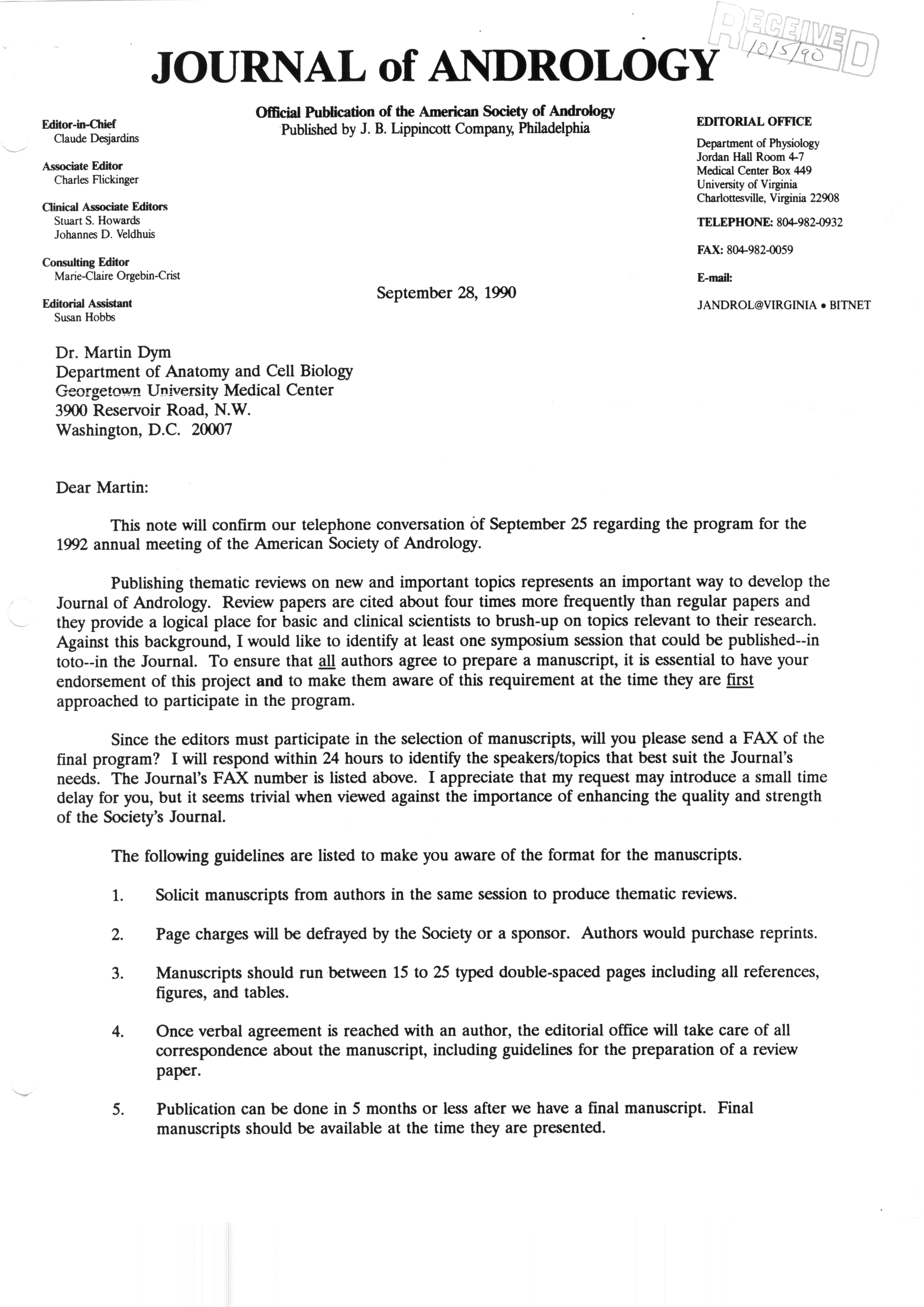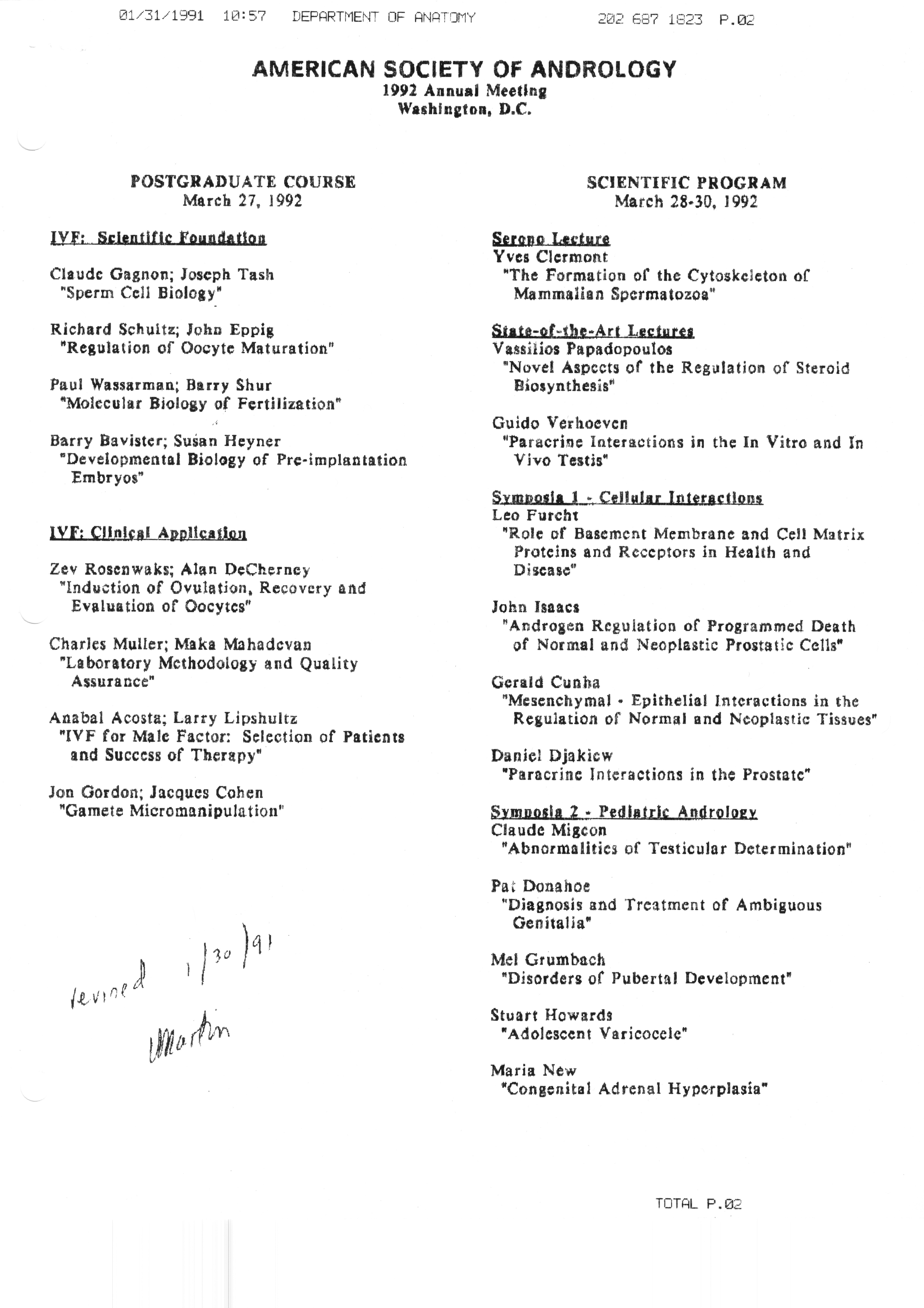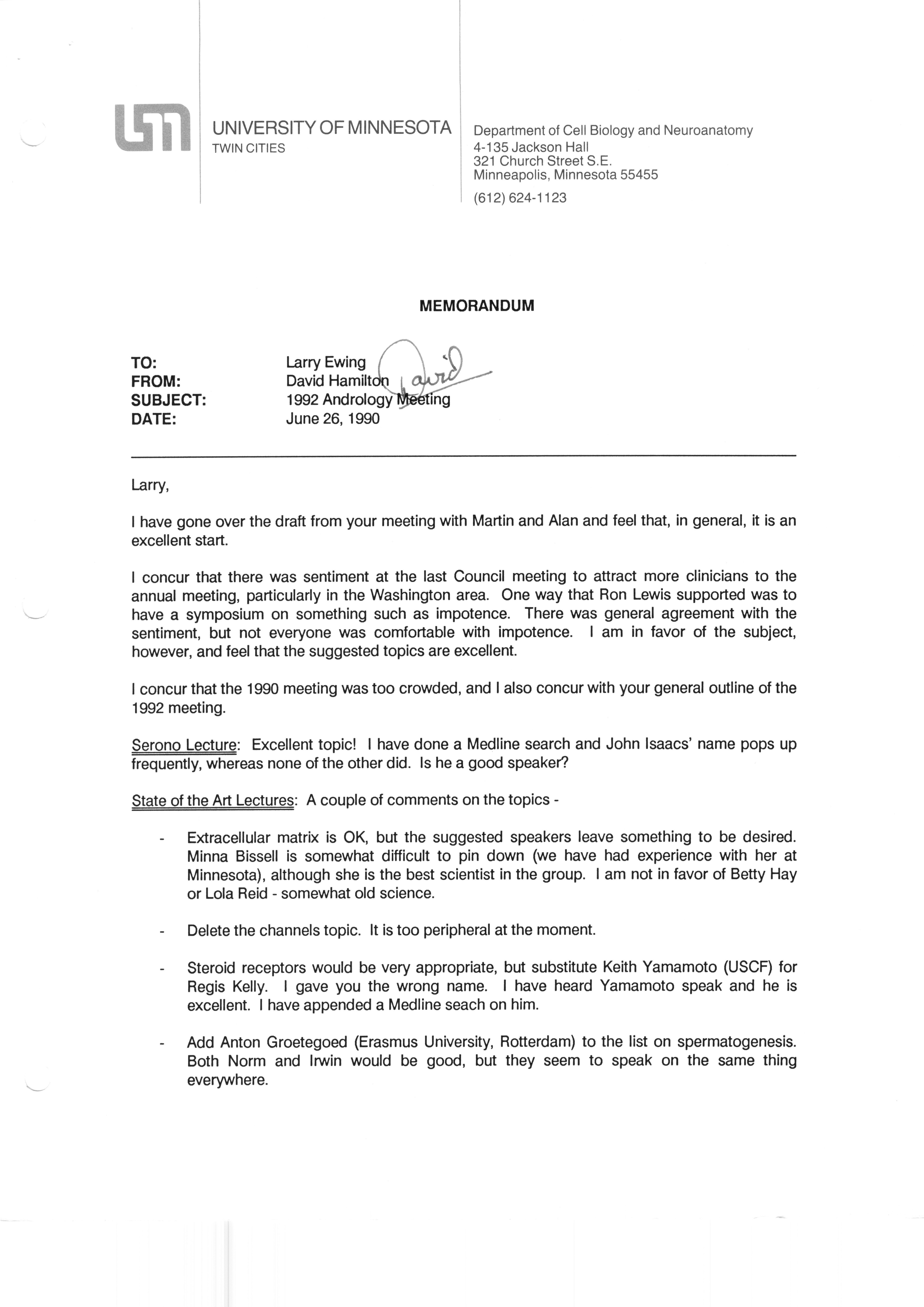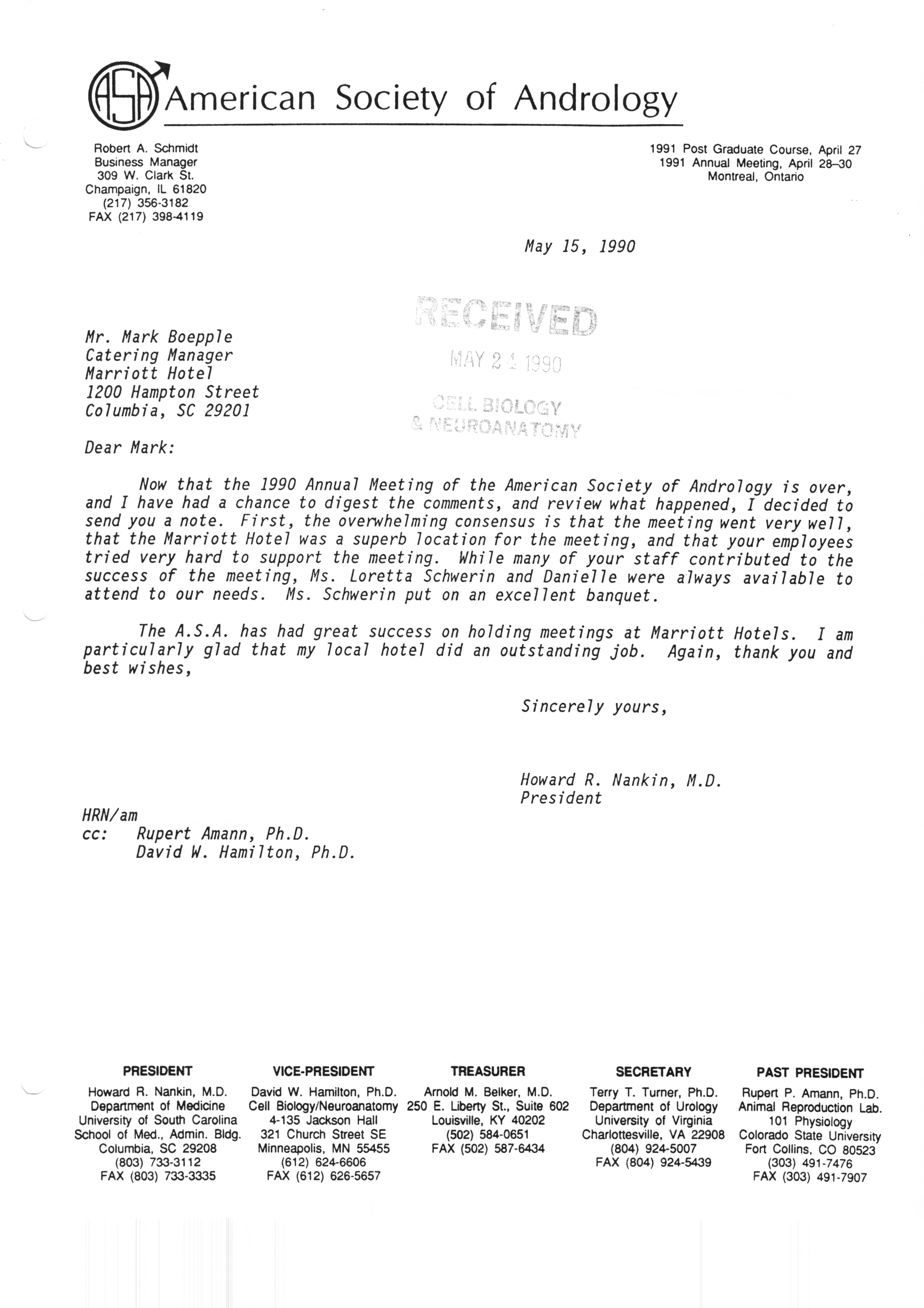 Executive Council Meetings correspondence of the American Society of Andrology, 1990