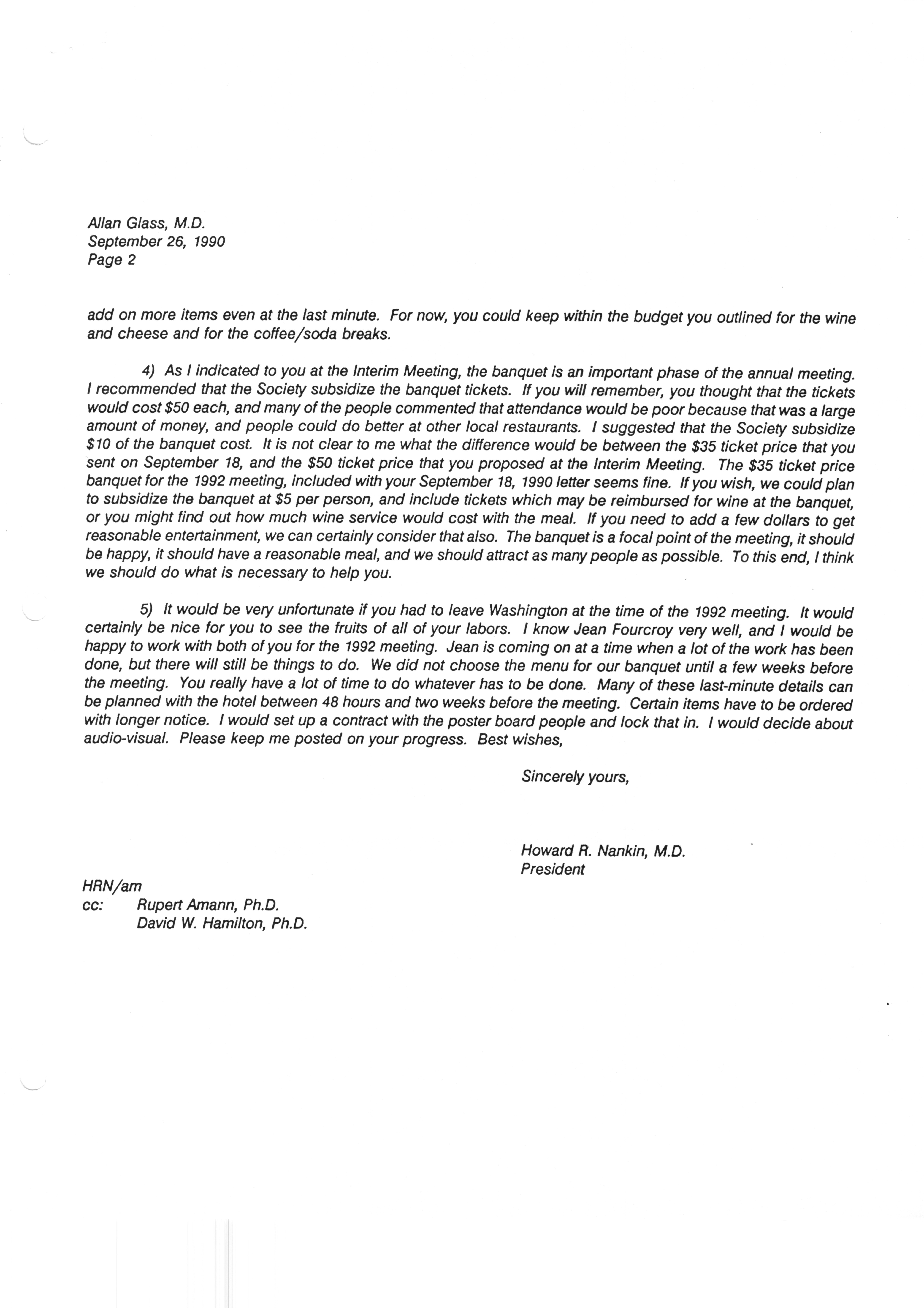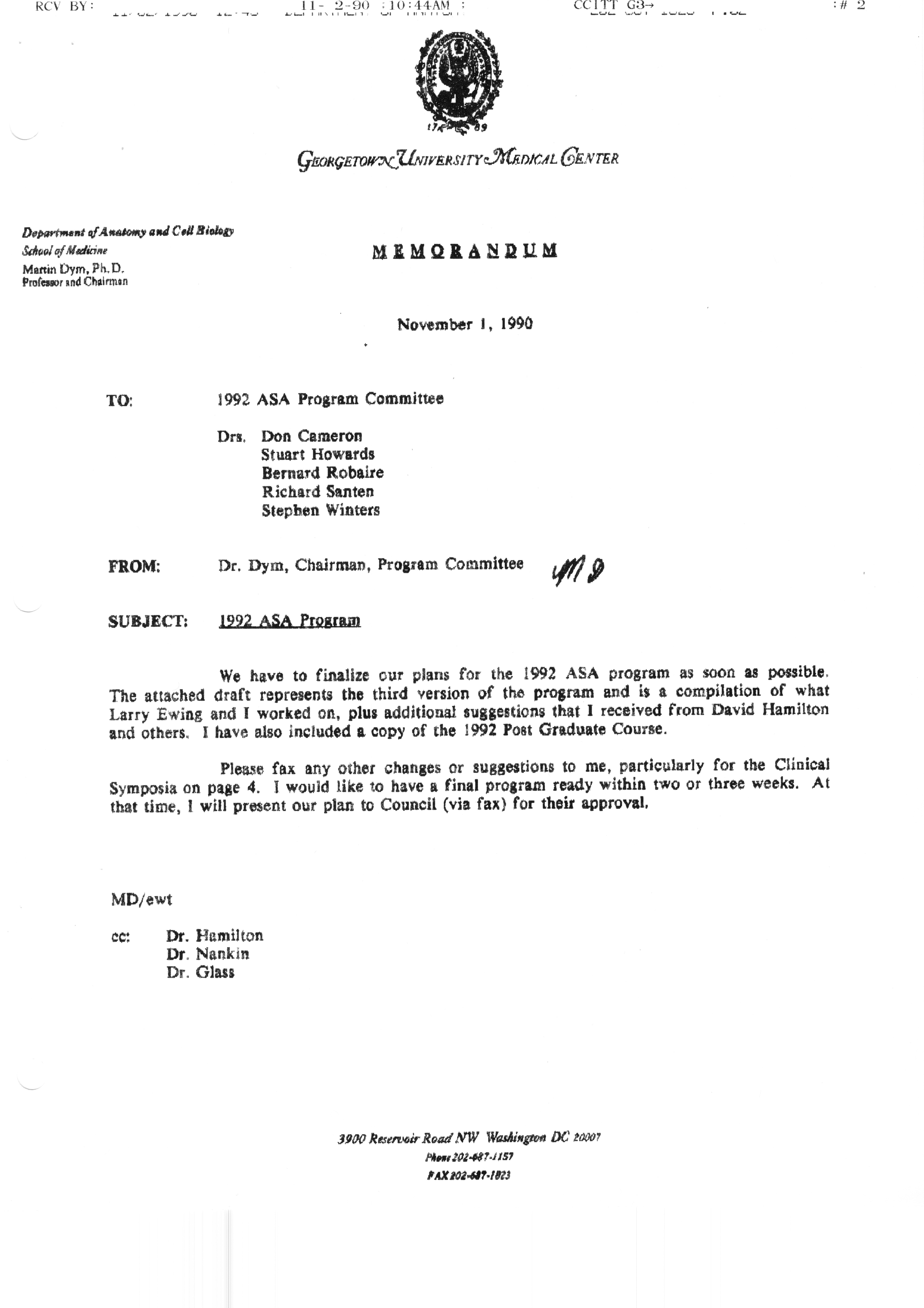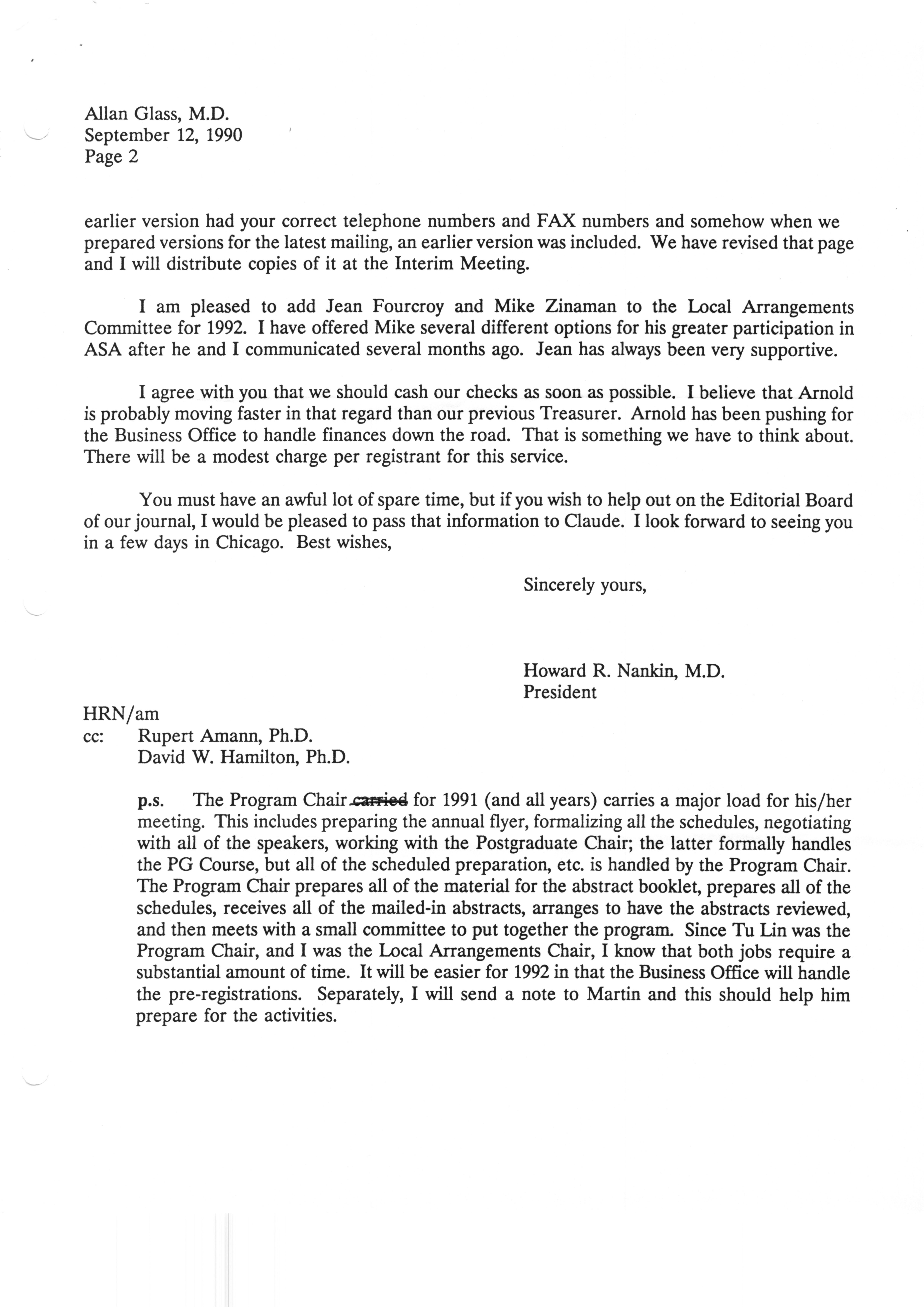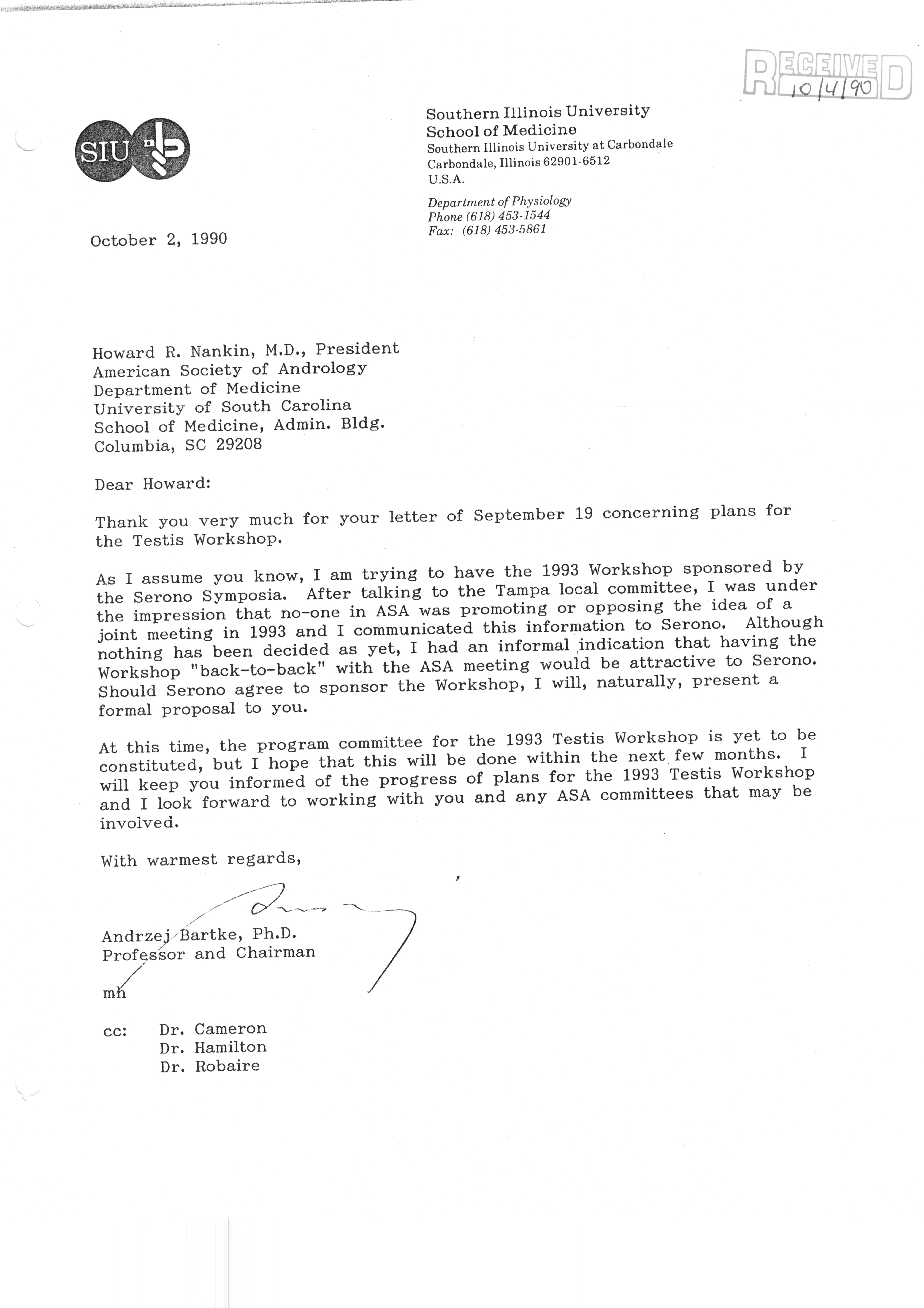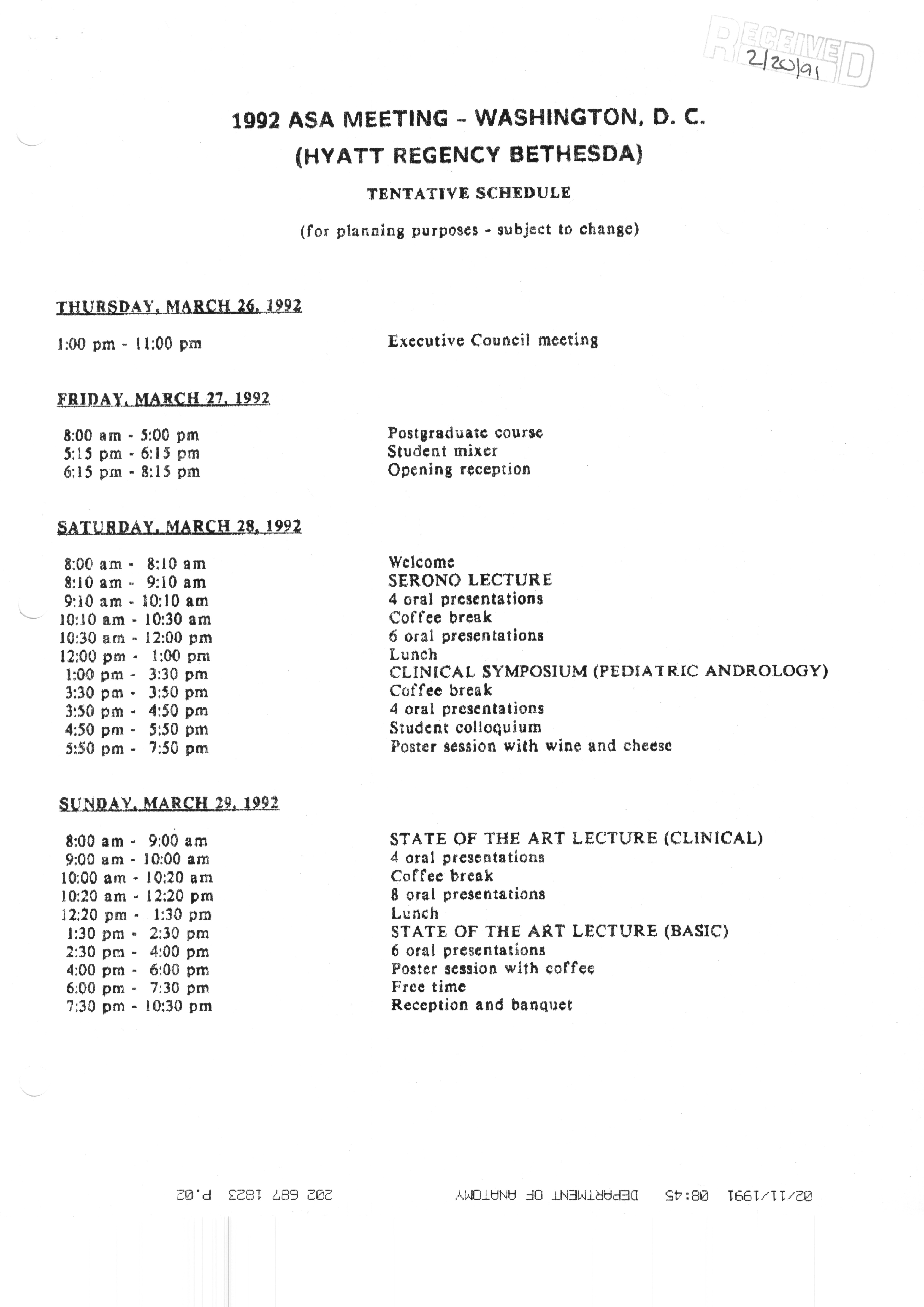 Executive Council Meetings correspondence of the American Society of Andrology, 1990
