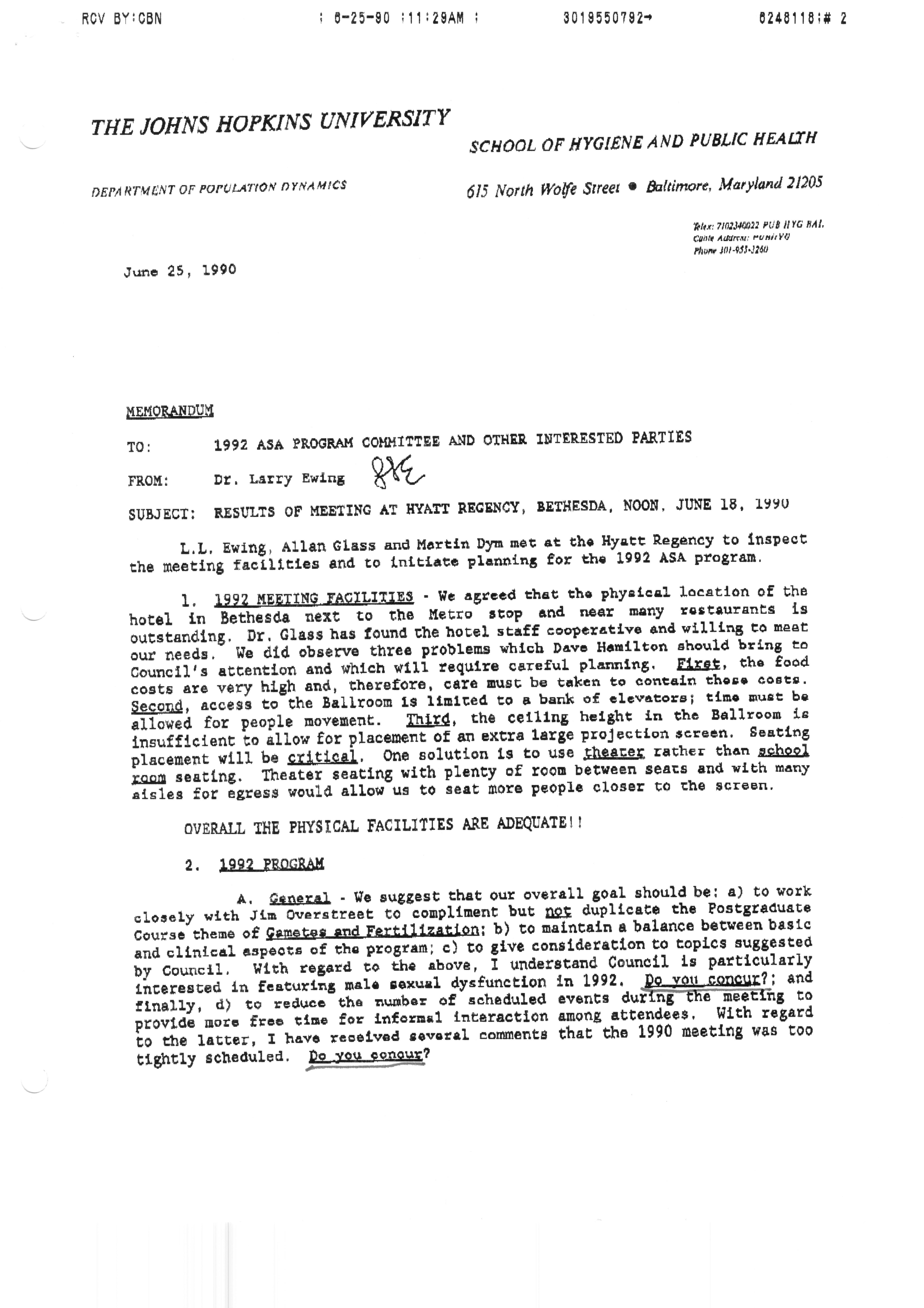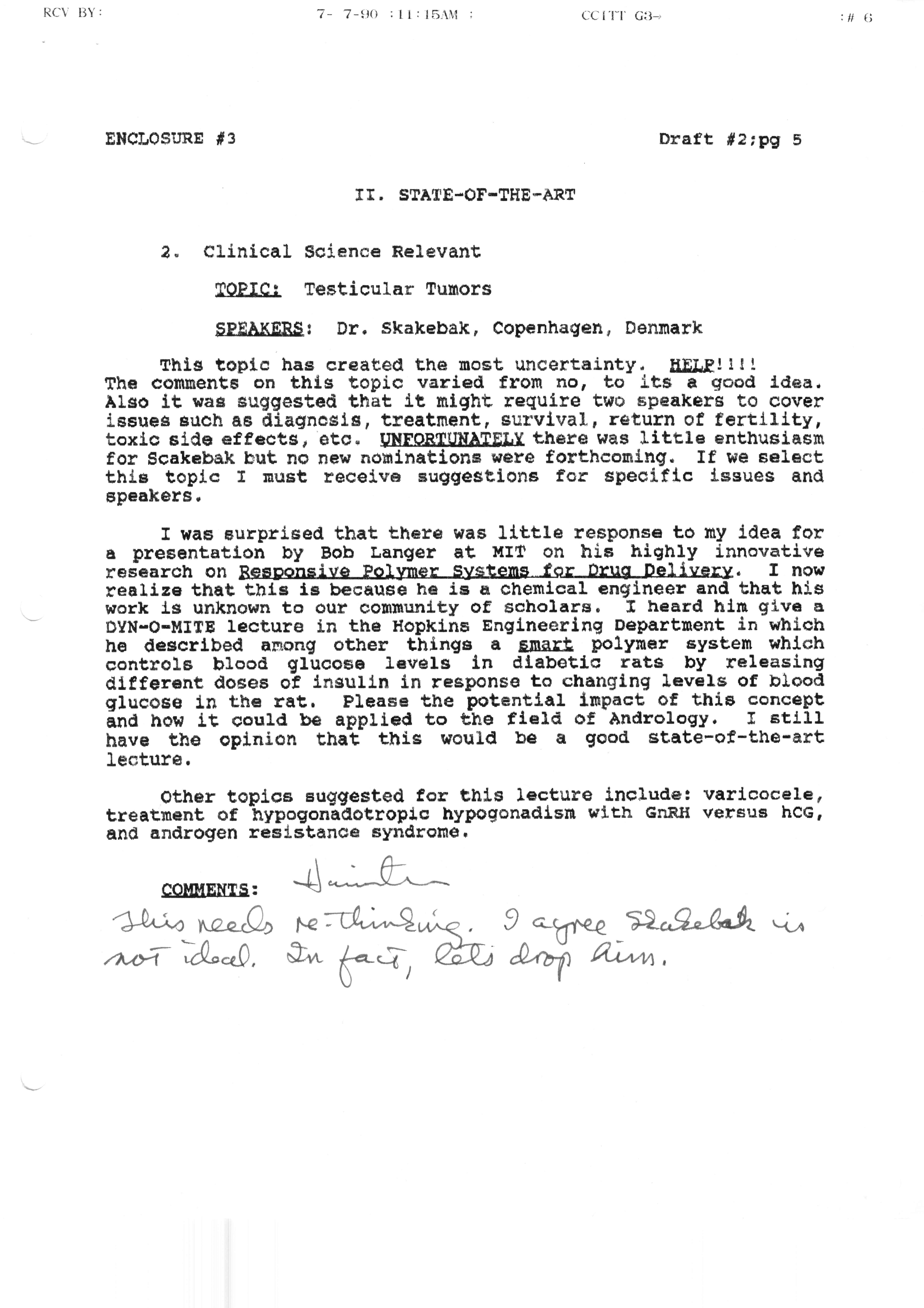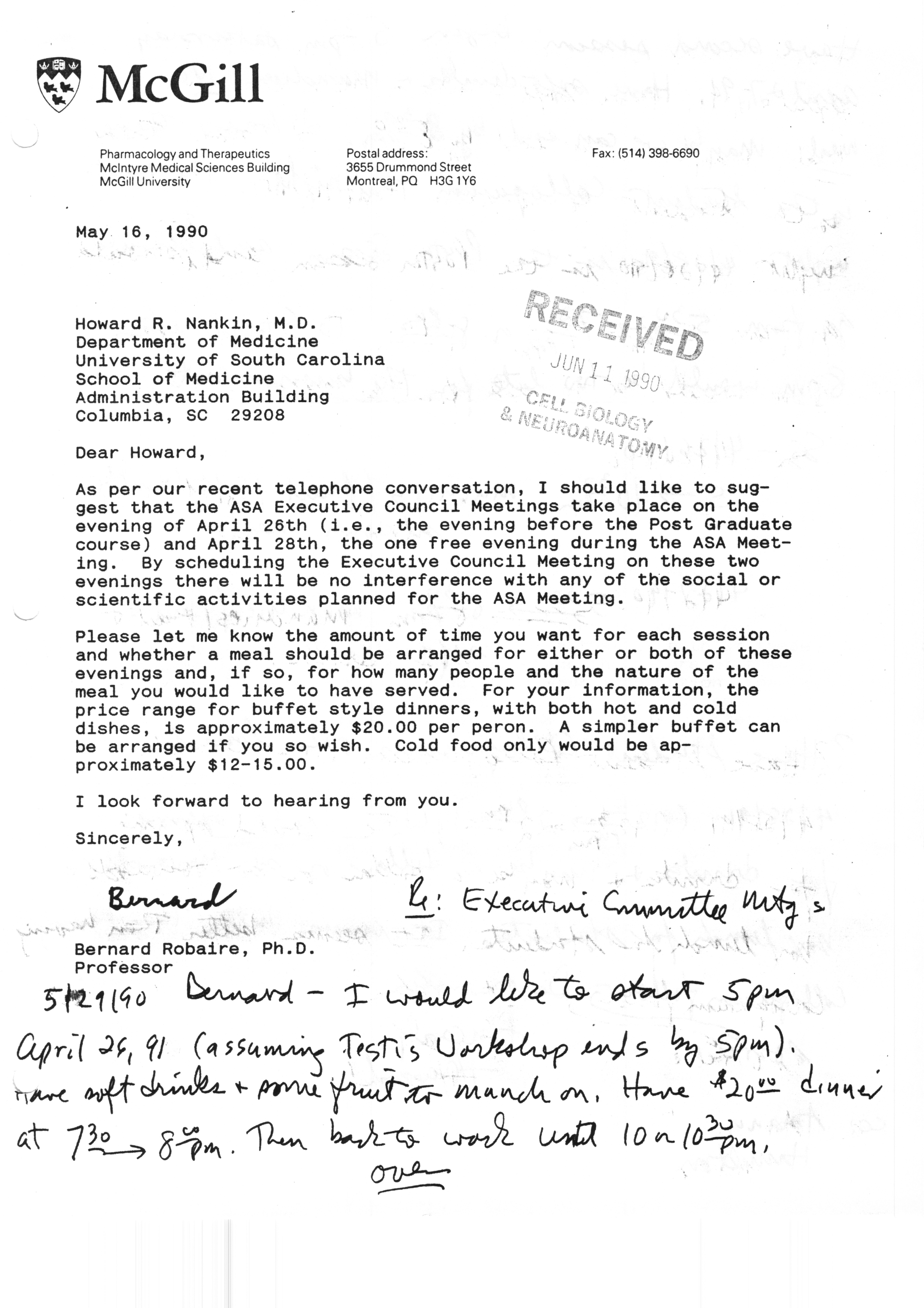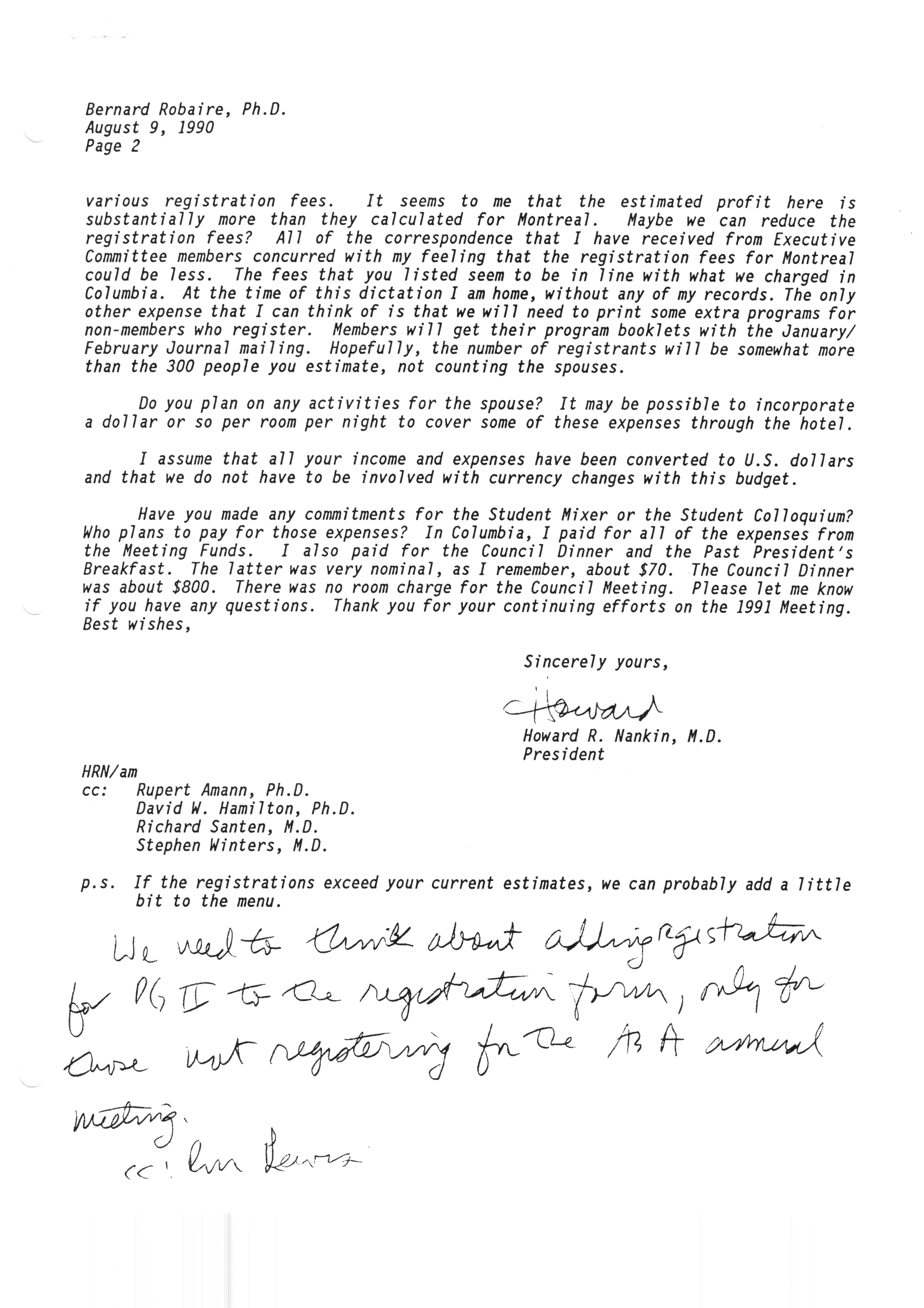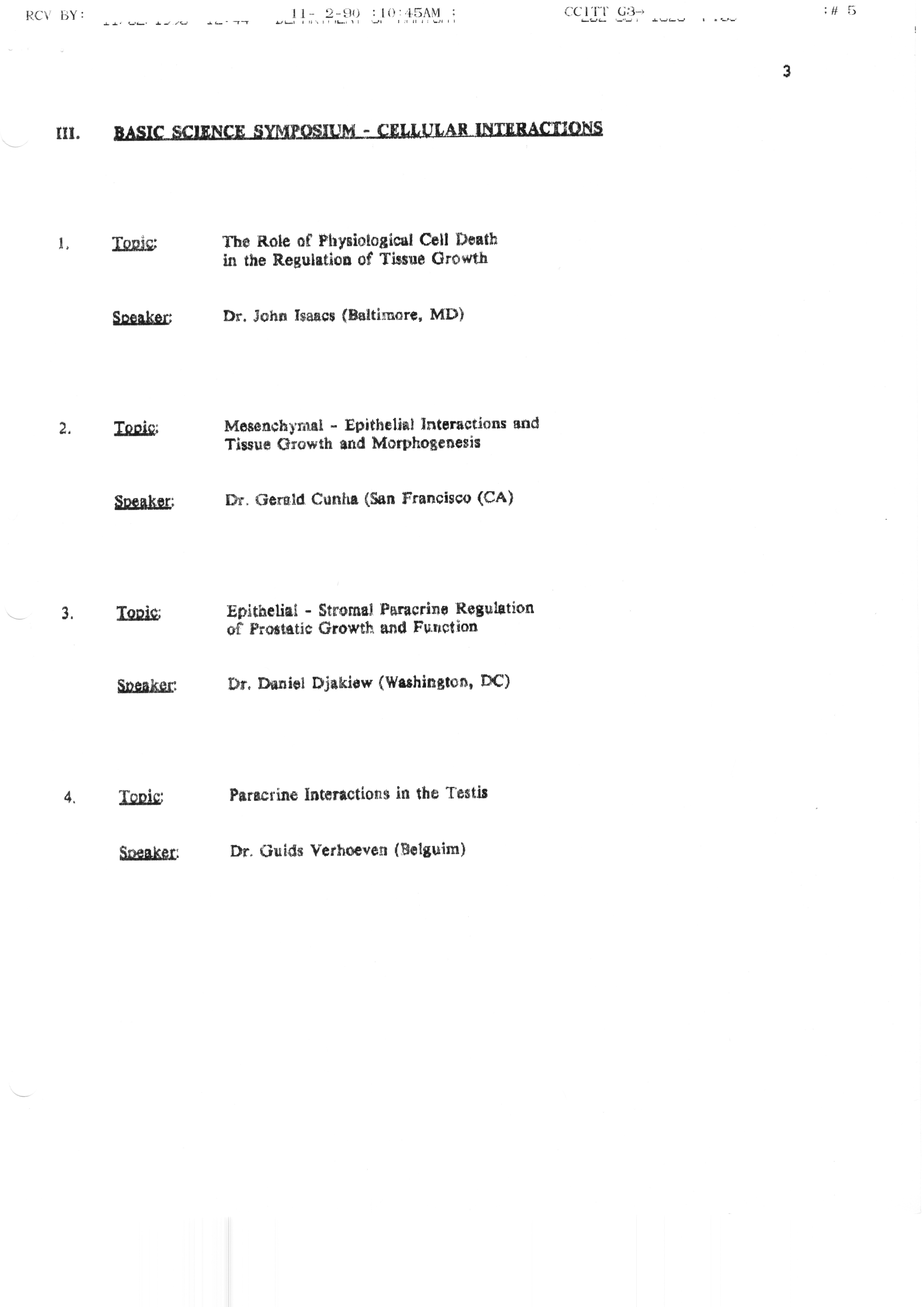 Executive Council Meetings correspondence of the American Society of Andrology, 1990