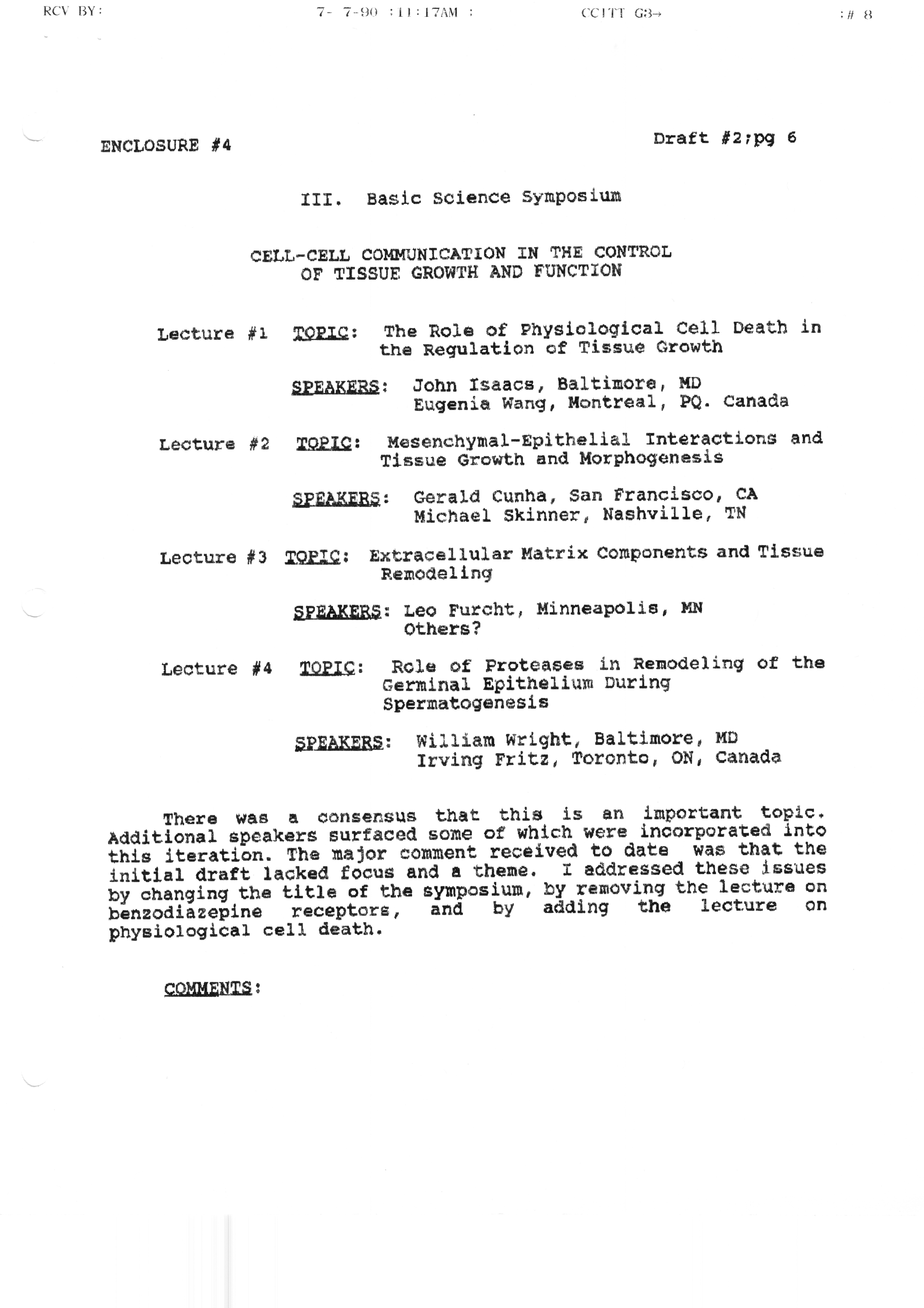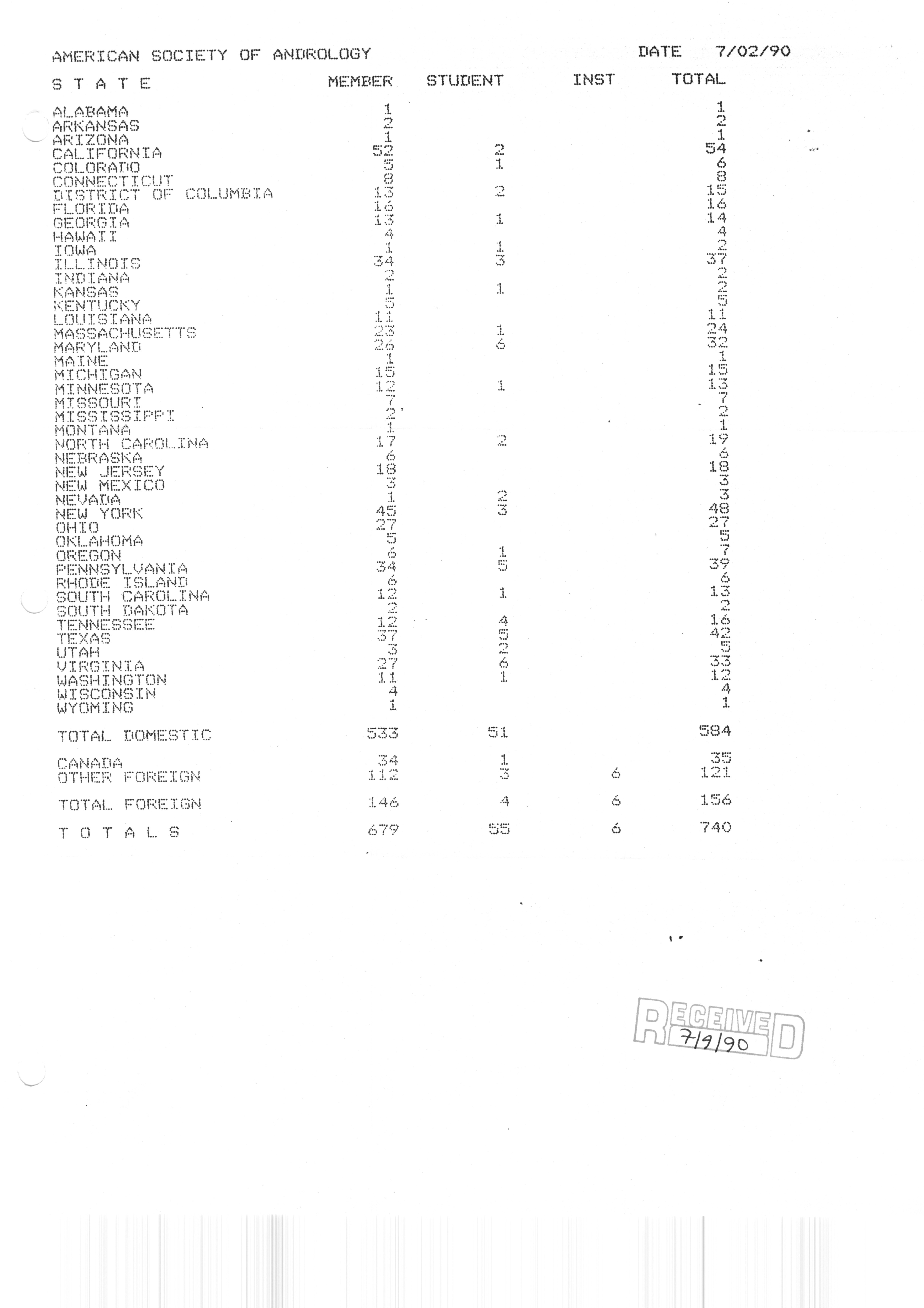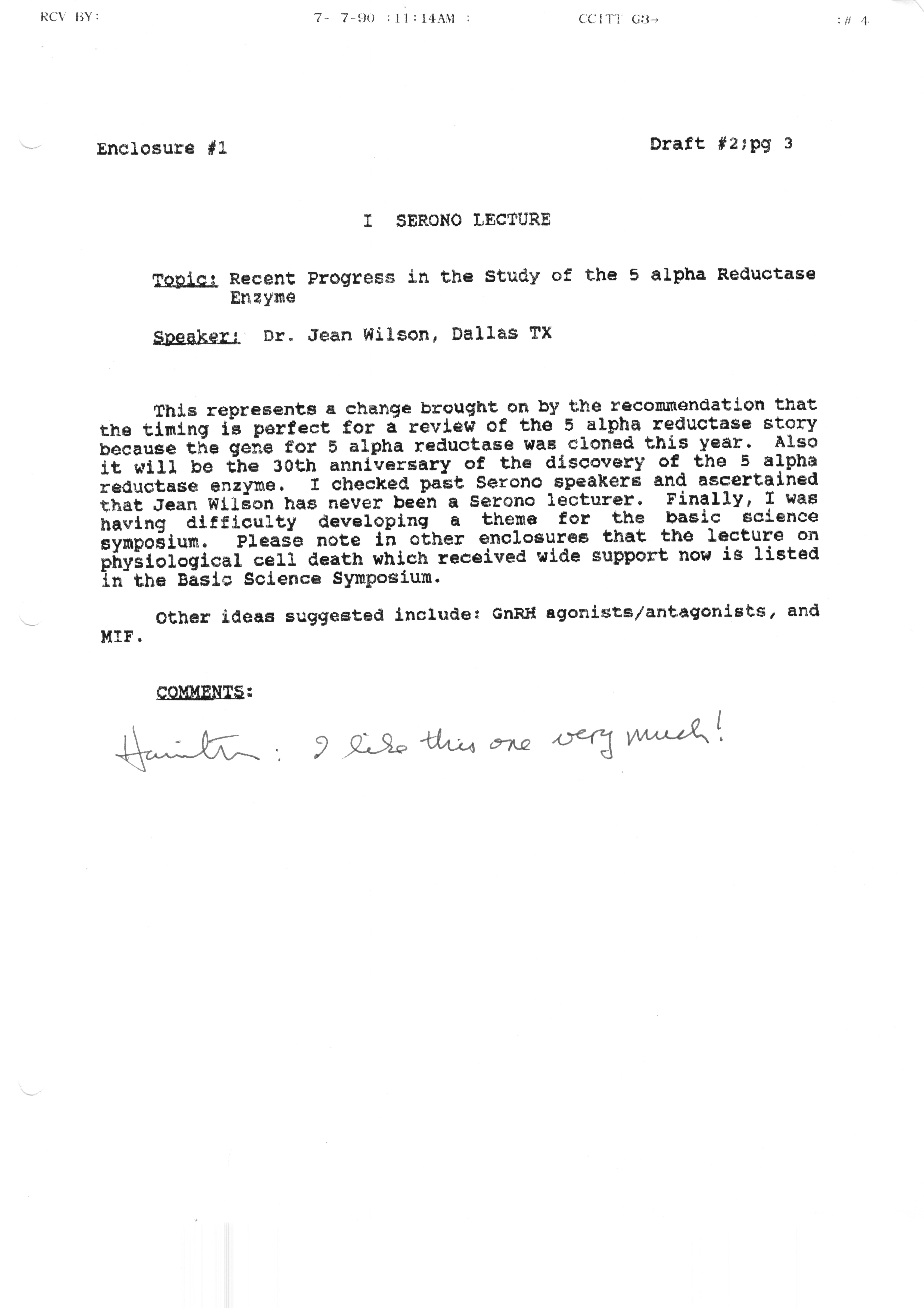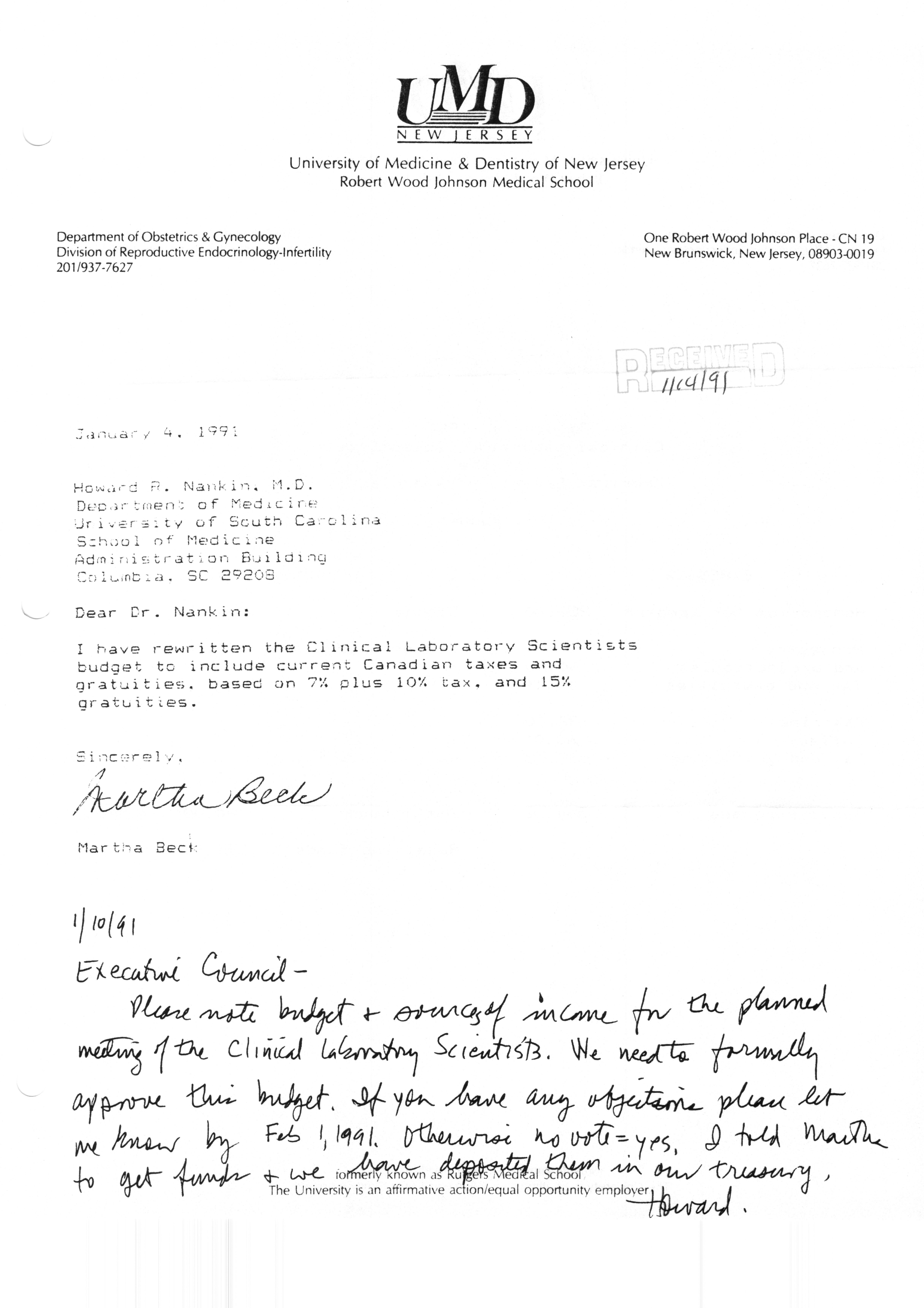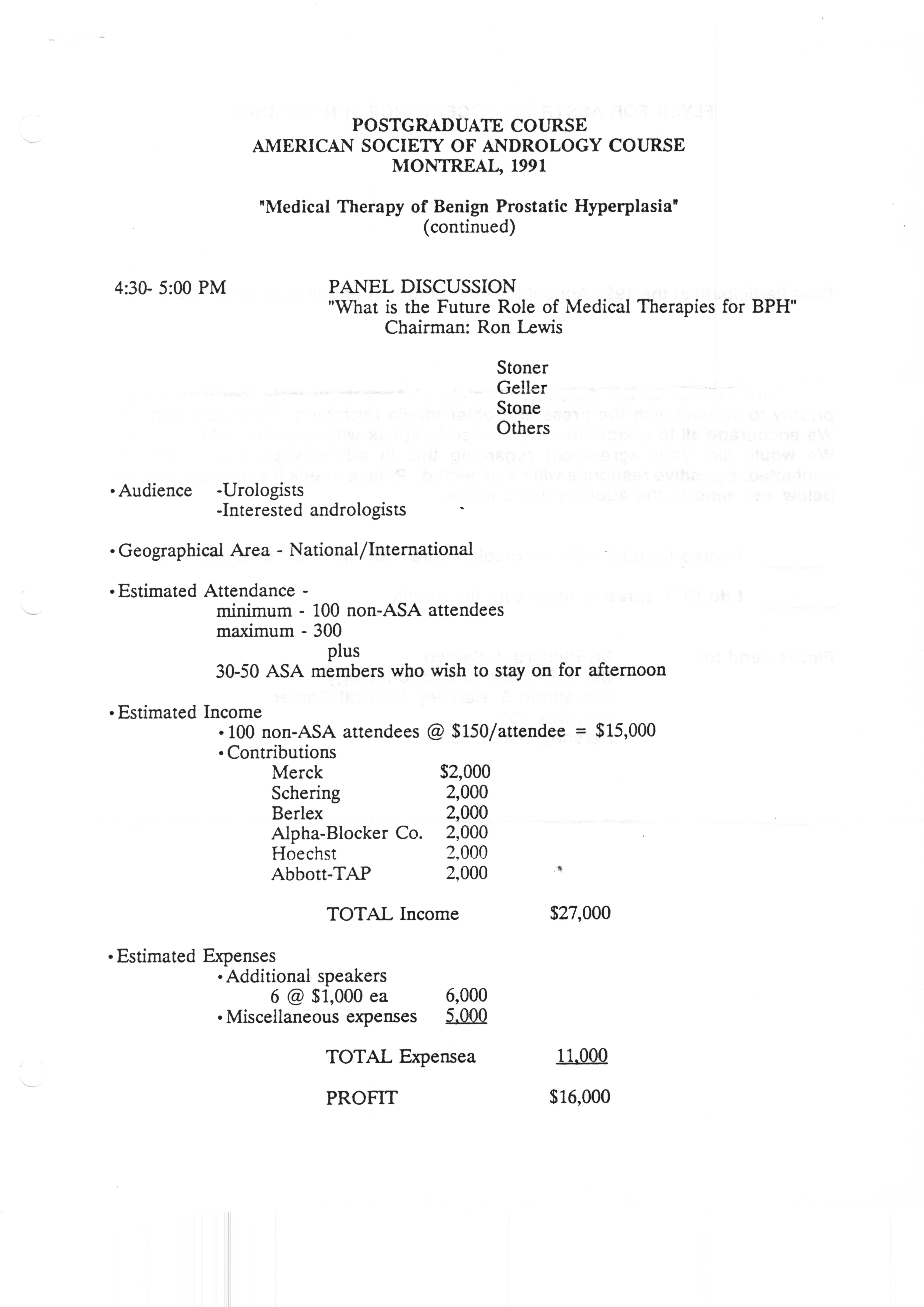 Executive Council Meetings correspondence of the American Society of Andrology, 1990